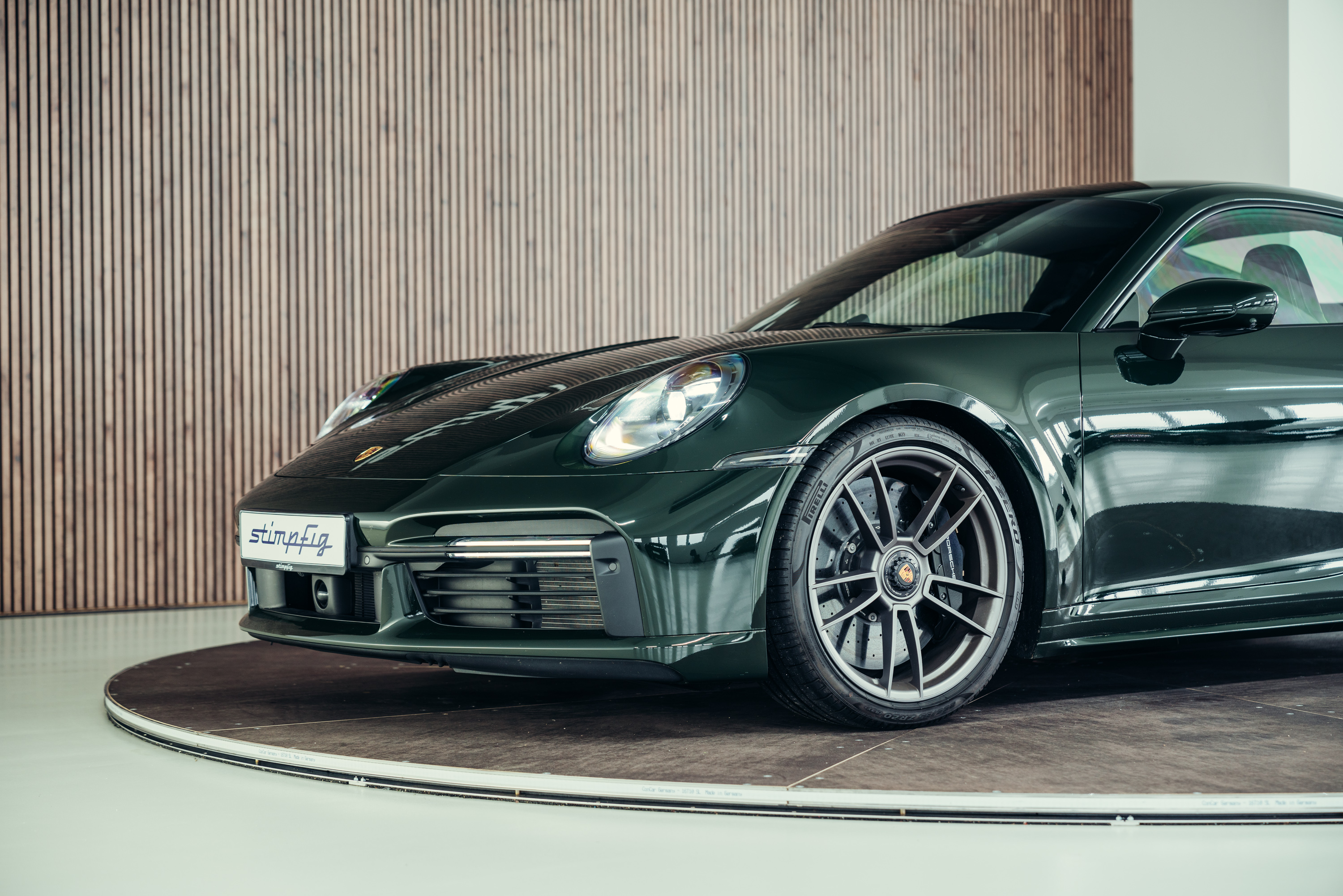 Zum Verkauf steht ein sehr gepflegter Porsche 911 Turbo S der Baureihe 992 in der exklusiven PTS Sonderfarbe "Brewster Green". Mit 650 PS zählt der Turbo S zu den leistungsstärksten Serienfahrzeugen, die Porsche je gebaut hat. In Kombination mit dem intelligenten Allradantrieb, präziser Fahrdynamik und hohem Langstreckenkomfort bietet dieses Fahrzeug ein Fahrerlebnis auf höchstem Niveau. Das Fahrzeug verfügt über eine sehr umfangreiche Sonderausstattung und ist mit einem Briefeintrag versehen.