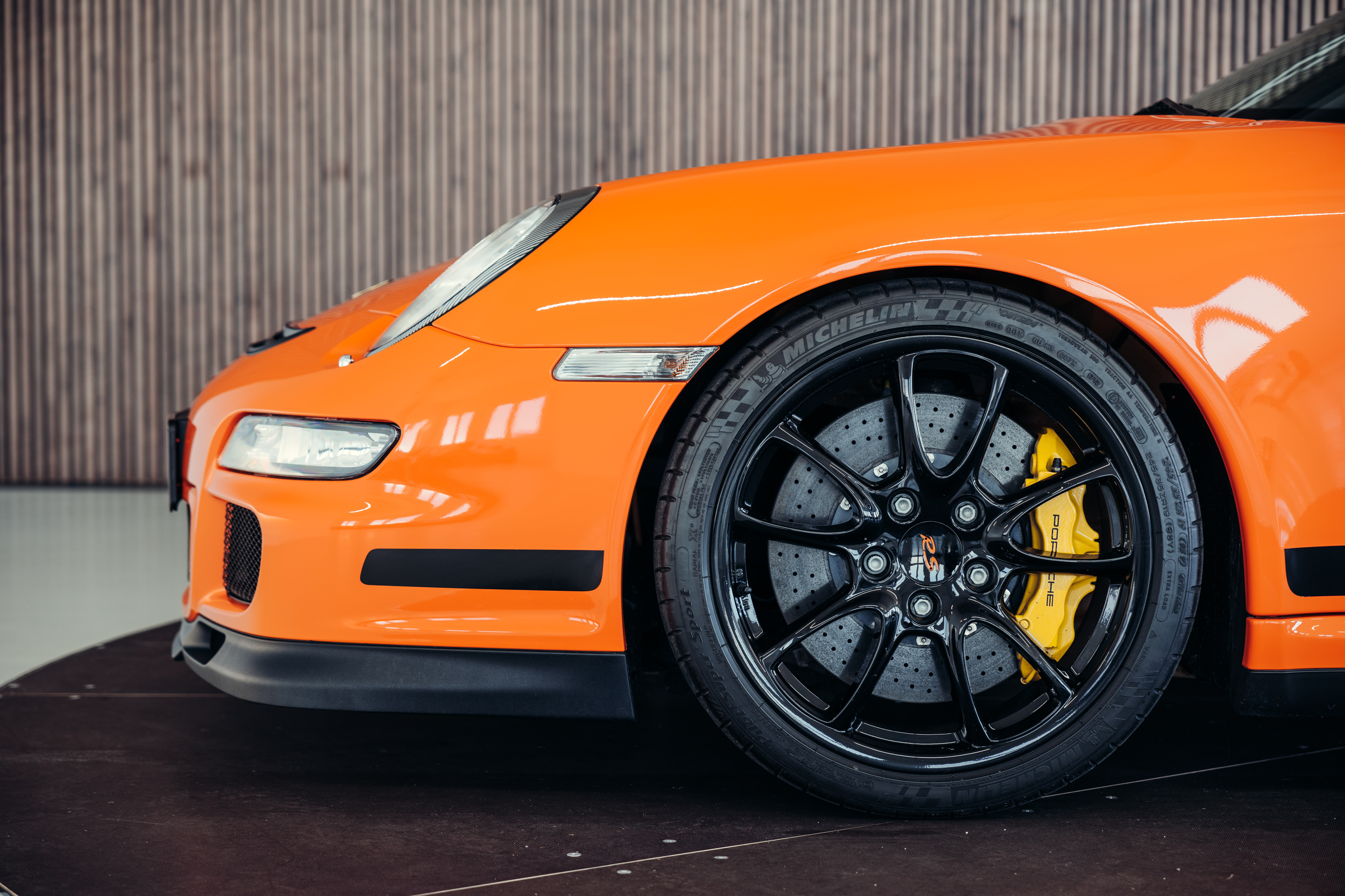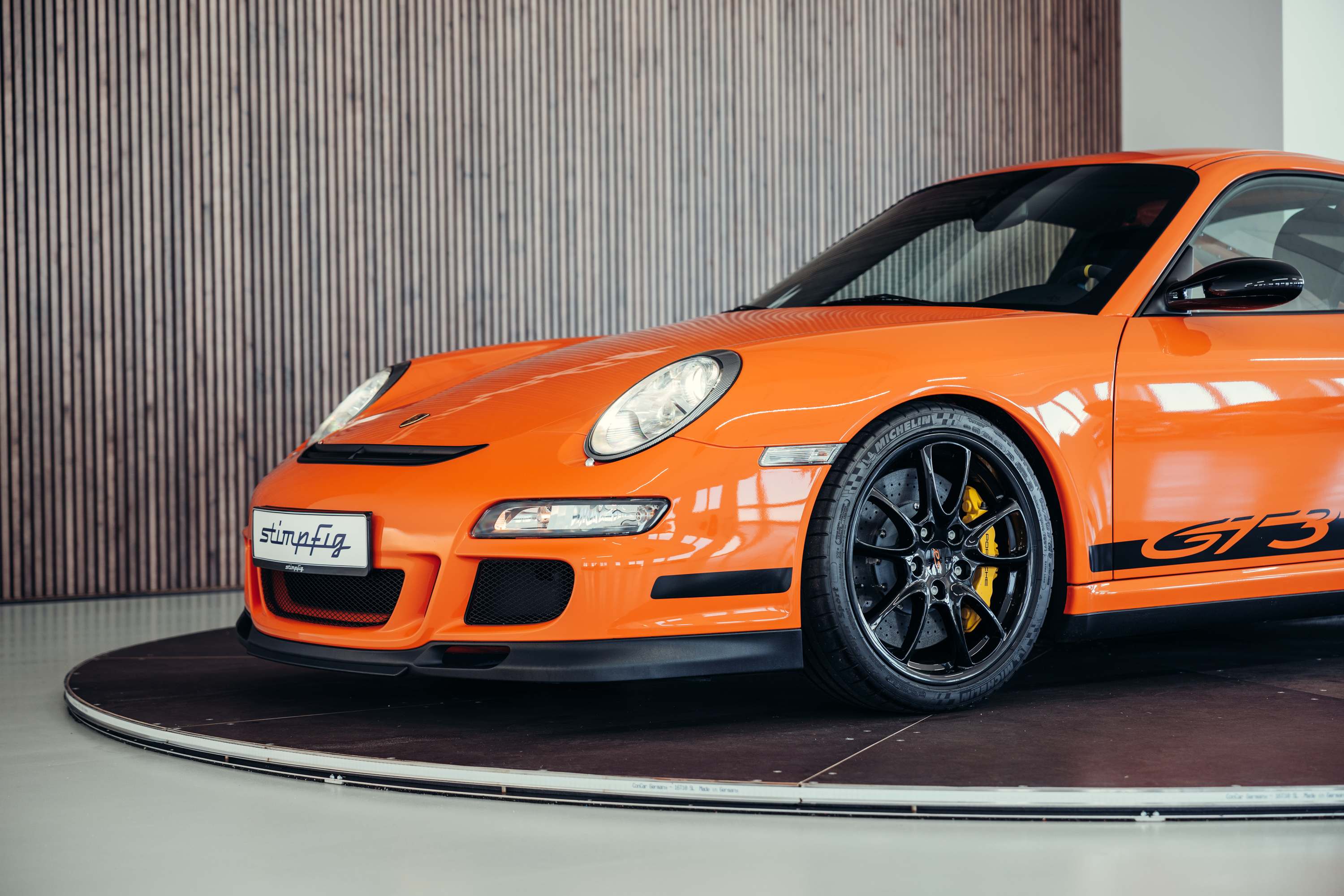 Zum Verkauf steht ein gepflegter Porsche 997 GT3 RS MK I aus dem Jahr 2007 in der Originalfarbe „Orange“. Das Fahrzeug verfügt über eine gut ausgestattete Konfiguration und hat zwei Briefeinträge. Der GT3 RS zählt zu den gefragten Modellen der Baureihe und überzeugt durch sein direktes Fahrverhalten und den klassischen Saugmotor.