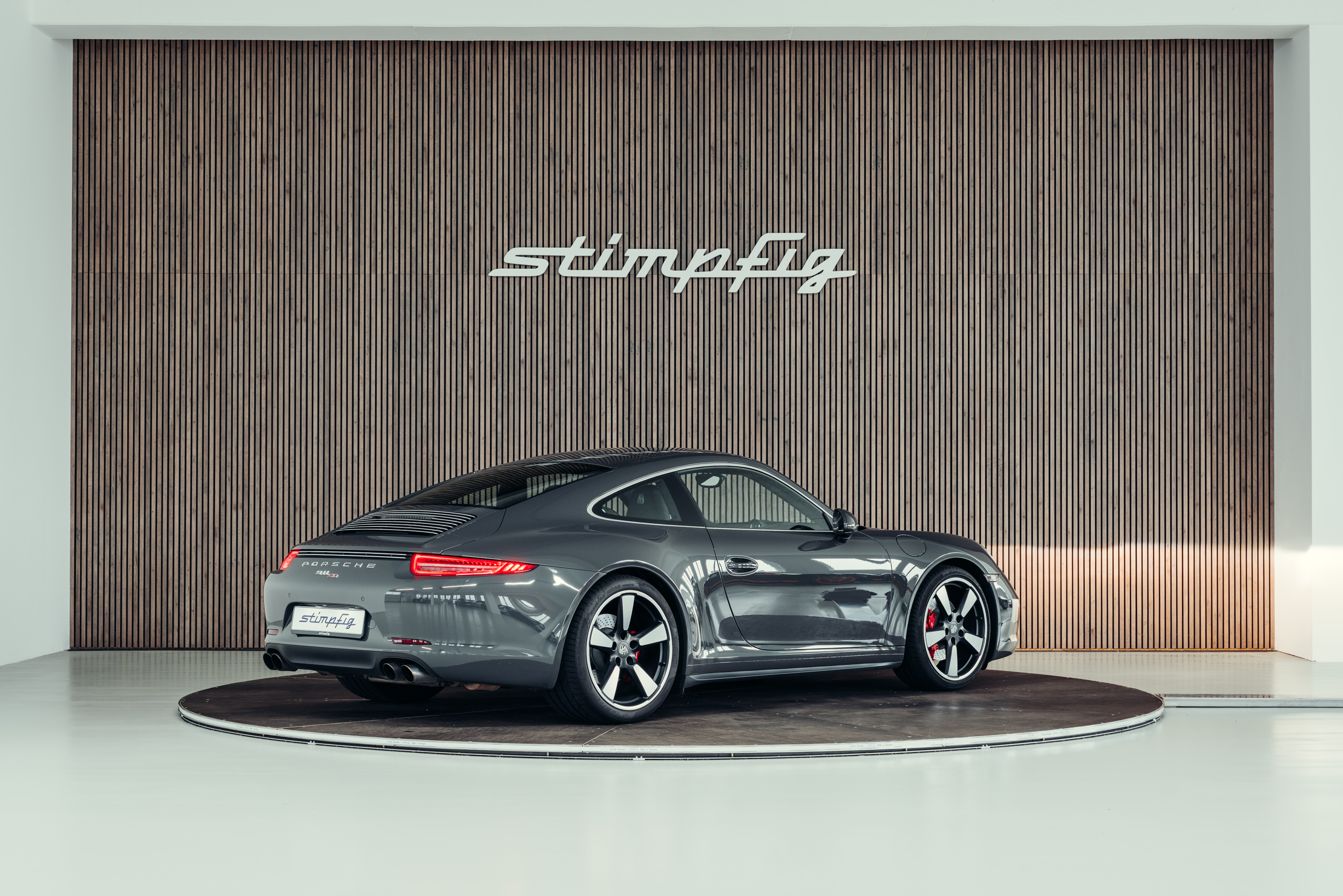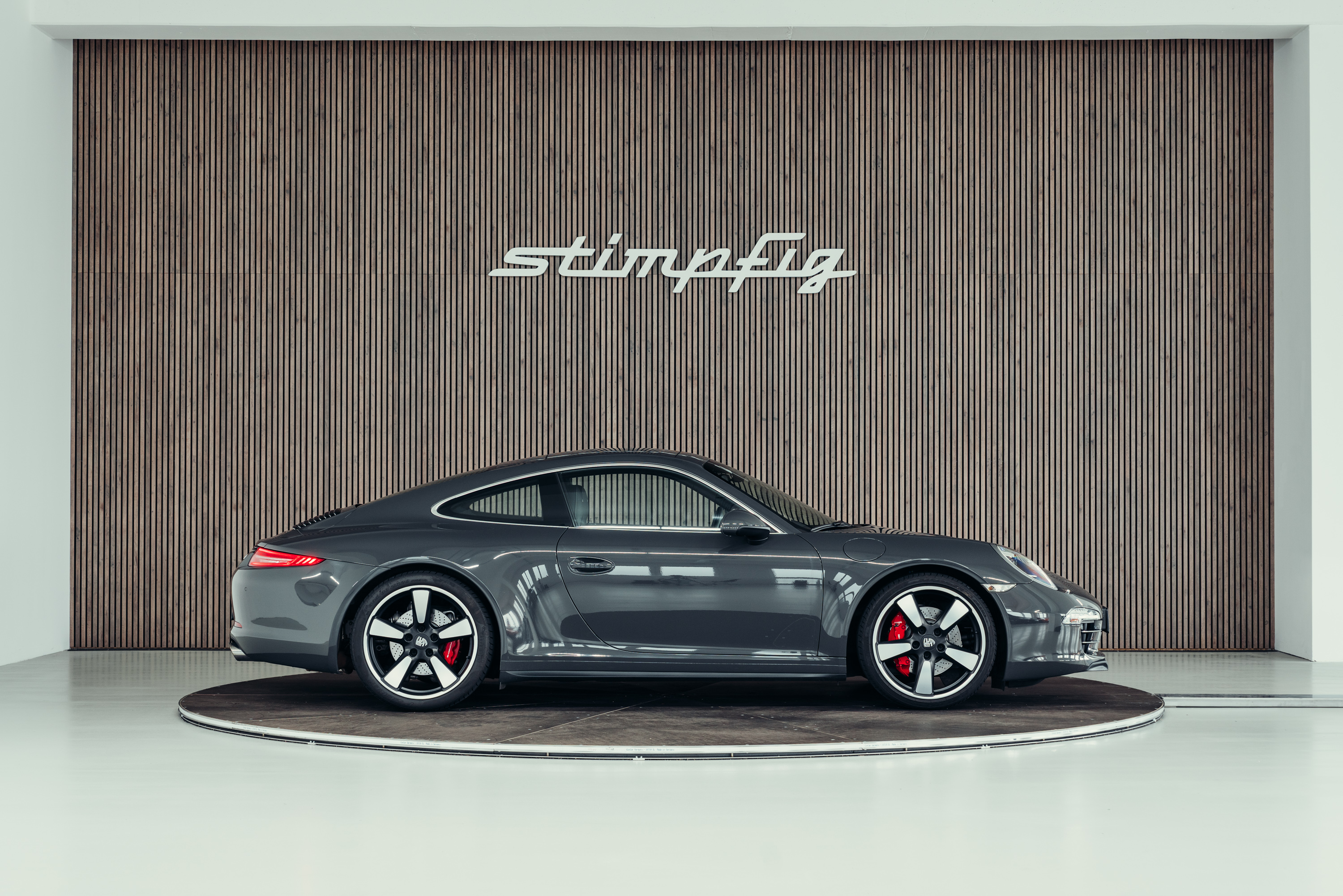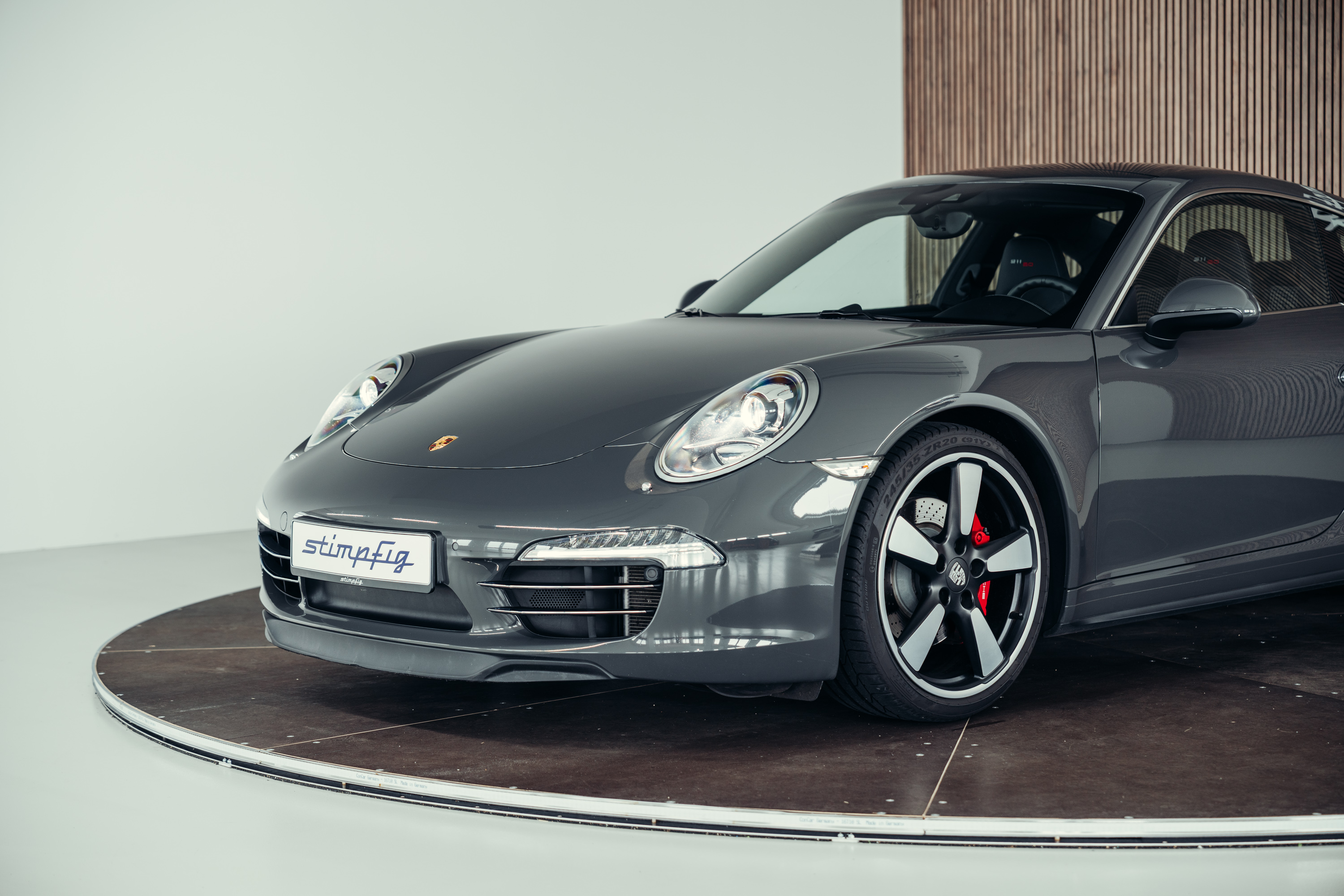 Zum Verkauf steht ein sehr gepflegter Porsche 991.1 Carrera S in der limitierten Edition '50 Jahre Porsche 911' in der sehr beliebten Farbe Grauschwarz. Dieses Fahrzeug stammt aus Zweitbesitz und hat eine sehr schöne stimmige Ausstattung. Als eines von nur 1963 gebauten Exemplaren weltweit ist diese Jubiläumsedition ein seltener Vertreter innerhalb der 911-Baureihe.