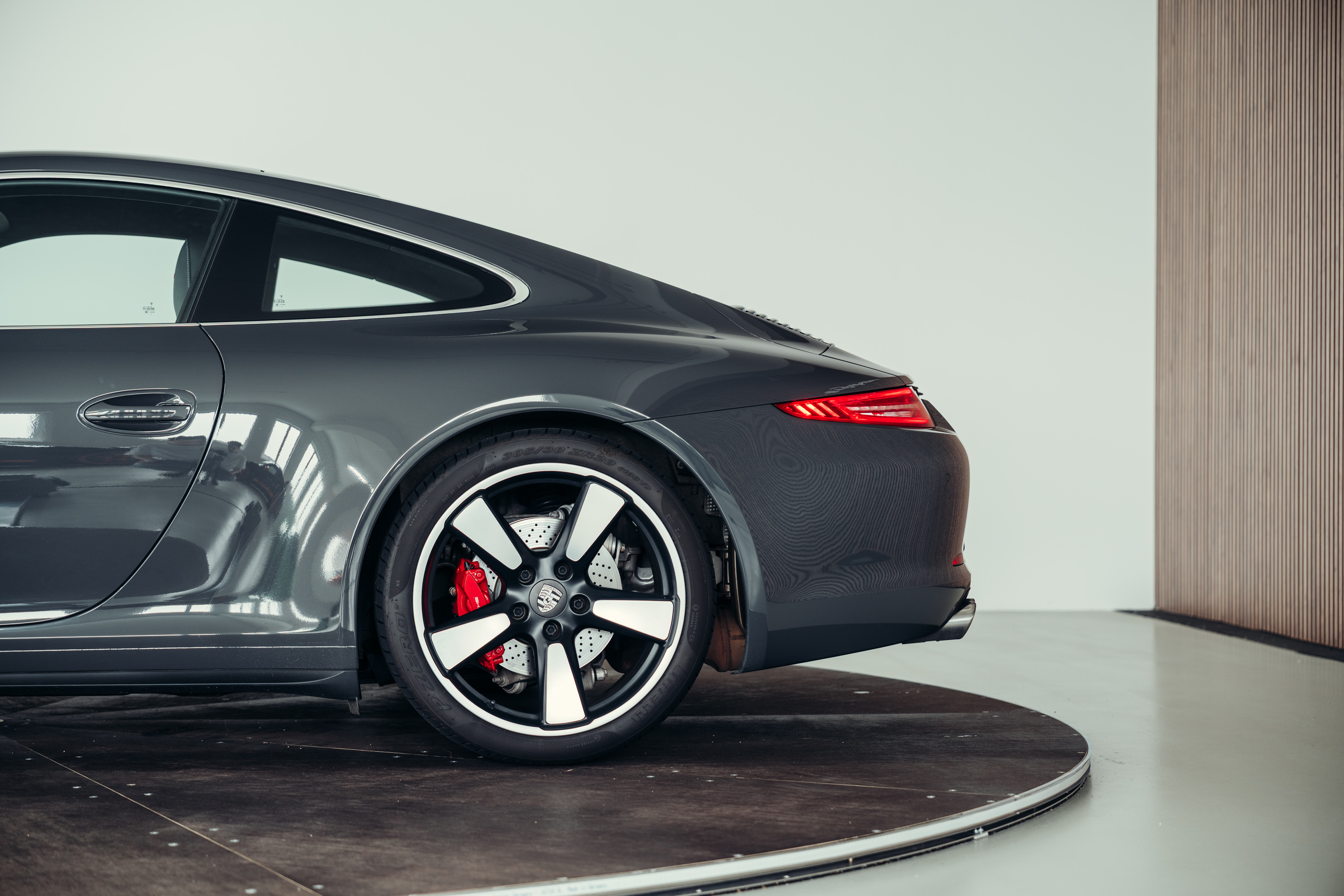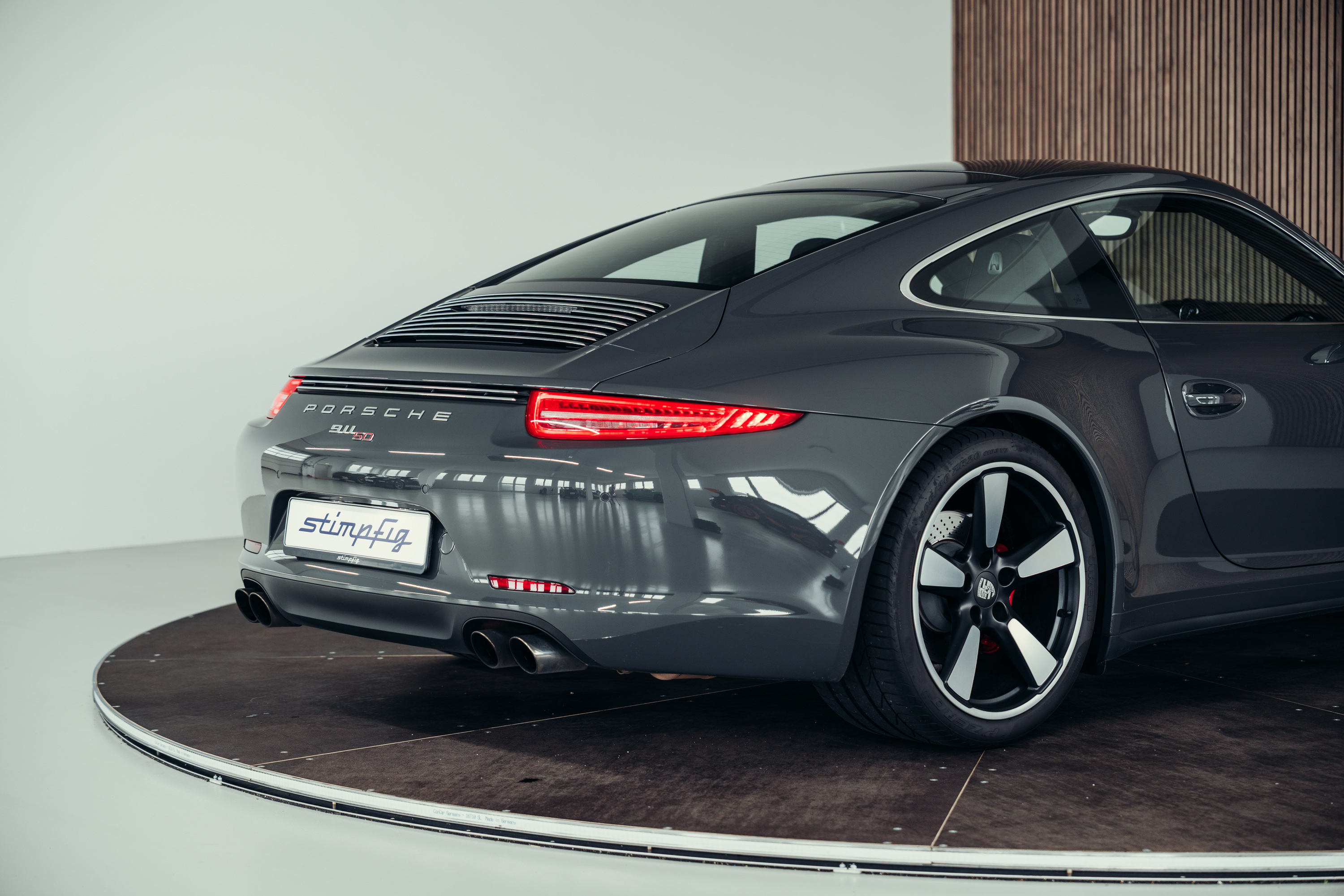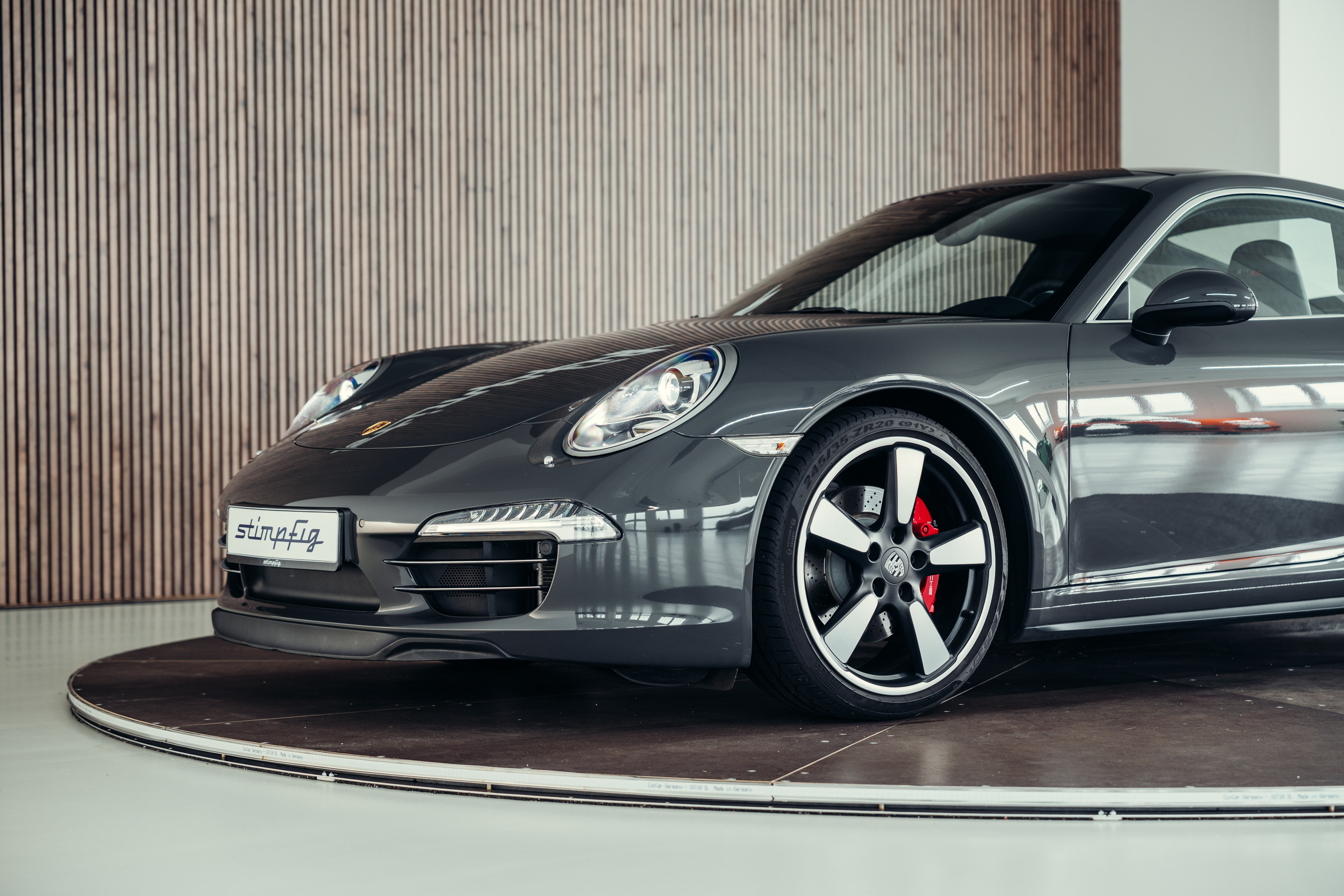 Zum Verkauf steht ein sehr gepflegter Porsche 991.1 Carrera S in der limitierten Edition '50 Jahre Porsche 911' in der sehr beliebten Farbe Grauschwarz. Dieses Fahrzeug stammt aus Zweitbesitz und hat eine sehr schöne stimmige Ausstattung. Als eines von nur 1963 gebauten Exemplaren weltweit ist diese Jubiläumsedition ein seltener Vertreter innerhalb der 911-Baureihe.