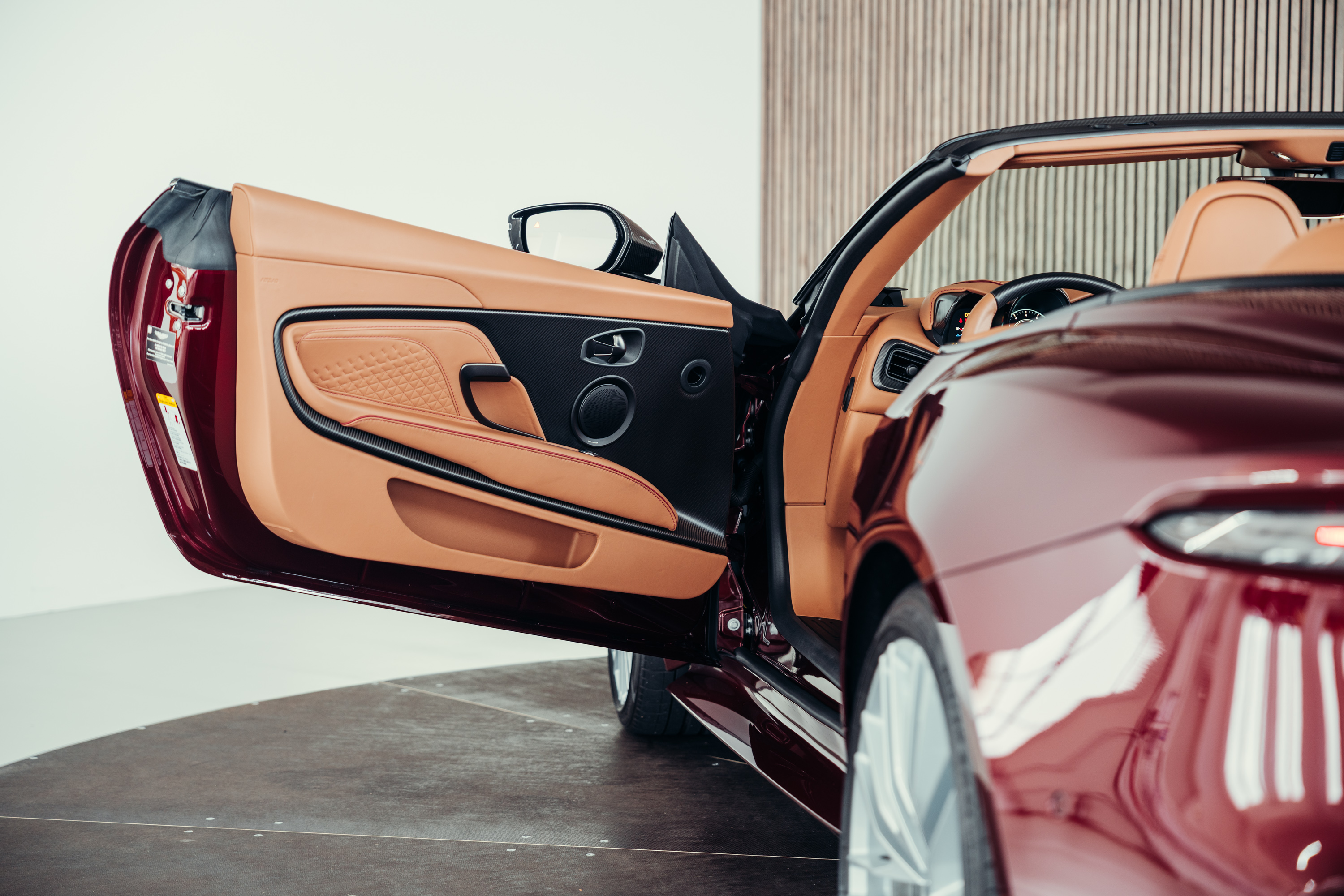 Zum Verkauf steht ein ausgesprochen gepflegter Aston Martin DBS Superleggera Volante in der edlen Lackierung „Liquid Crimson“, kombiniert mit einer geschmackvollen Leder-Innenausstattung in „Copper Tan Metallic“. Diese Farbkombination verleiht dem Fahrzeug eine besondere Präsenz – kraftvoll, aber zugleich elegant und zeitlos.