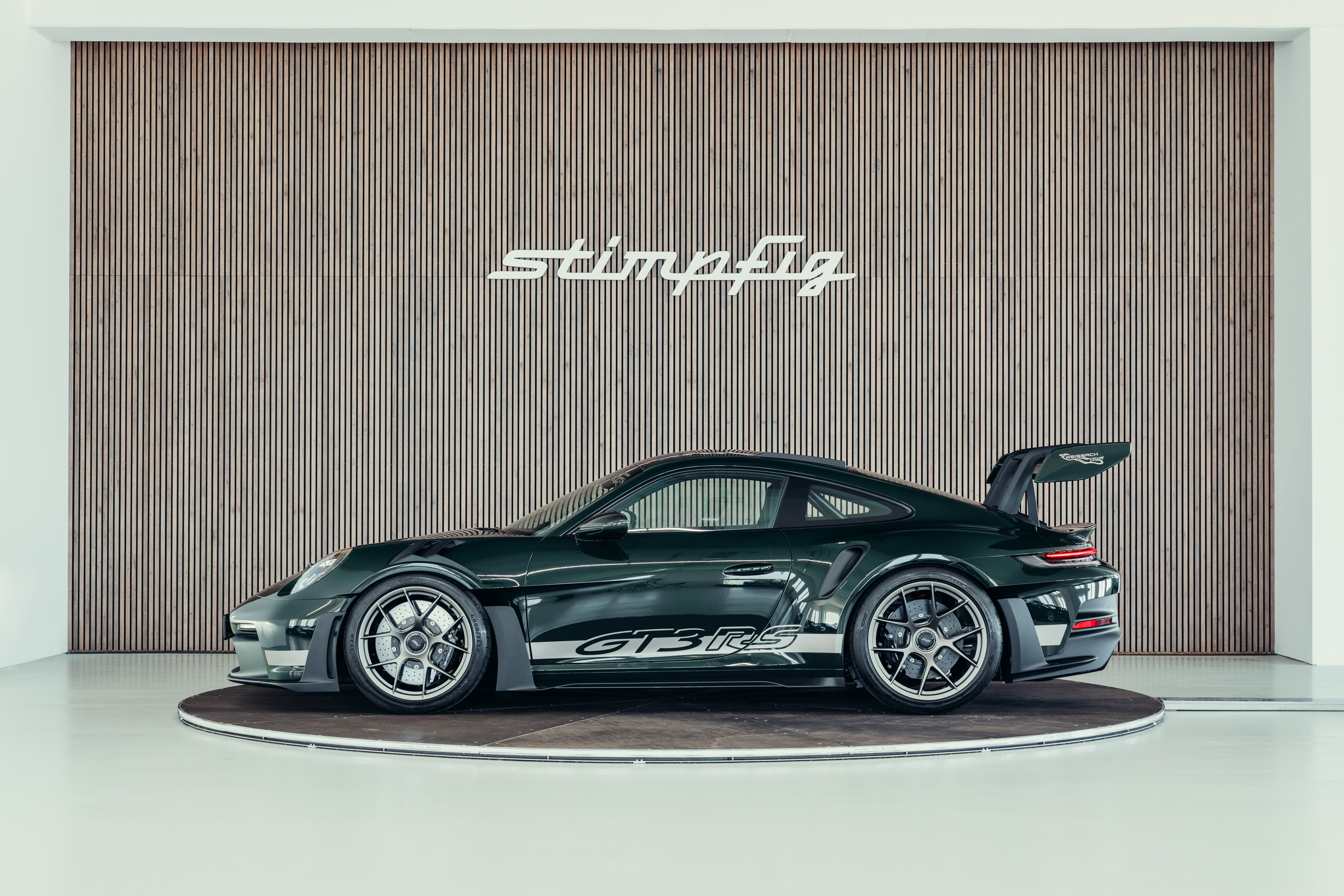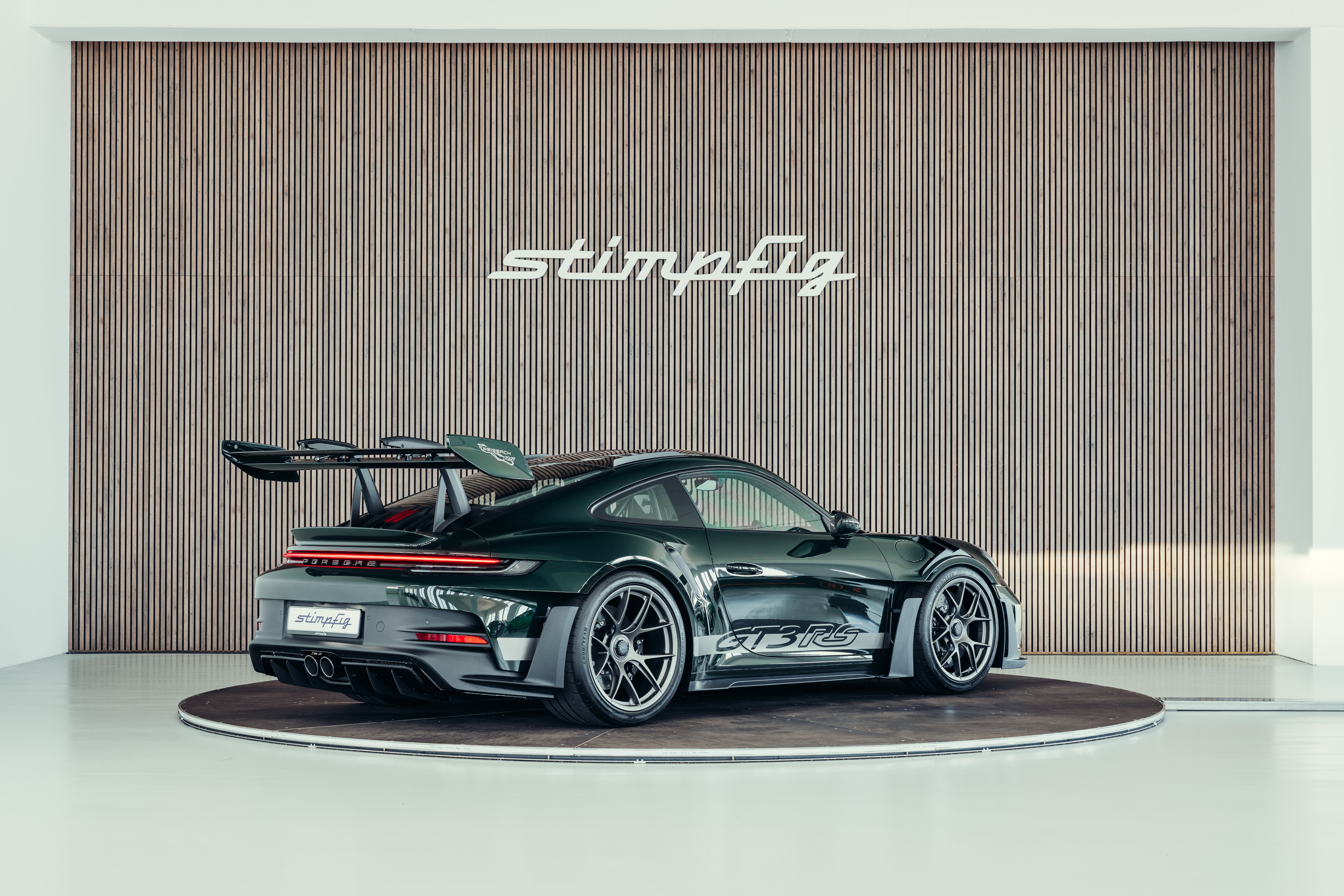 Zum Verkauf steht ein neuwertiger Porsche 992 GT3 RS in der seltenen PTS-Farbe „Brewster Green“ mit einer sehr umfangreichen und stimmigen Ausstattung.
