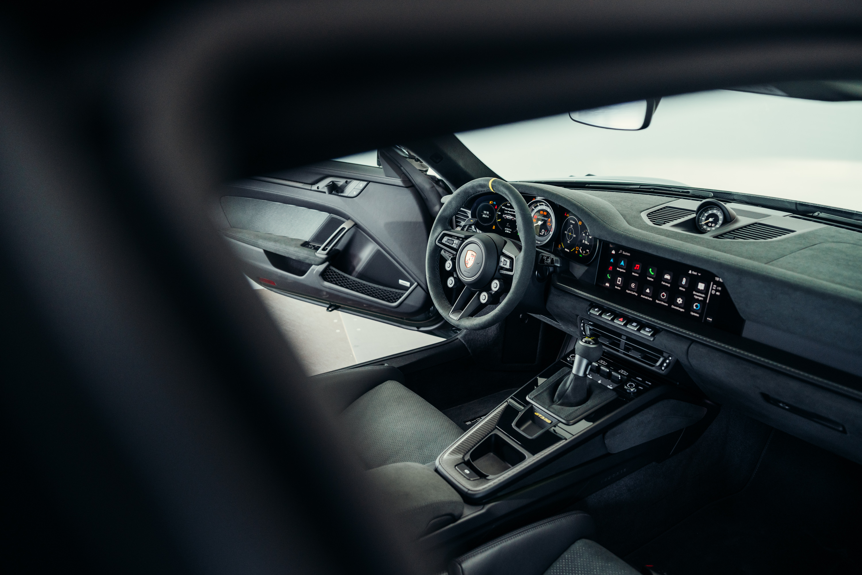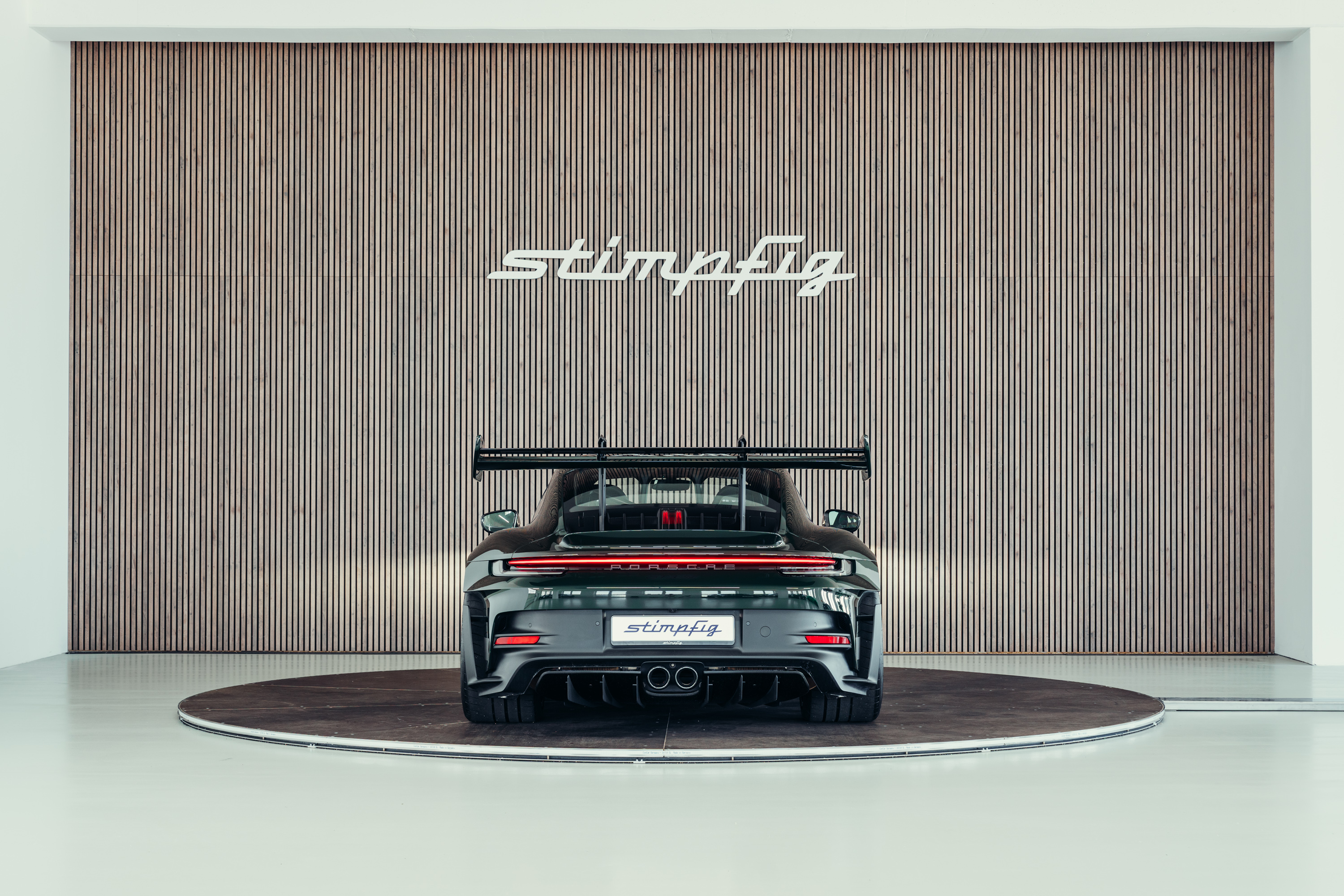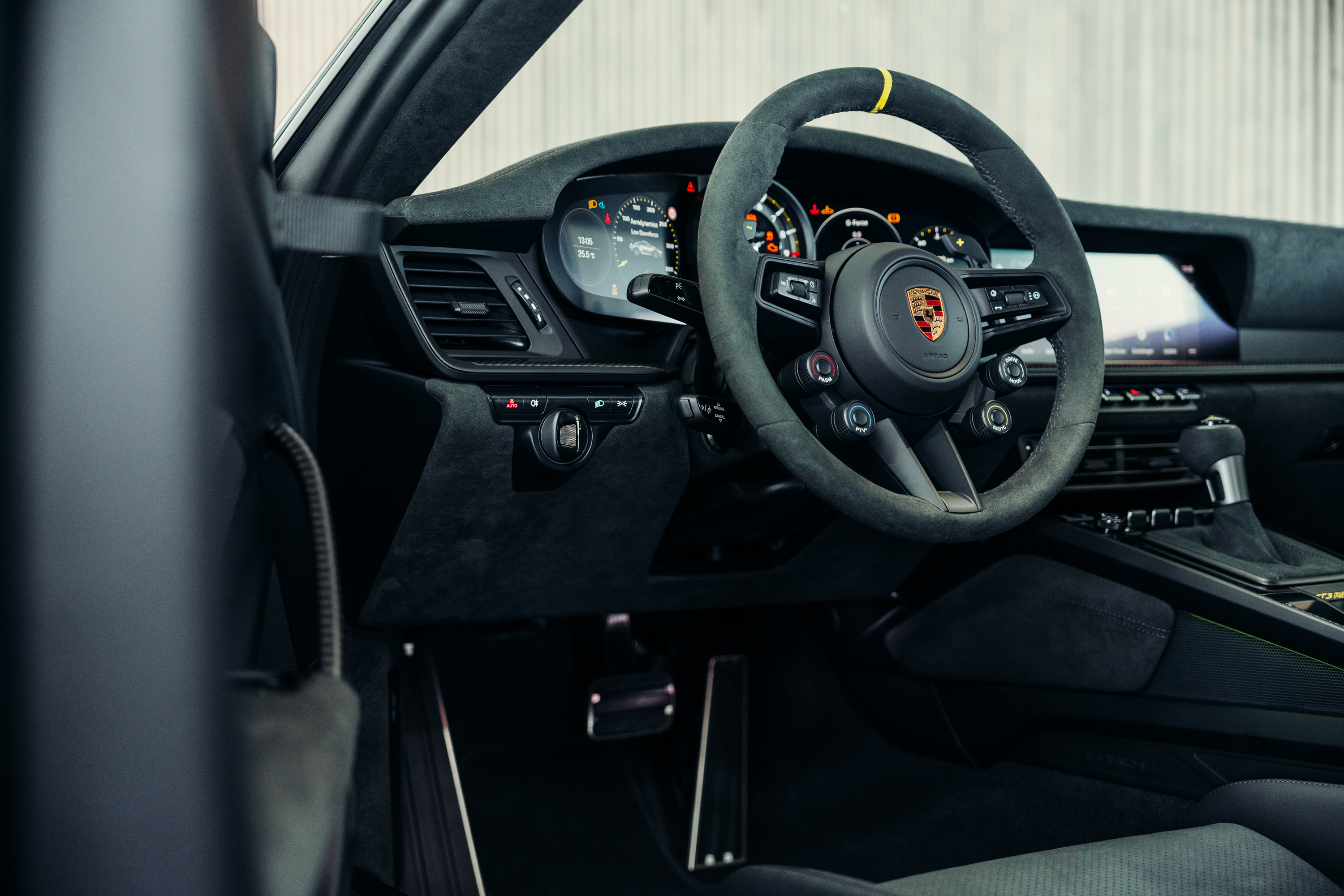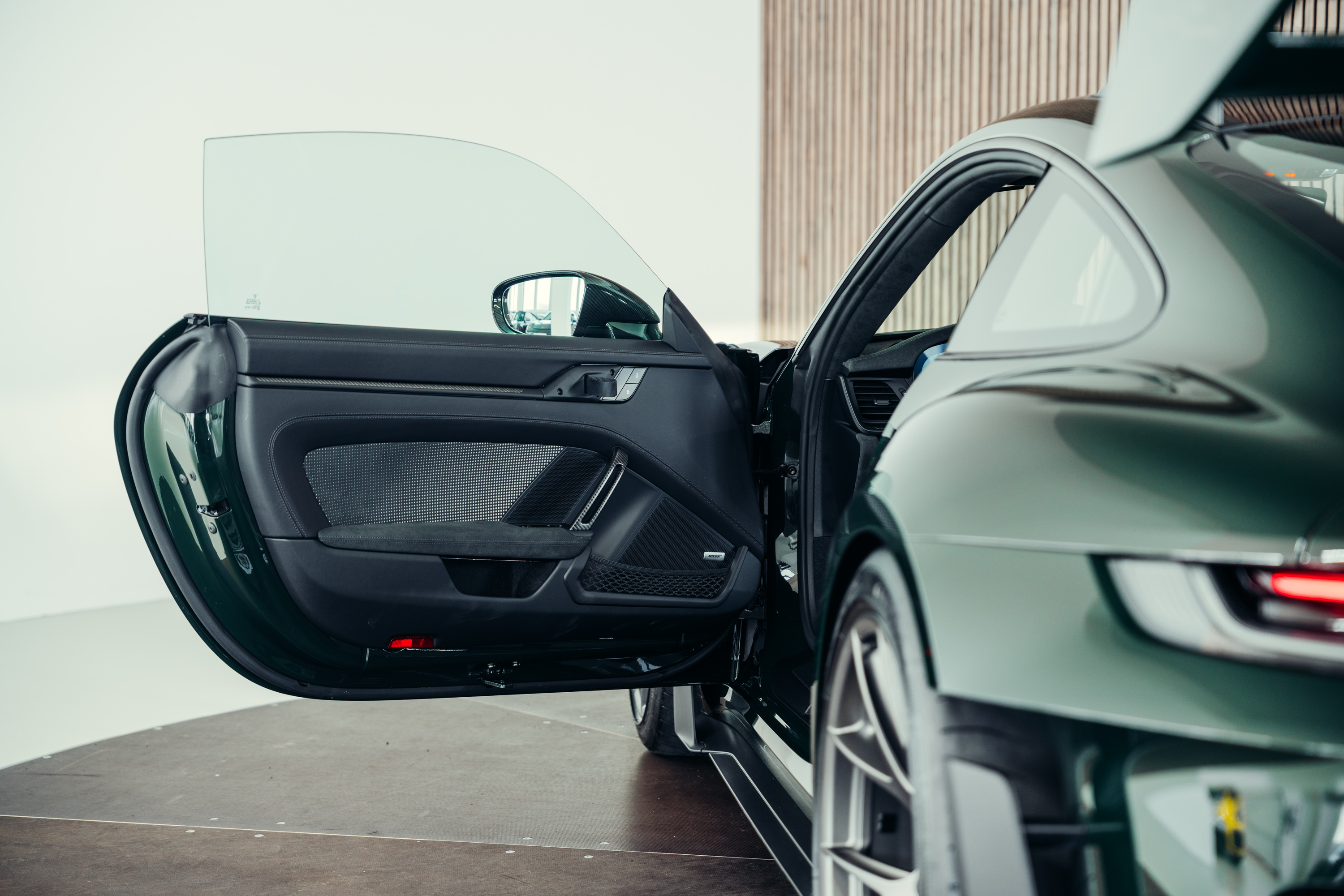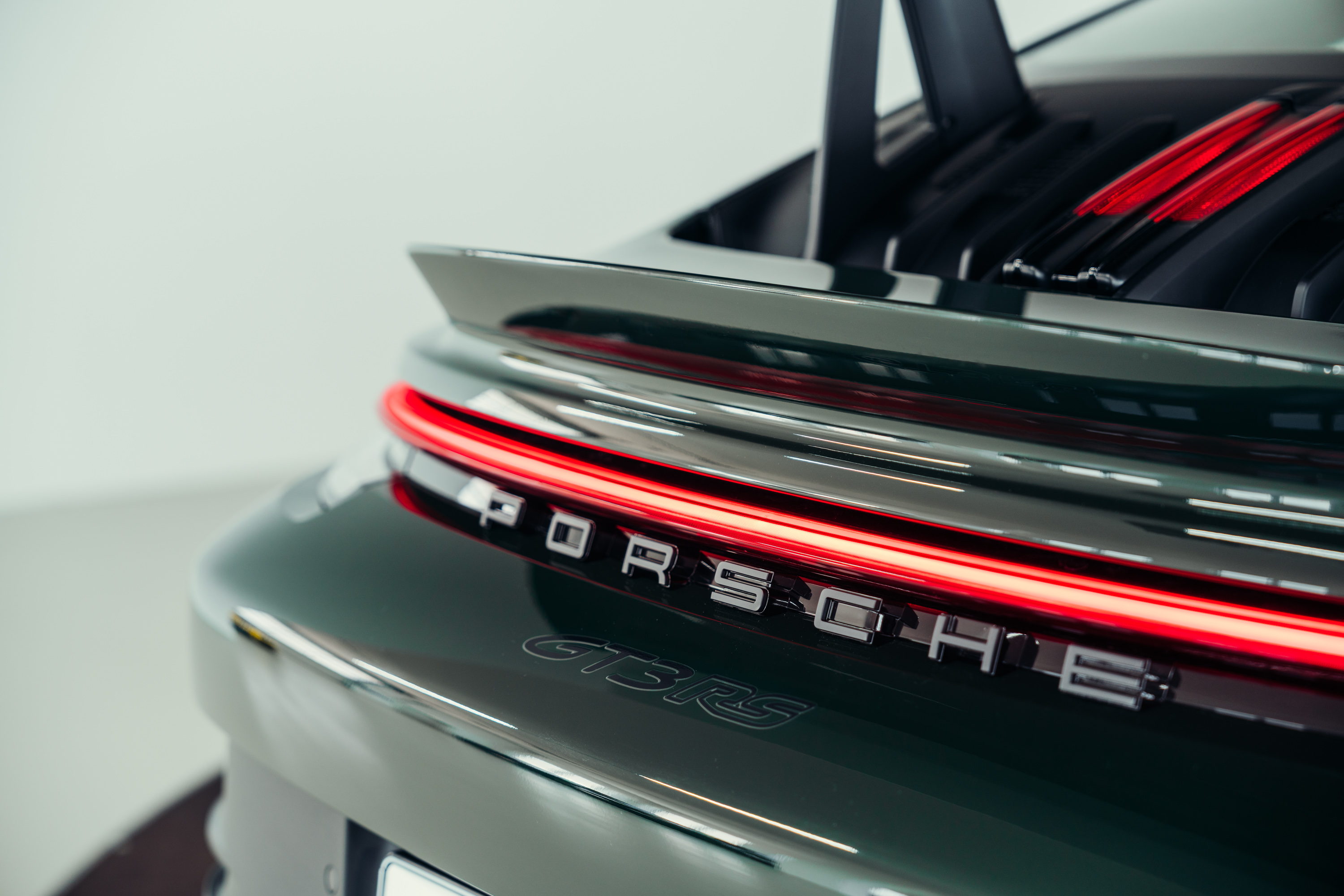 Der GT3 RS überzeugt nicht nur durch seine beeindruckende Fahrdynamik und Motorsporttechnik, sondern auch durch seine außergewöhnliche Farbkombination - „Brewster Green“ stammt aus dem exklusiven Porsche Paint-to-Sample-Programm und unterstreicht den individuellen Charakter dieses Fahrzeugs.
