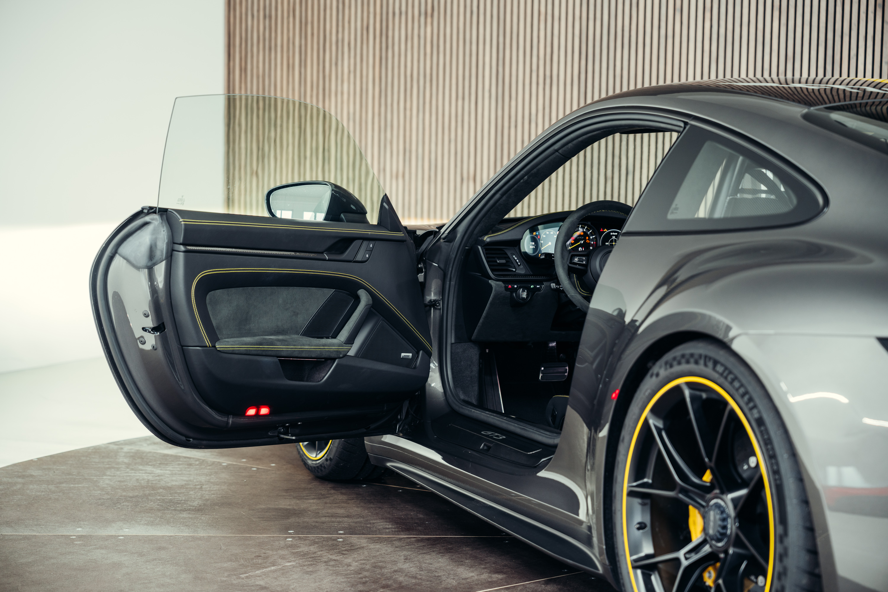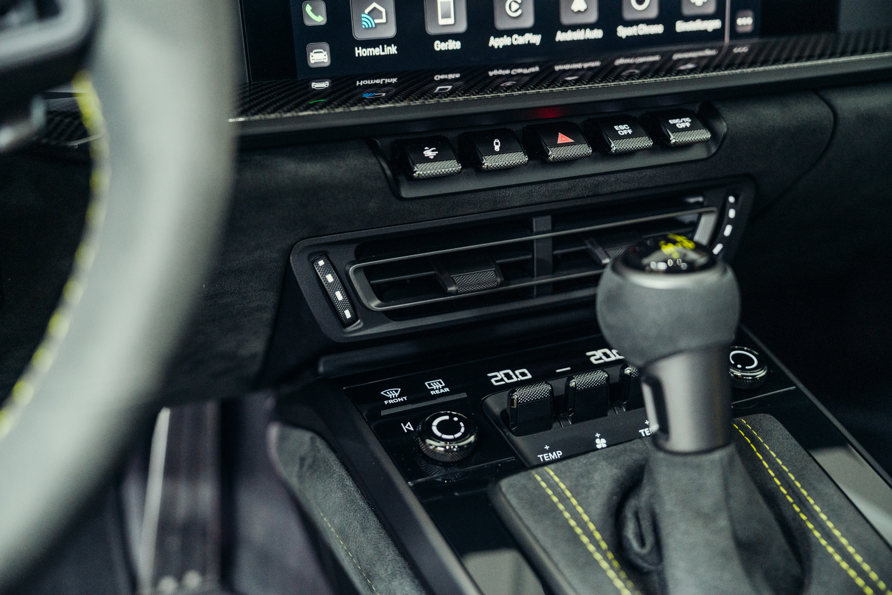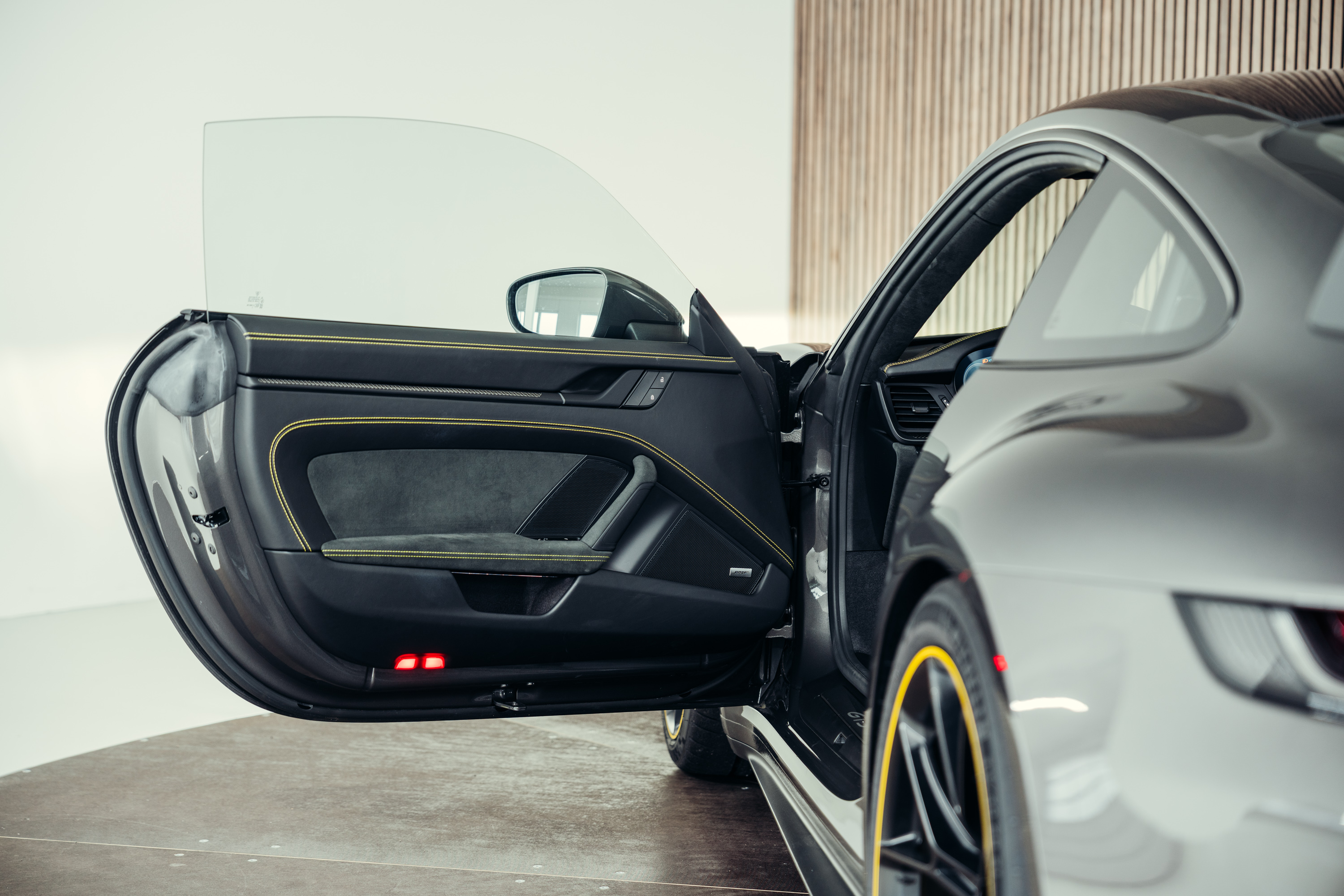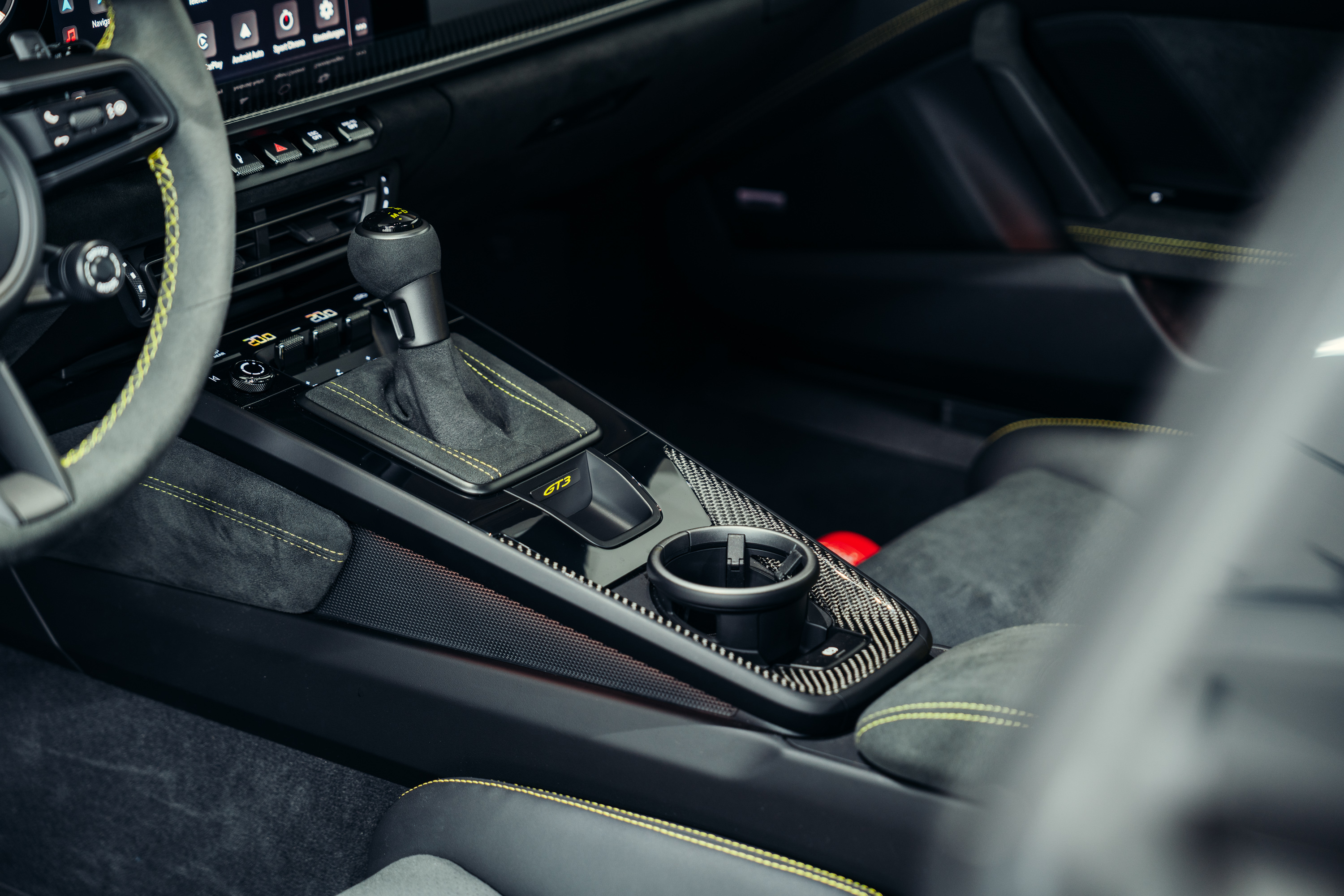 Es verfügt über eine umfangreiche und hochwertige Sonderausstattung, darunter Porsche Ceramic Composite Brake (PCCB), Frontlift-System sowie zahlreiche Carbon-Details im Interieur, die das sportliche Design noch stärker unterstreichen und den exklusiven Charakter dieses GT3 betonen.