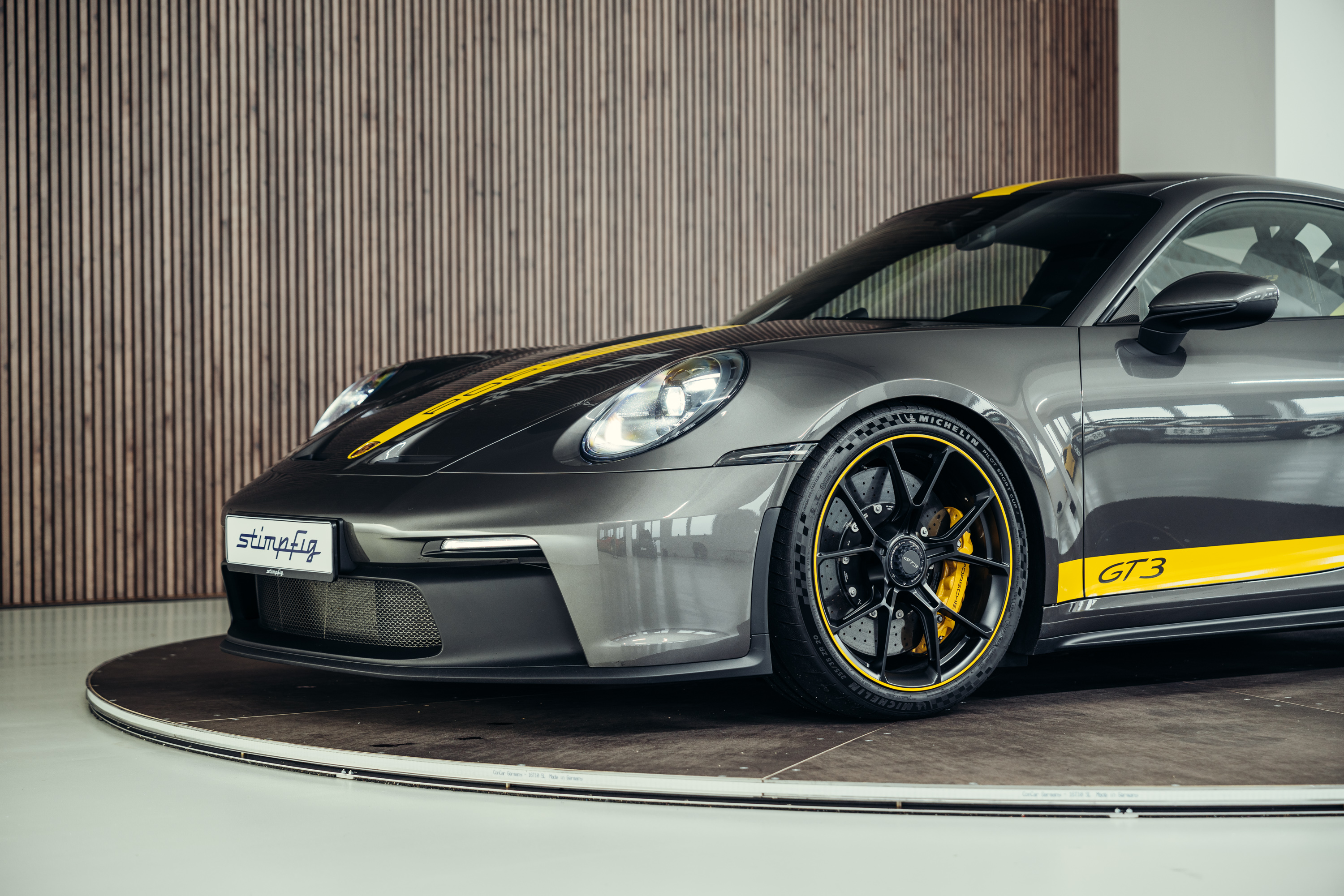 Zum Verkauf steht ein sehr gepflegter Porsche 992 GT3 in der zeitlosen Farbe "N0 achatgraumetallic", die diesem Meisterwerk einen besonders sportlichen und zugleich edlen Charakter verleiht.