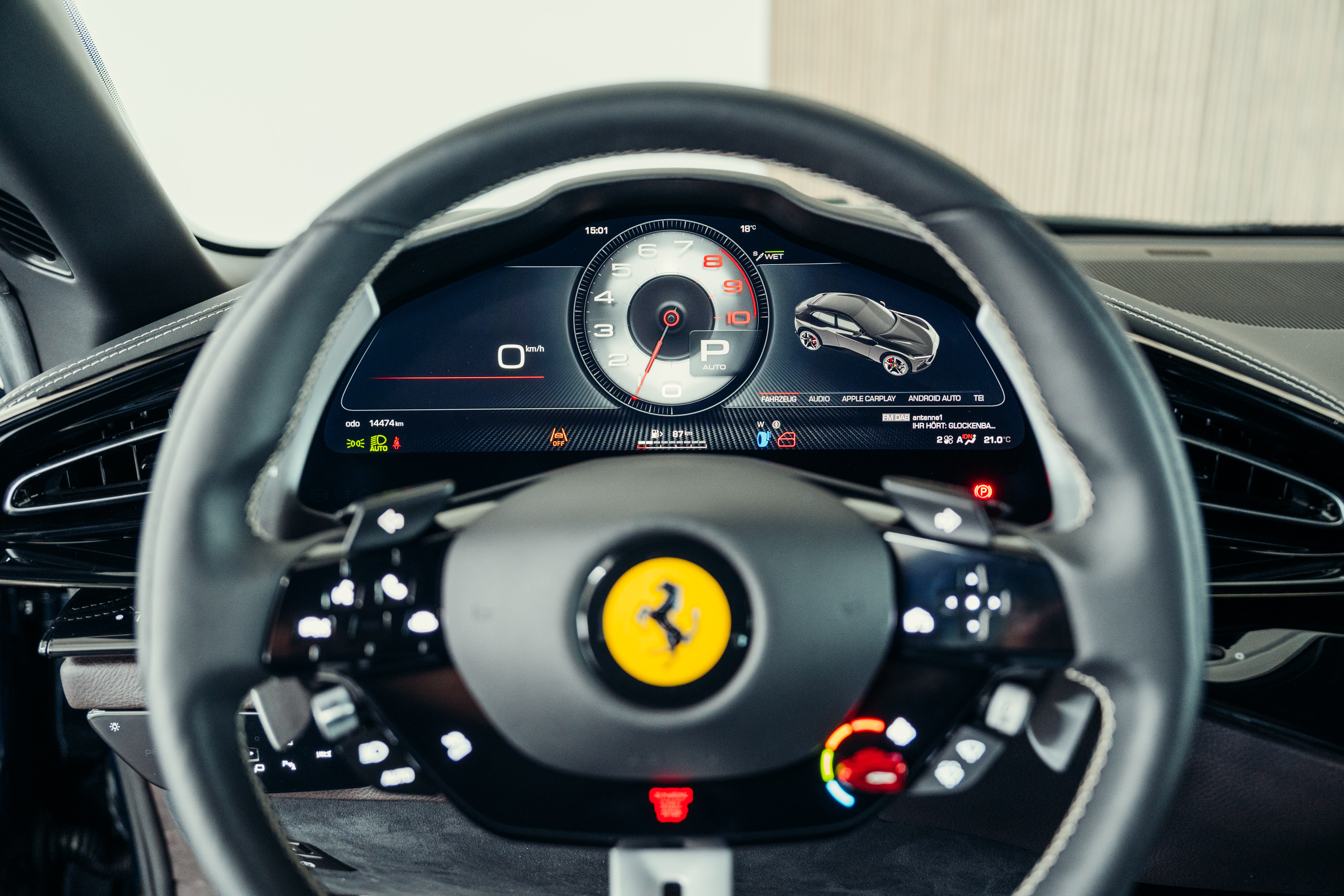 Der Purosangue verfügt über eine sehr umfangreiche und sportlich orientierte Ausstattung, darunter Carbon-Umfänge, ein Liftsystem, eine Rückfahrkamera sowie zahlreiche weitere Komfort- und Assistenzsysteme, die das Fahrerlebnis sowohl dynamisch als auch alltagstauglich gestalten.
