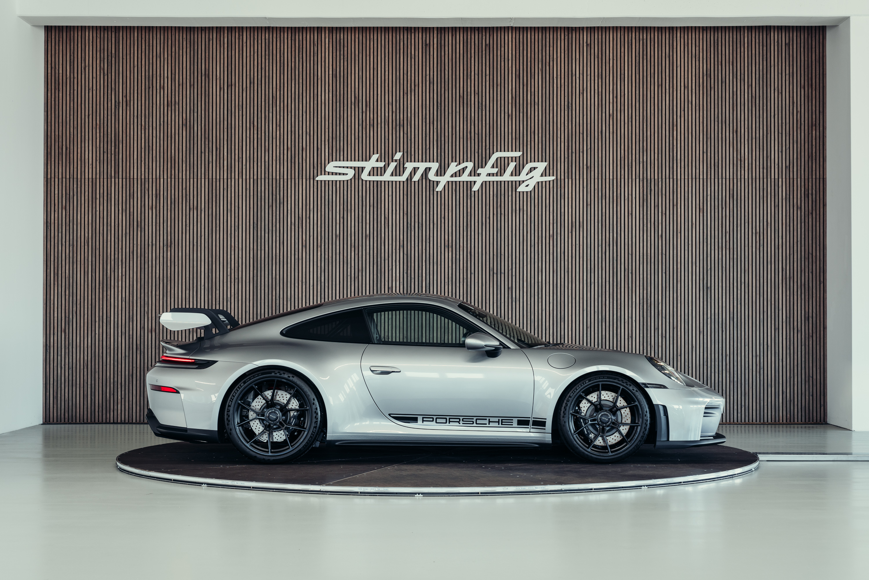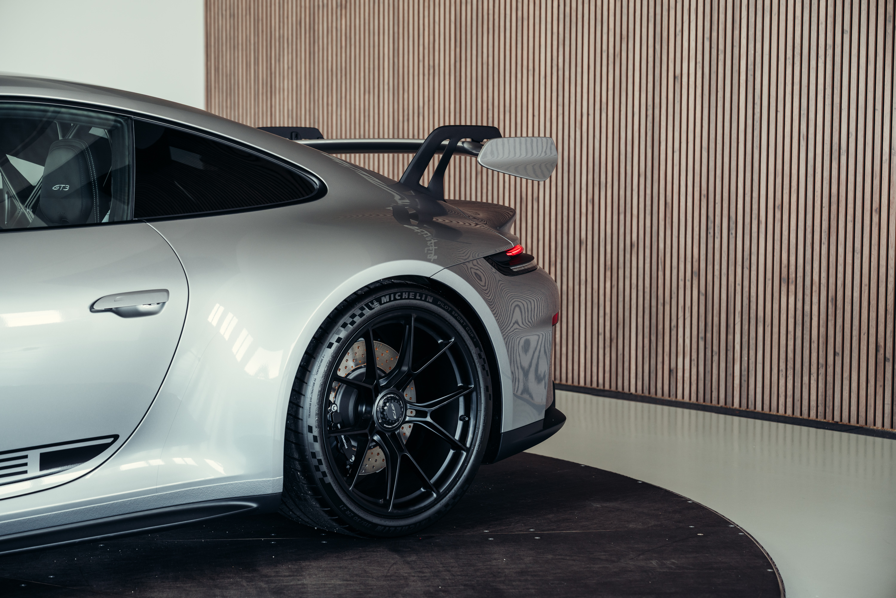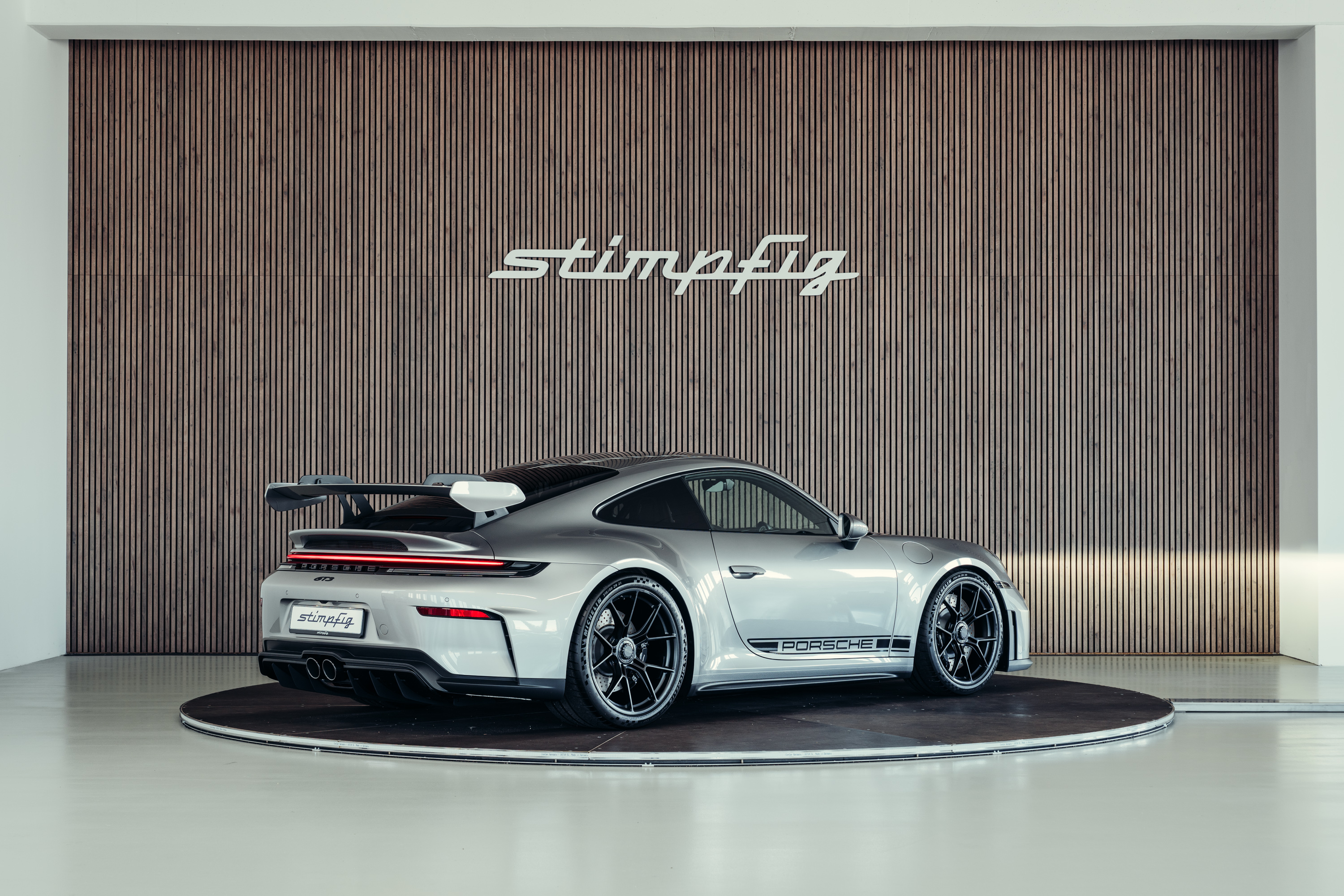 Die Kombination aus GT-Silbermetallic, der klaren Linienführung des 992.2 und der ikonischen GT3-Details verleiht dem Fahrzeug eine zeitlose, edle Erscheinung.