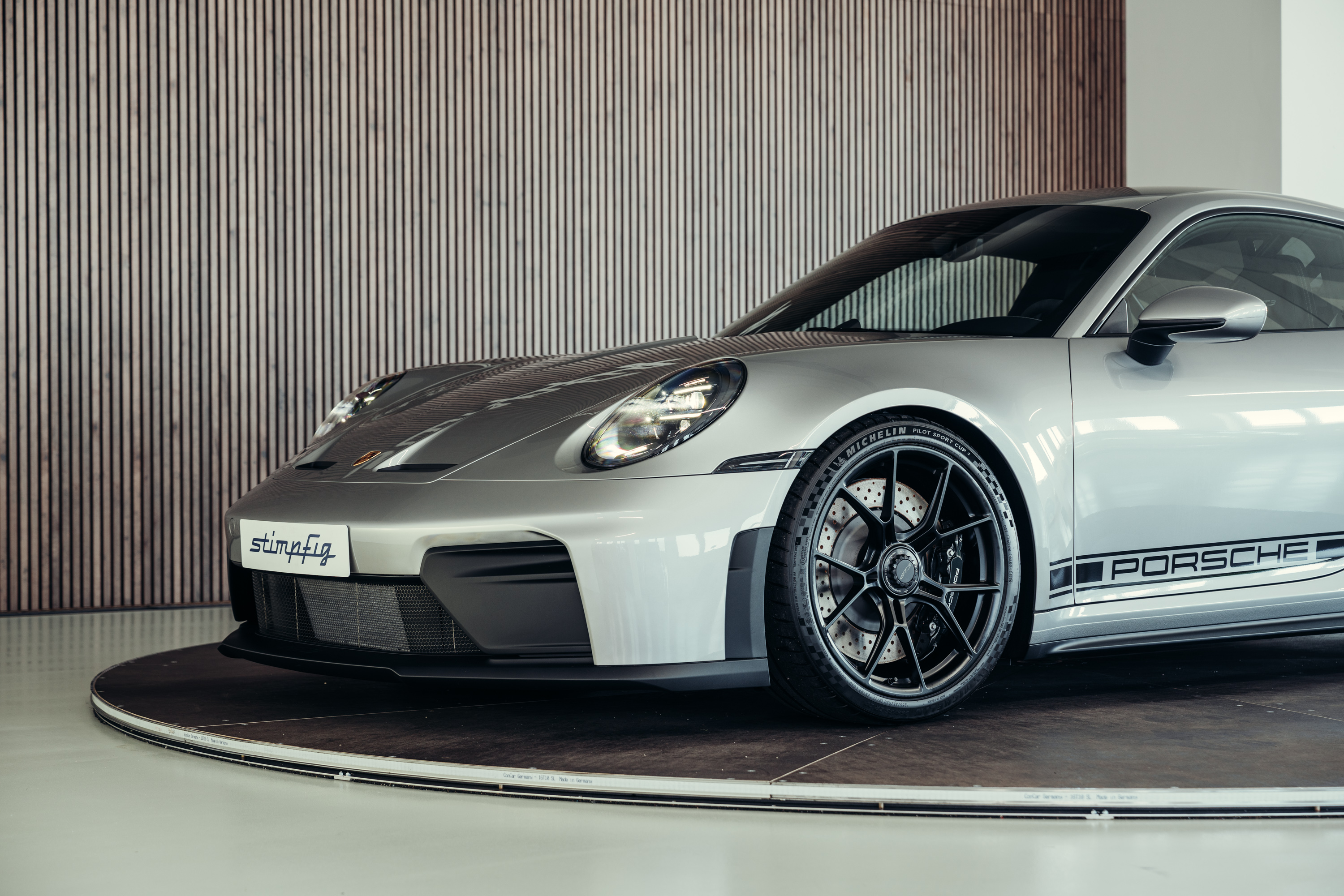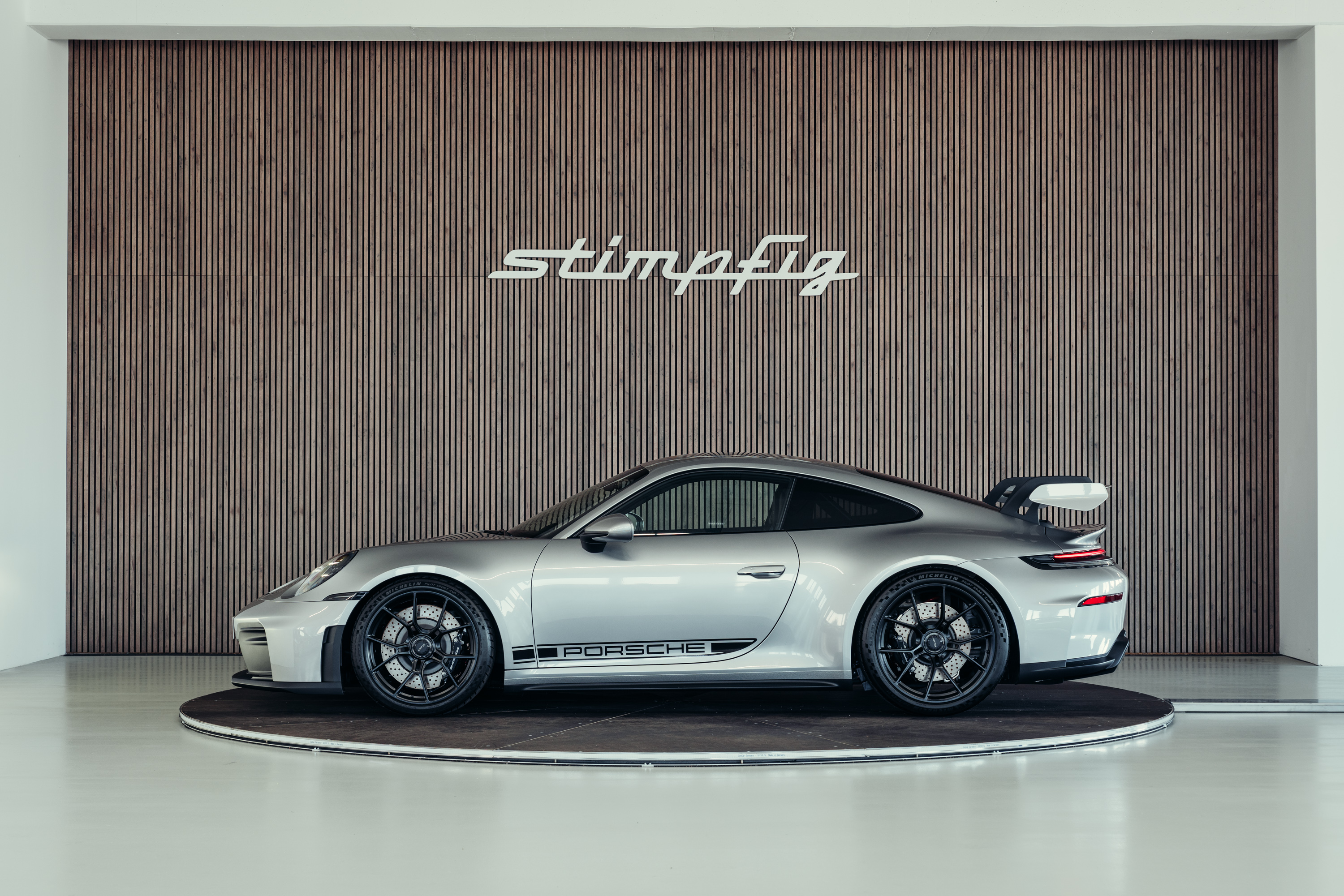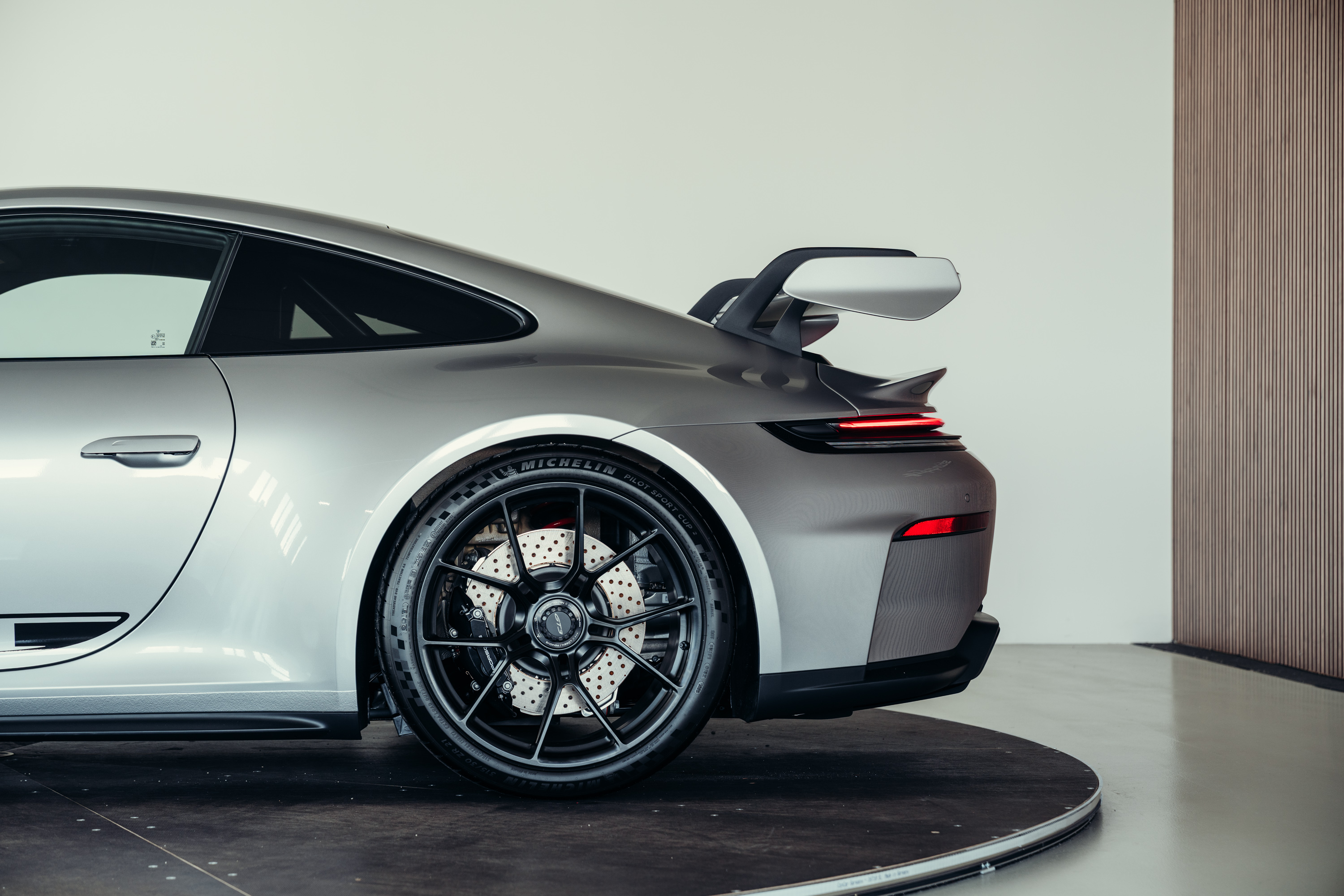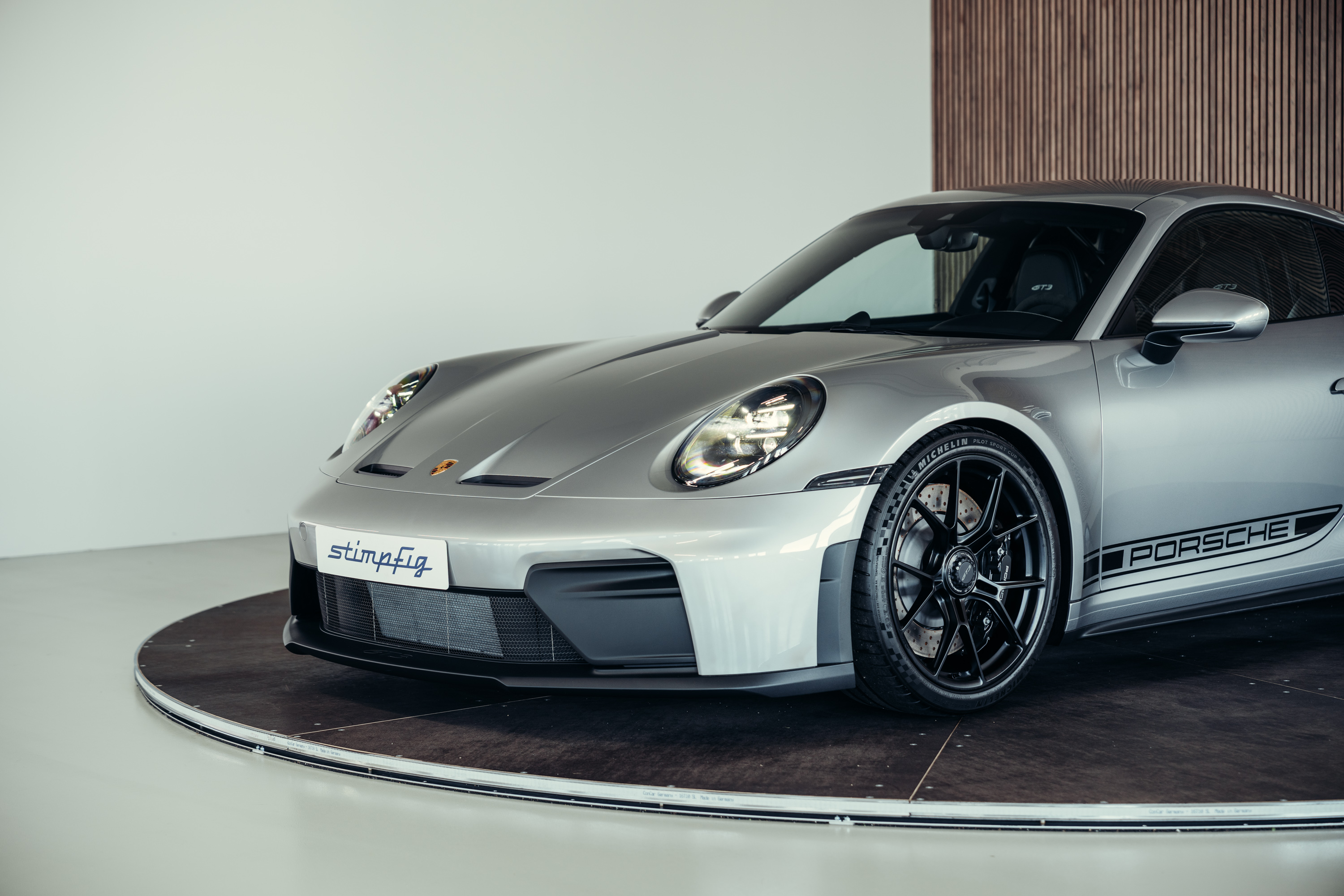 Die Kombination aus GT-Silbermetallic, der klaren Linienführung des 992.2 und der ikonischen GT3-Details verleiht dem Fahrzeug eine zeitlose, edle Erscheinung.