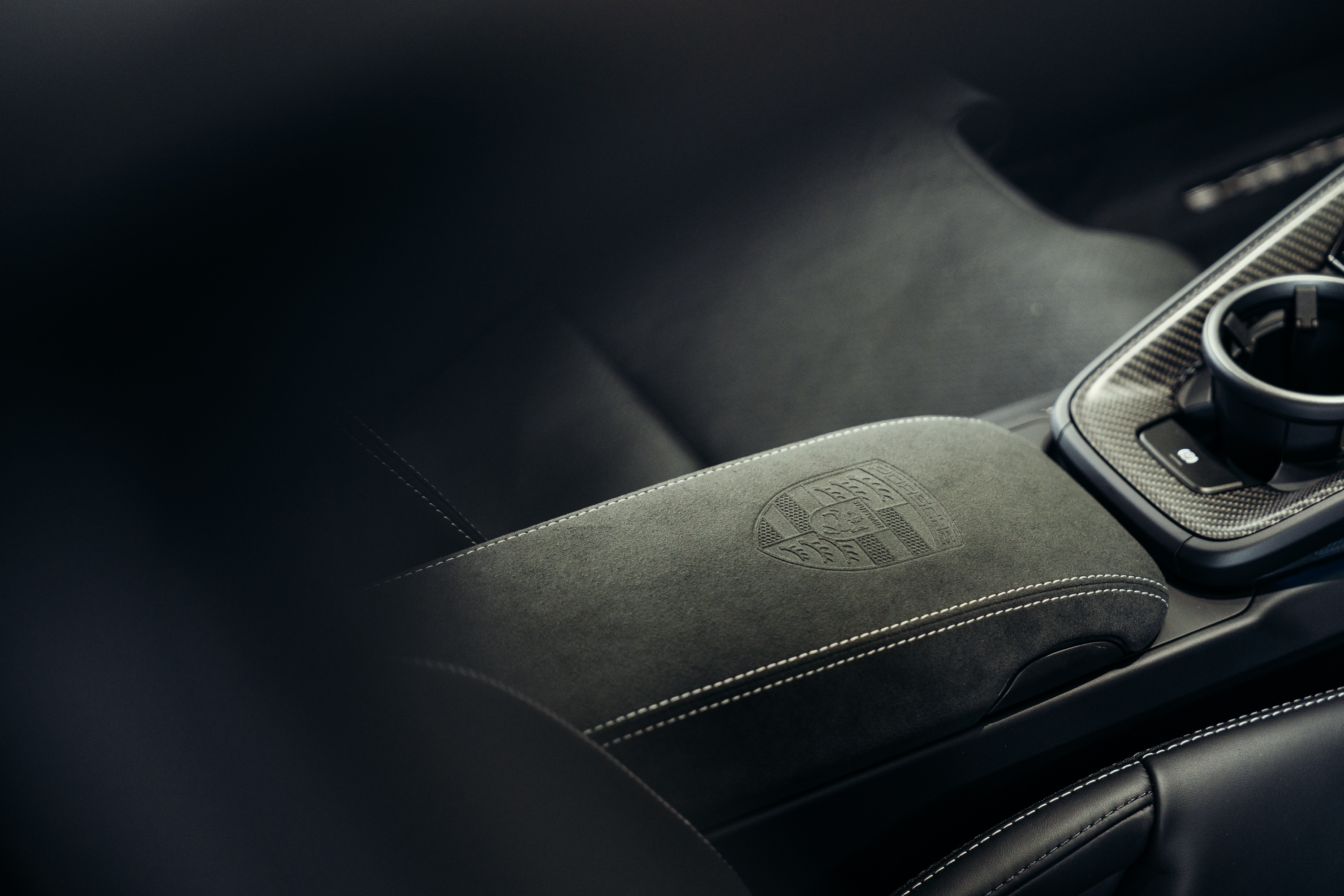 6E5 Porsche Wappen auf Deckel Ablagefach Race-Tex