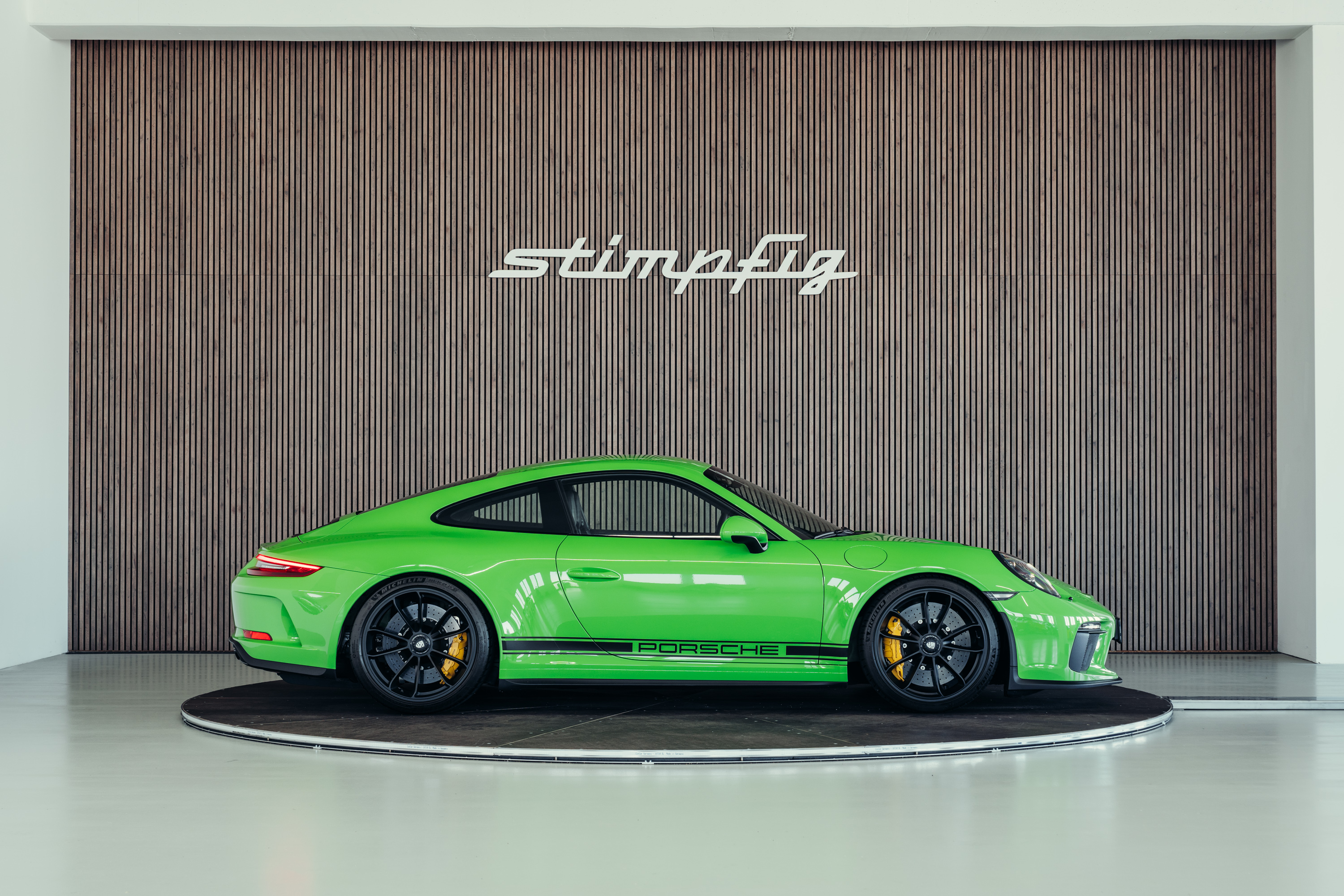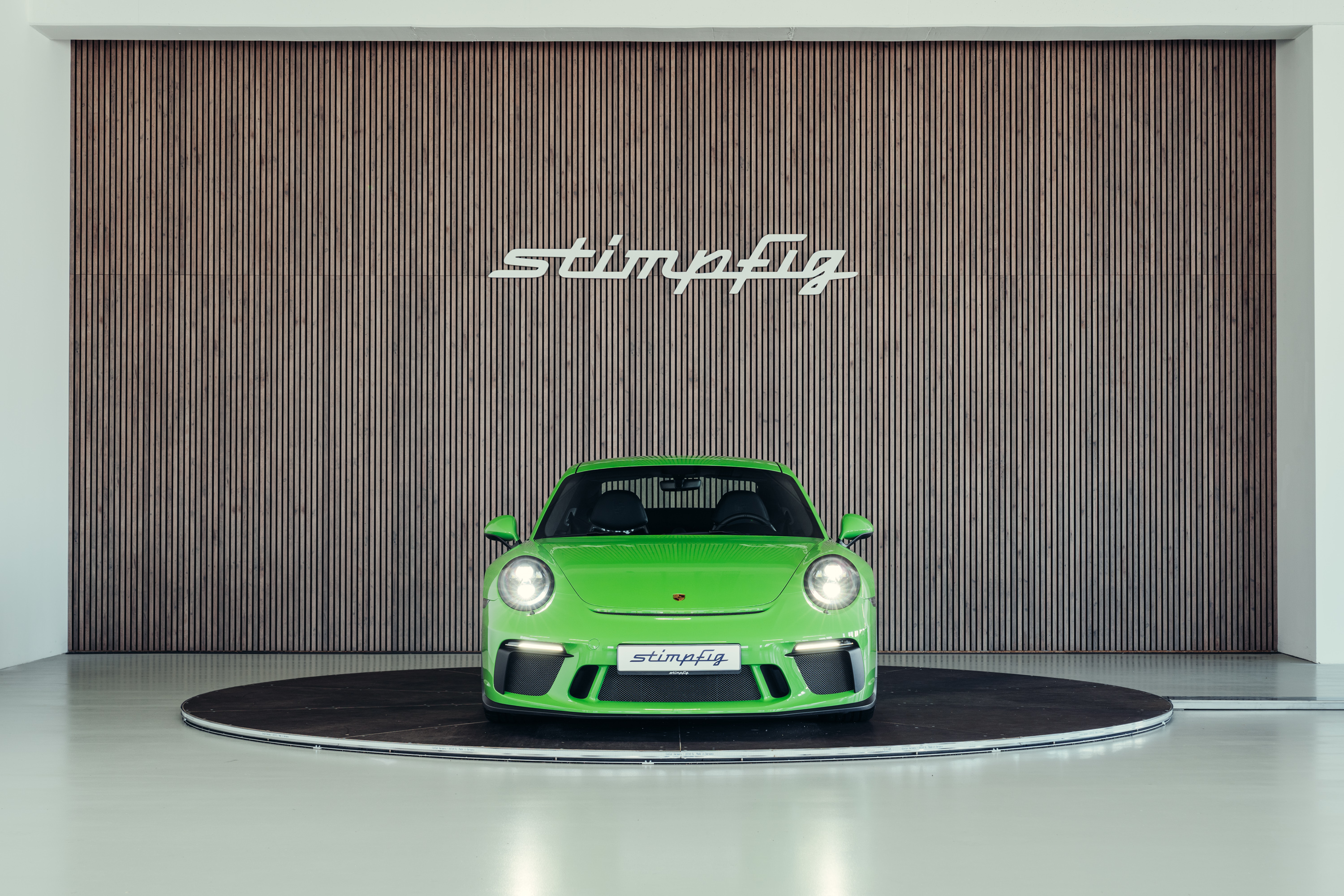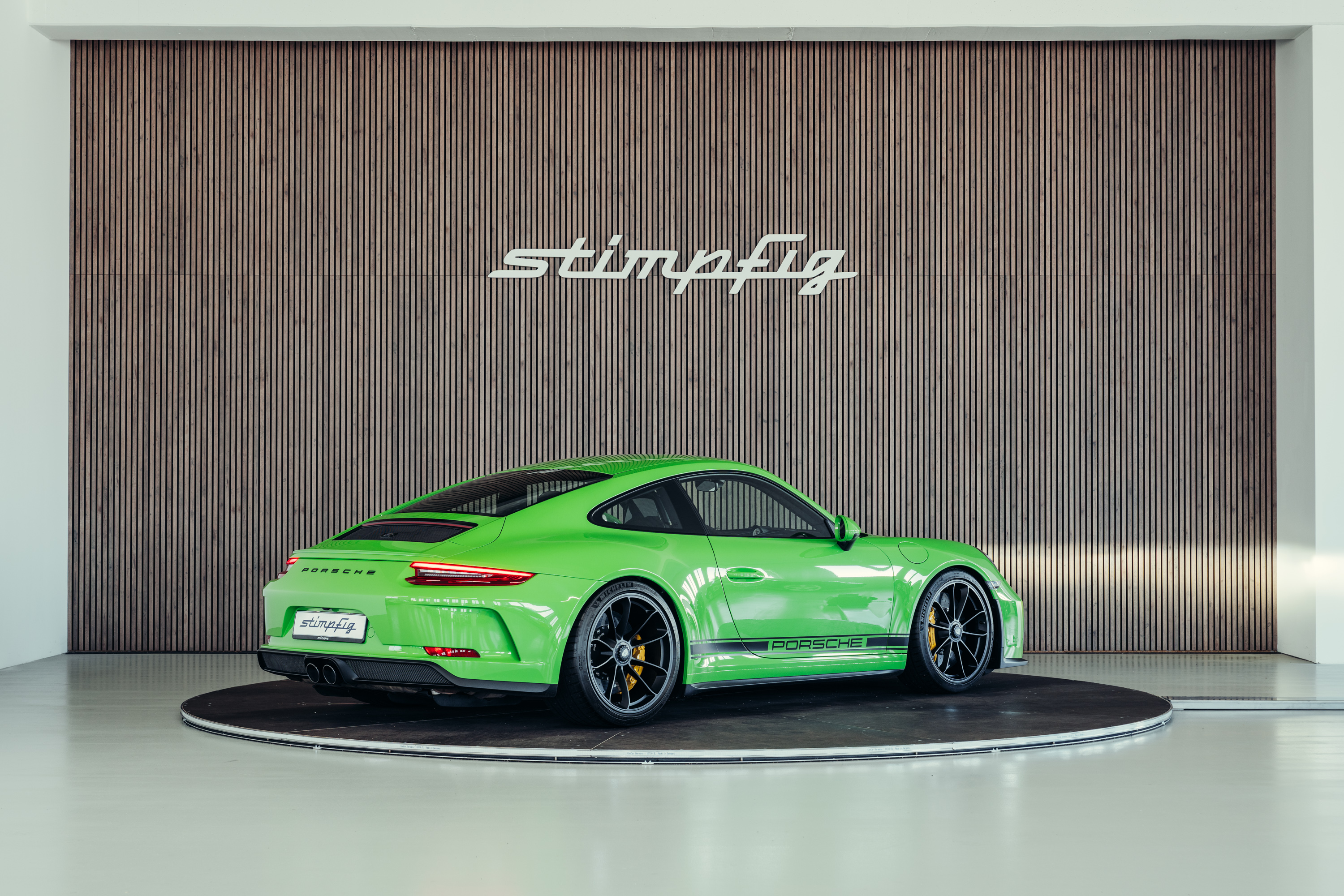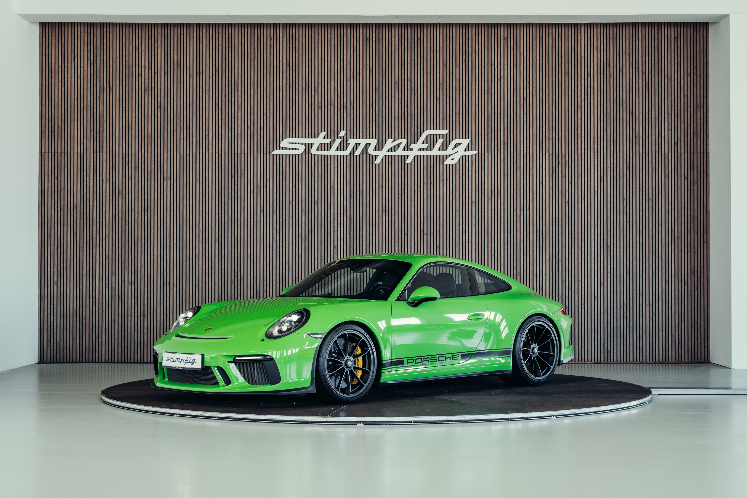 Zum Verkauf steht ein Porsche 991.2 GT3 Touring in der außergewöhnlichen Sonderfarbe Gelbgrün Uni (PTS) - ein Ton, der sofort auffällt und Emotionen weckt. Dieses lebhafte Grün symbolisiert Energie, Lebensfreude und Individualität, während seine kräftige Ausstrahlung einen sportlich-markanten Charakter vermittelt.
