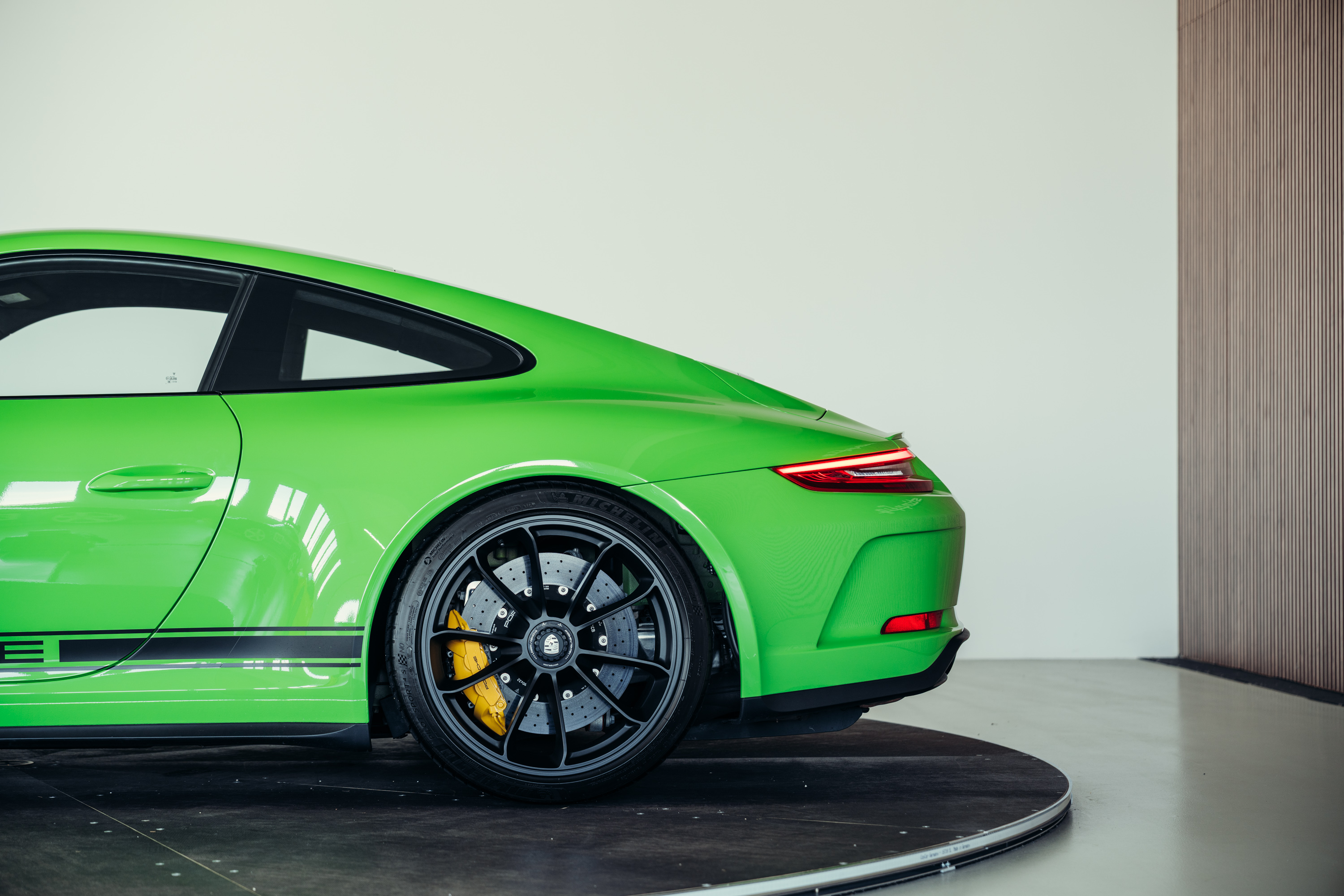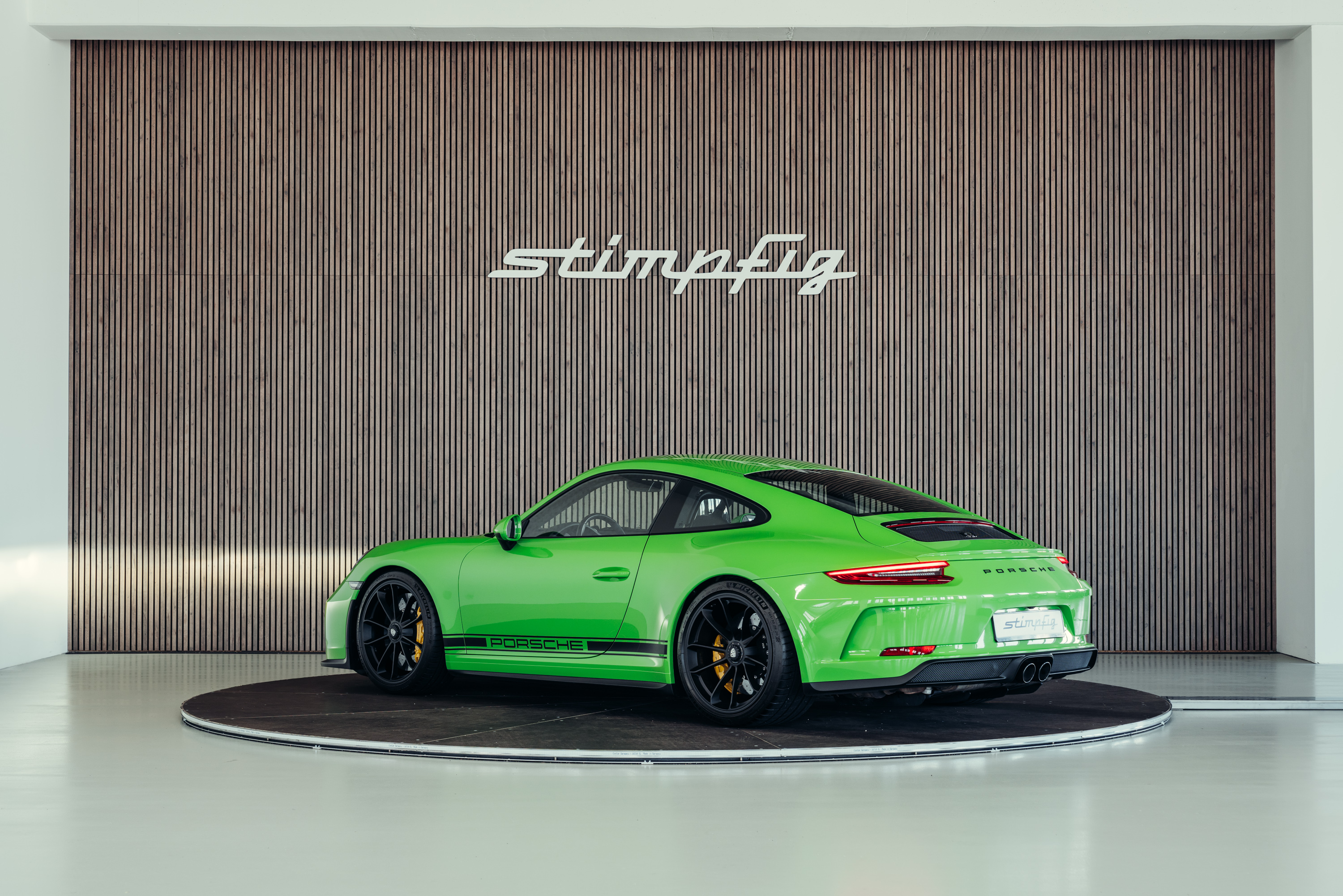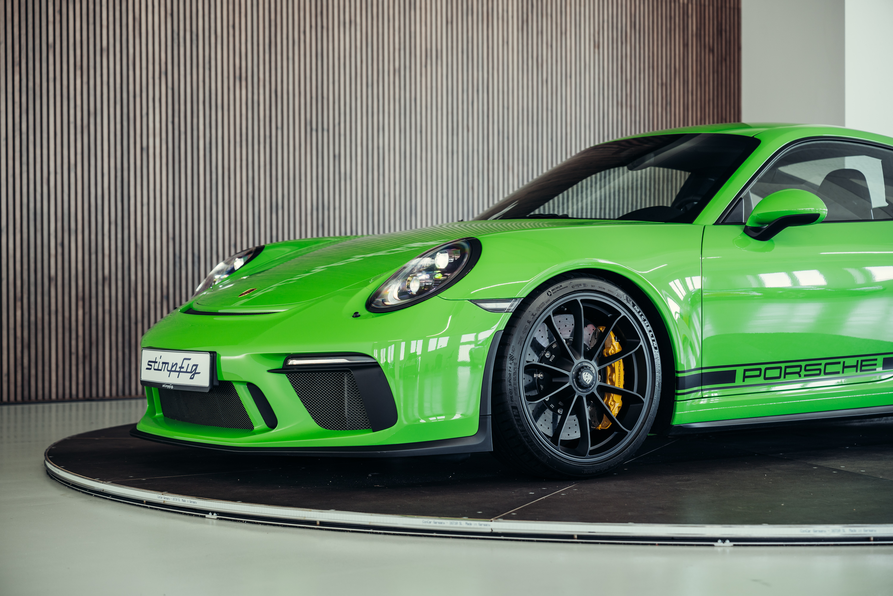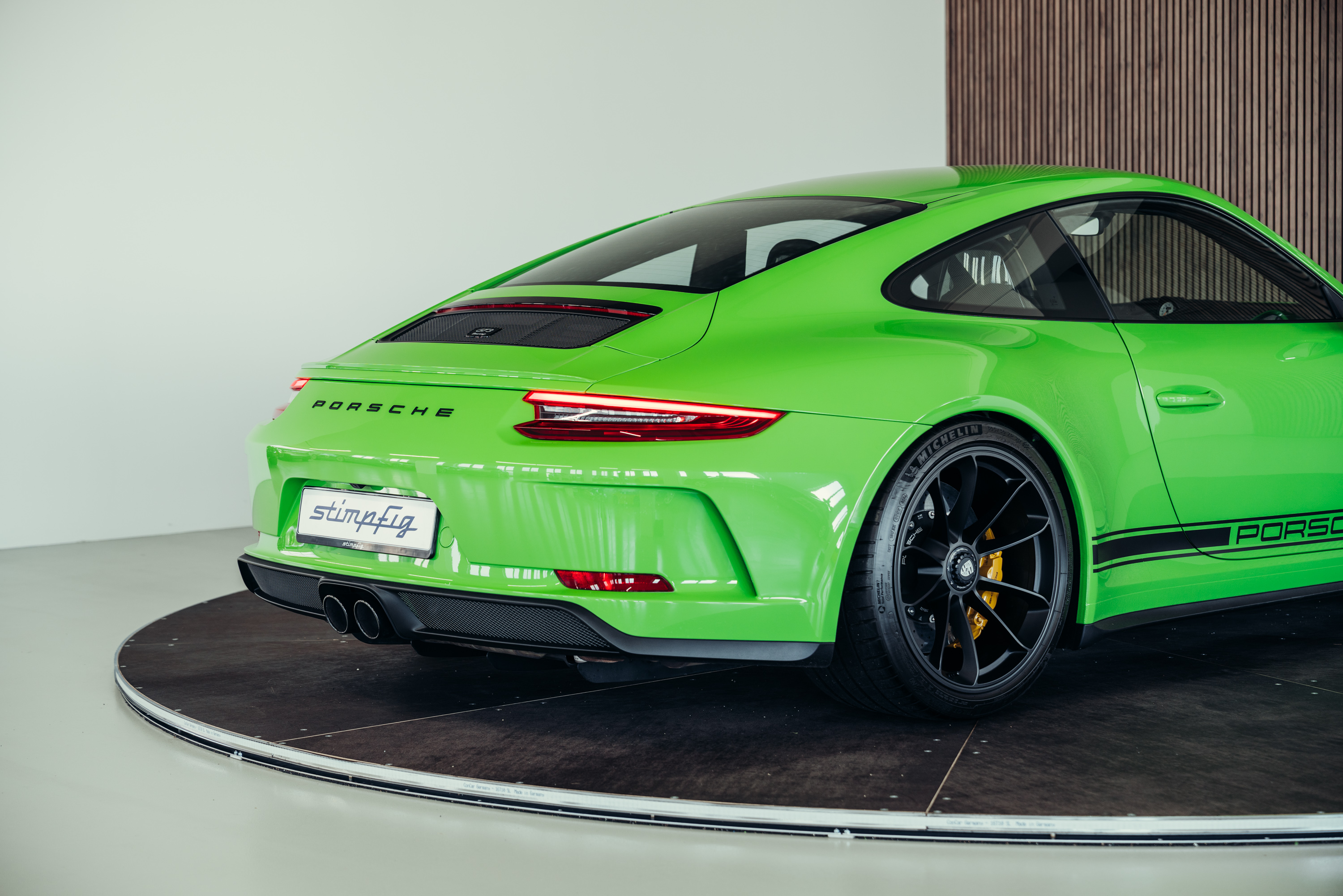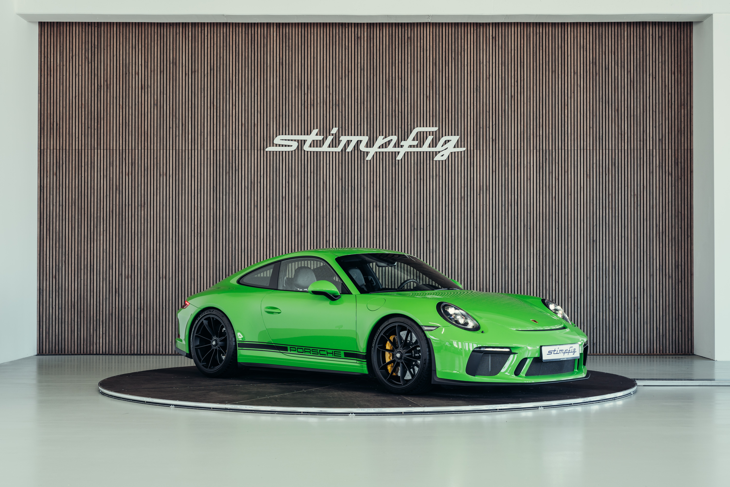 Zum Verkauf steht ein Porsche 991.2 GT3 Touring in der außergewöhnlichen Sonderfarbe Gelbgrün Uni (PTS) - ein Ton, der sofort auffällt und Emotionen weckt. Dieses lebhafte Grün symbolisiert Energie, Lebensfreude und Individualität, während seine kräftige Ausstrahlung einen sportlich-markanten Charakter vermittelt.