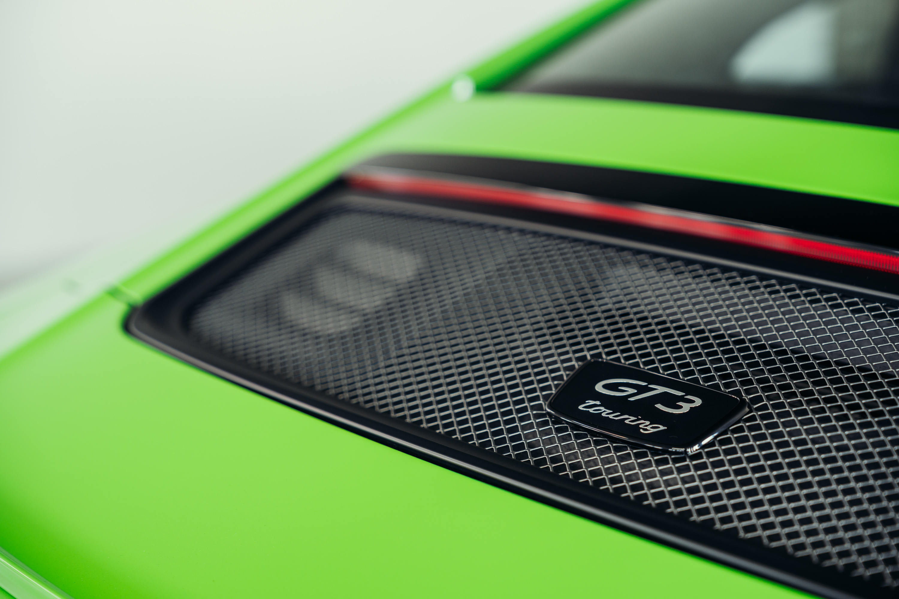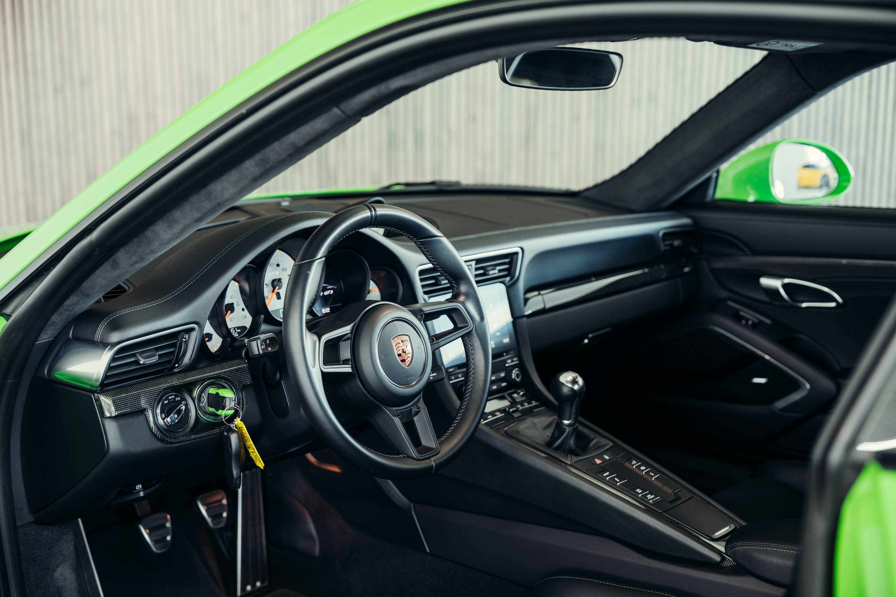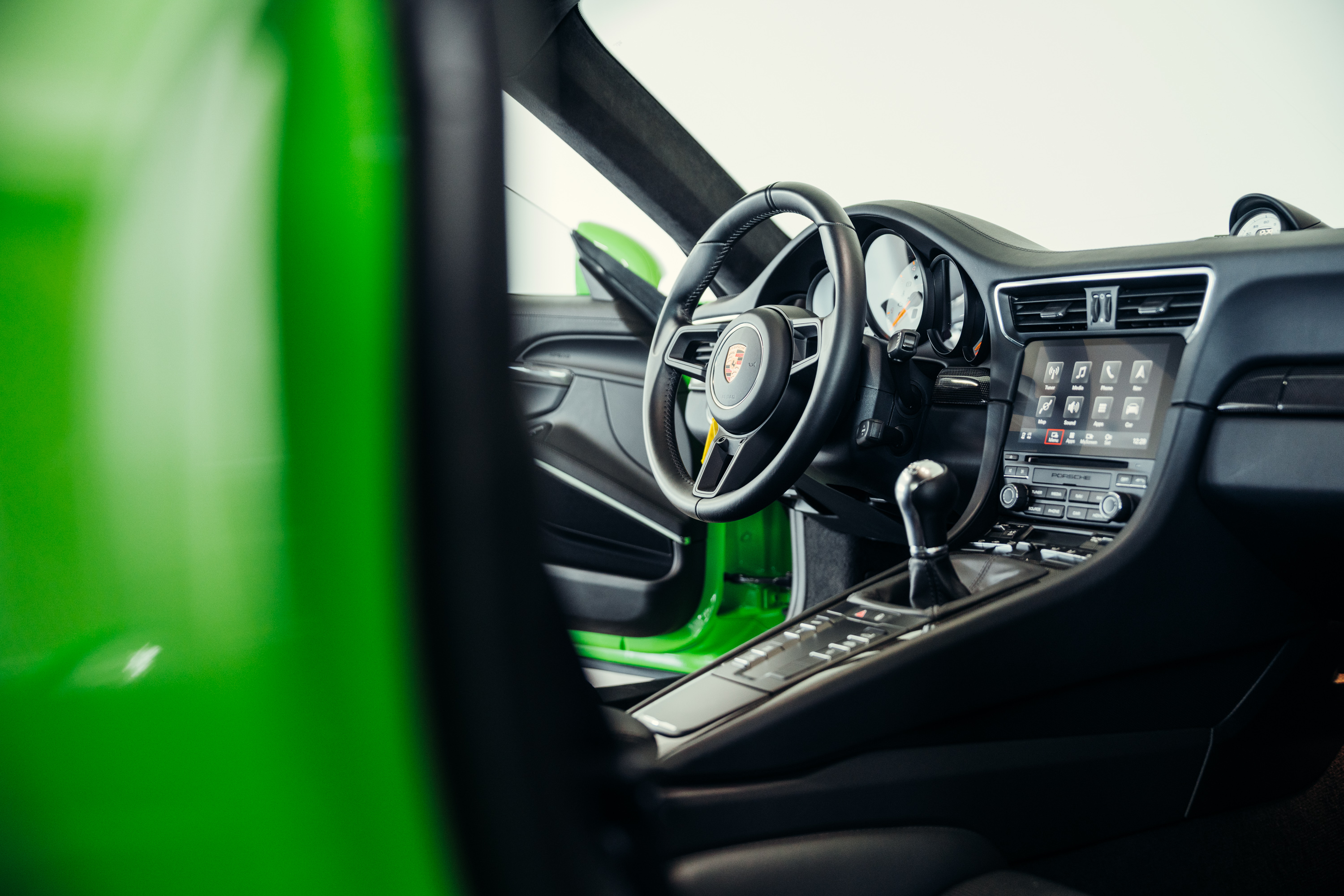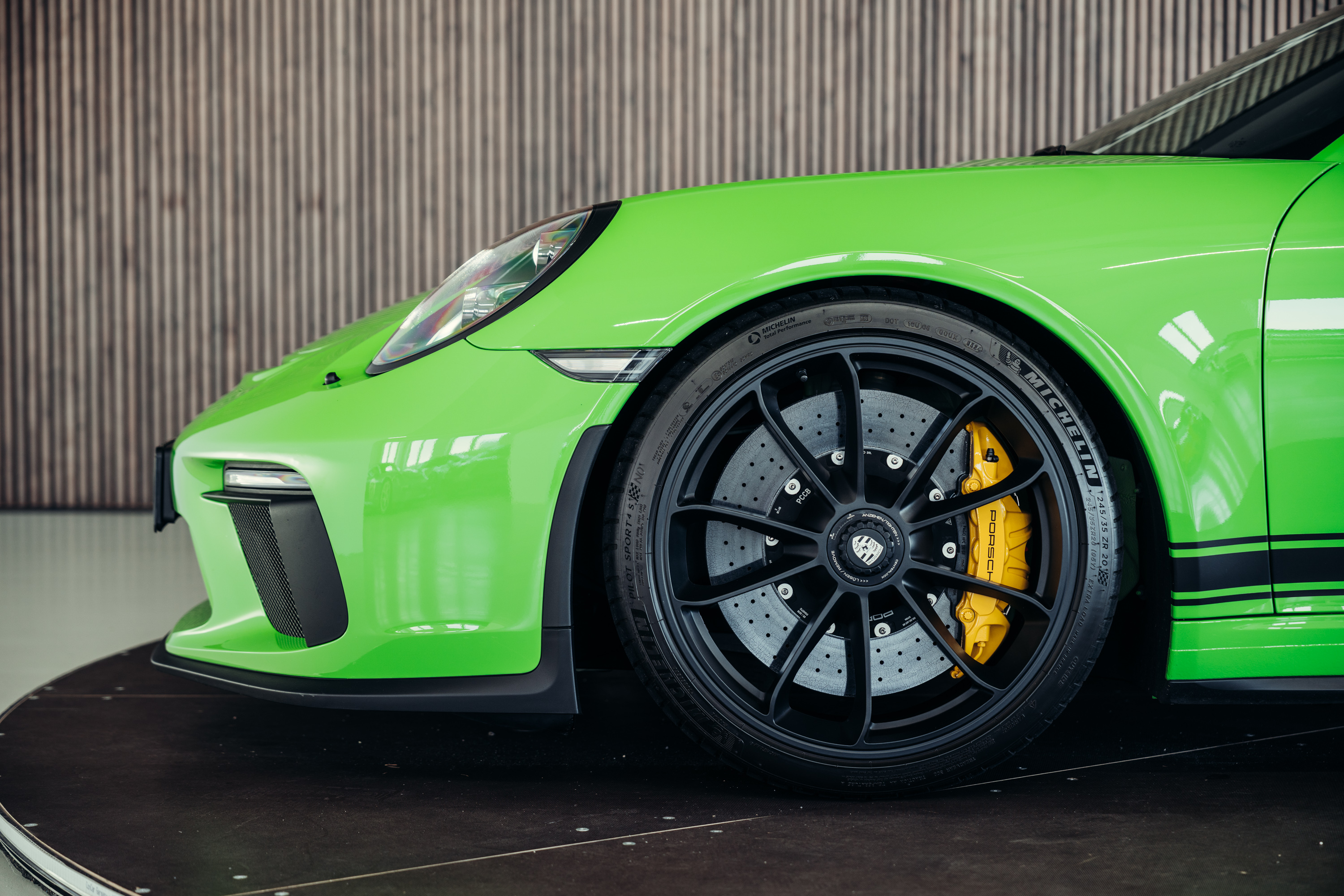 Zum Verkauf steht ein Porsche 991.2 GT3 Touring in der außergewöhnlichen Sonderfarbe Gelbgrün Uni (PTS) - ein Ton, der sofort auffällt und Emotionen weckt. Dieses lebhafte Grün symbolisiert Energie, Lebensfreude und Individualität, während seine kräftige Ausstrahlung einen sportlich-markanten Charakter vermittelt.