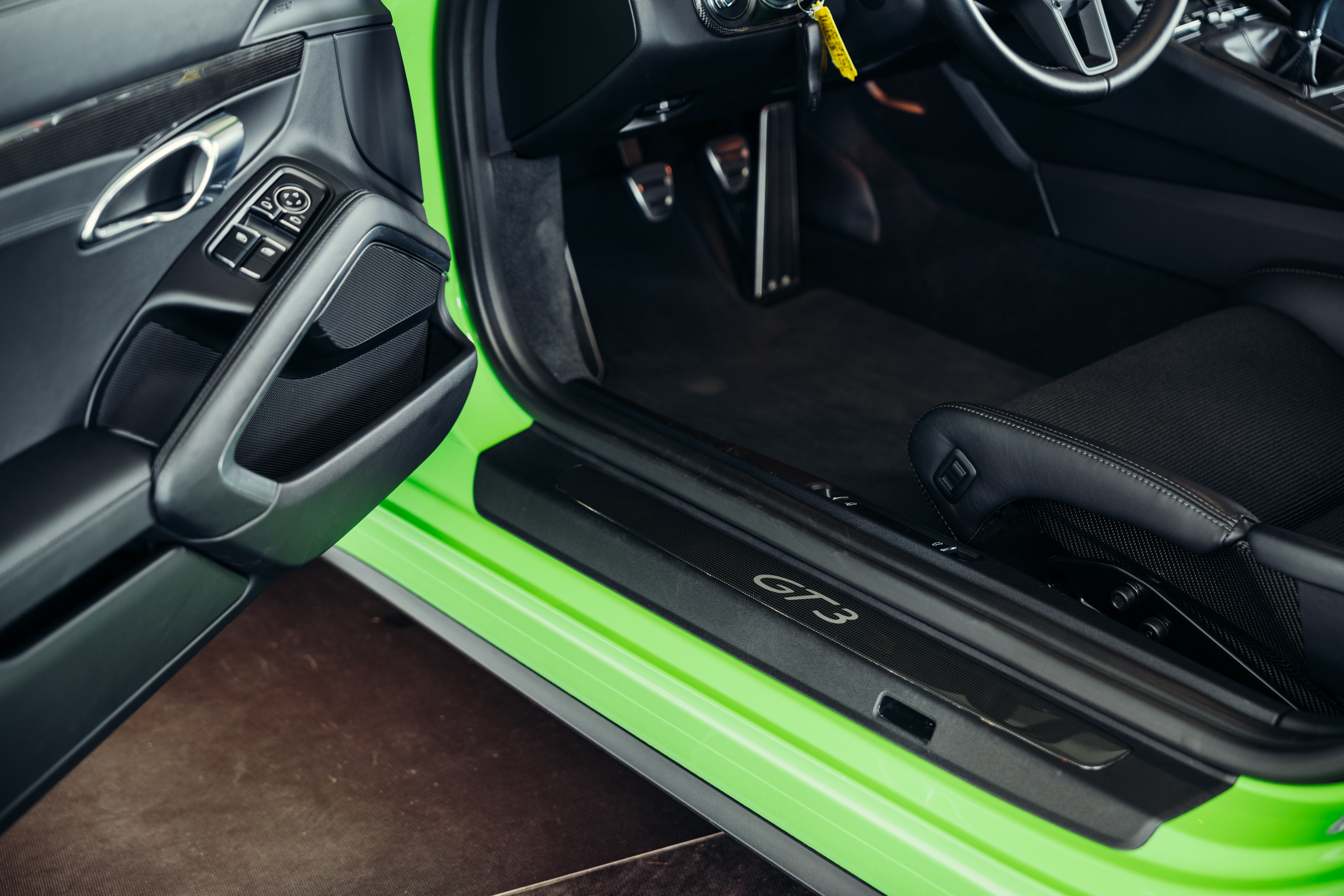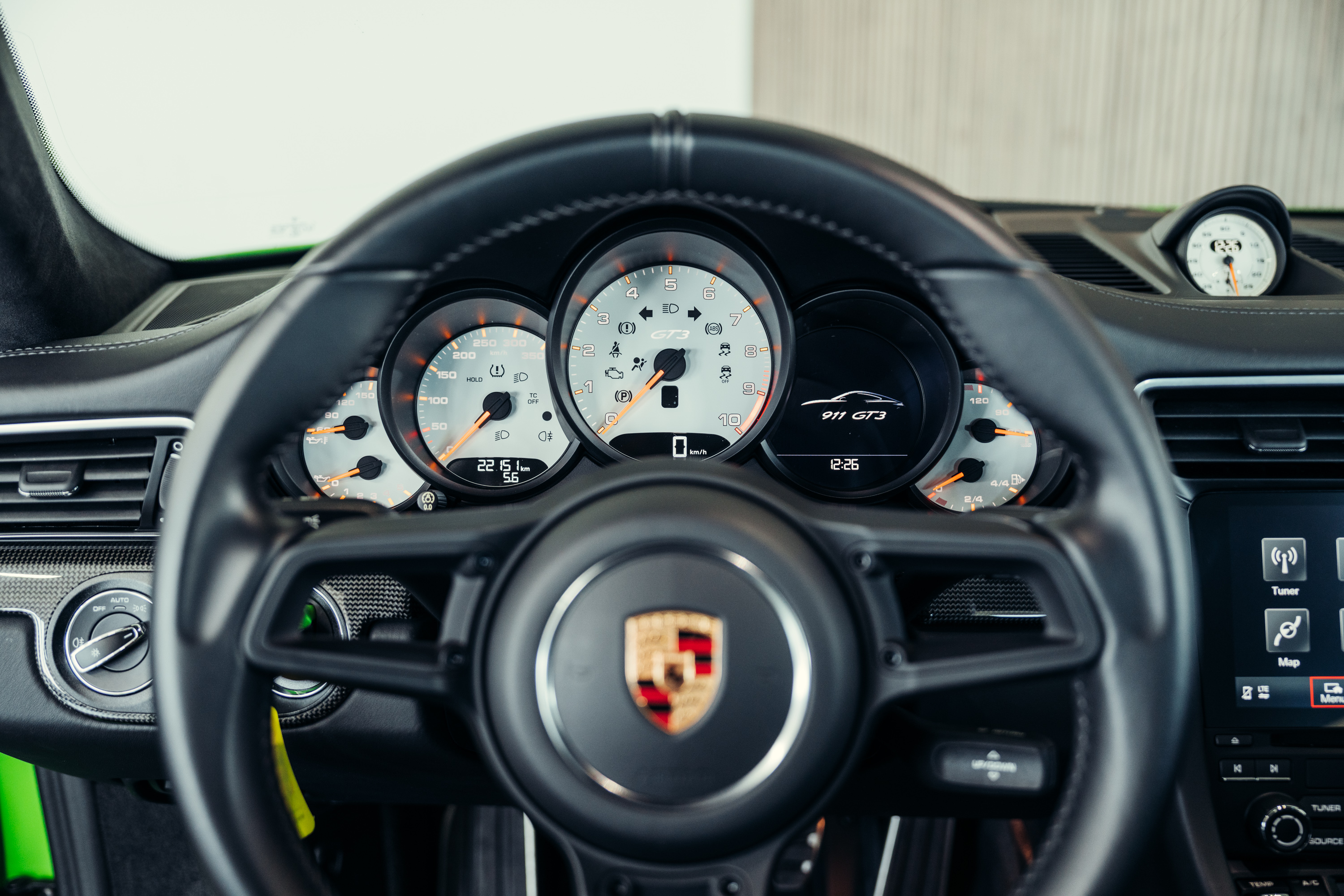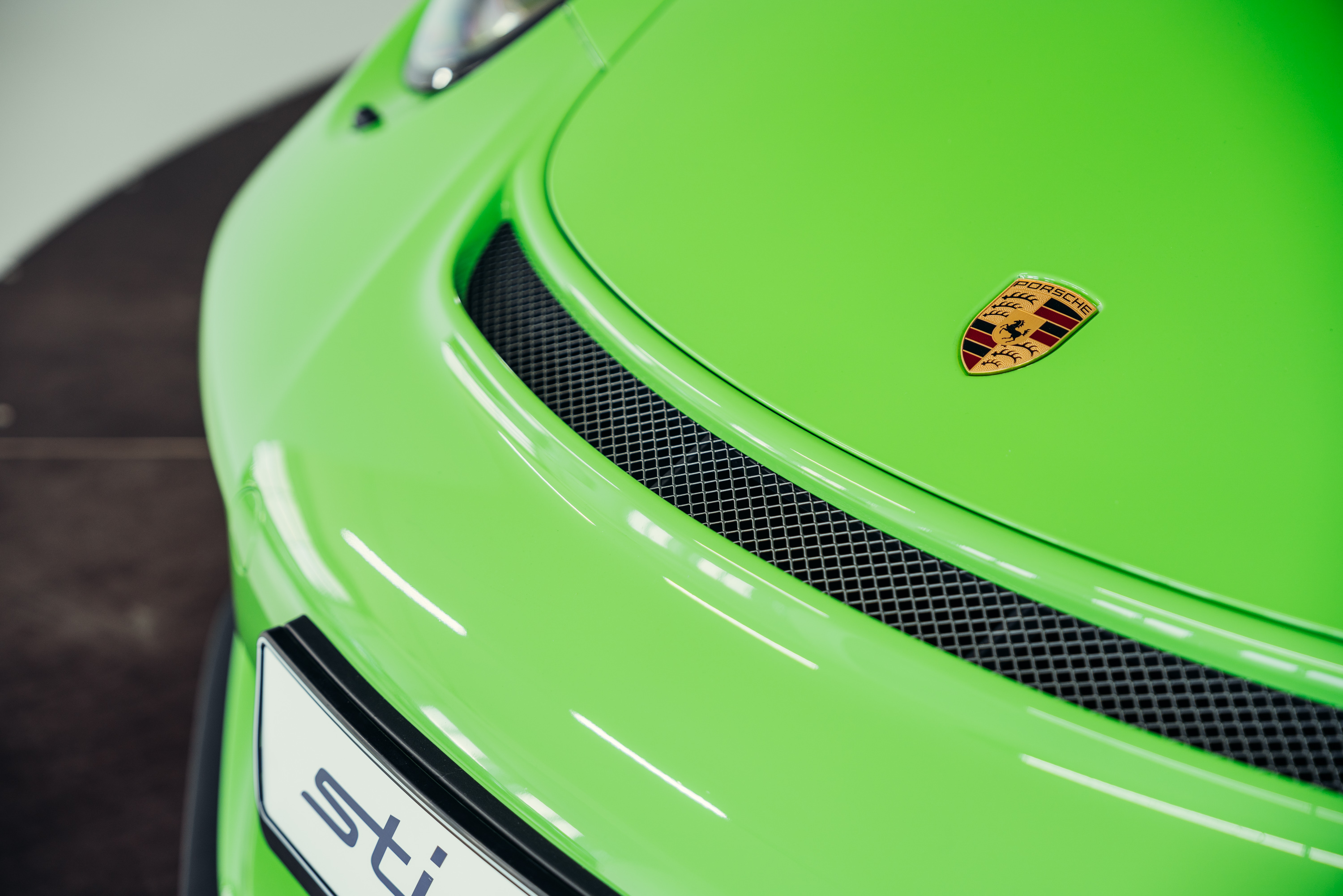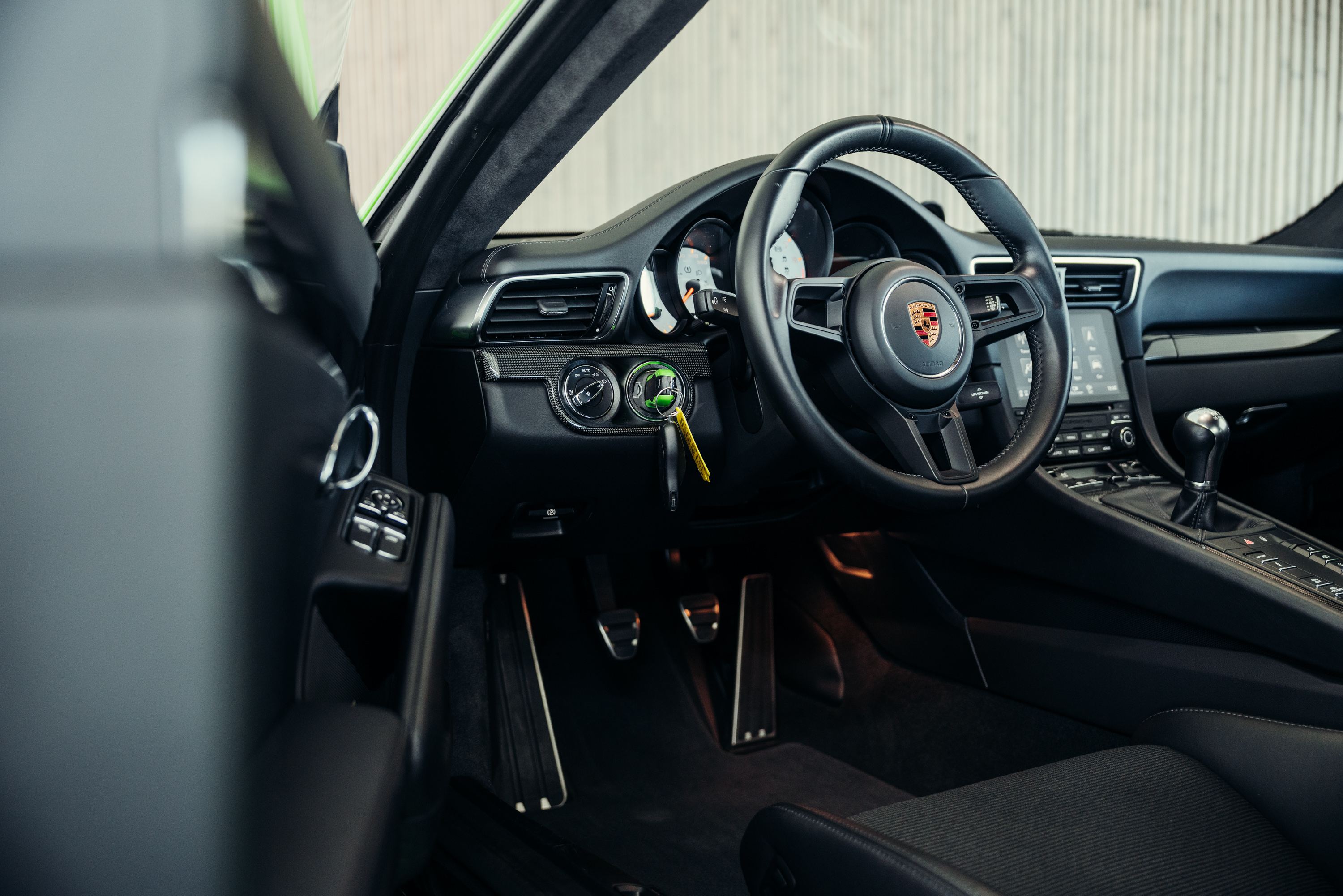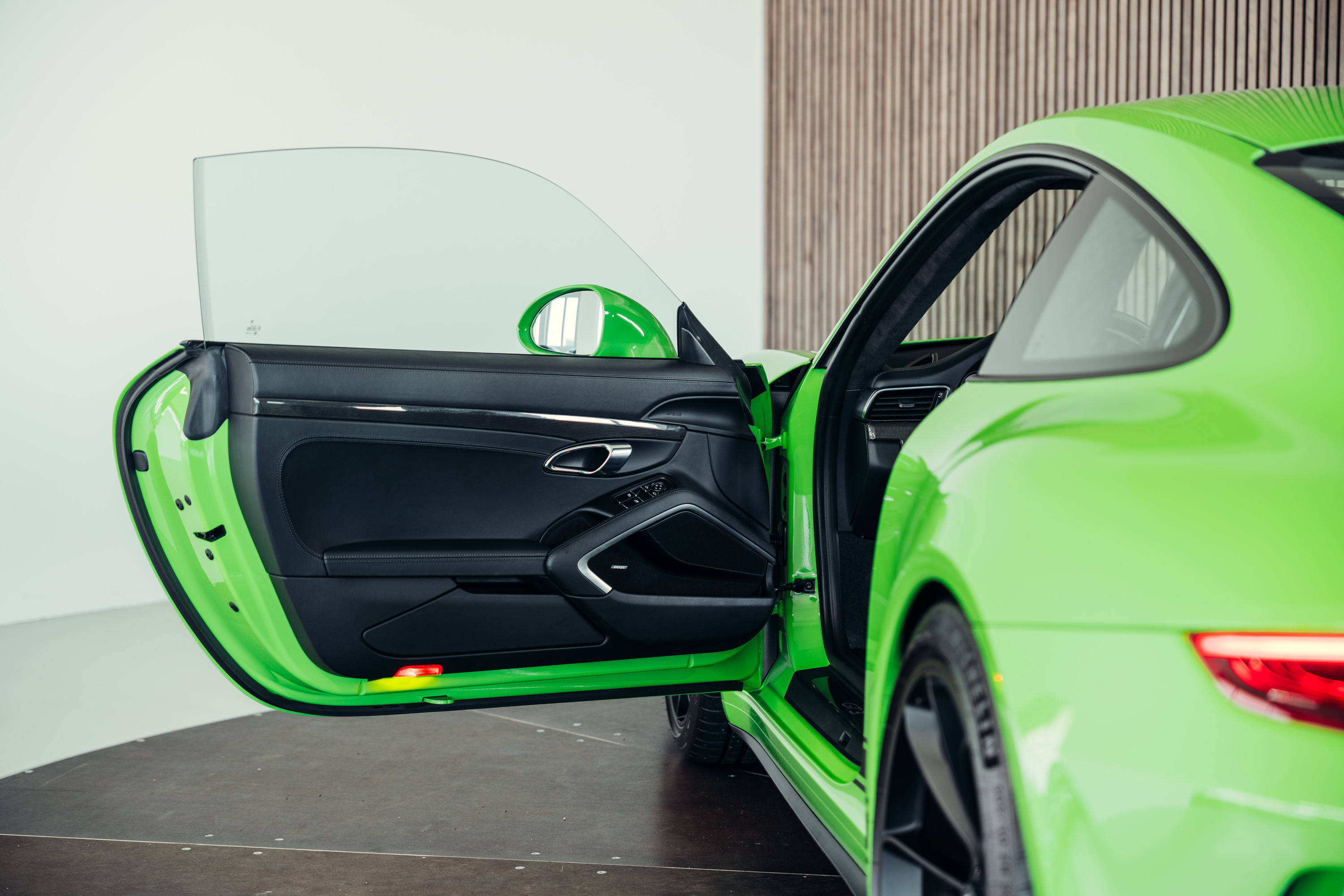 Zum Verkauf steht ein Porsche 991.2 GT3 Touring in der außergewöhnlichen Sonderfarbe Gelbgrün Uni (PTS) - ein Ton, der sofort auffällt und Emotionen weckt. Dieses lebhafte Grün symbolisiert Energie, Lebensfreude und Individualität, während seine kräftige Ausstrahlung einen sportlich-markanten Charakter vermittelt.