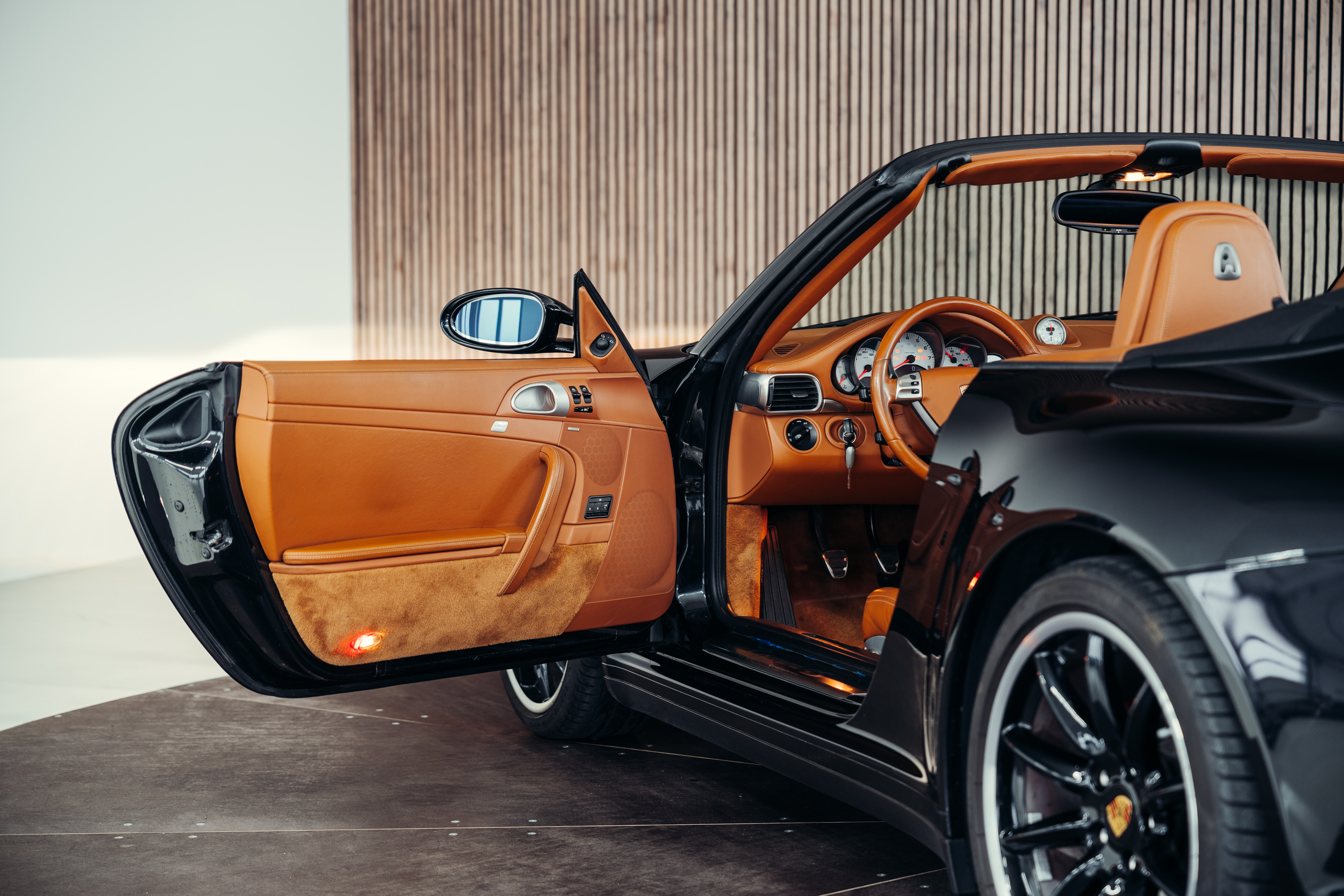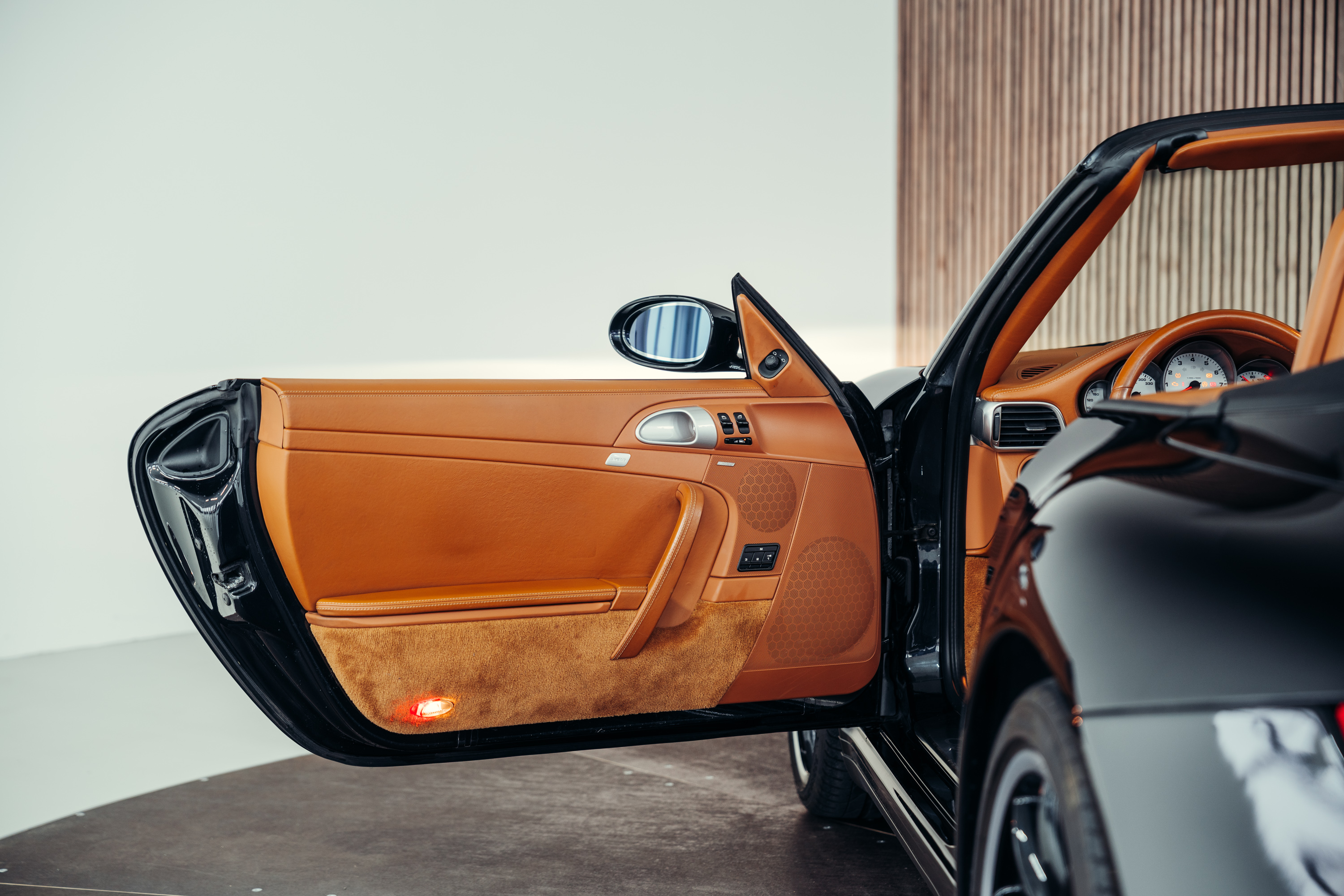 Zum Verkauf steht ein äußerst gepflegtes Porsche 997.1 Carrera 4S Cabriolet in der zeitlos eleganten und klassischen Farbe Basaltschwarzmetallic. Besonders hervorzuheben ist der Innenraum in edlem cognacfarbenem Naturleder, der in Kombination mit dem schwarzen Exterieur eine außergewöhnlich elegante und zugleich sportliche Farbkombination darstellt – klassisch, hochwertig und sehr begehrt. Das Fahrzeug ist mit ebenfalls mit der sehr seltenen und begehrten Porsche Werksleistungssteigerung (WLS) ausgestatett. Das Fahrzeug wurde zusätzlich fachmännisch mit dem PCCM inkl. Apple Carplay ausgestattet.