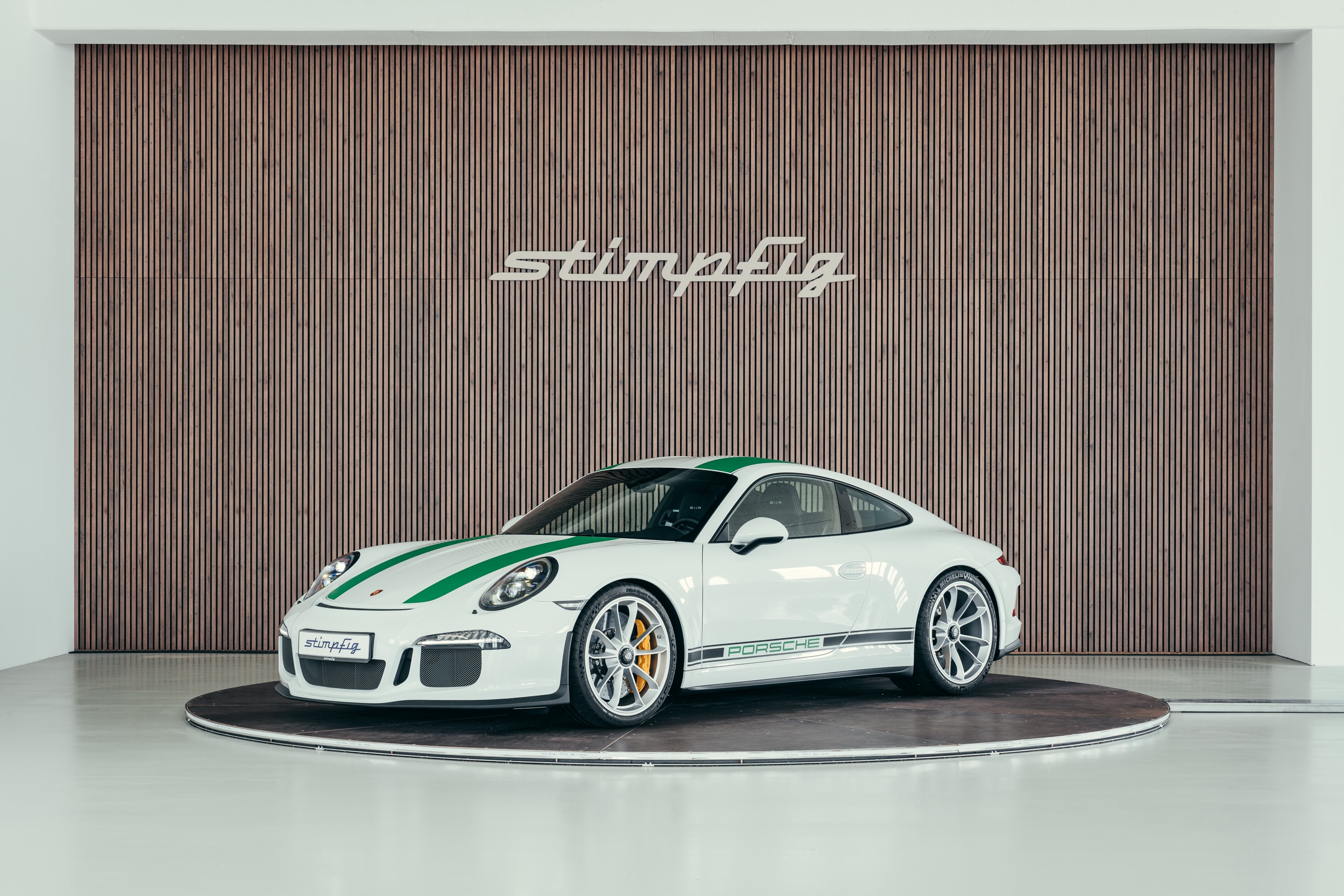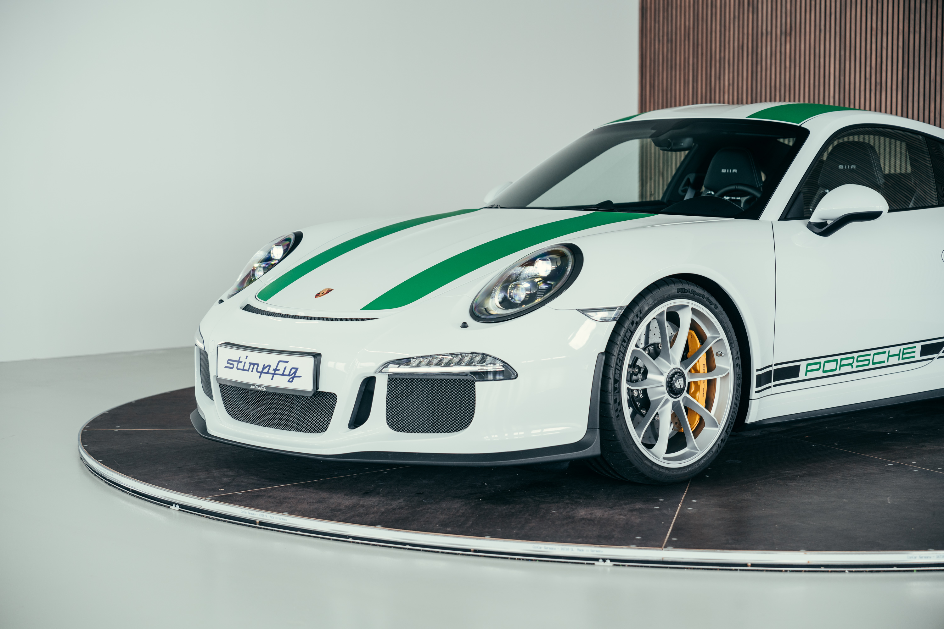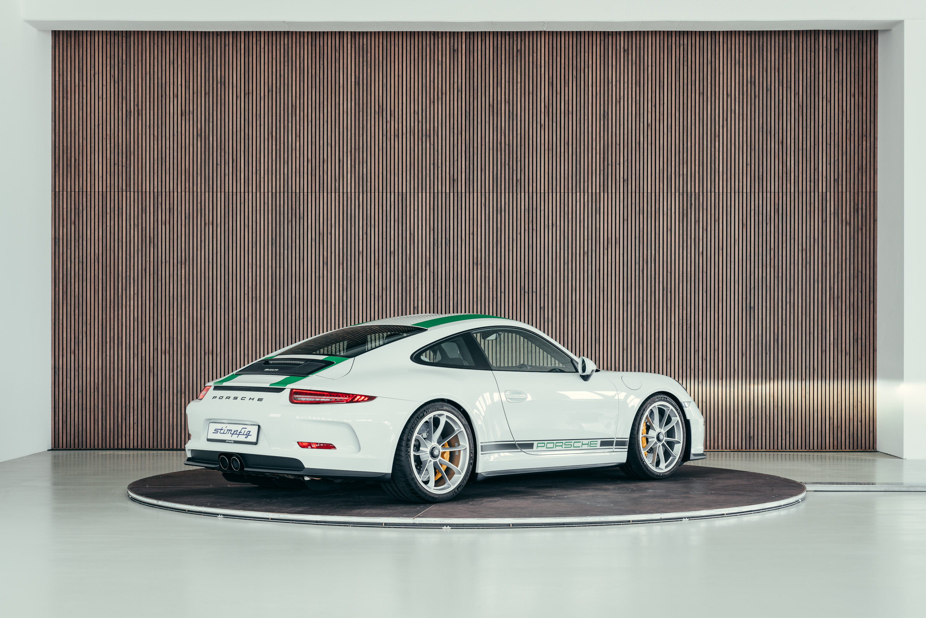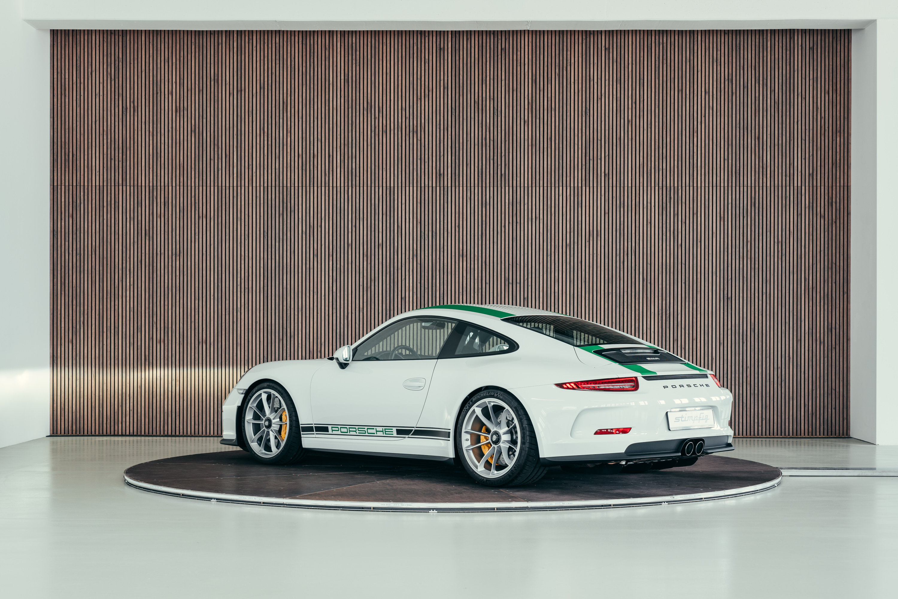 For sale is a very well maintained and as good as new Porsche 911 R in the classic motorsport colour white with green stripes, single mass flywheel, lift system and LED headlights.