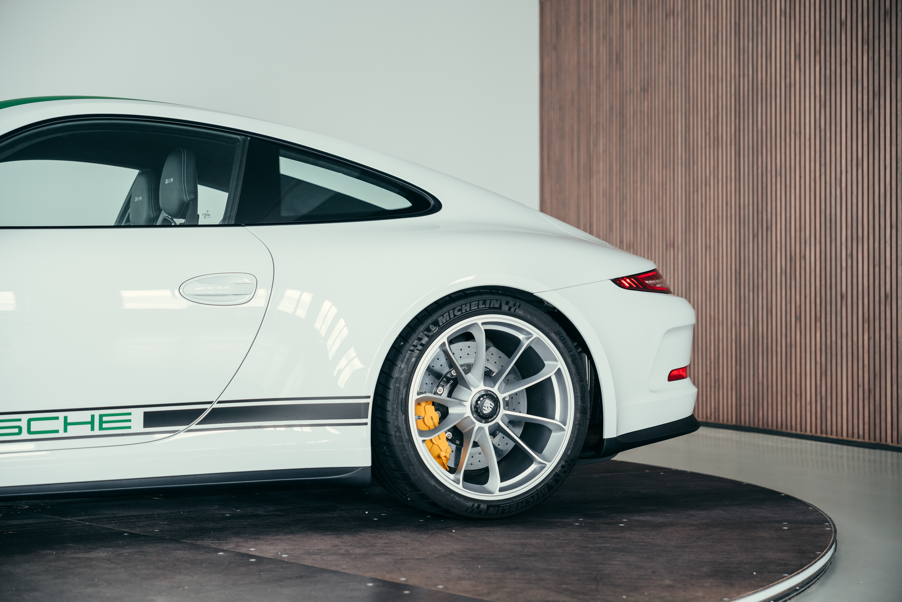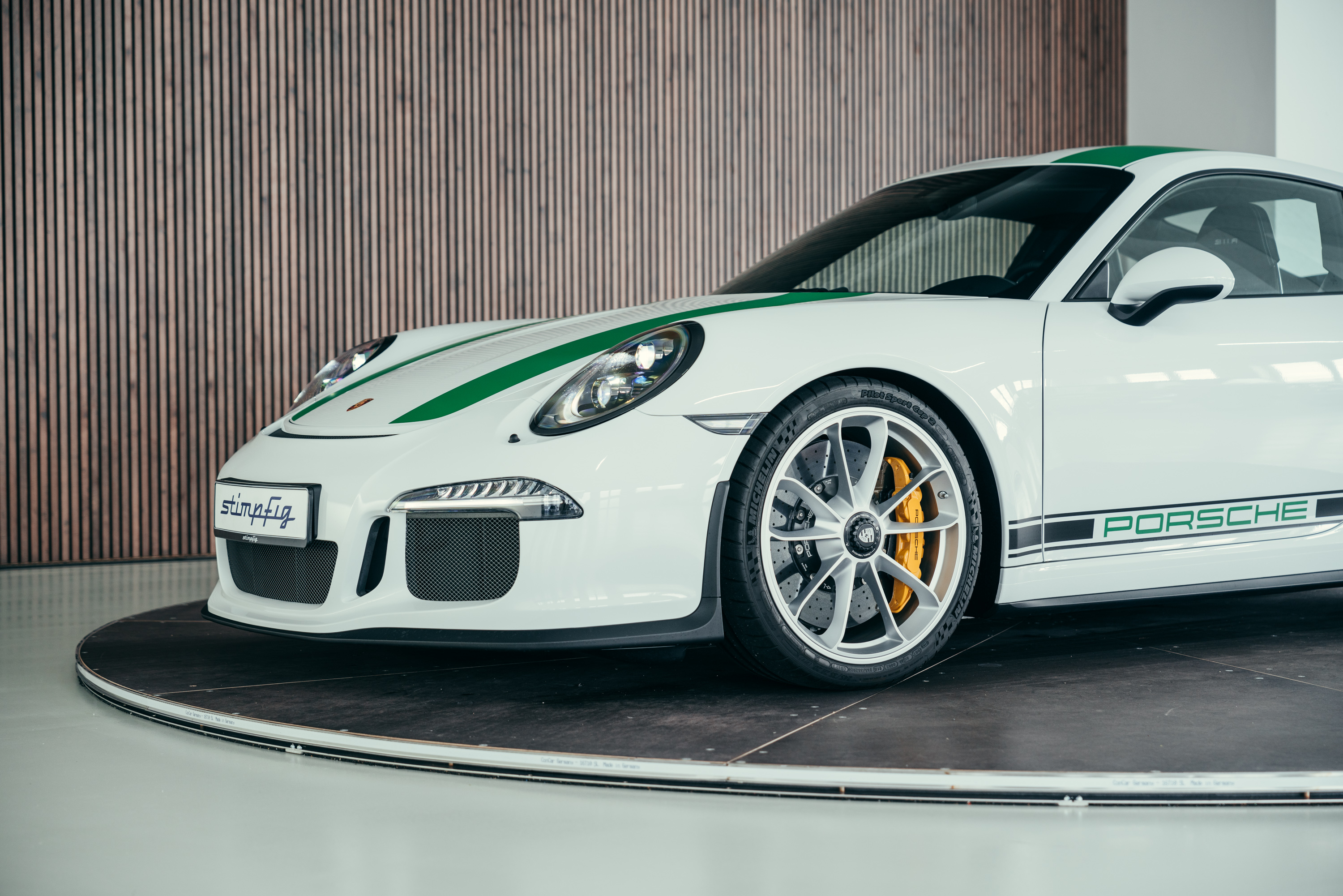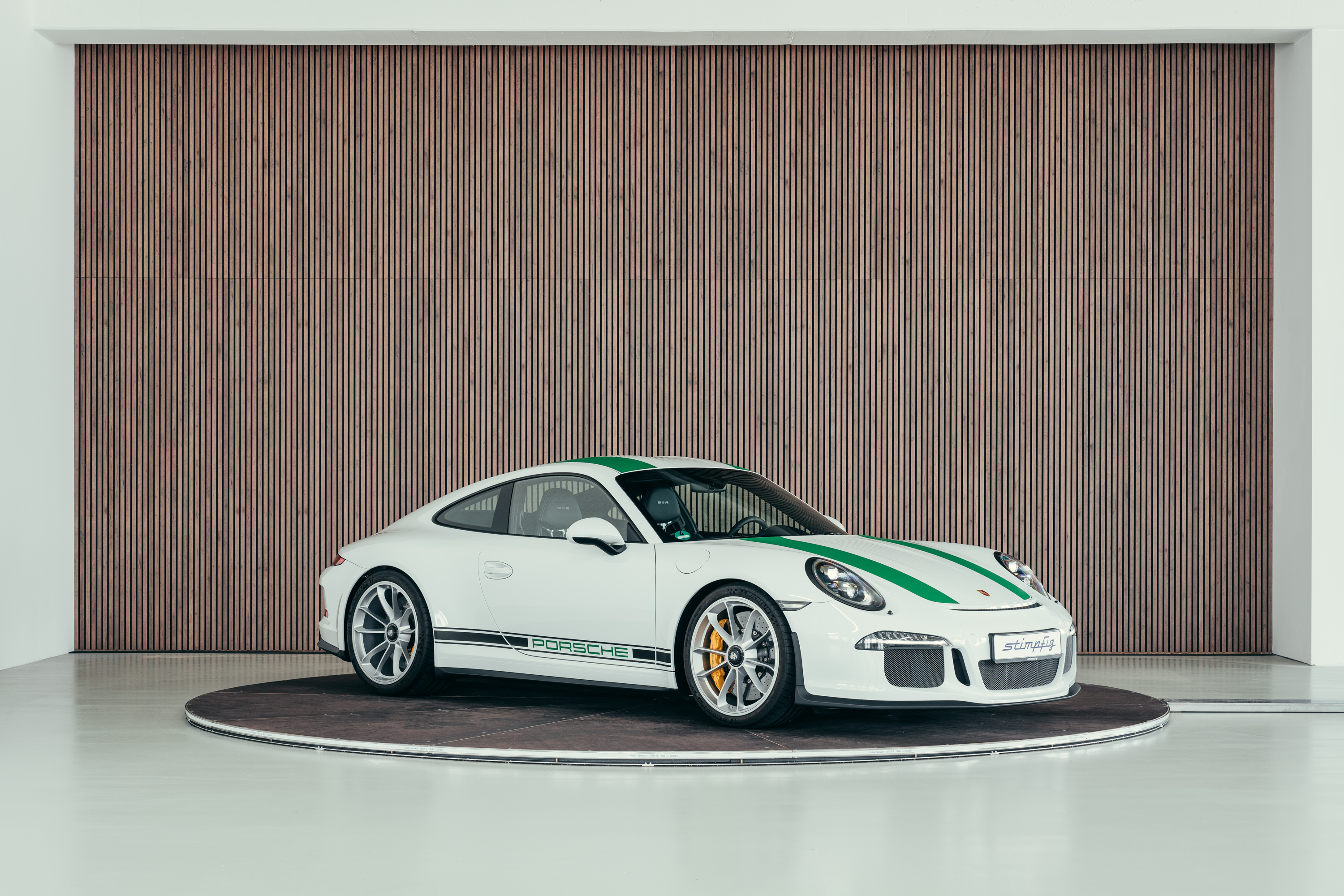 For sale is a very well maintained and as good as new Porsche 911 R in the classic motorsport colour white with green stripes, single mass flywheel, lift system and LED headlights.
