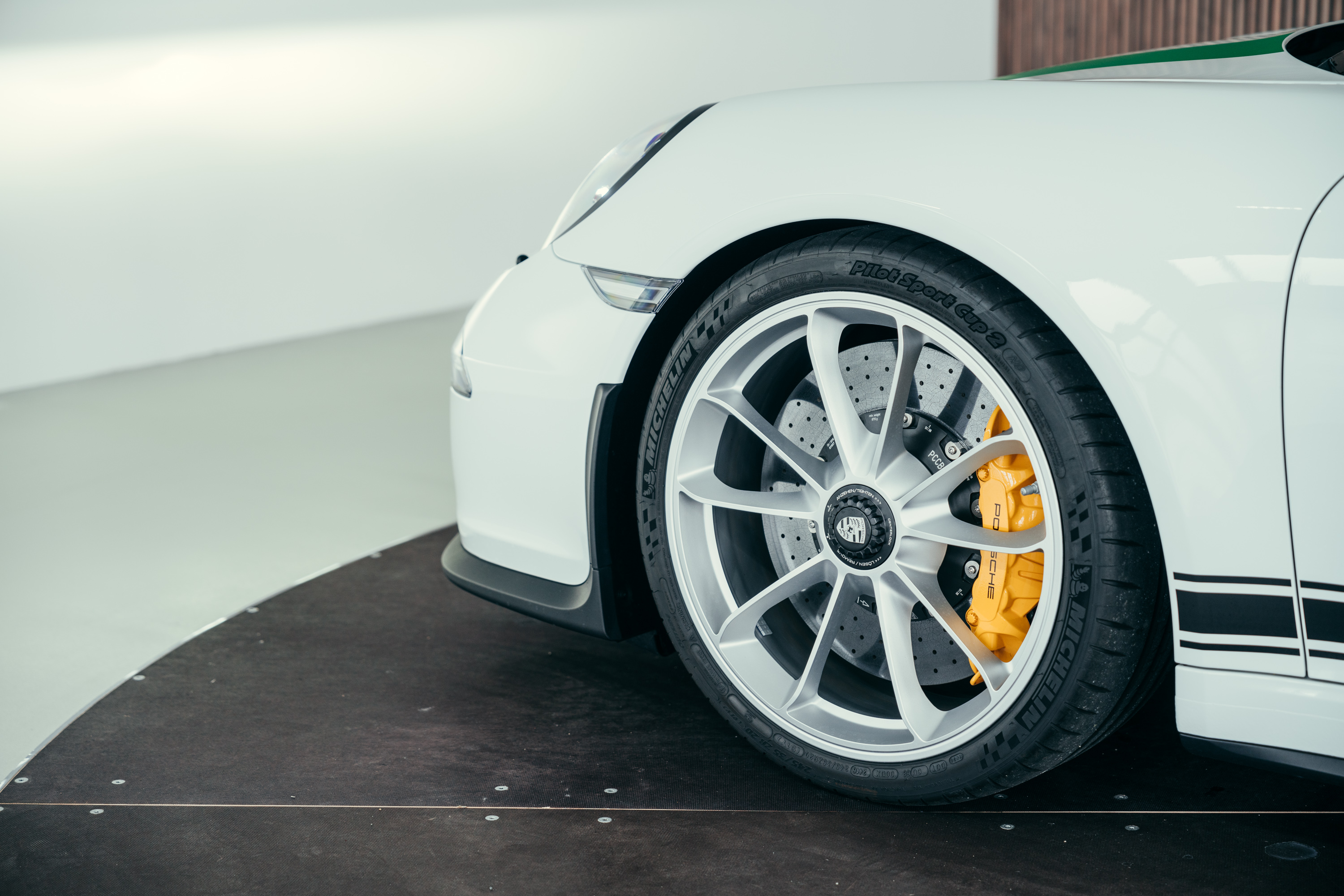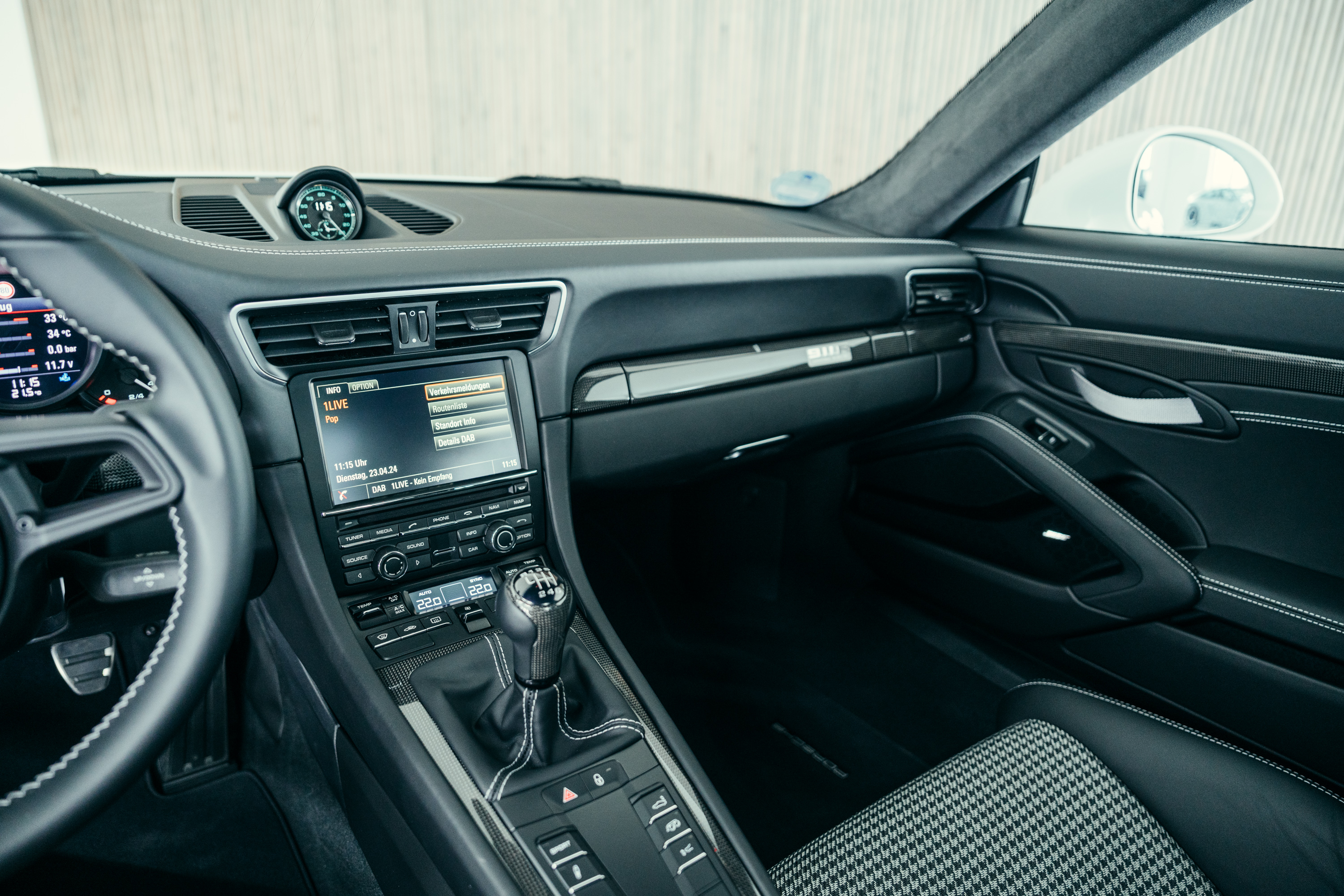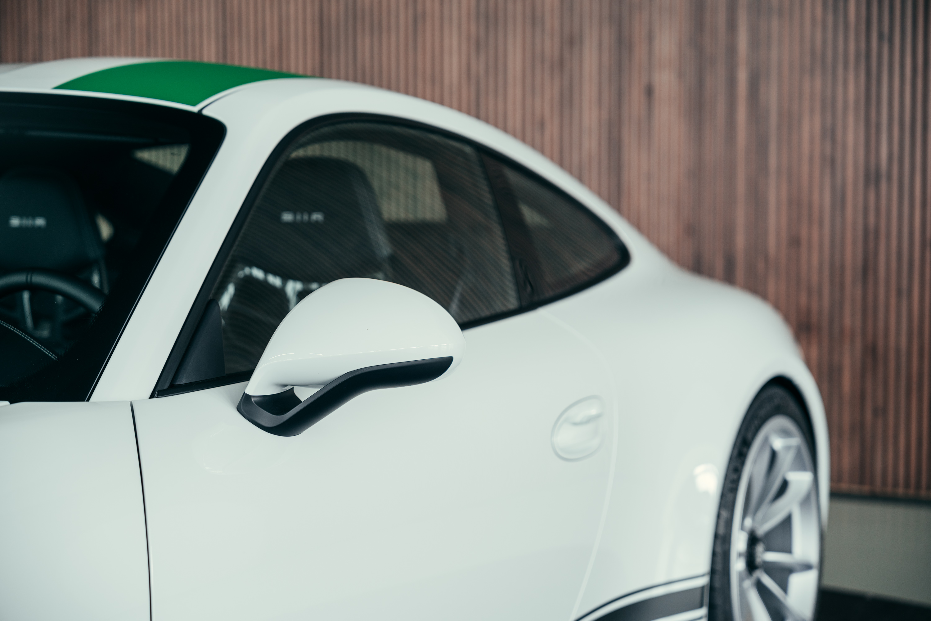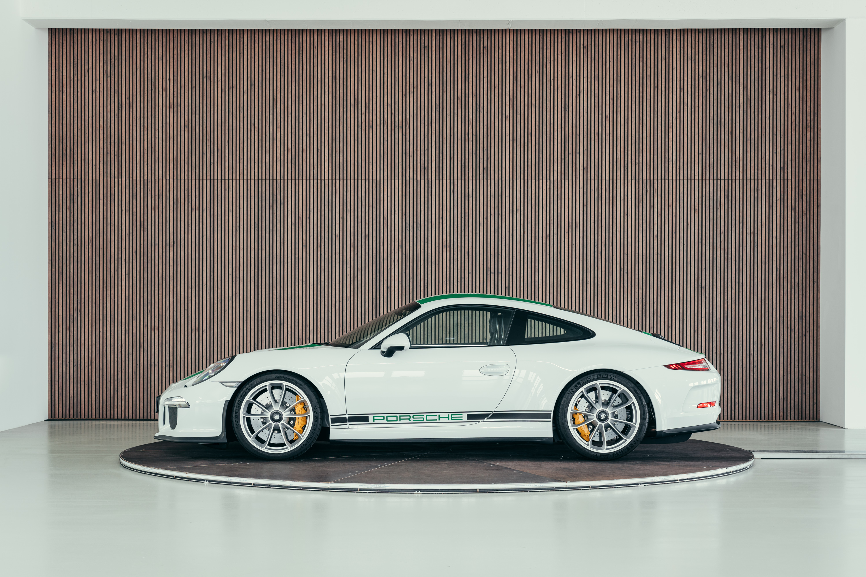 For sale is a very well maintained and as good as new Porsche 911 R in the classic motorsport colour white with green stripes, single mass flywheel, lift system and LED headlights.