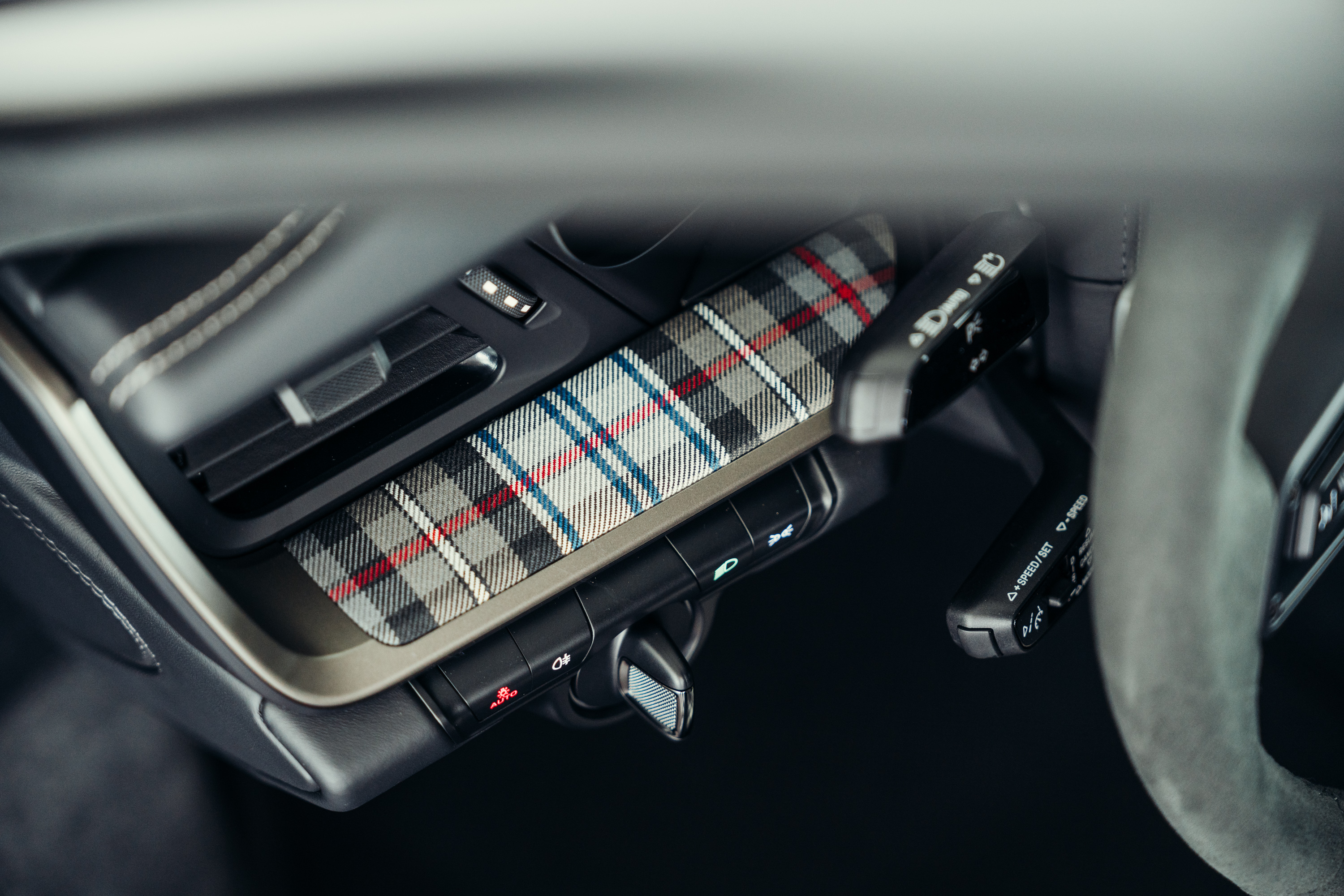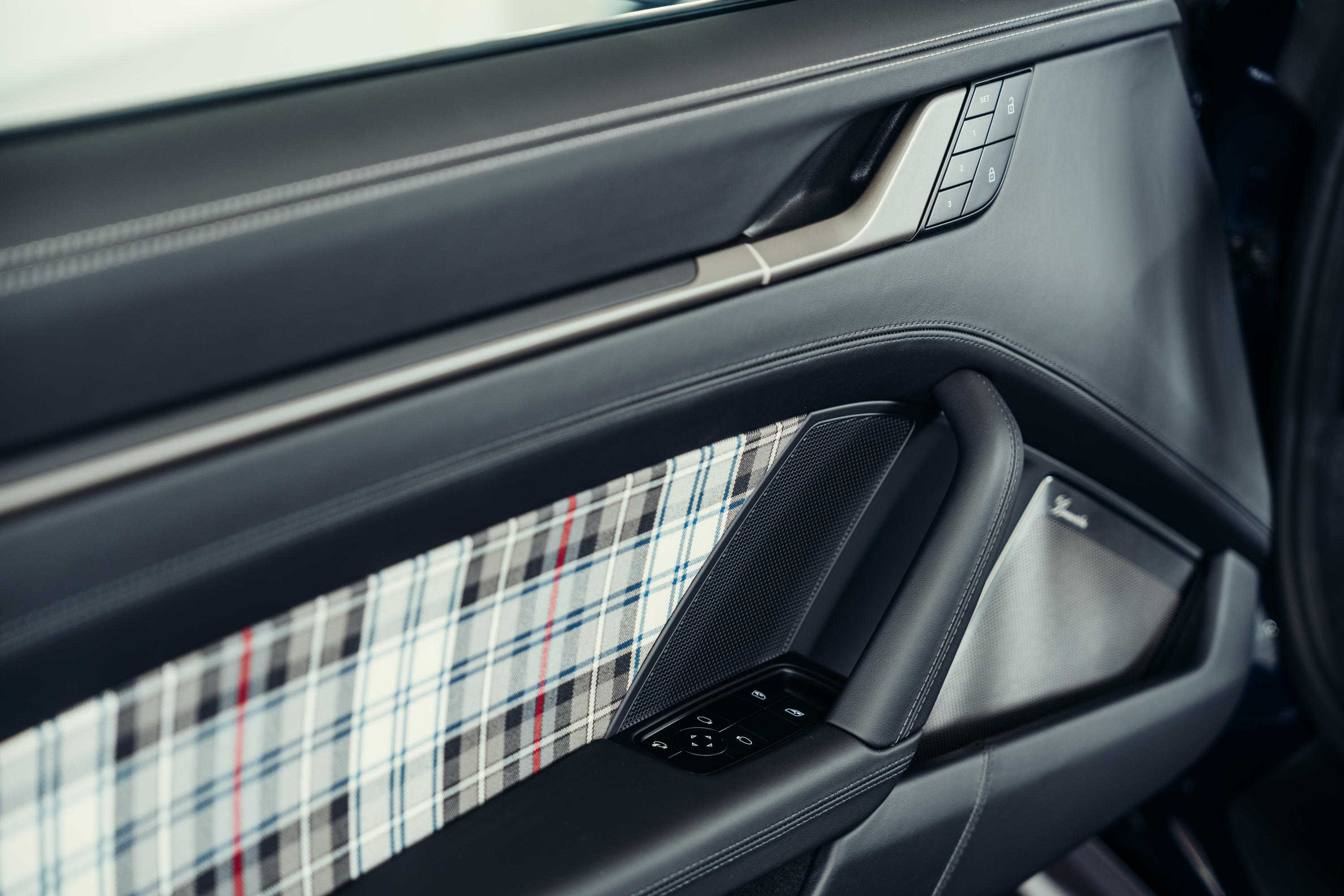 TP Leather interior in black with tartan