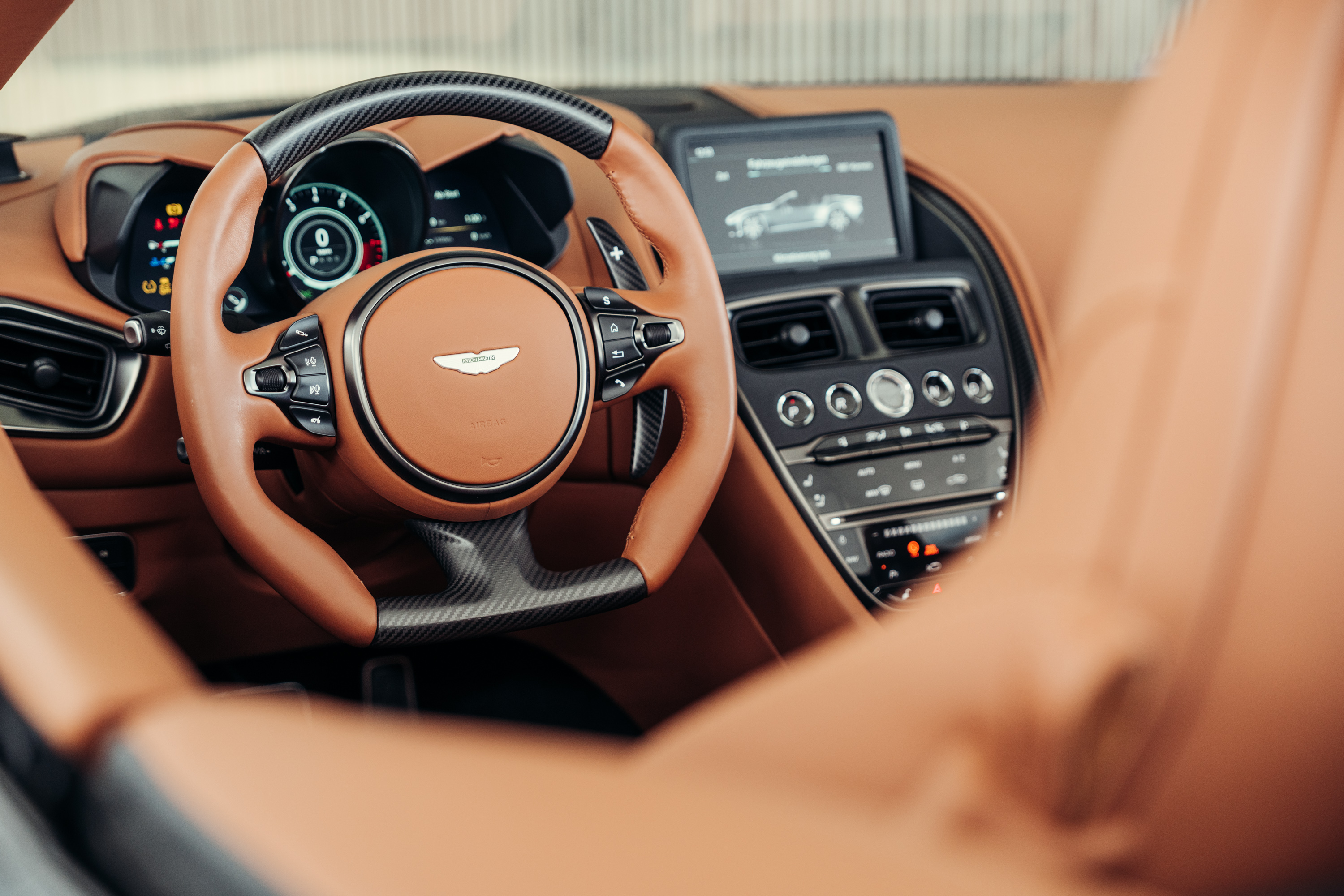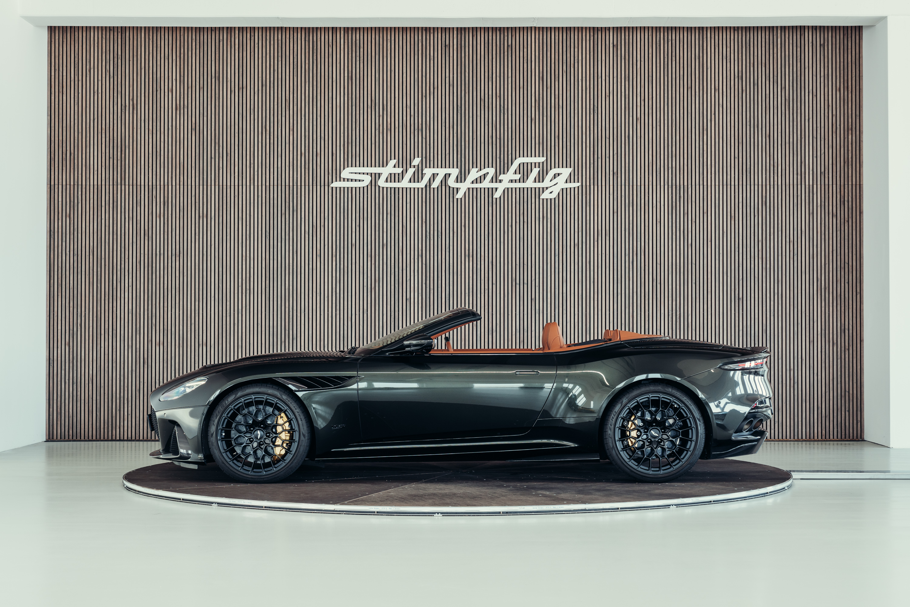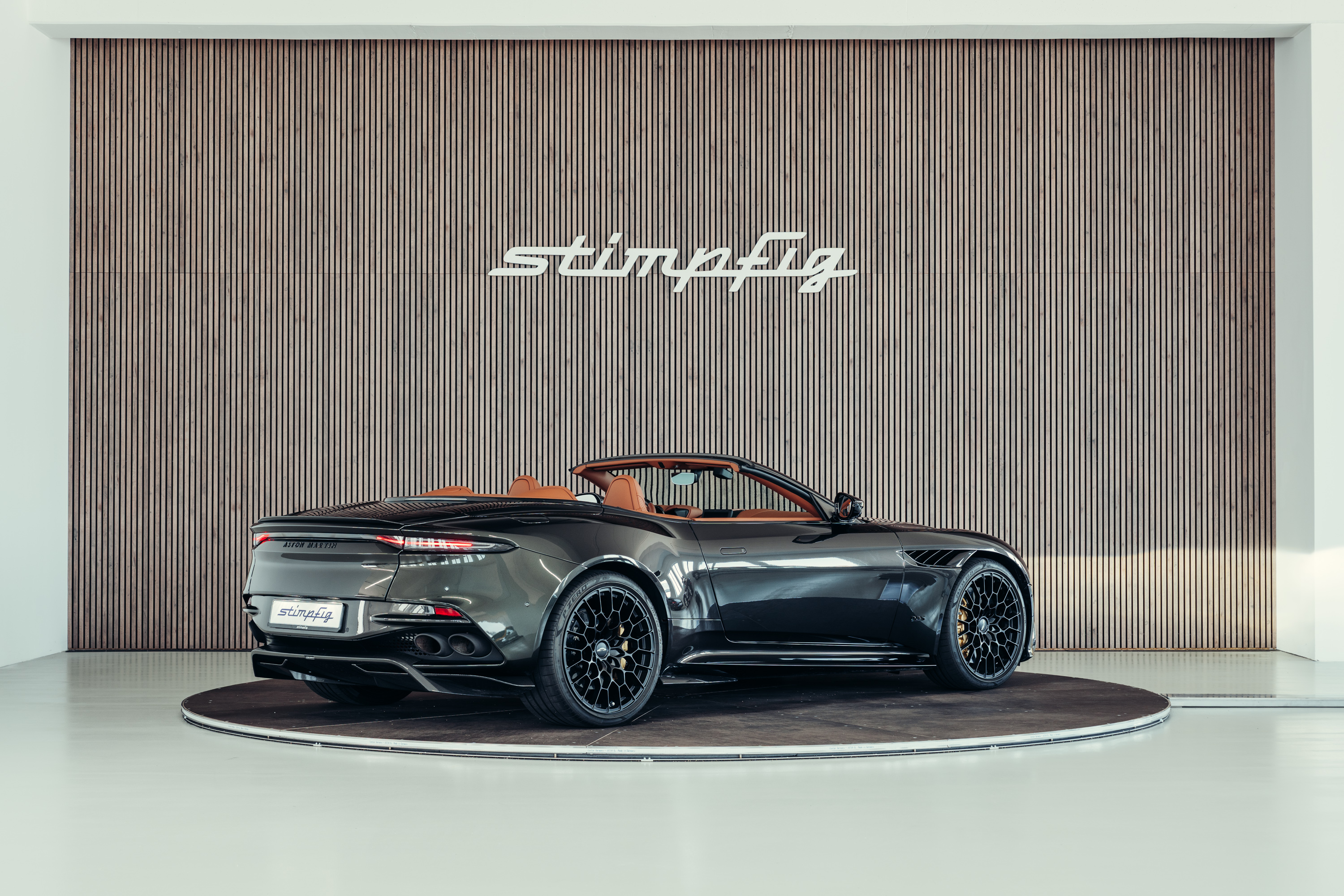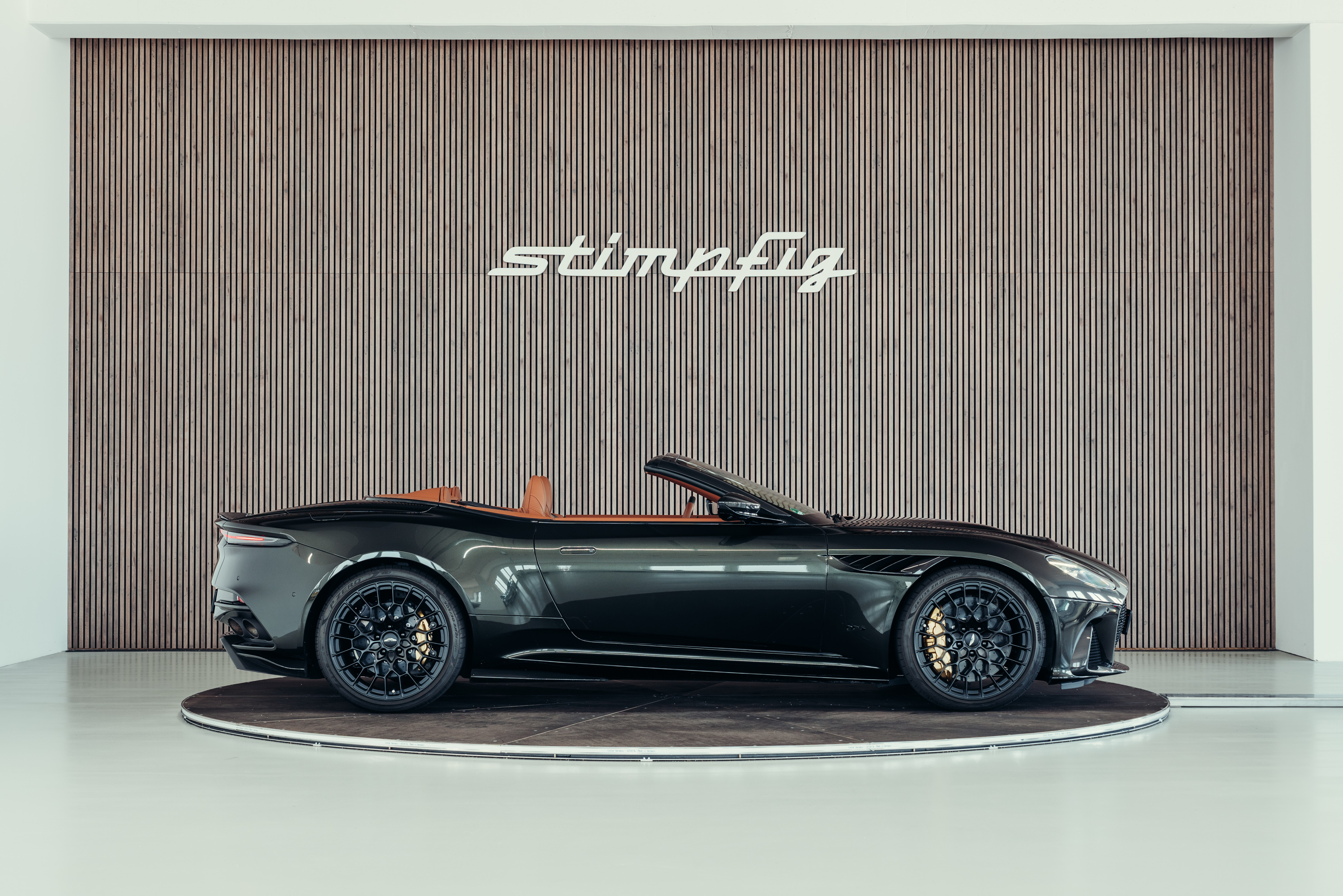 For sale is one of only 199 Aston Martin DBS 770 Ultimate Volante built in the beautiful exterior color “Minotaur Green Metallic”, combined with a tasteful leather interior in “Centenary Saddle Tan”. This classic color combination gives the vehicle a special presence - powerful, yet elegant and timeless.