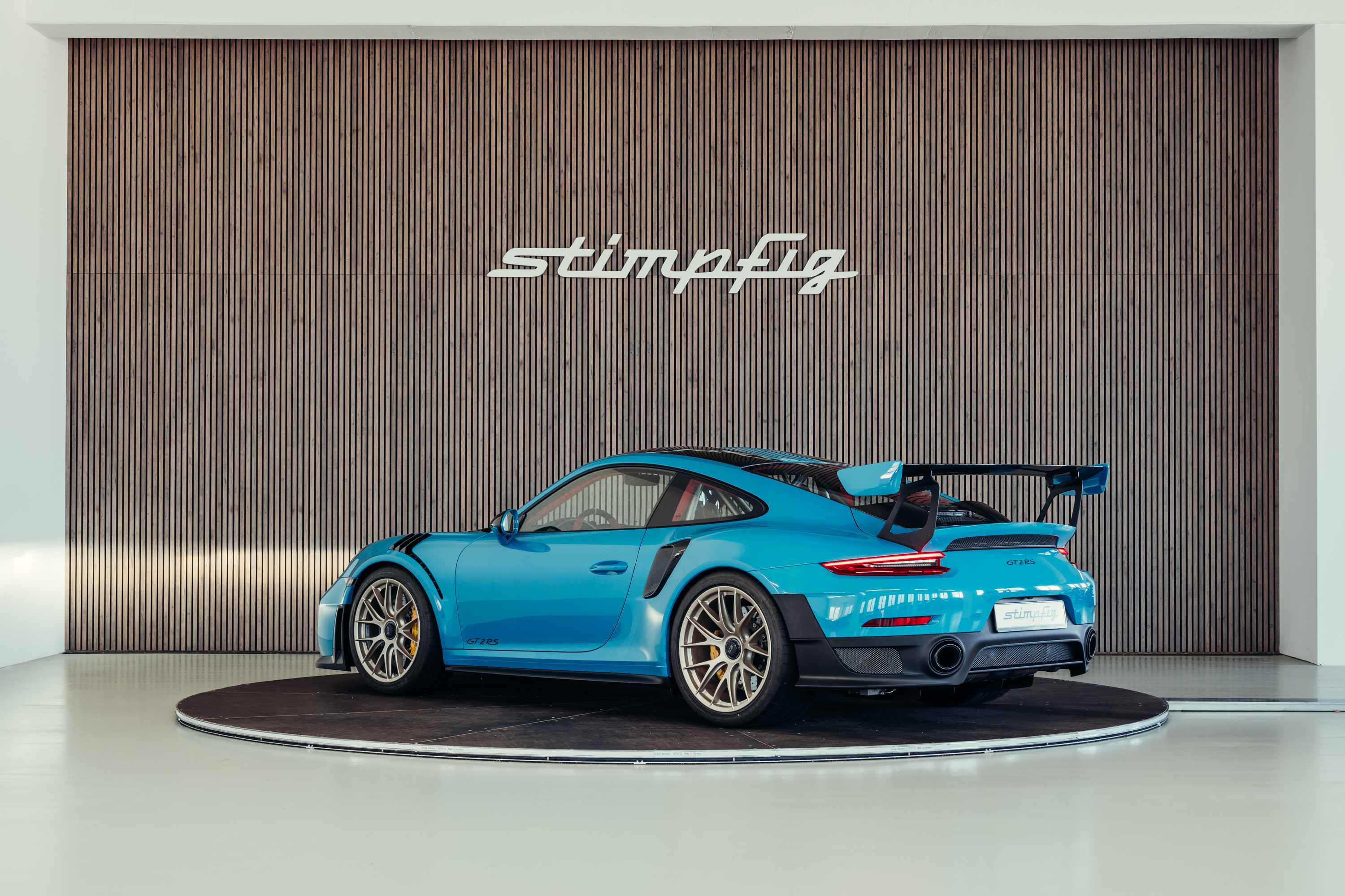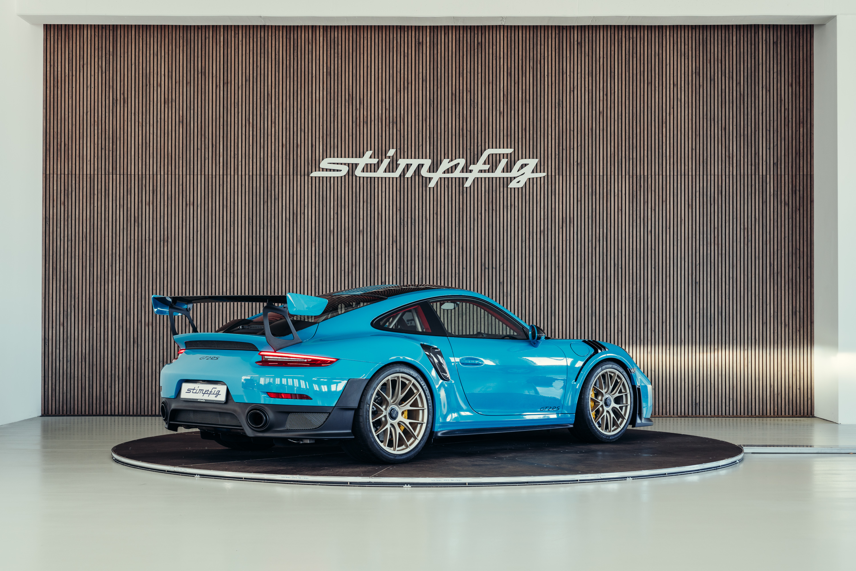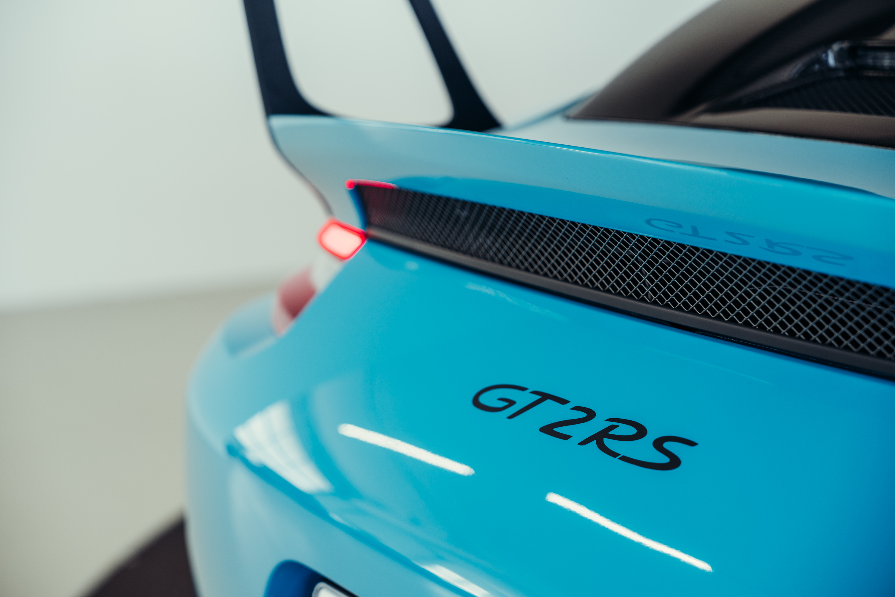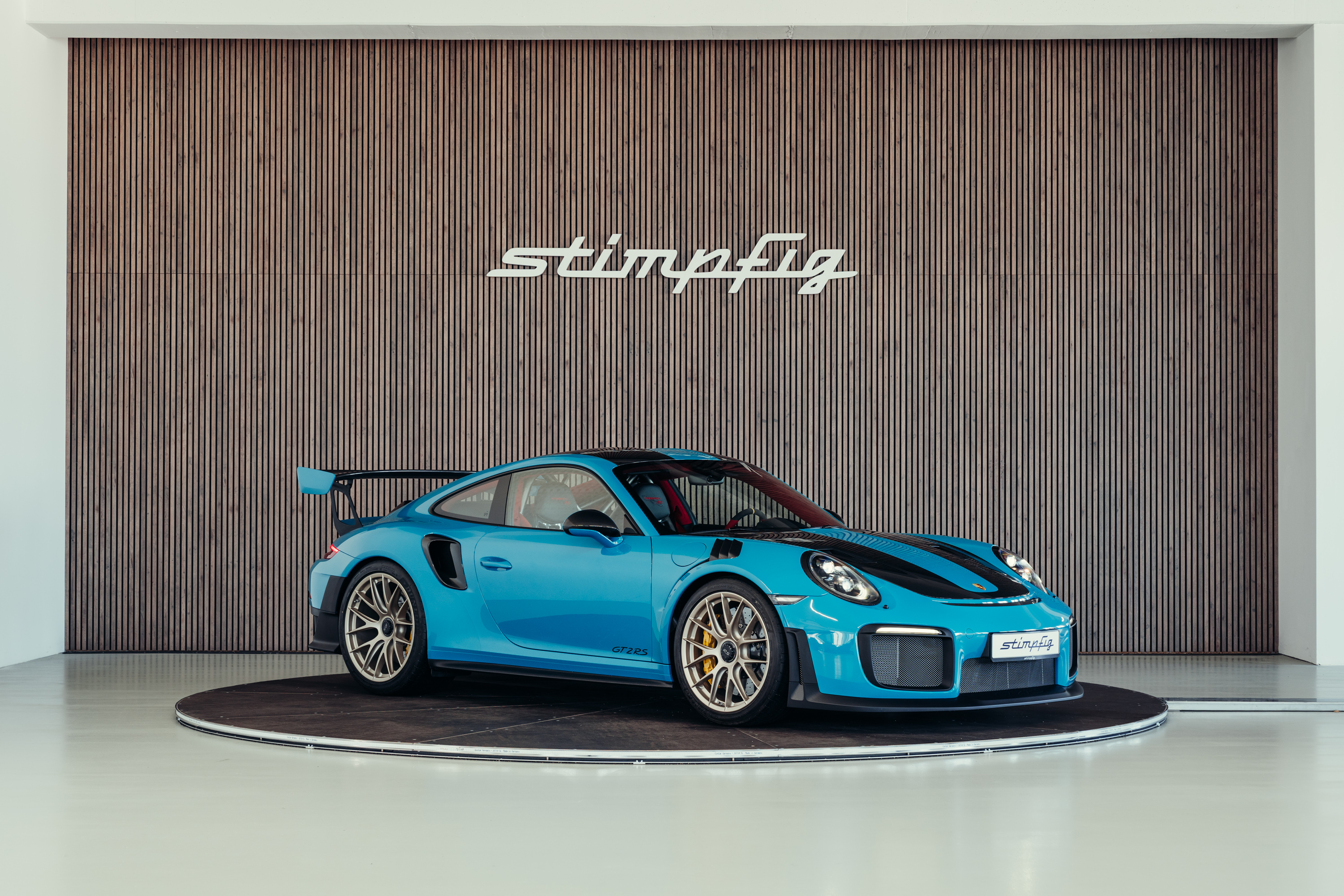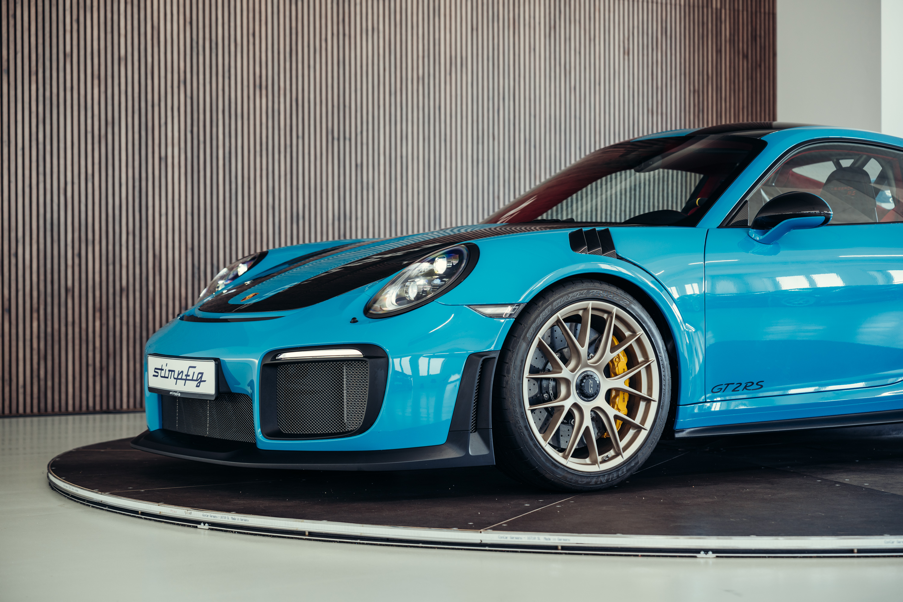 For sale is a Porsche 991.2 GT2 RS in mint condition with Weissach package in the extraordinary color combination Miami blue with black and red leather interior and magnesium wheels in white gold metallic.