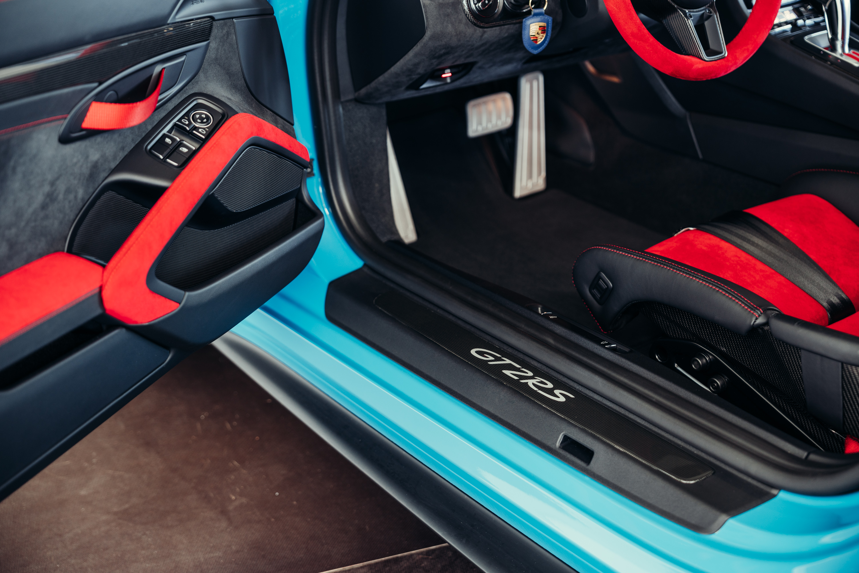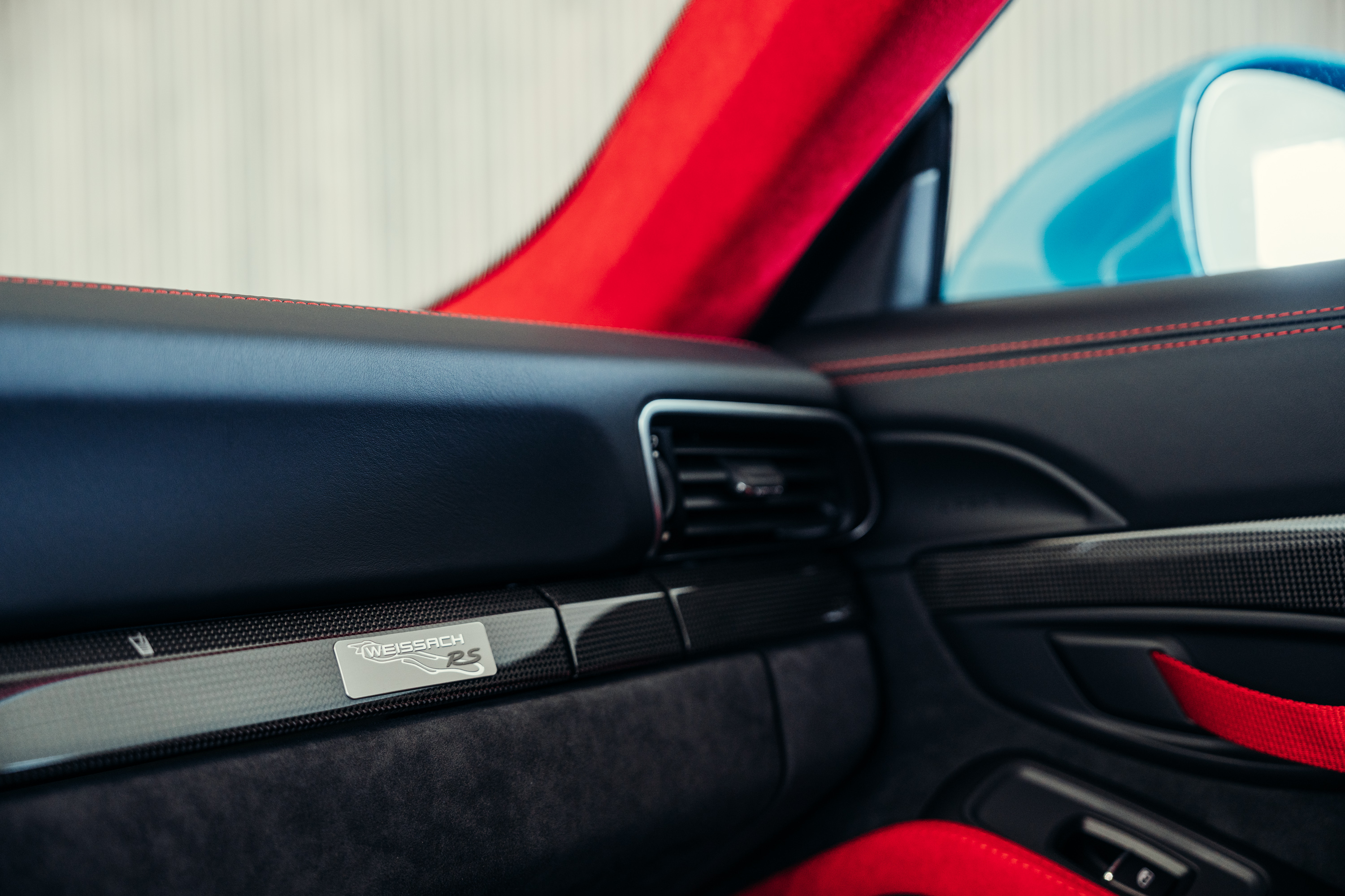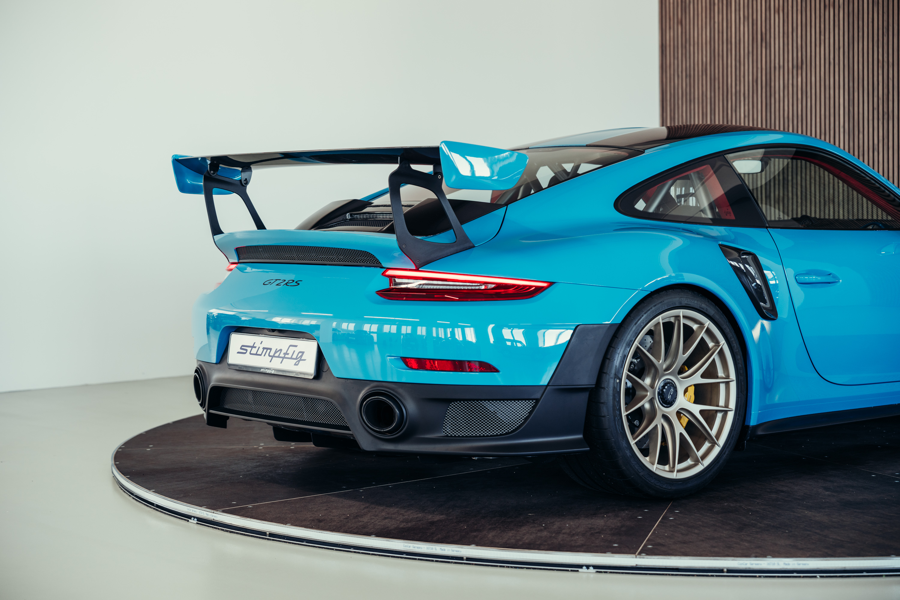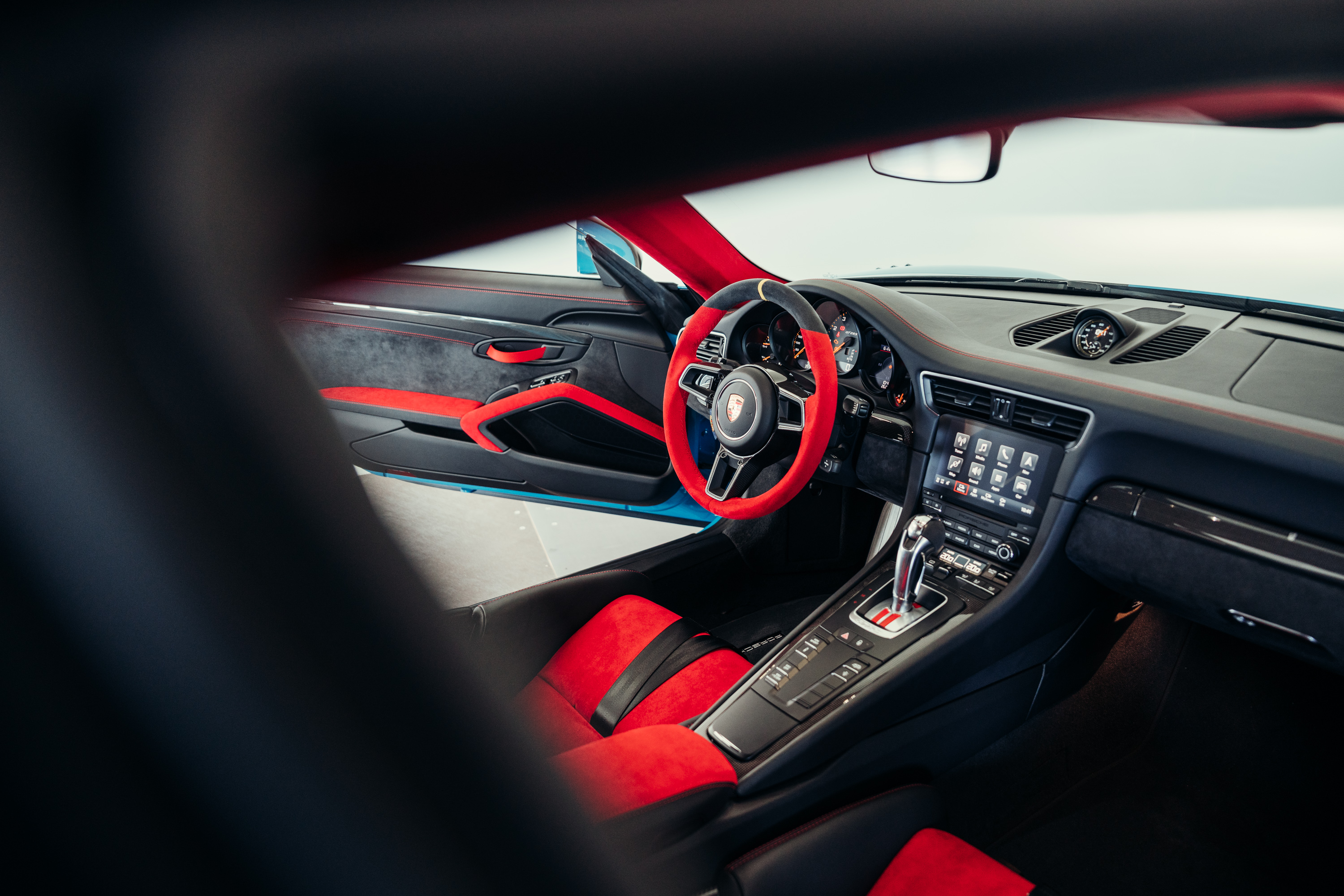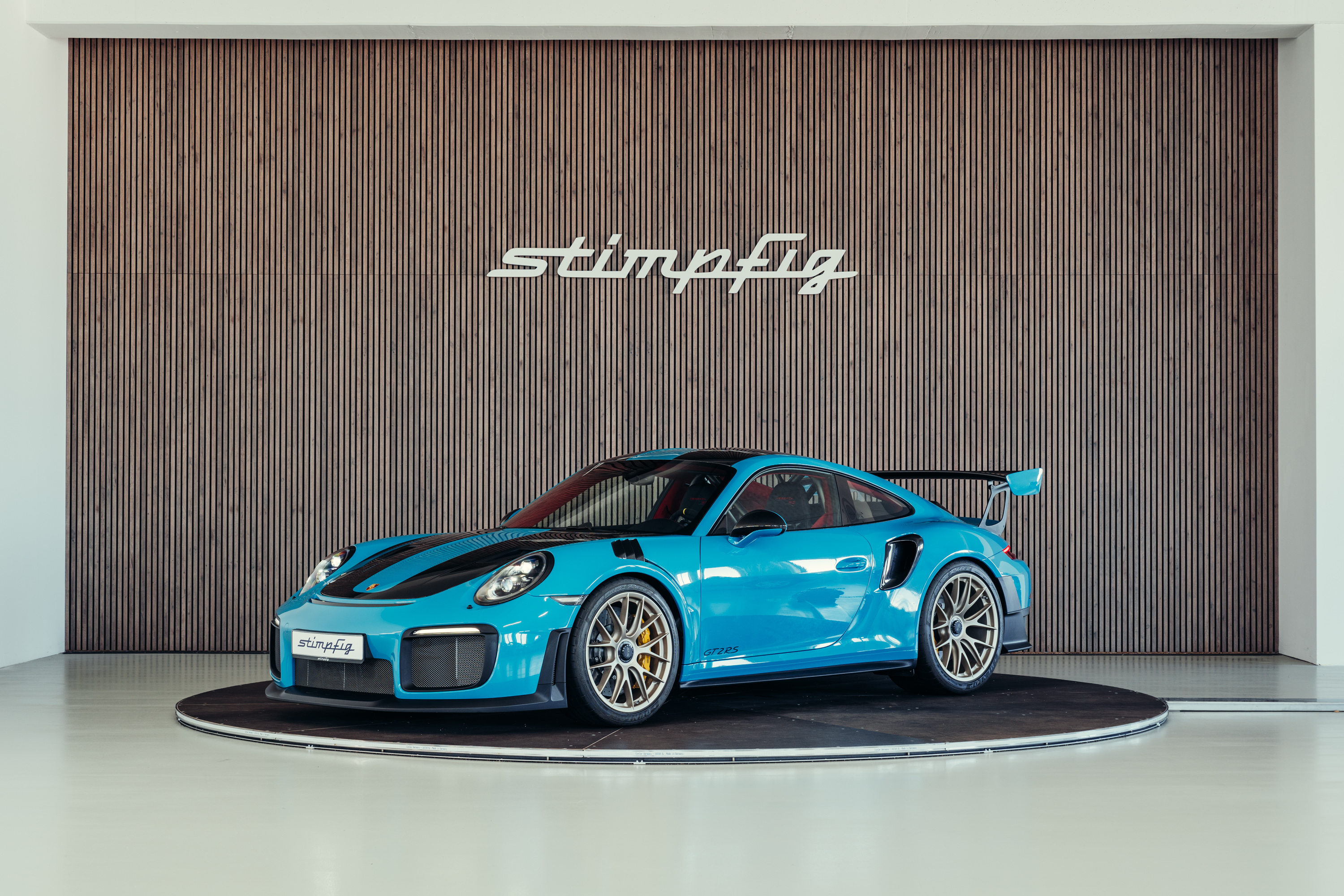 For sale is a Porsche 991.2 GT2 RS in mint condition with Weissach package in the extraordinary color combination Miami blue with black and red leather interior and magnesium wheels in white gold metallic.