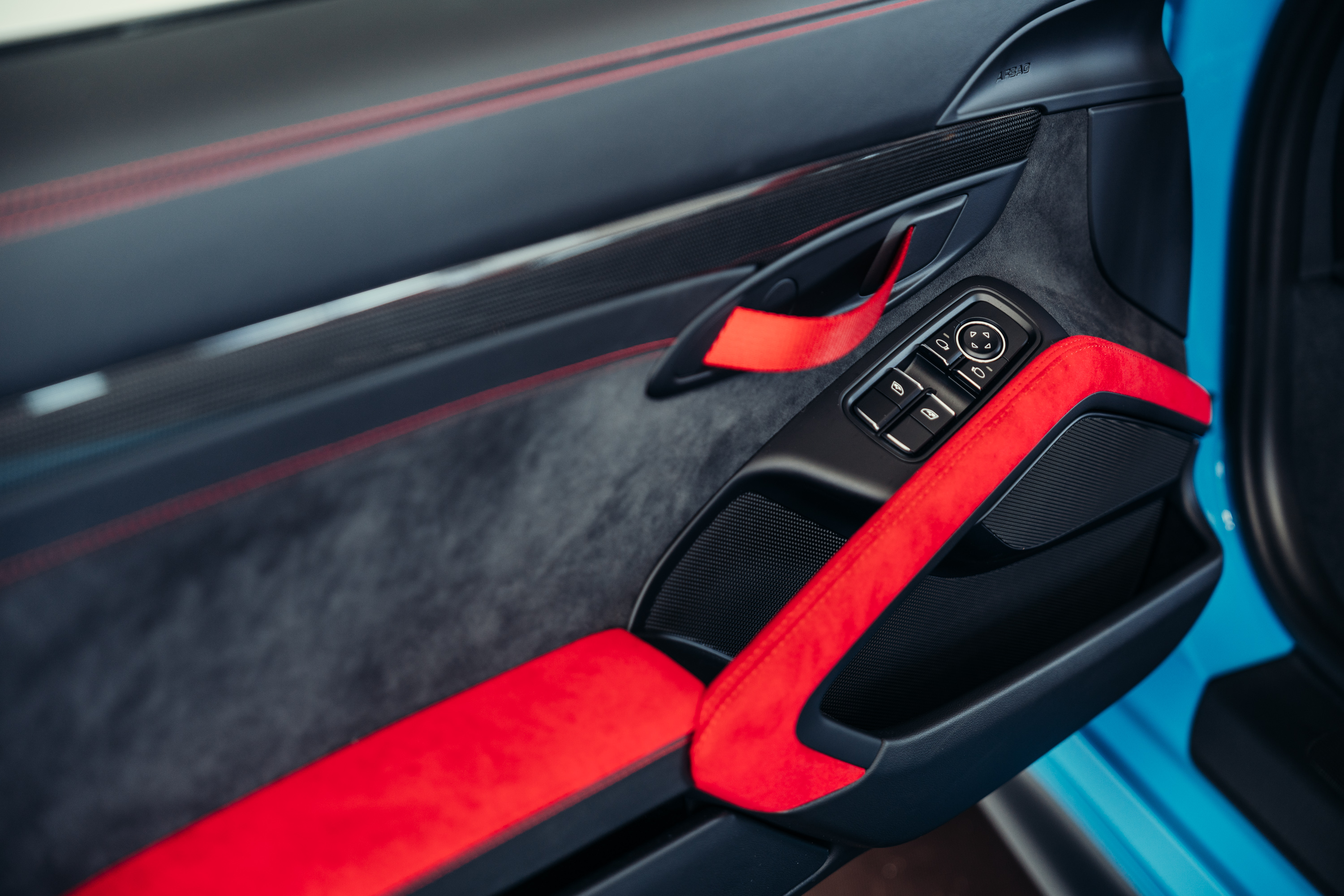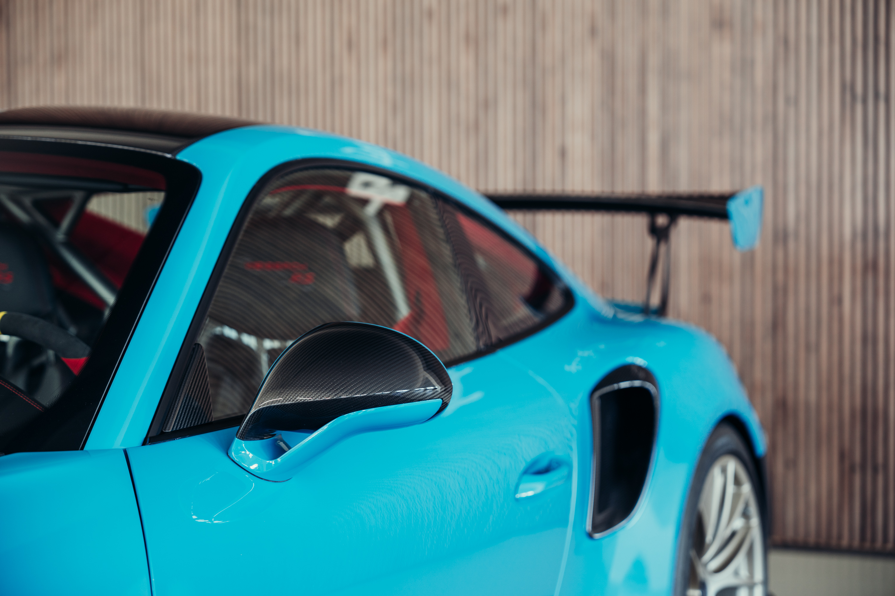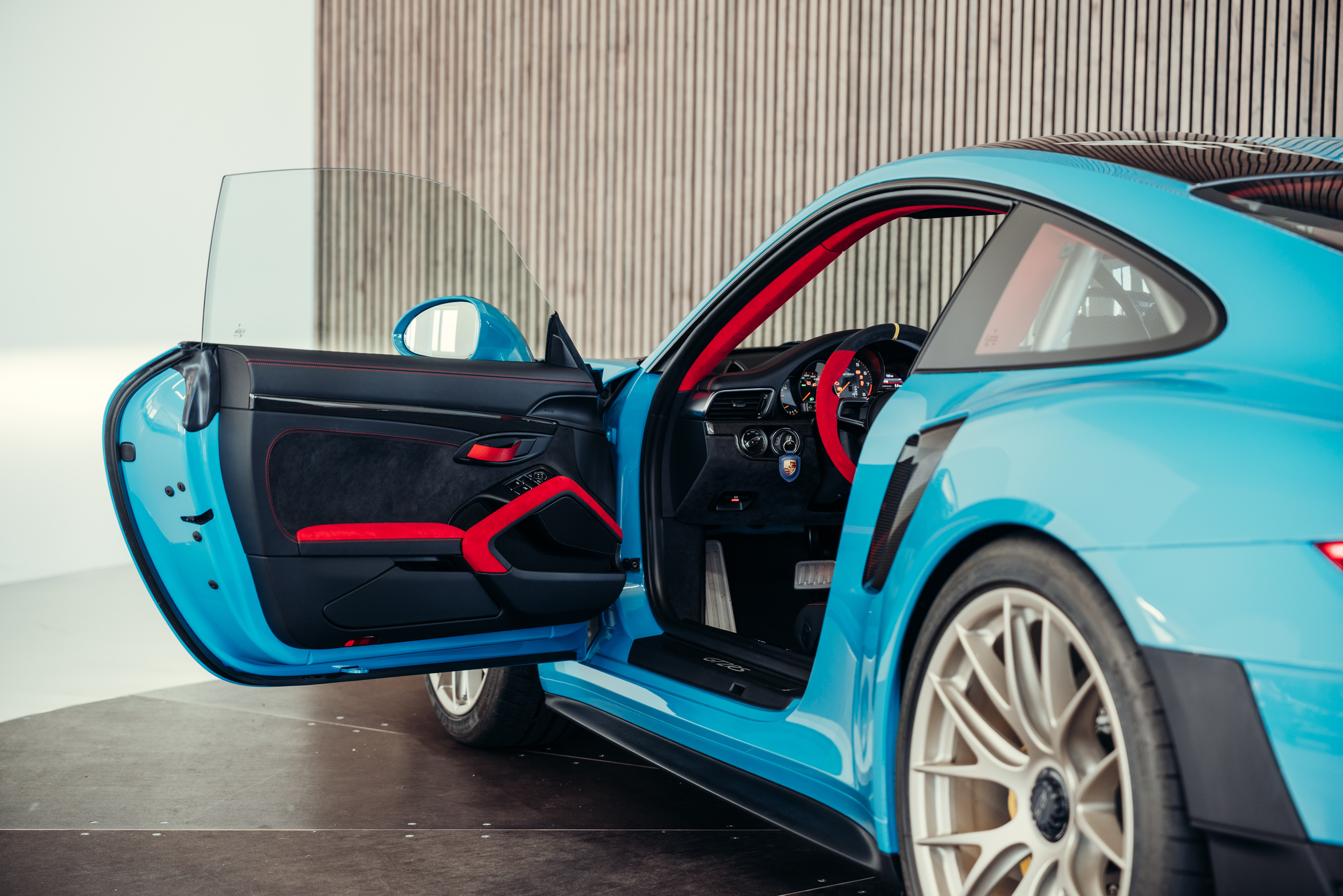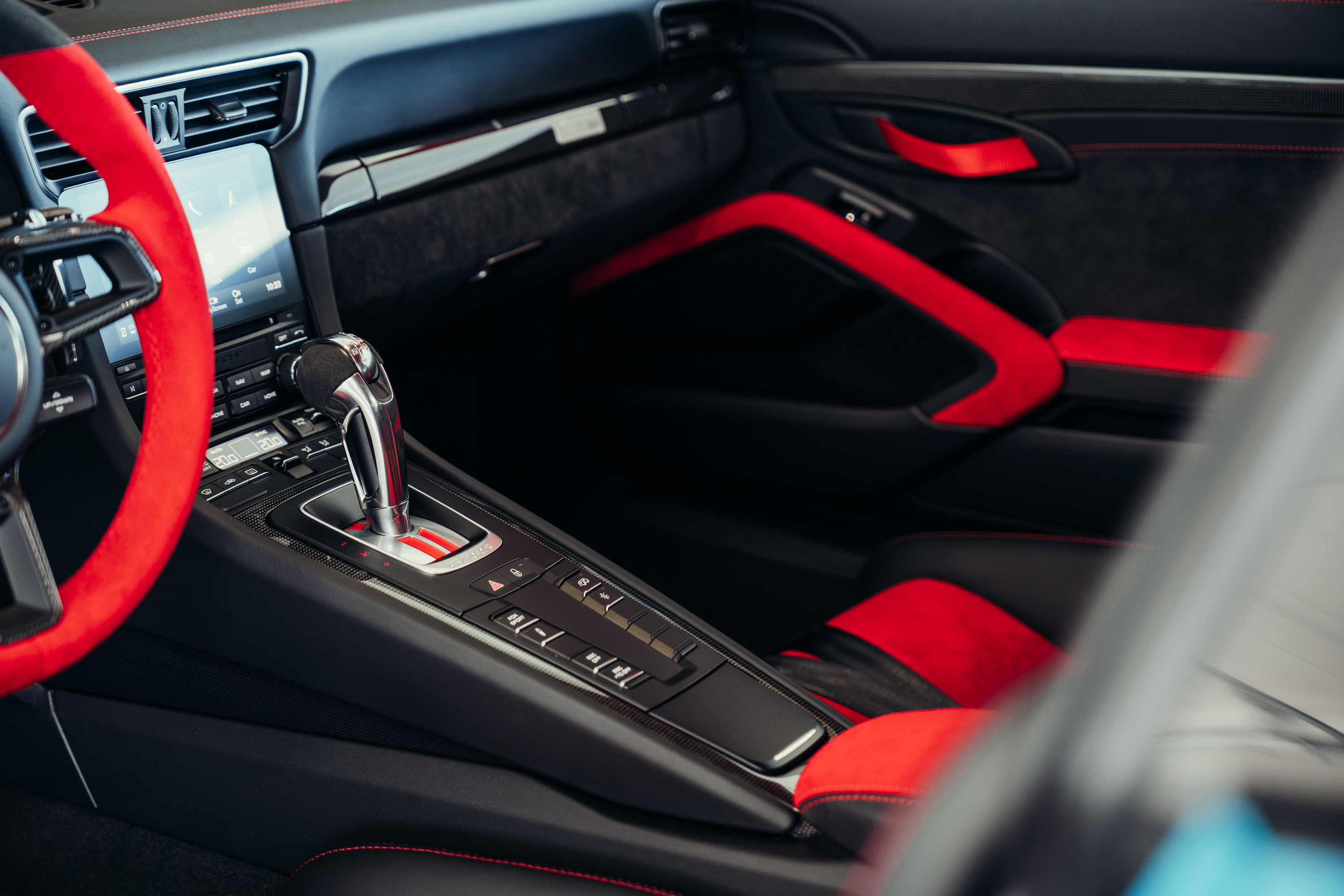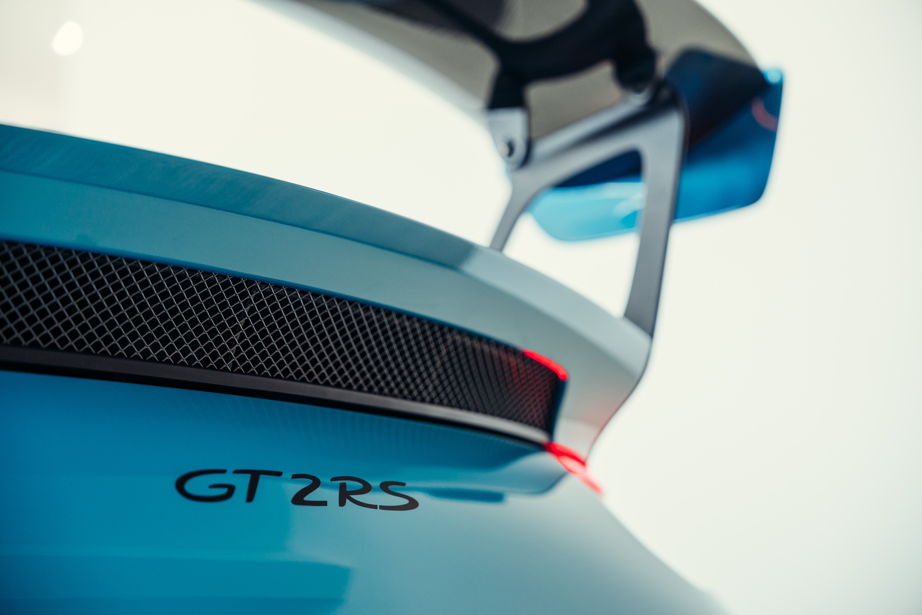 For sale is a Porsche 991.2 GT2 RS in mint condition with Weissach package in the extraordinary color combination Miami blue with black and red leather interior and magnesium wheels in white gold metallic.