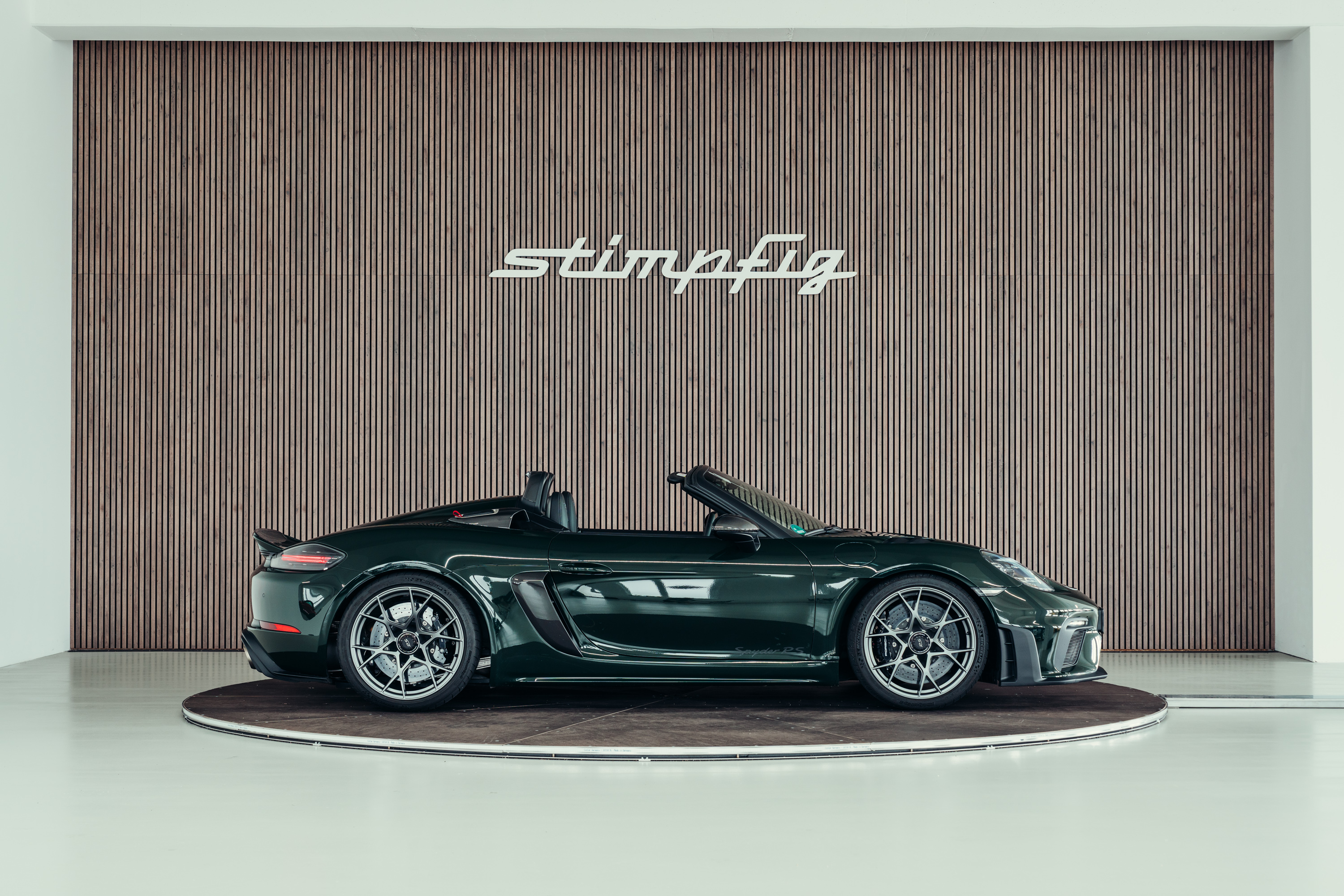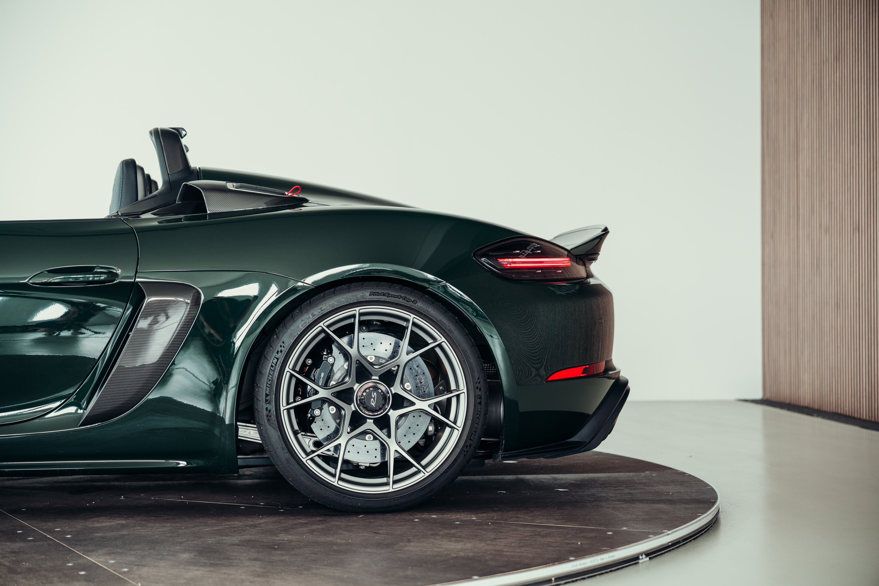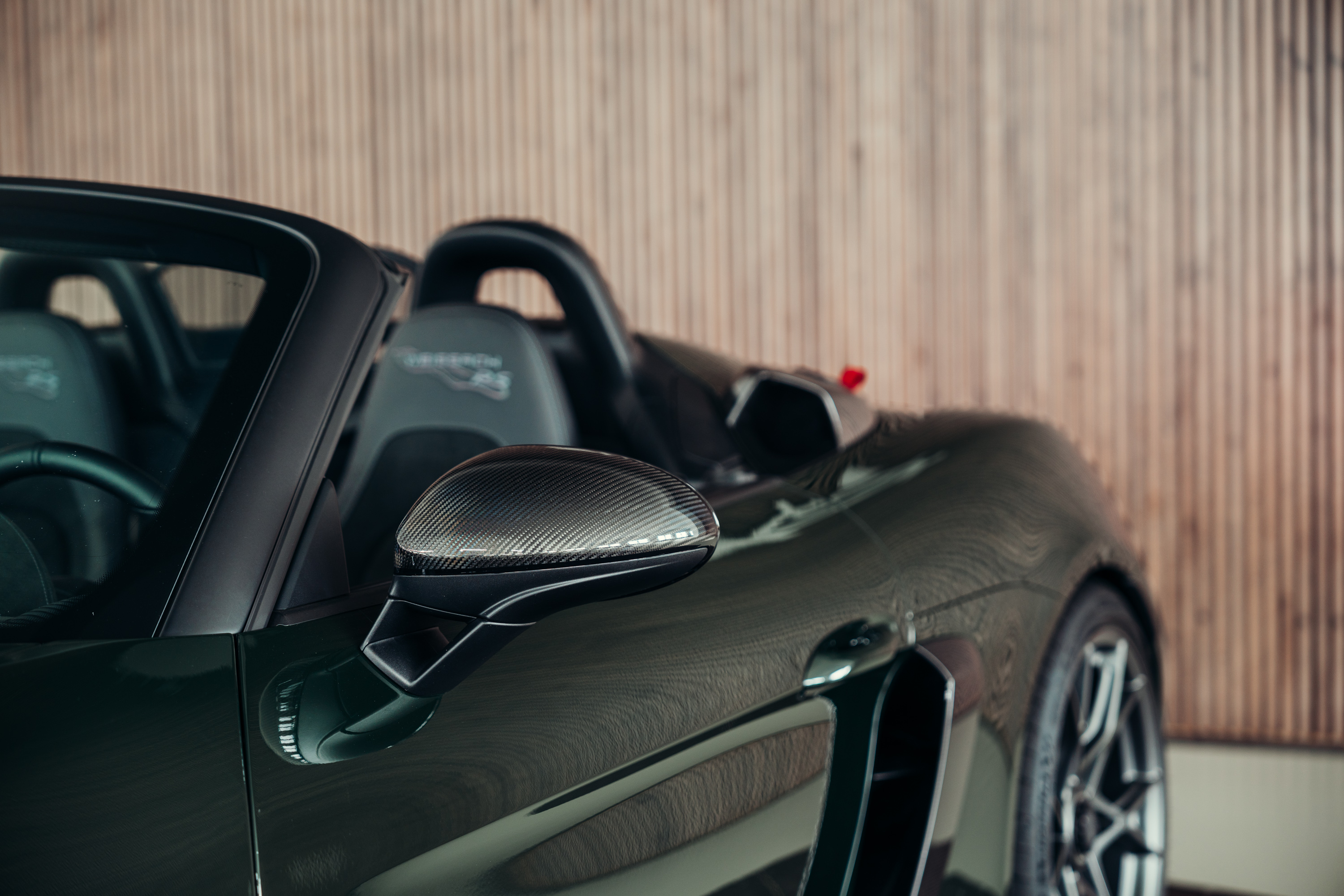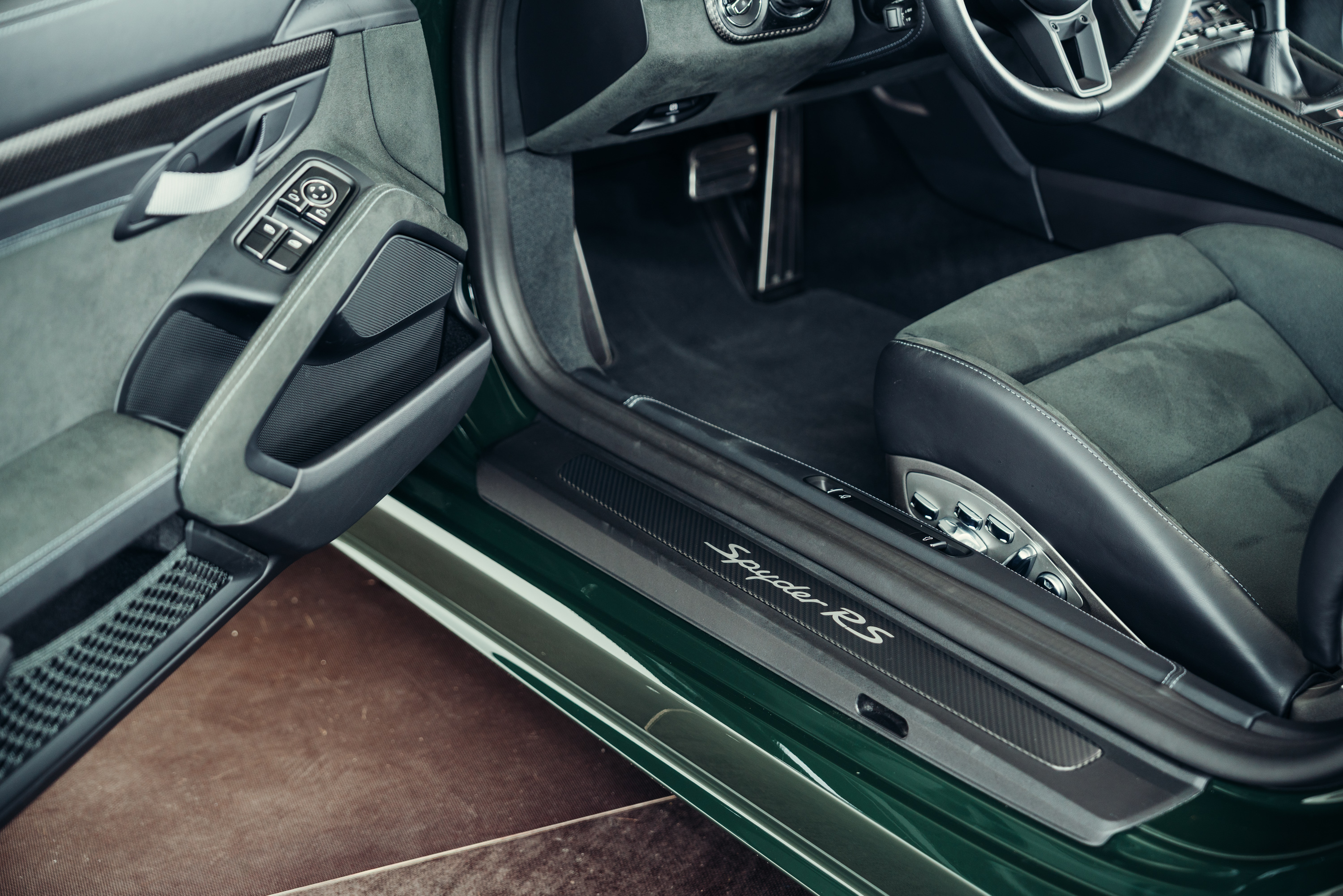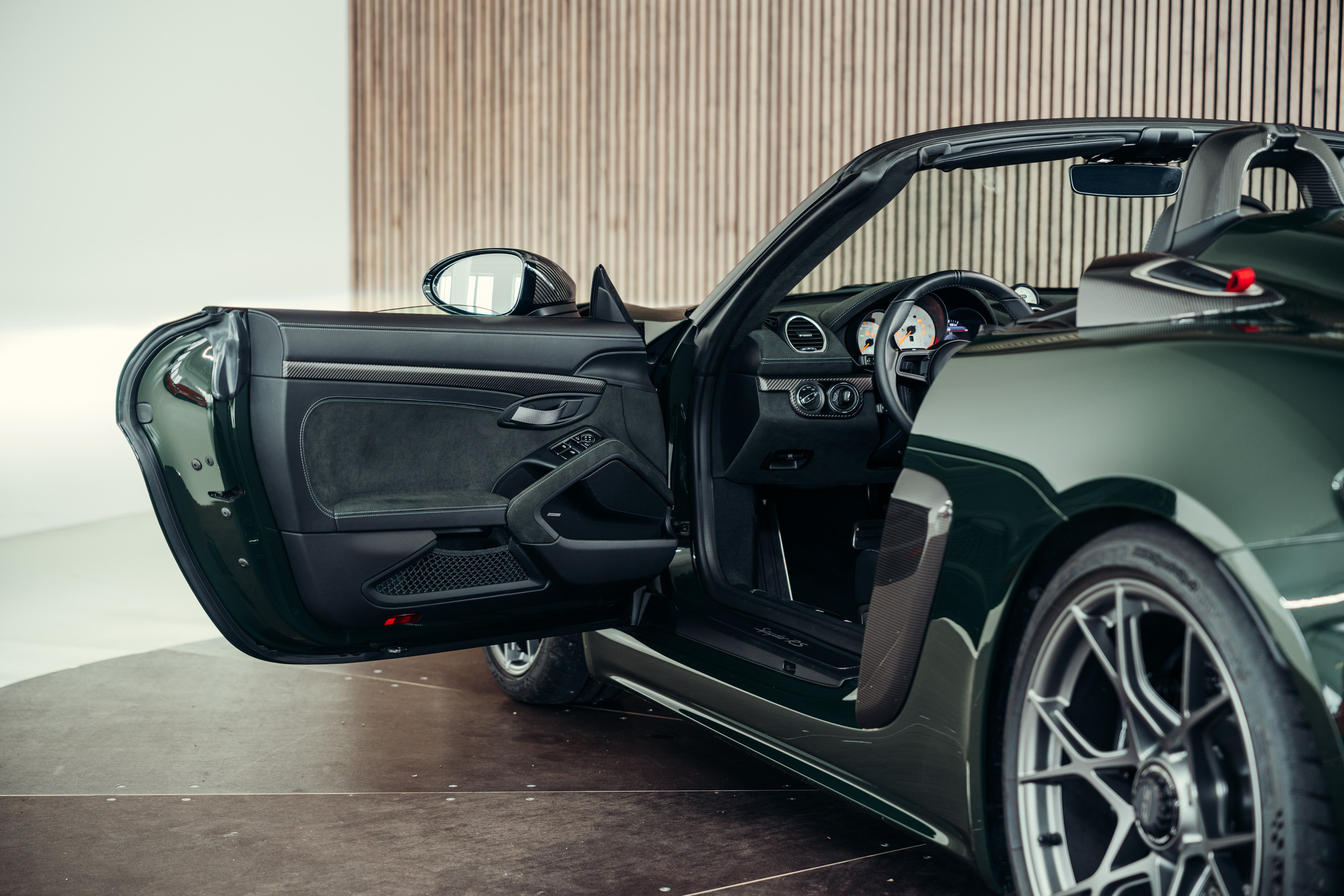 A very well-maintained Porsche 718 Boxster Spyder RS is for sale in the beautiful, sought-after PTS special colour ‘Brewster Green’ with the Weissach package.