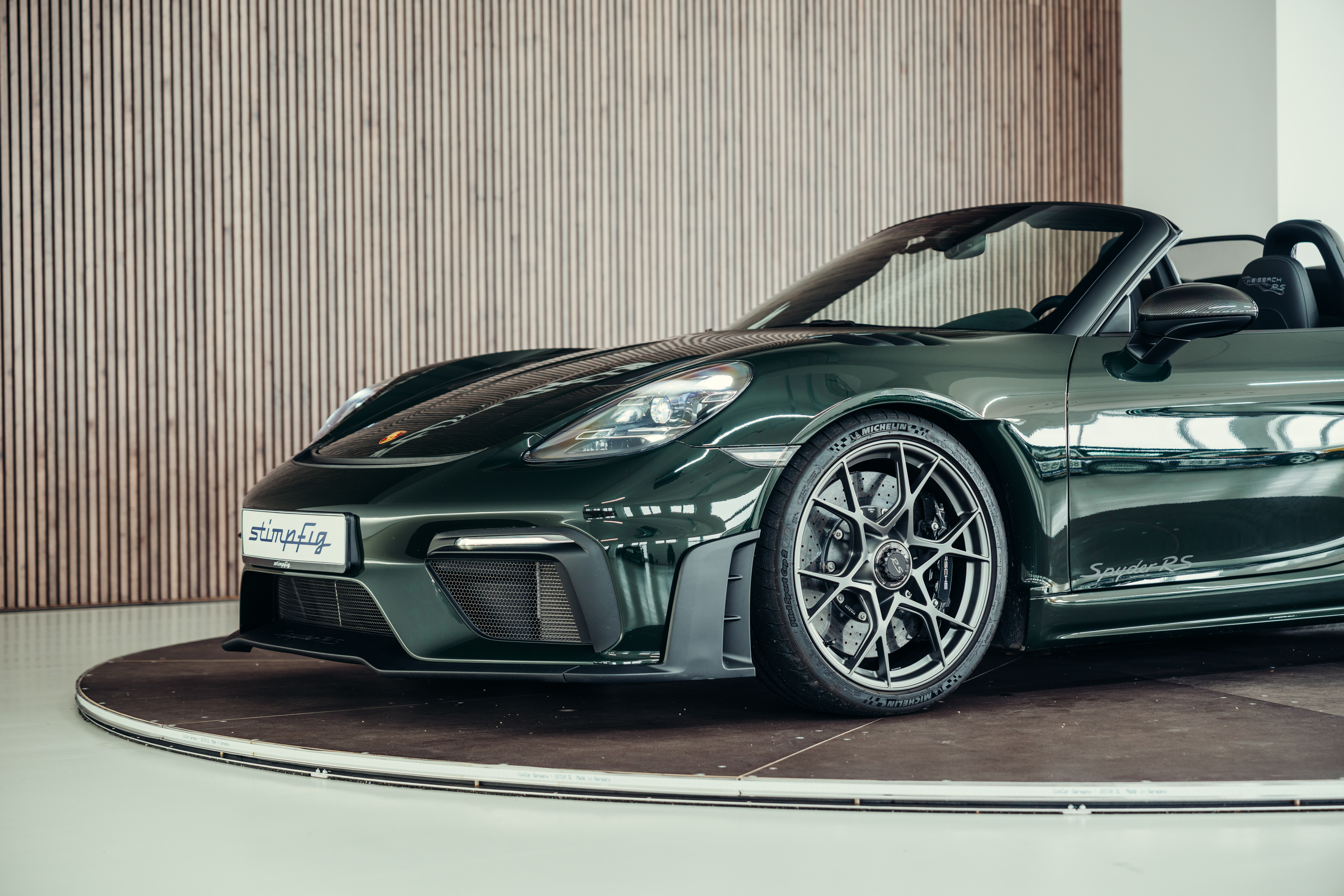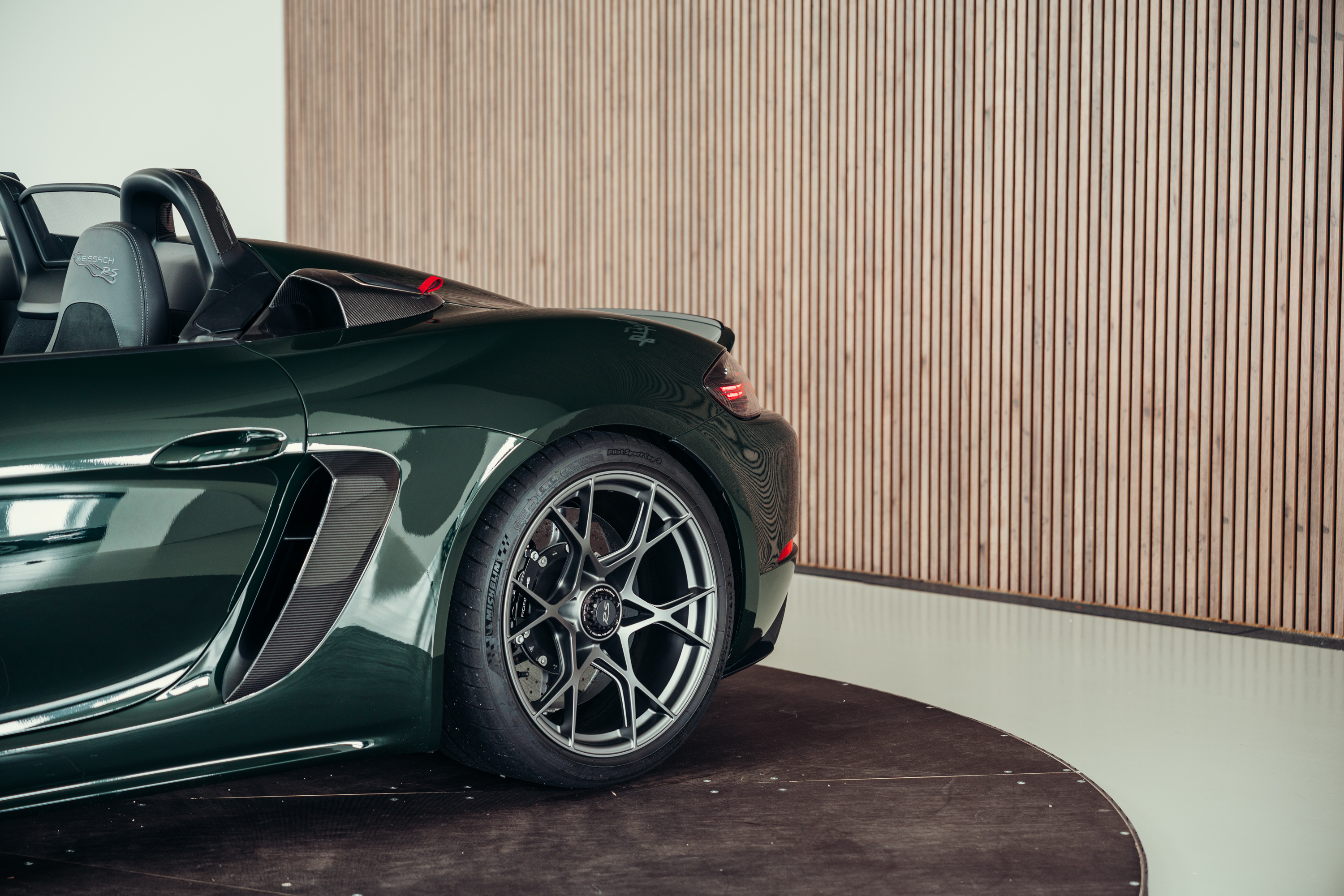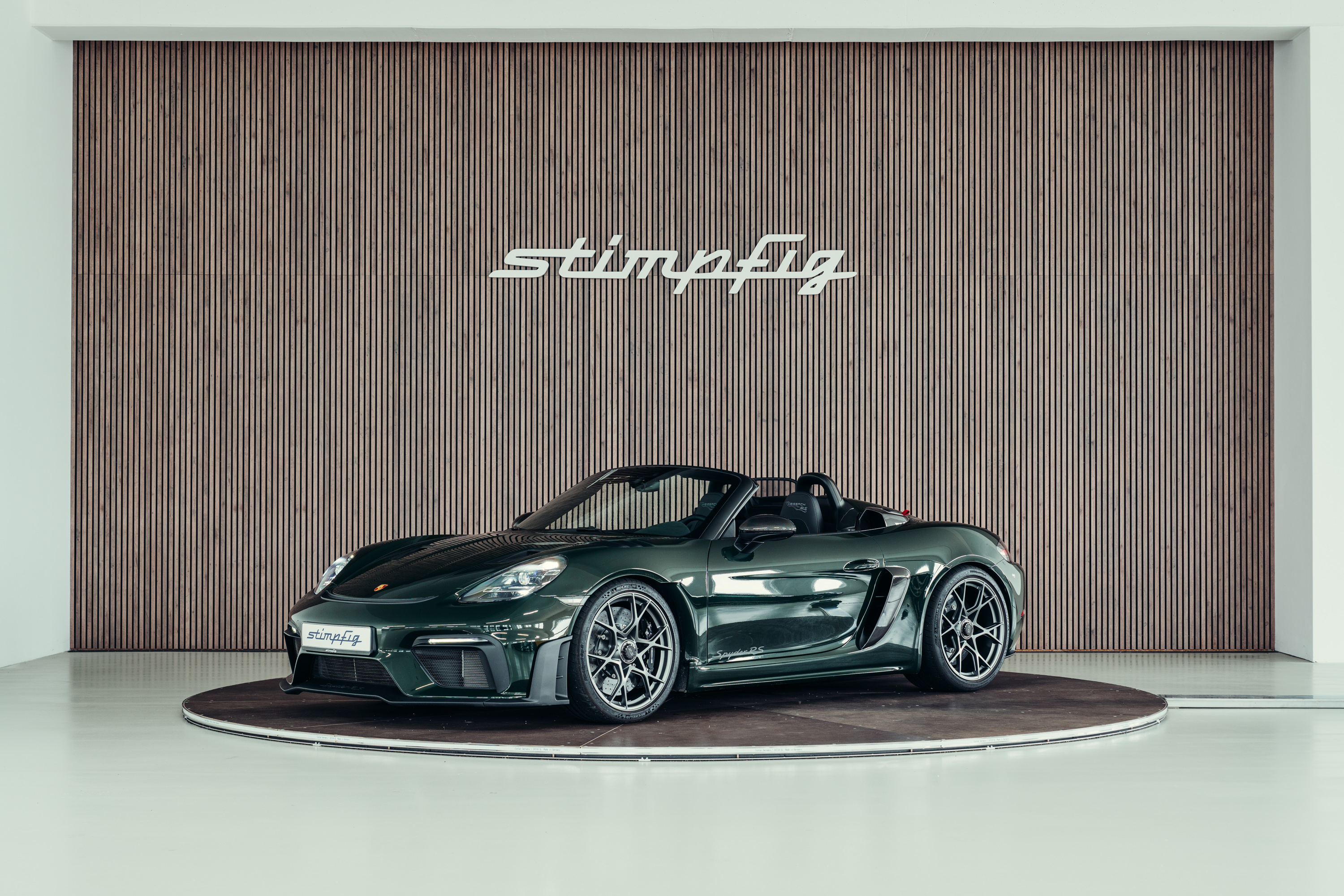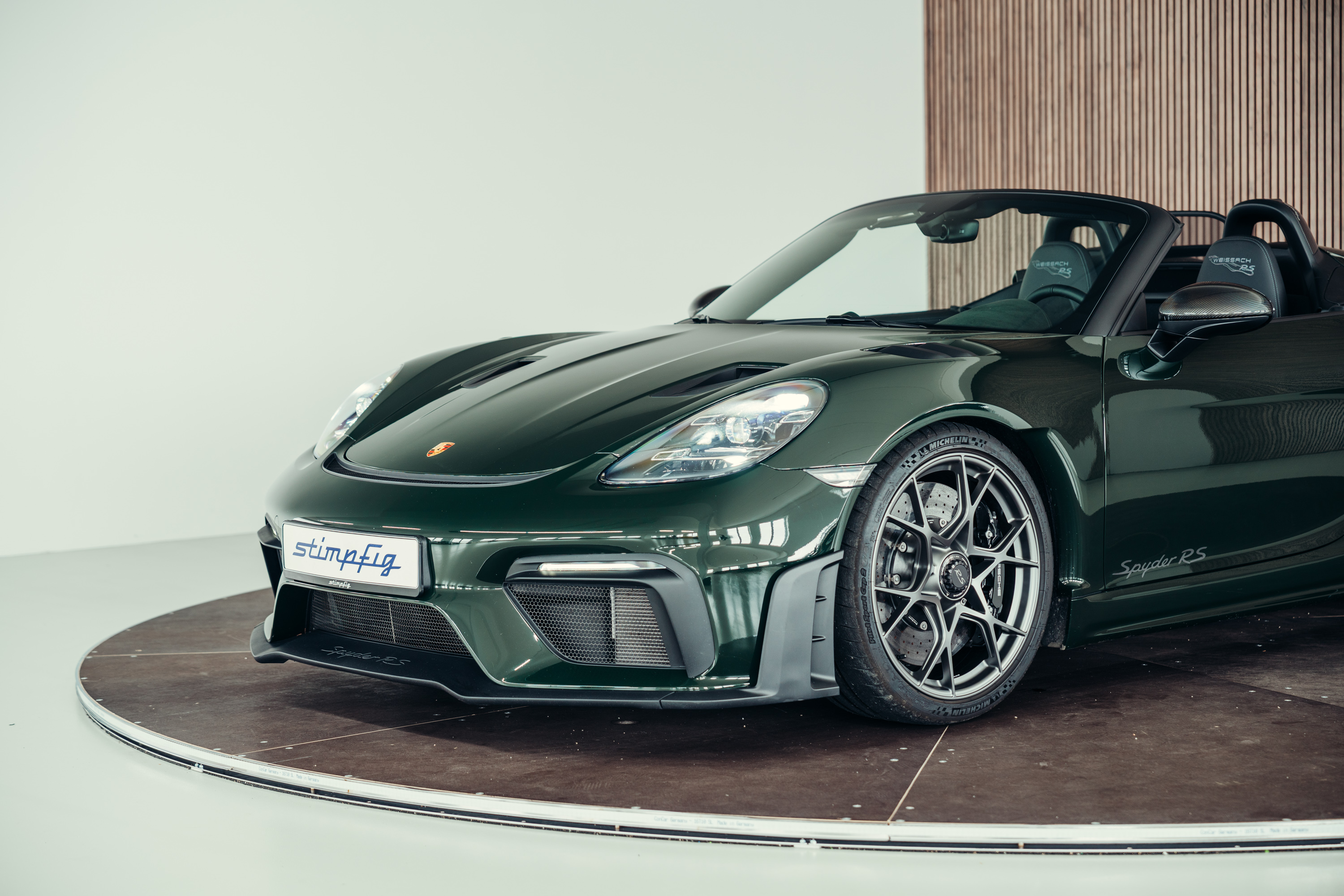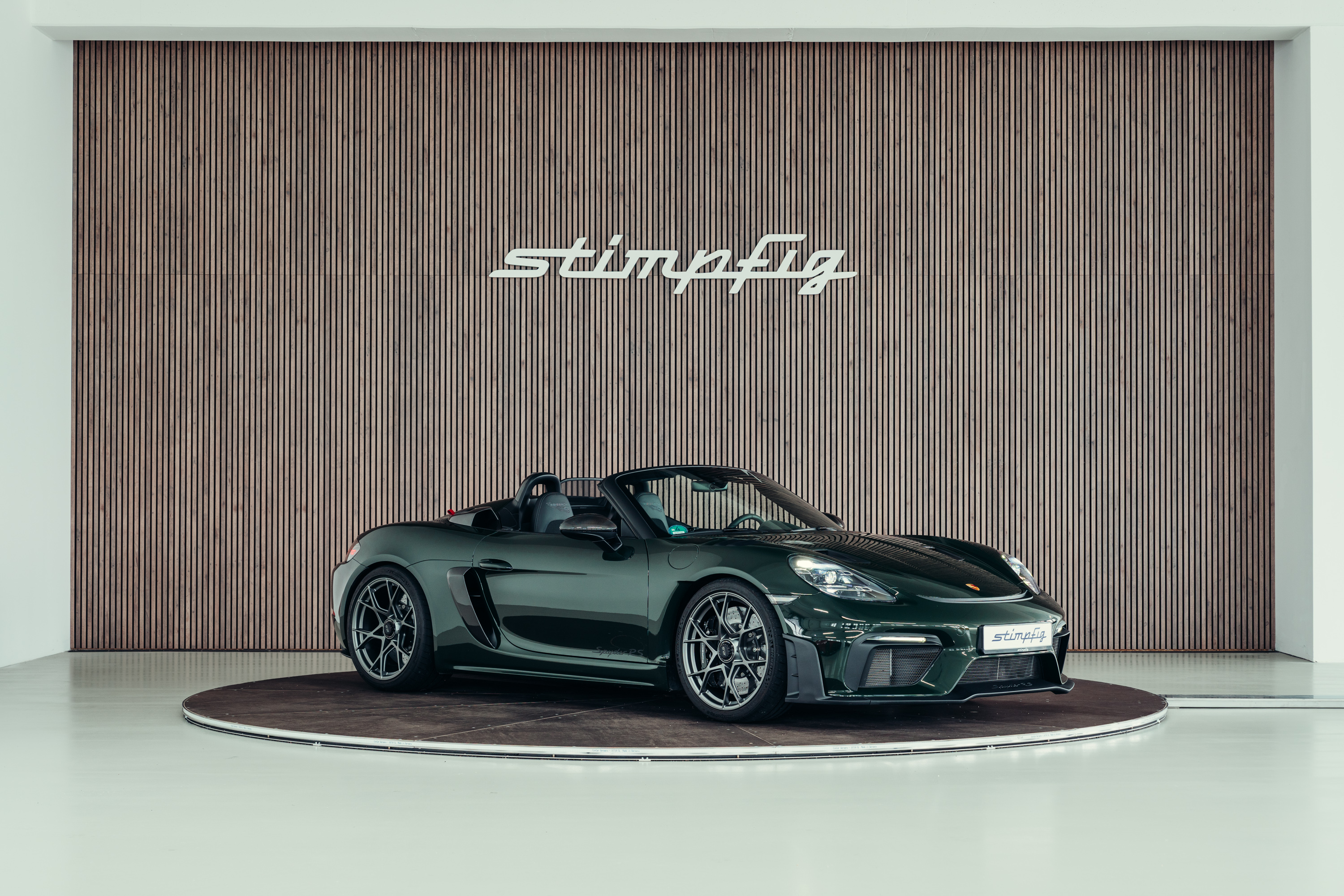 A very well-maintained Porsche 718 Boxster Spyder RS is for sale in the beautiful, sought-after PTS special colour ‘Brewster Green’ with the Weissach package.
