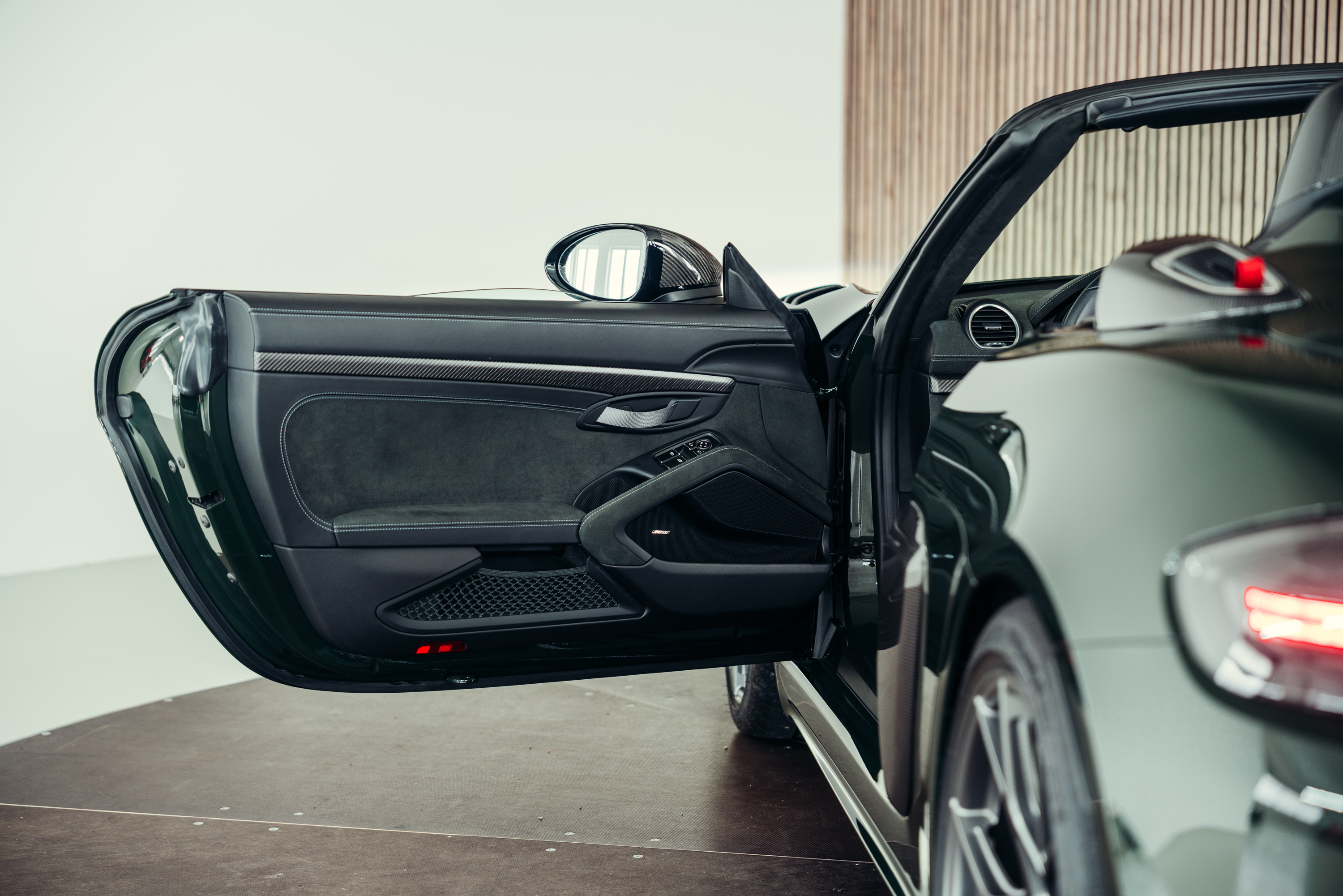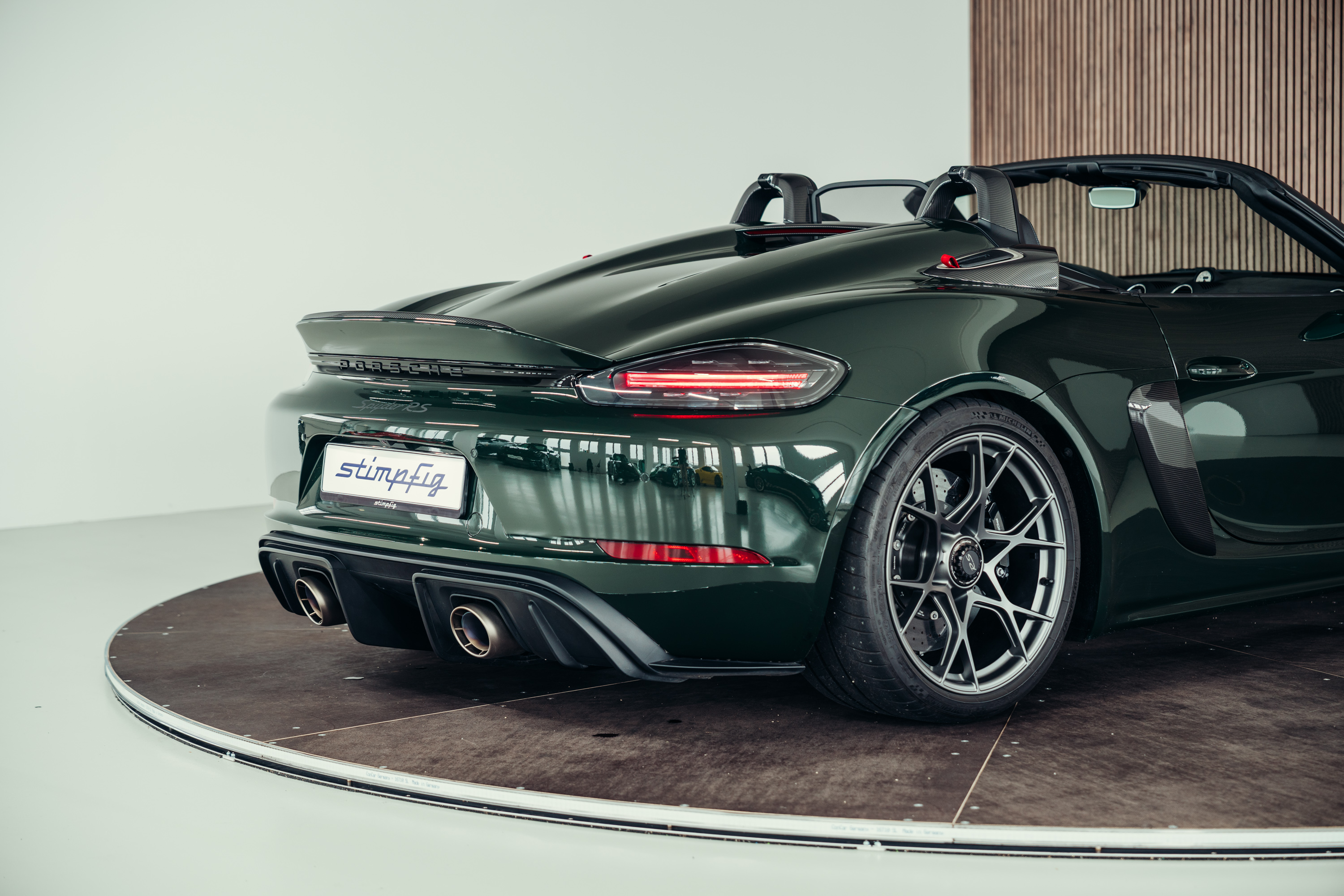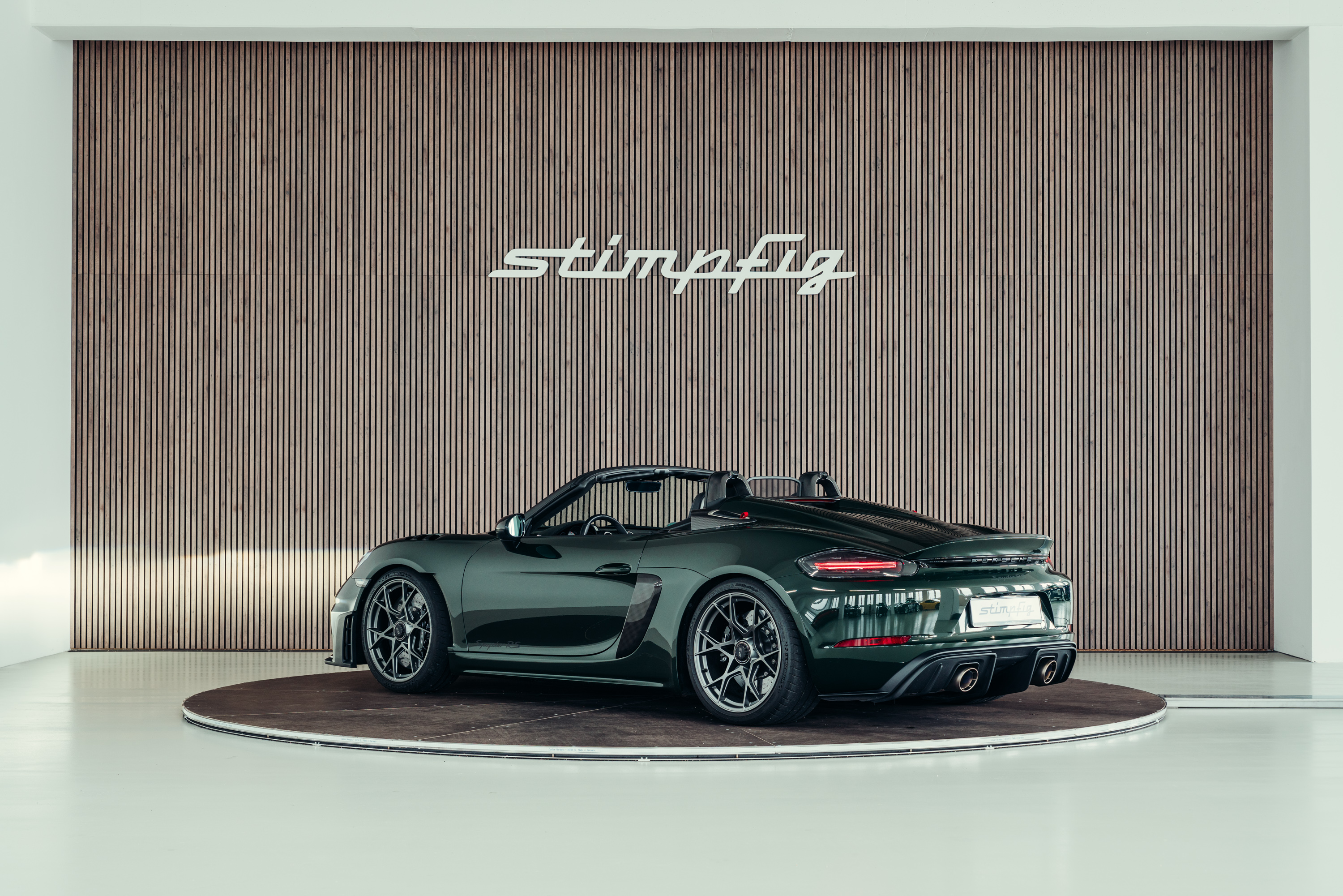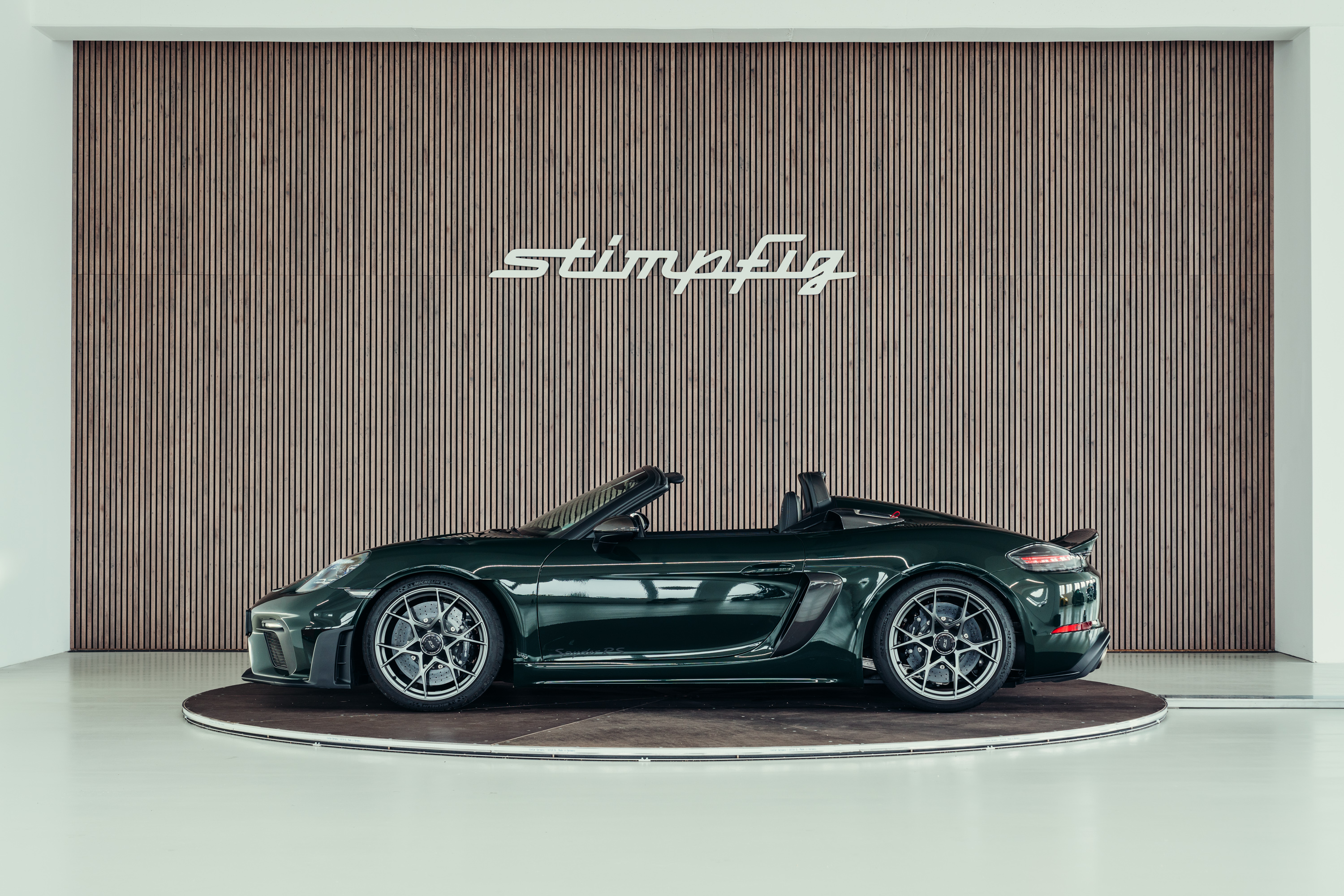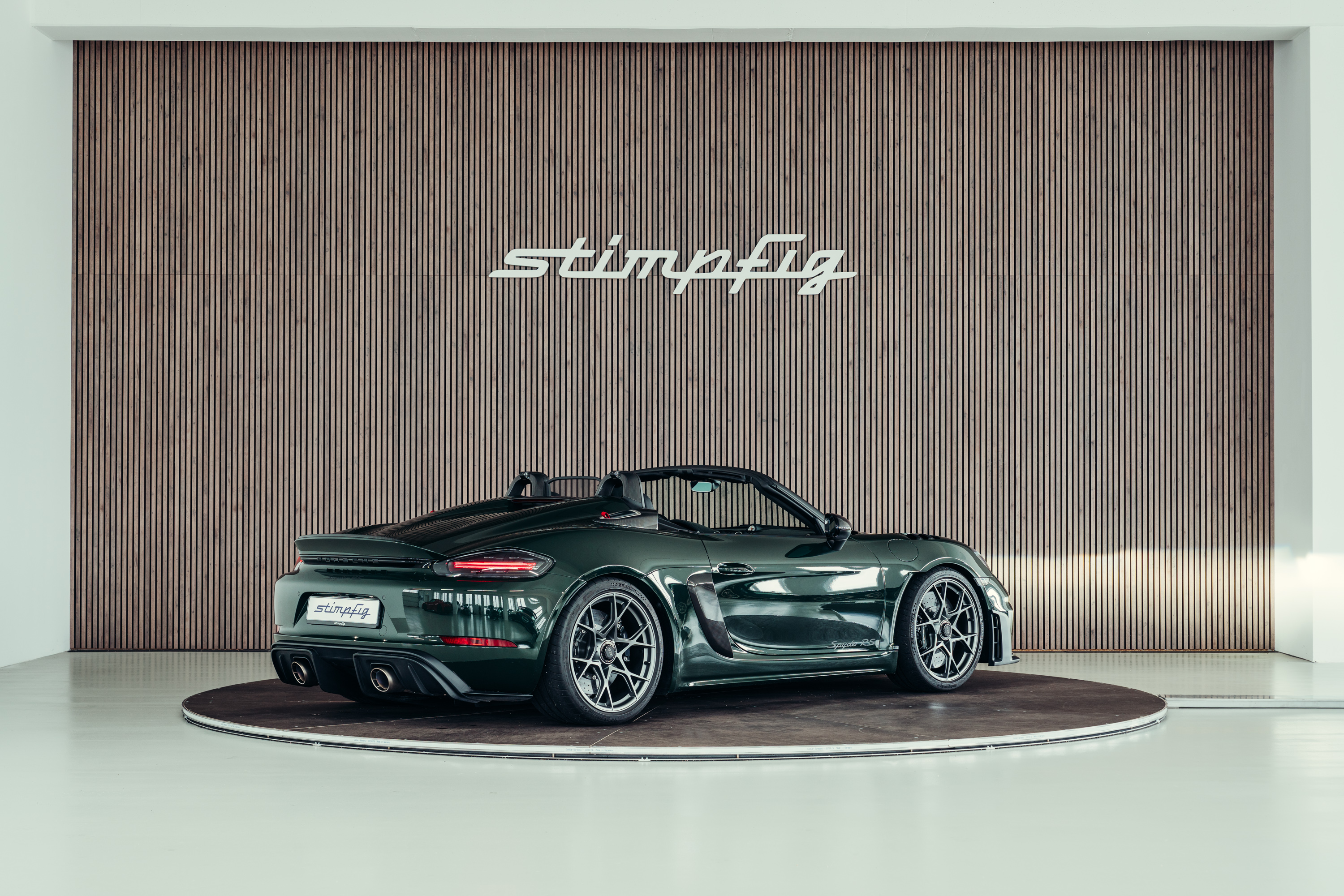 A very well-maintained Porsche 718 Boxster Spyder RS is for sale in the beautiful, sought-after PTS special colour ‘Brewster Green’ with the Weissach package.