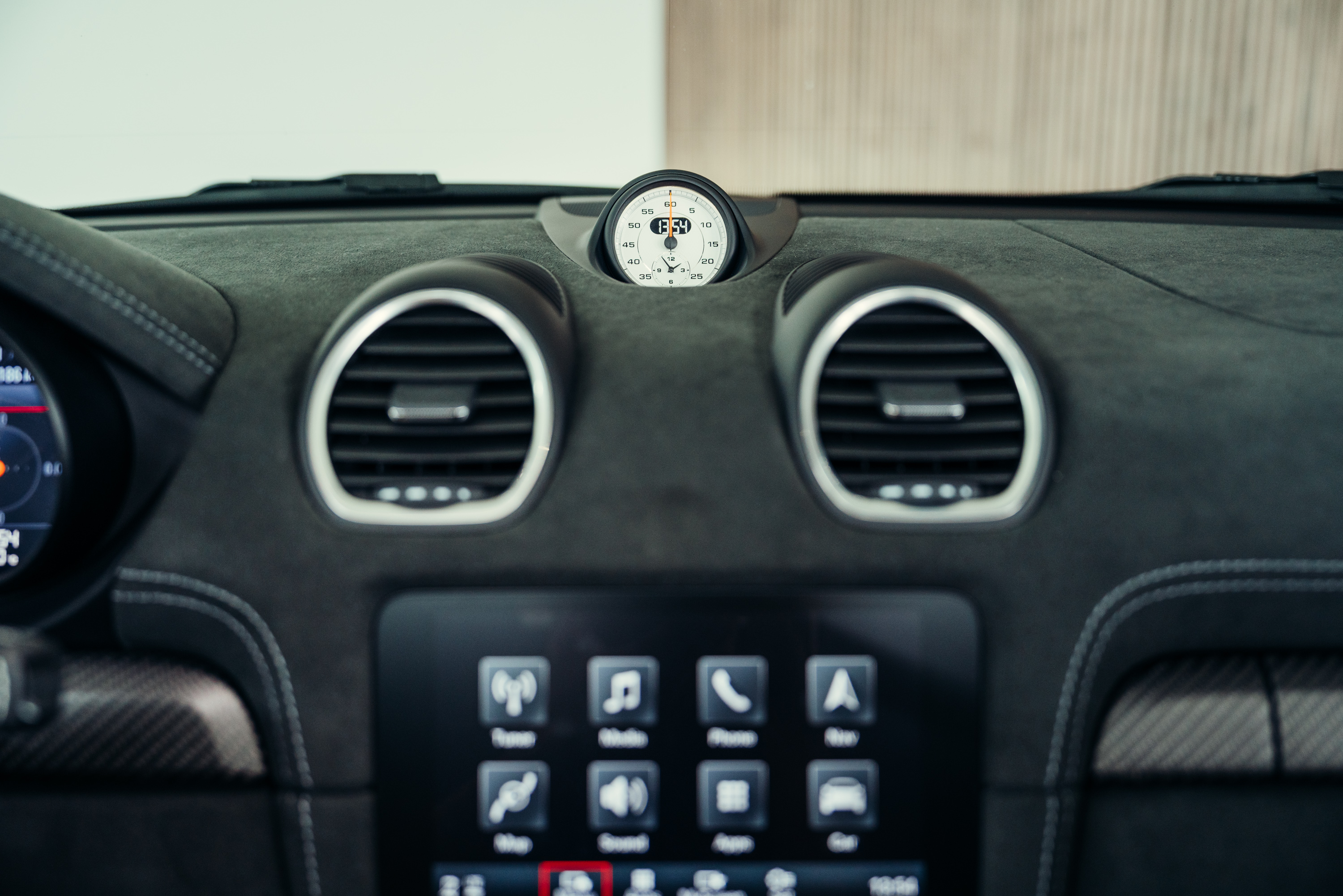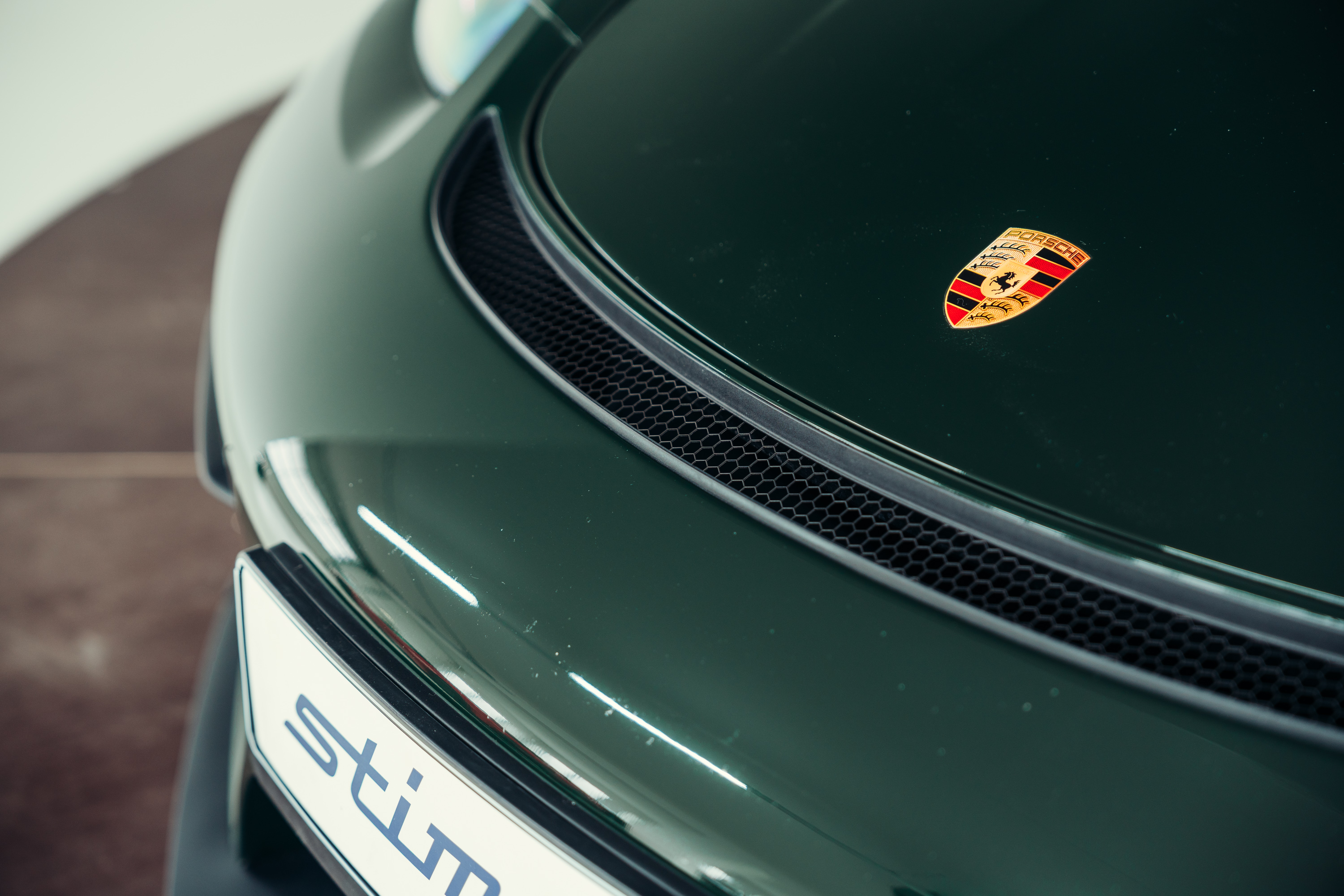 XLJ Porsche crest on Race-Tex storage compartment lid