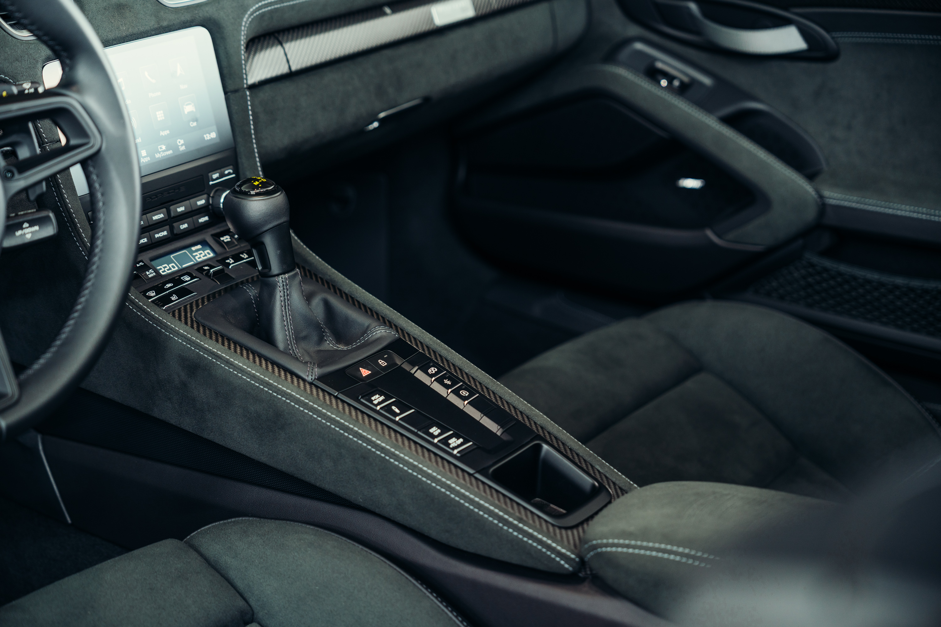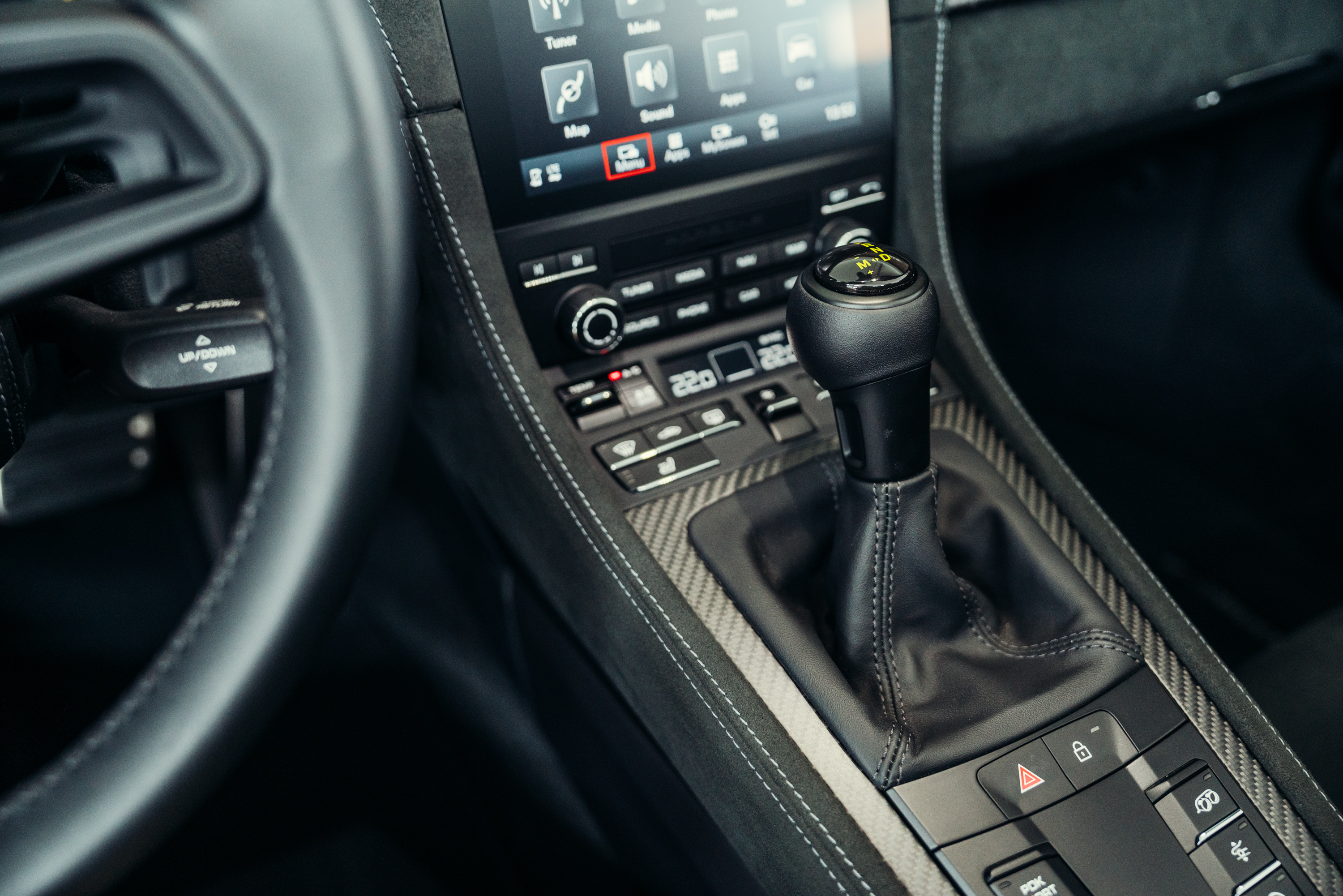 878 Steering wheel rim and PDK selector lever in smooth black leather