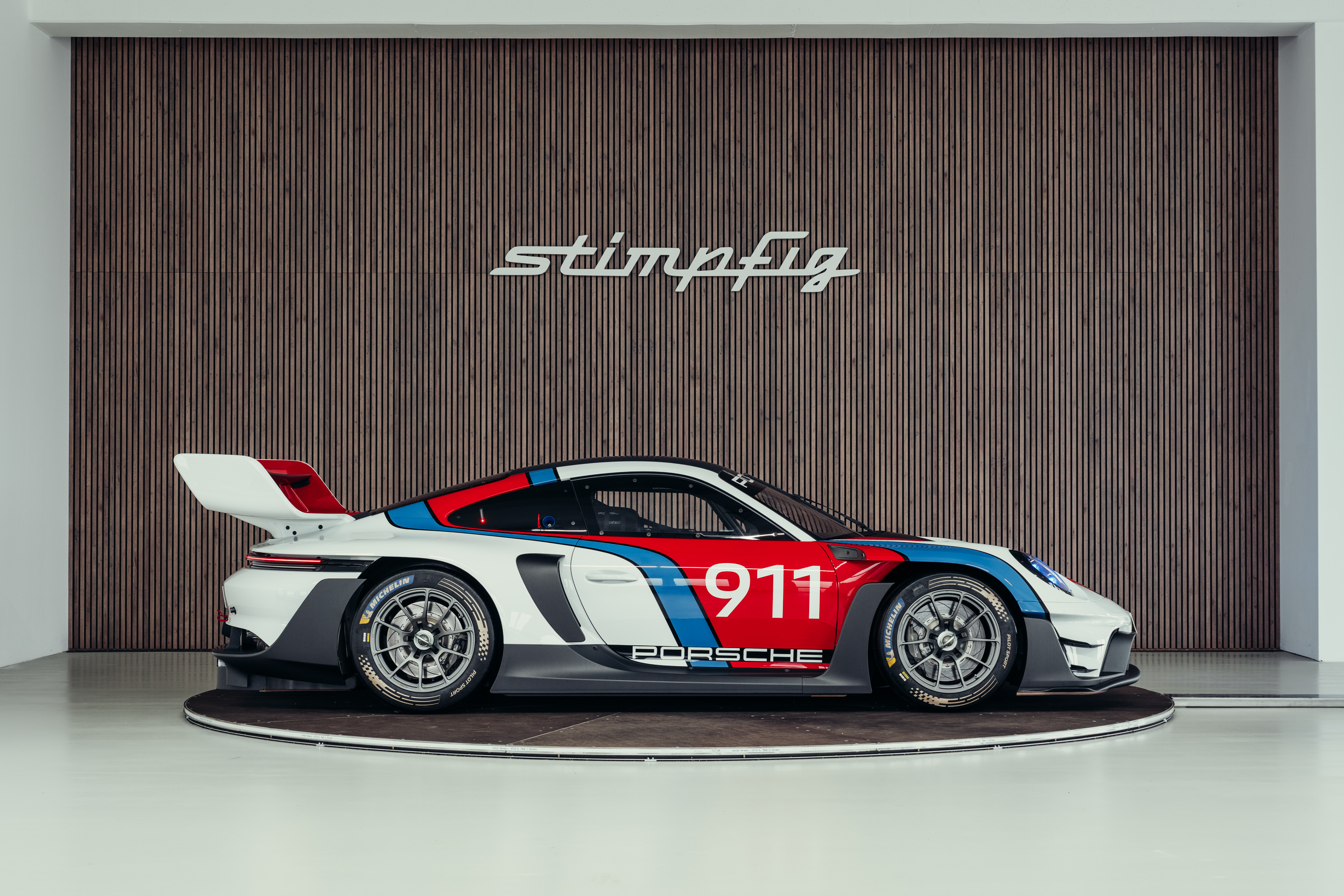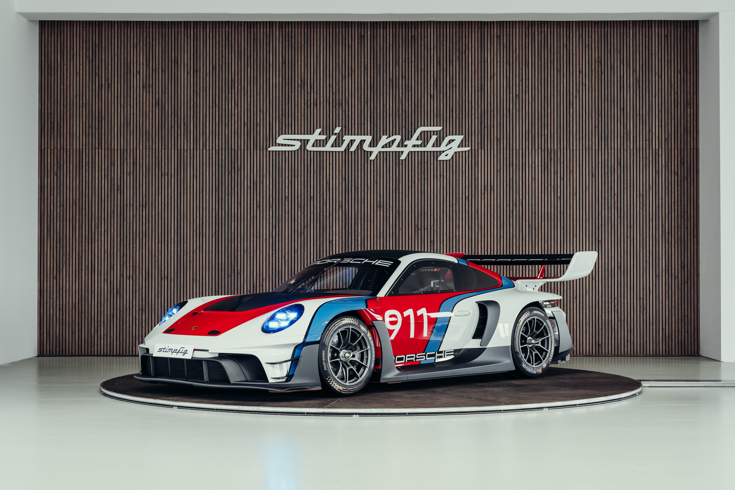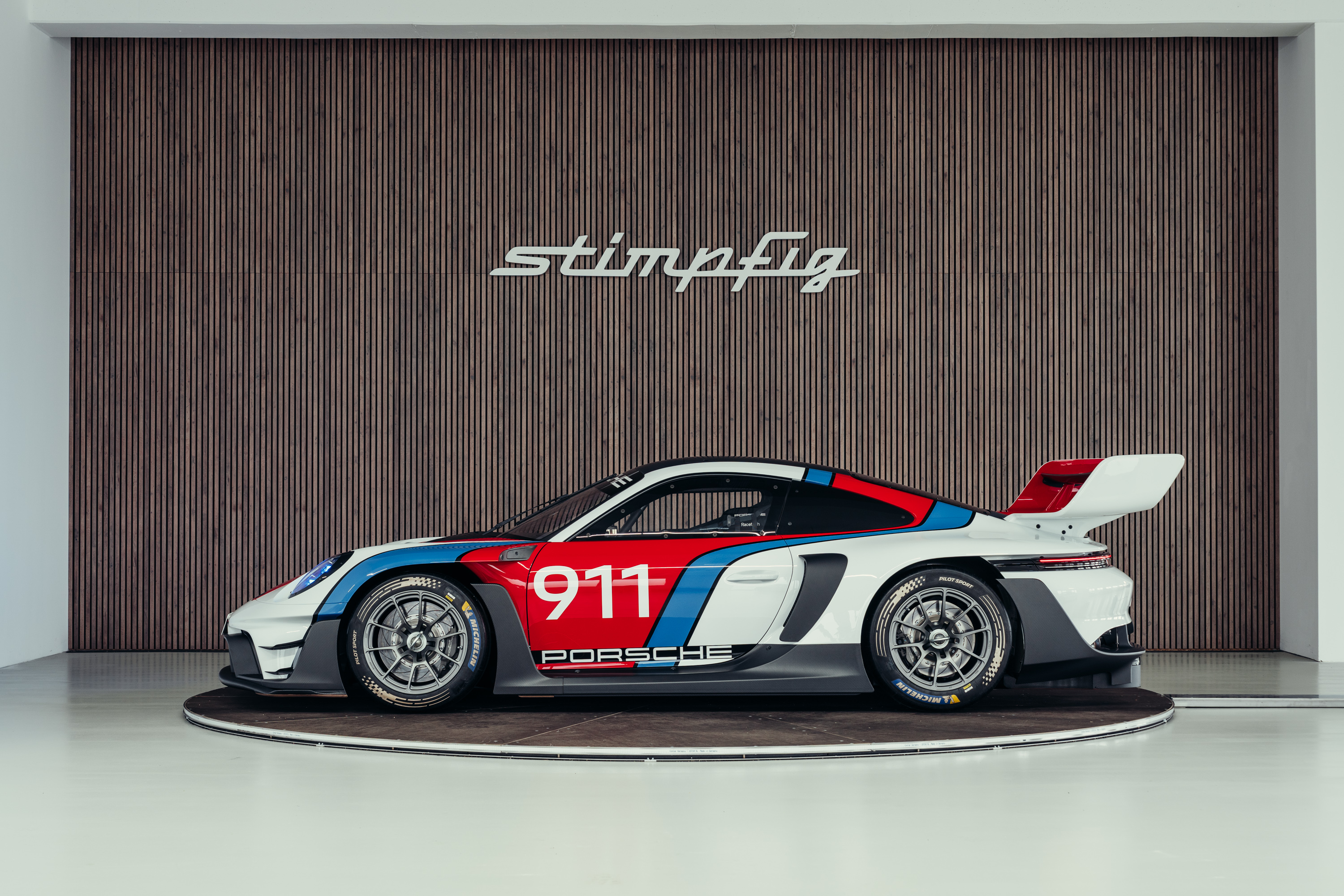 The vehicle is based on the Porsche 911 GT3 R (992 generation) and was developed uncompromisingly as a pure race car. Power comes from a high-revving 4.2-liter naturally aspirated flat-six engine producing up to approximately 620 hp, paired with a sequential racing gearbox. The chassis, aerodynamics, and braking system reflect the very latest GT3 racing standards and are fully optimized for track use. The striking white, blue, and red Rennsport Reunion livery is entirely hand-painted rather than wrapped. This elaborate multi-layer paint finish highlights the exclusive character of this special model and deliberately references Porsche’s iconic motorsport heritage.