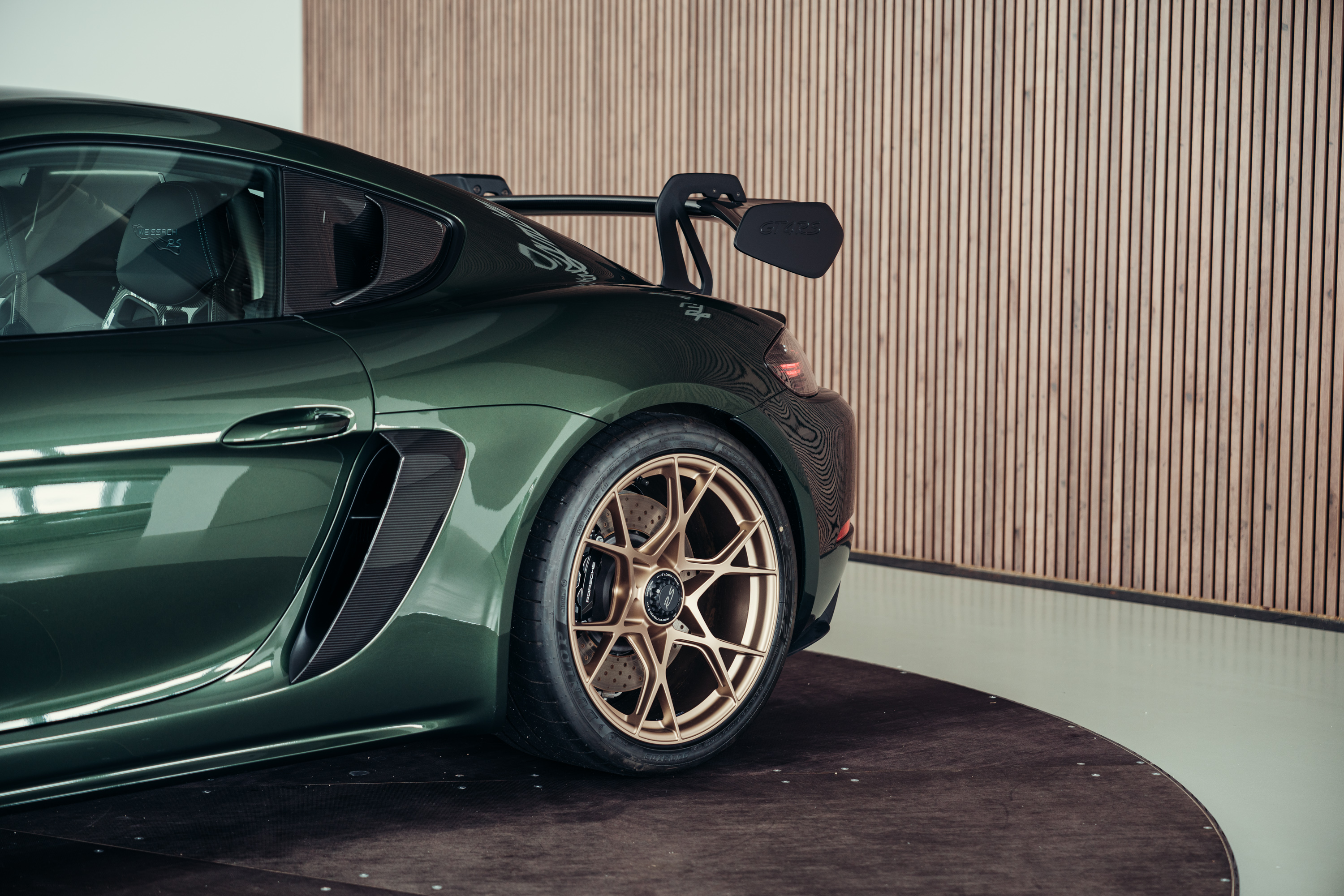 For sale is a very well-maintained and as-new Porsche 718 Cayman GT4 RS in the exclusive PTS special color “Oak Green Metallic.” This vehicle combines purist performance with the highest level of individuality and impresses with an exceptionally extensive specification.