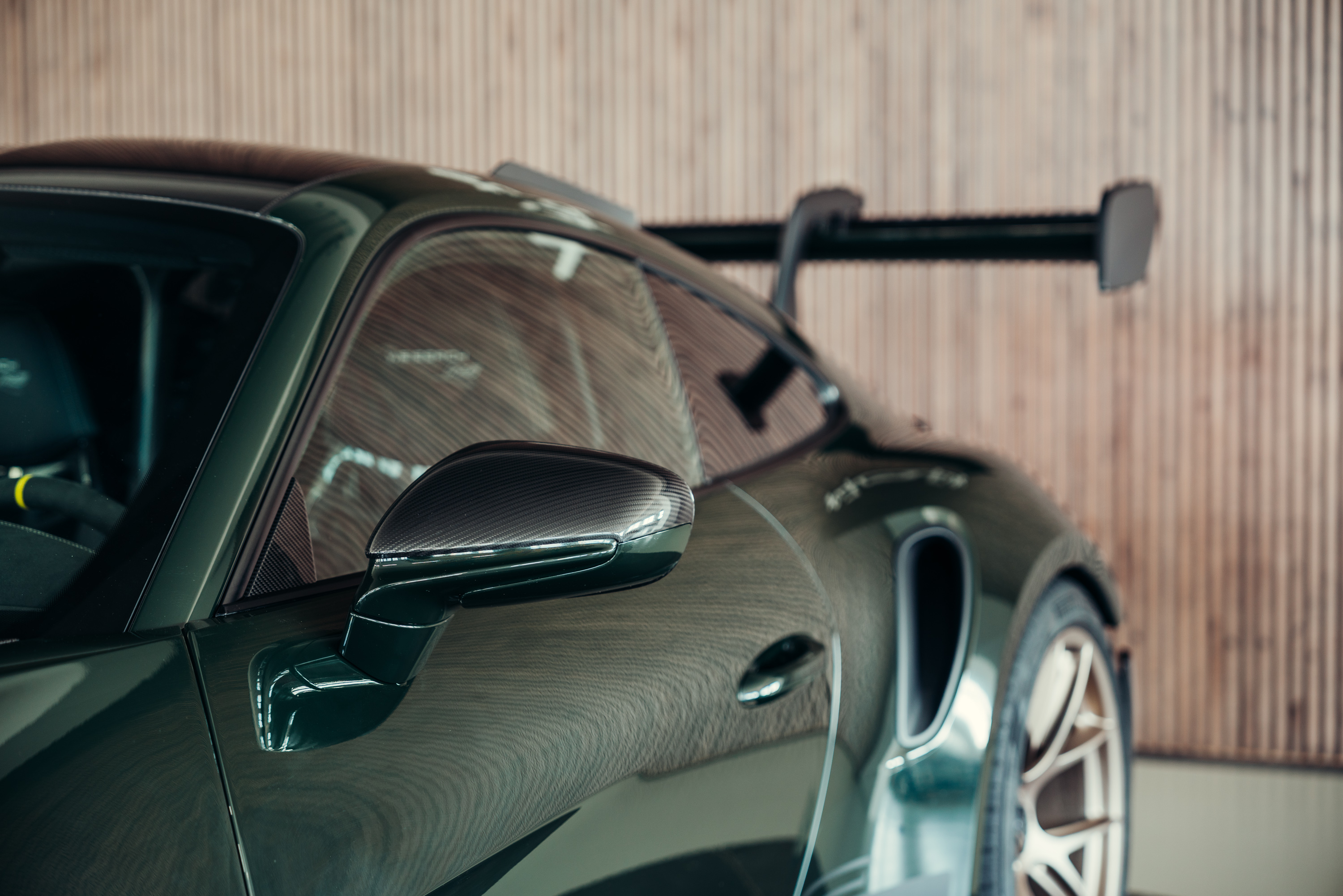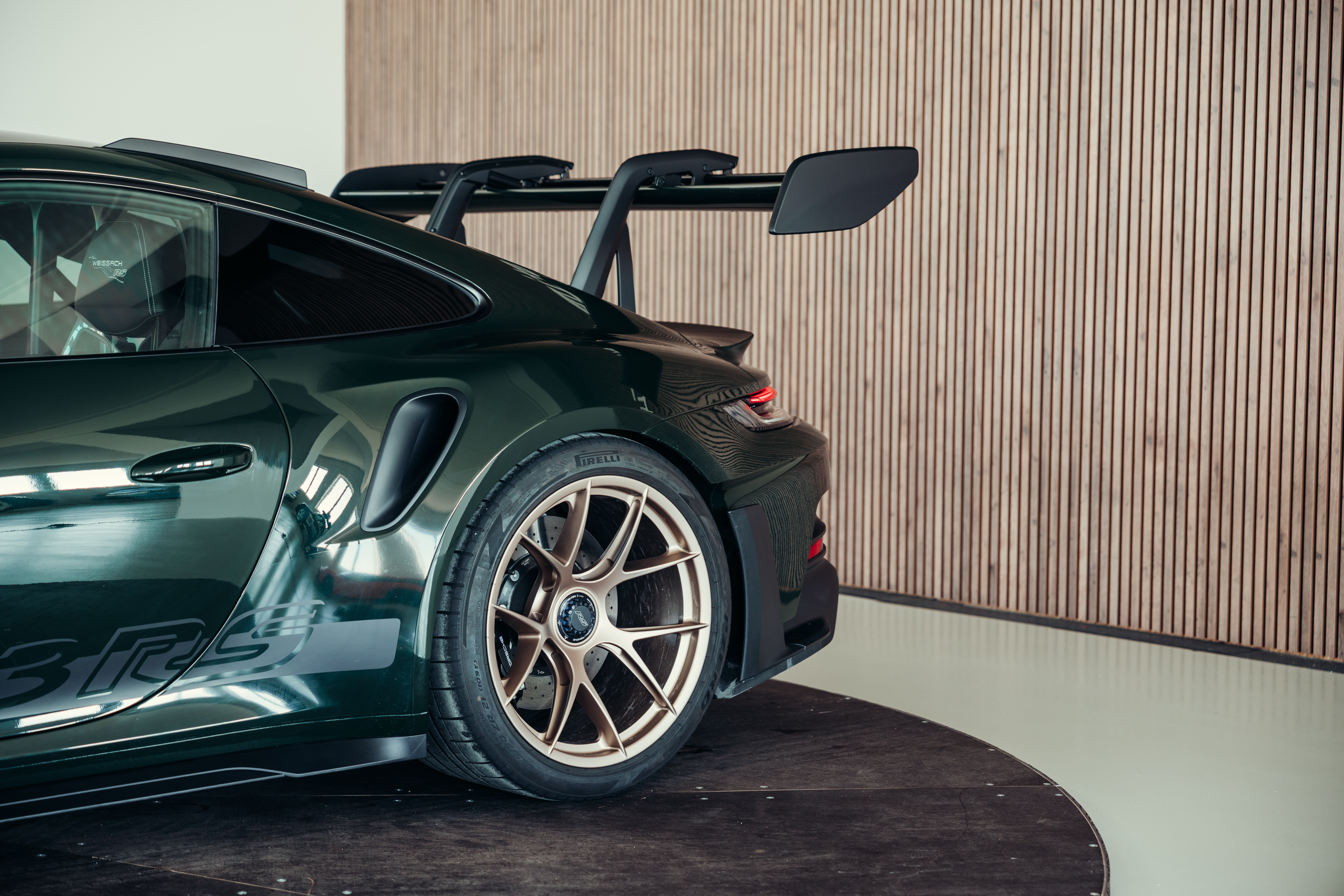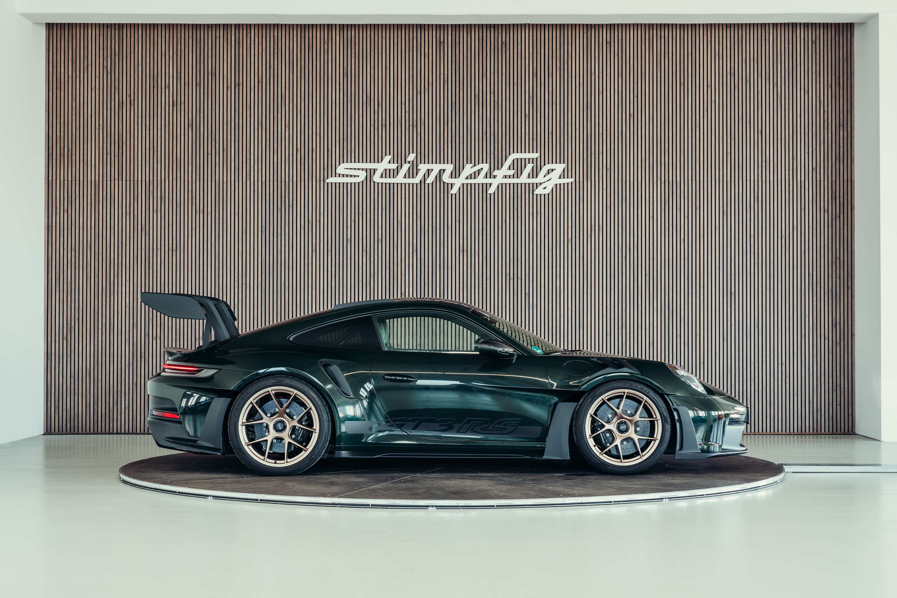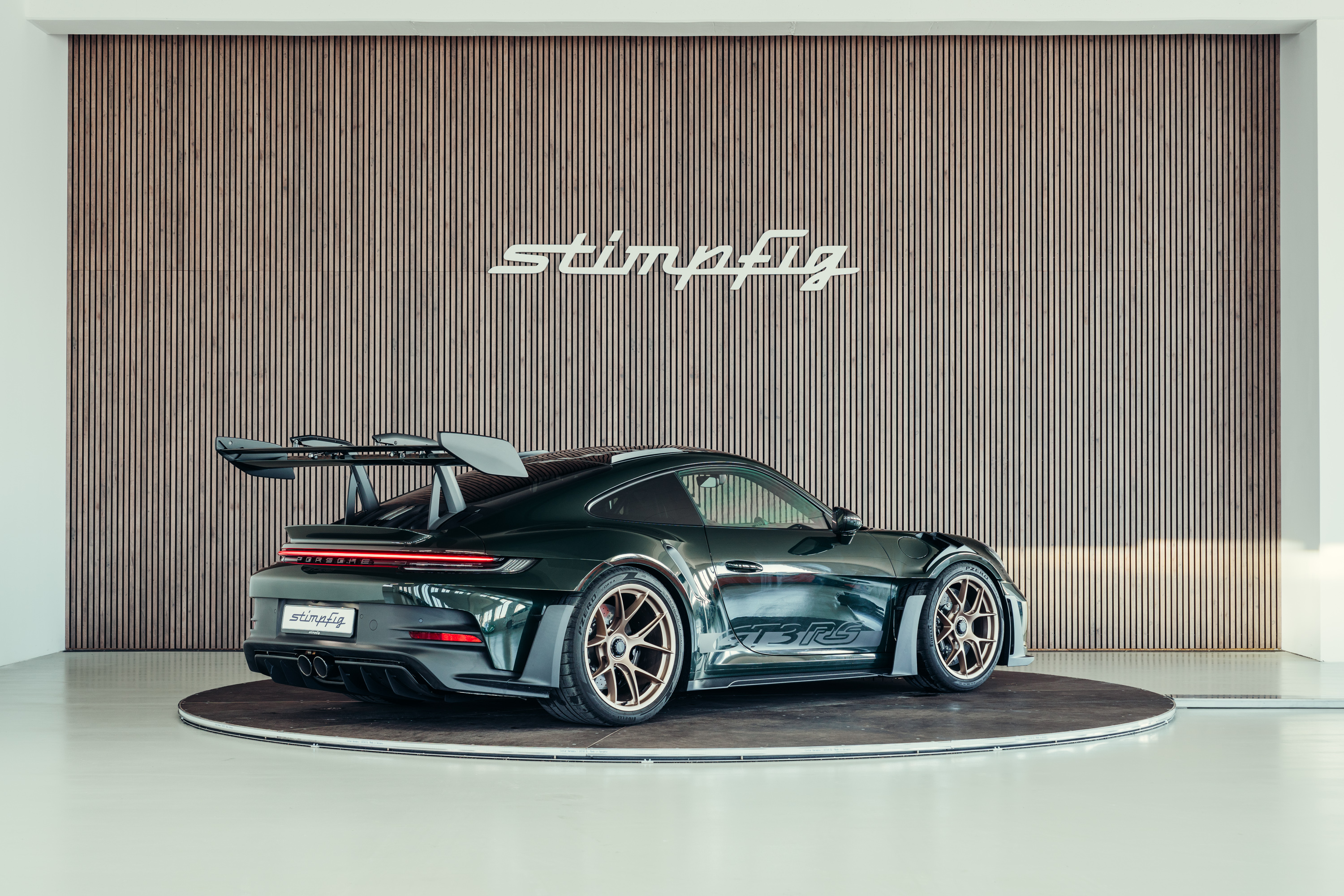 For sale is an as-new Porsche 992 GT3 RS finished in the exclusive Paint to Sample color “Brewster Green.” The vehicle impresses with its exceptional performance, state-of-the-art motorsport technology, and an especially extensive and tastefully specified equipment configuration.