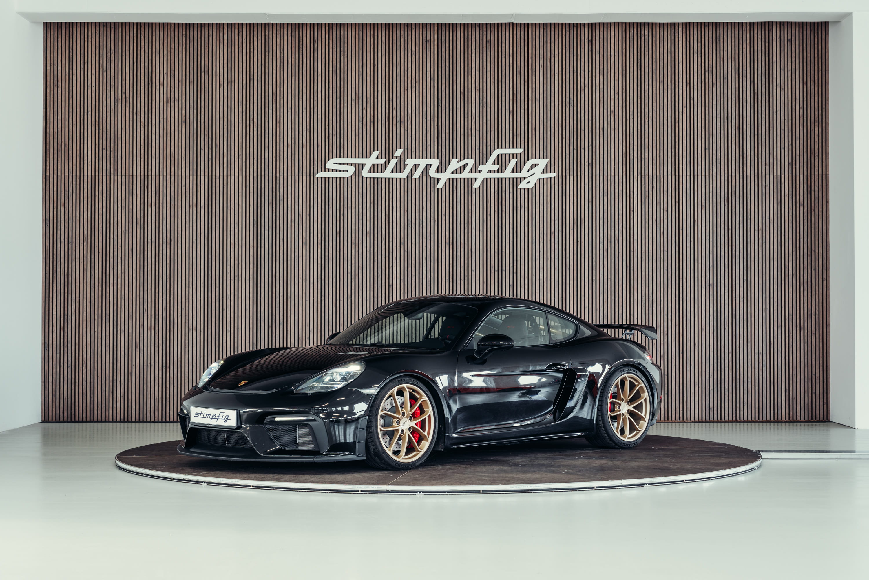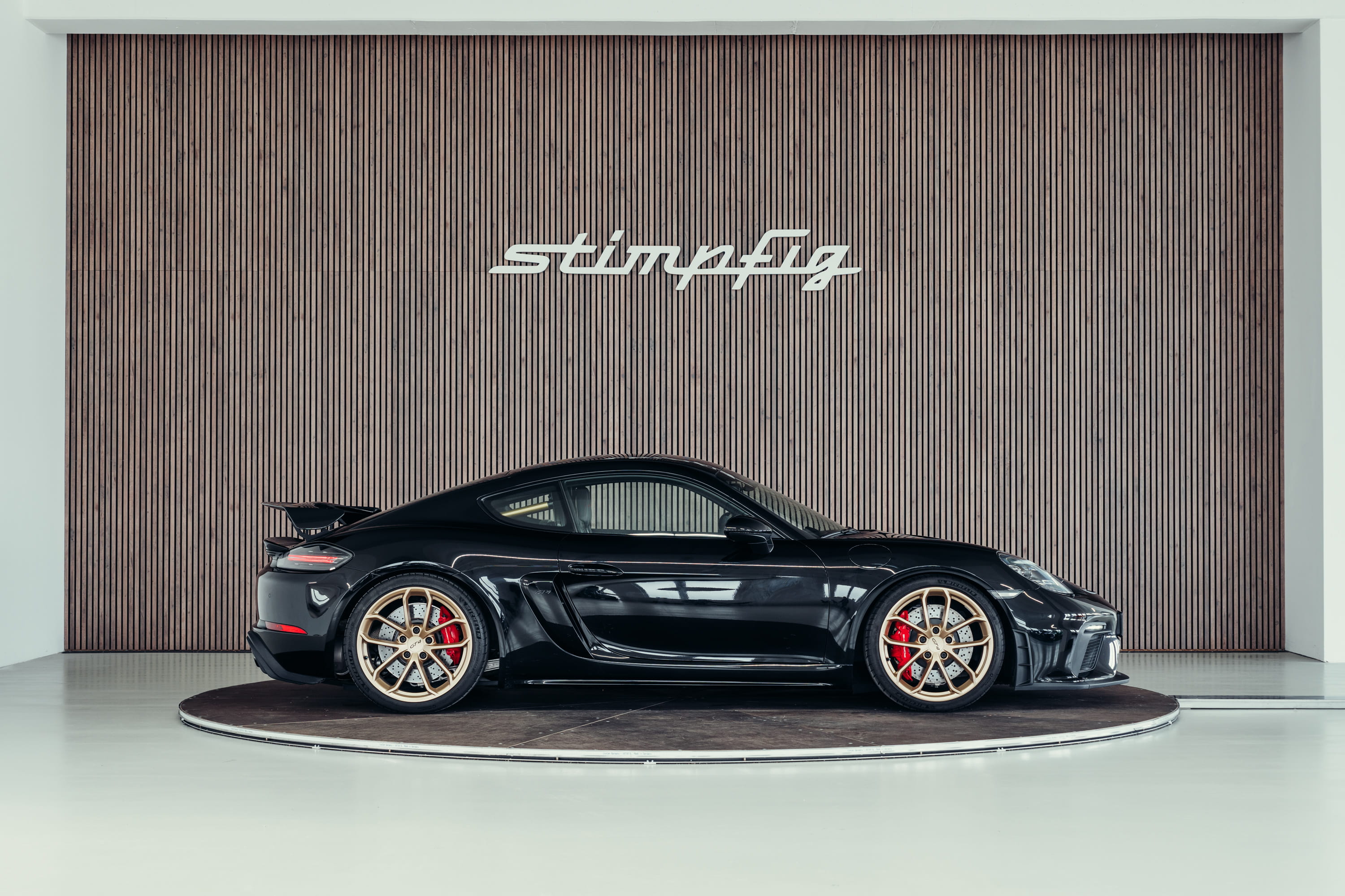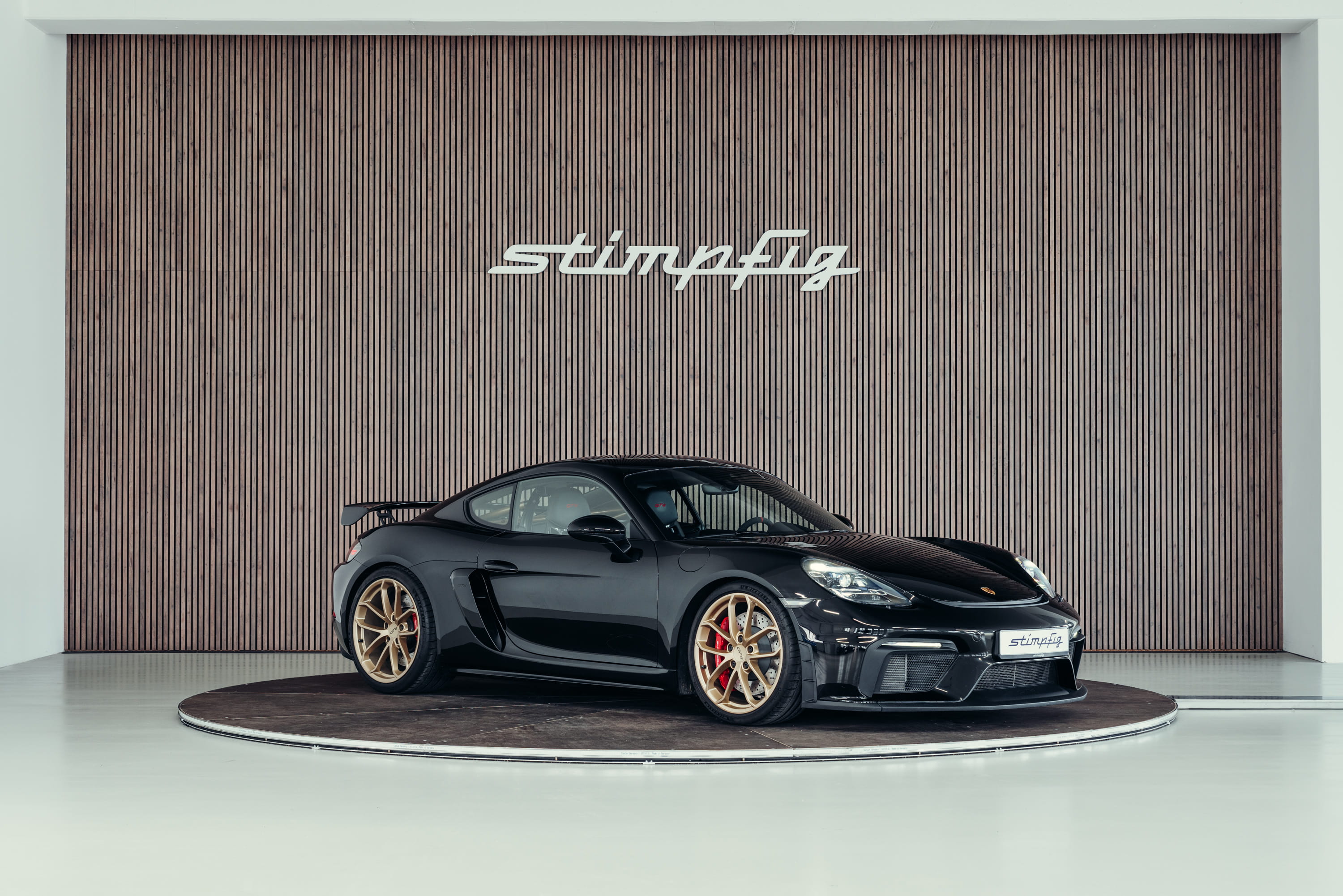 For sale is a Porsche 718 Cayman GT4 finished in black. The vehicle is presented in very good condition and impresses with its clear, functional design as a purist sports car.