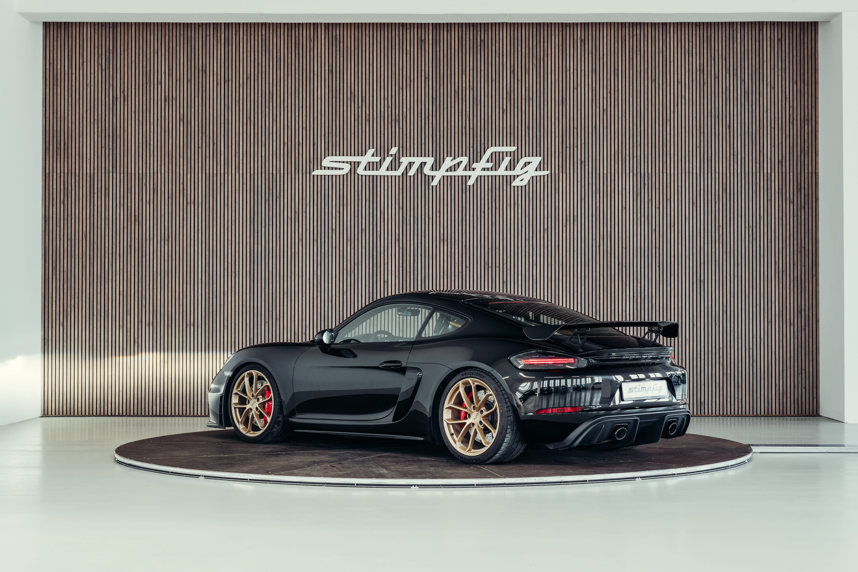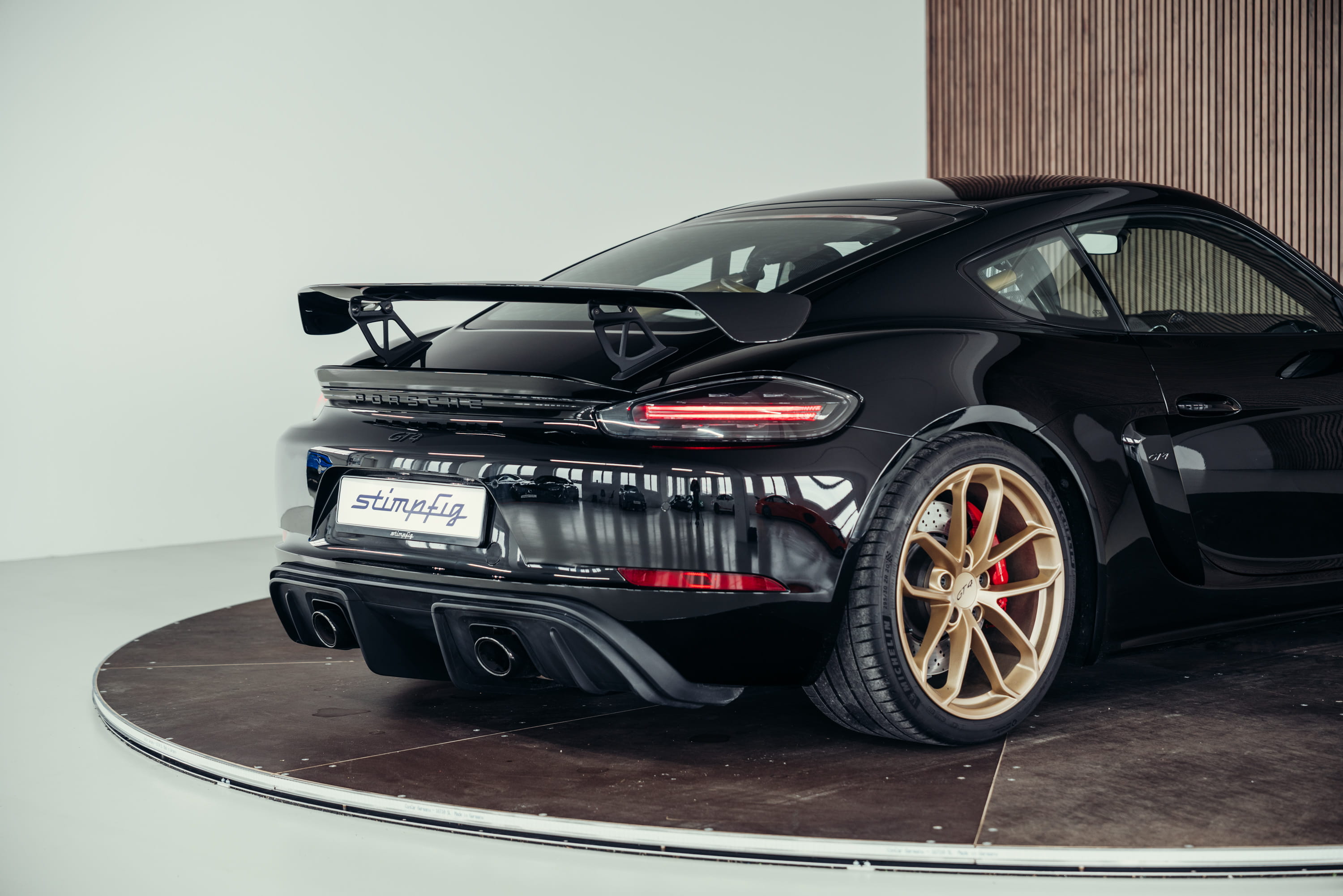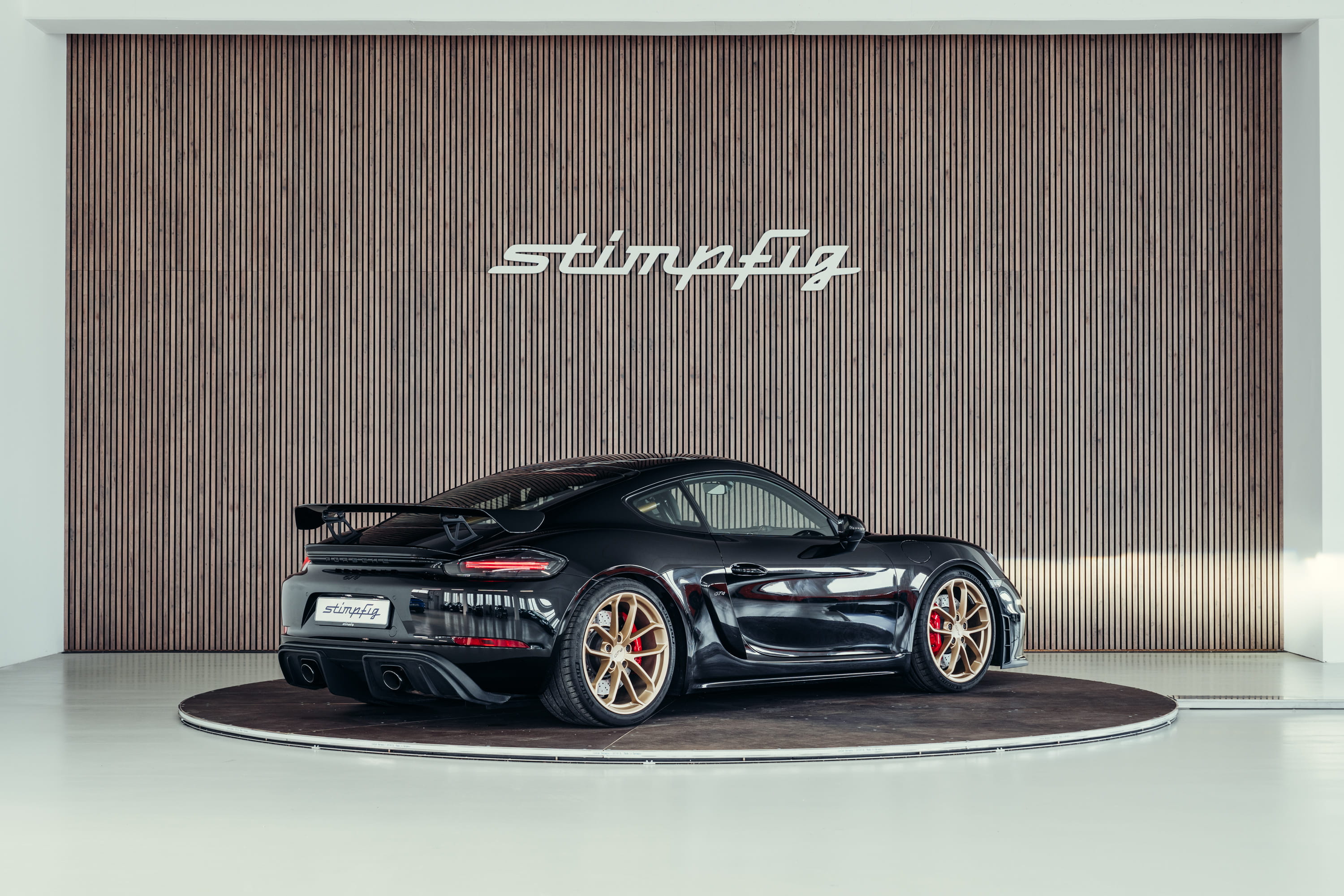 For sale is a Porsche 718 Cayman GT4 finished in black. The vehicle is presented in very good condition and impresses with its clear, functional design as a purist sports car.
