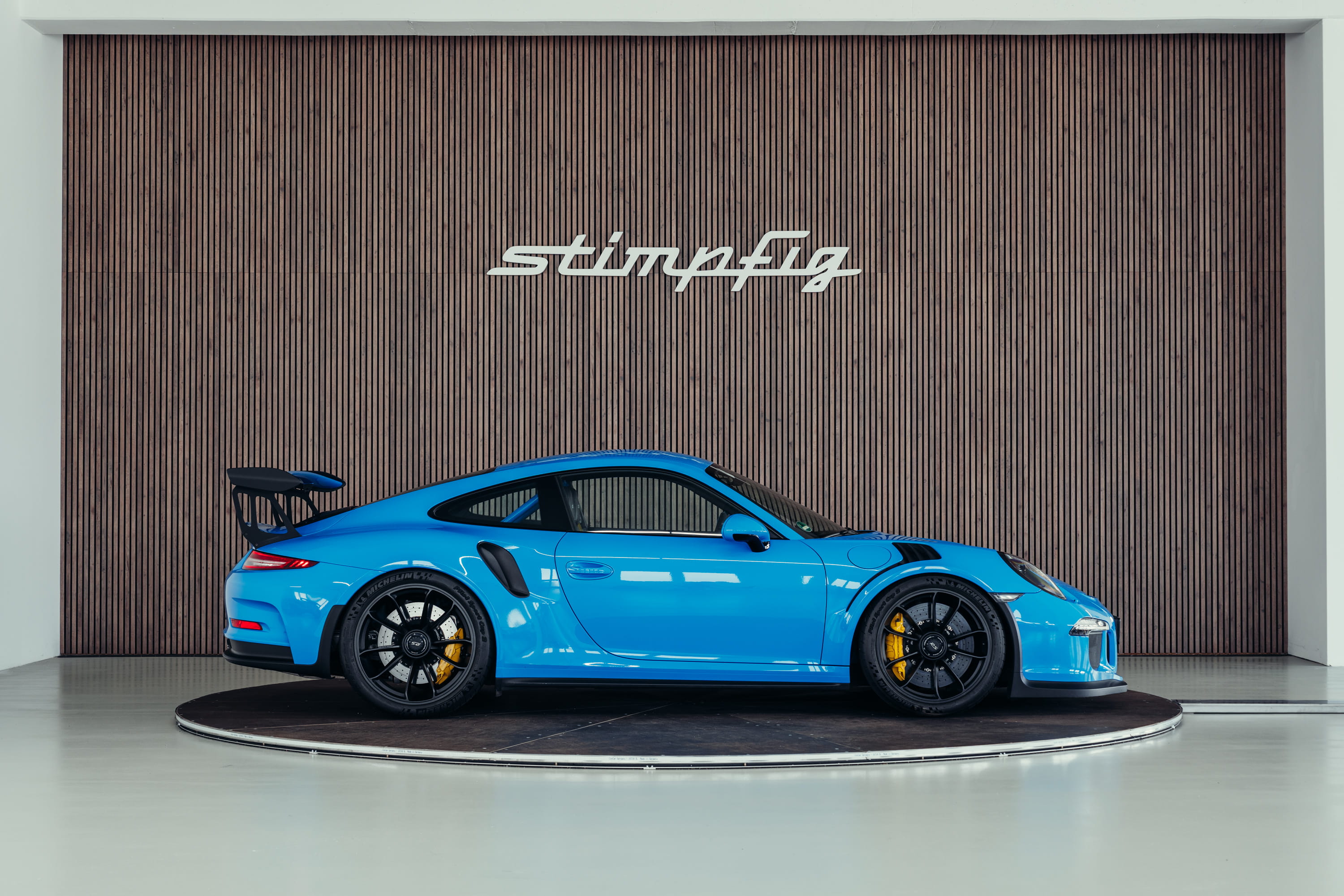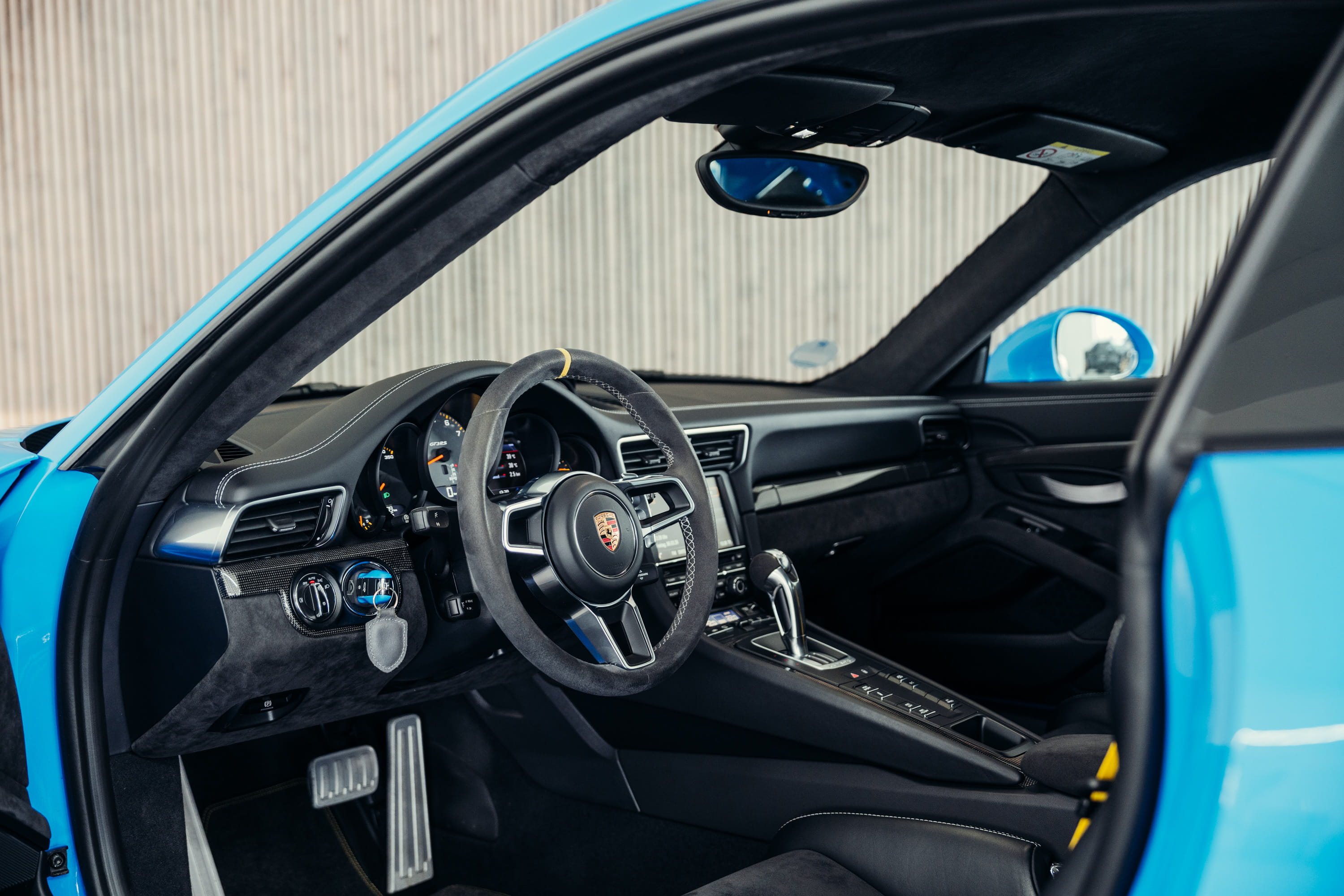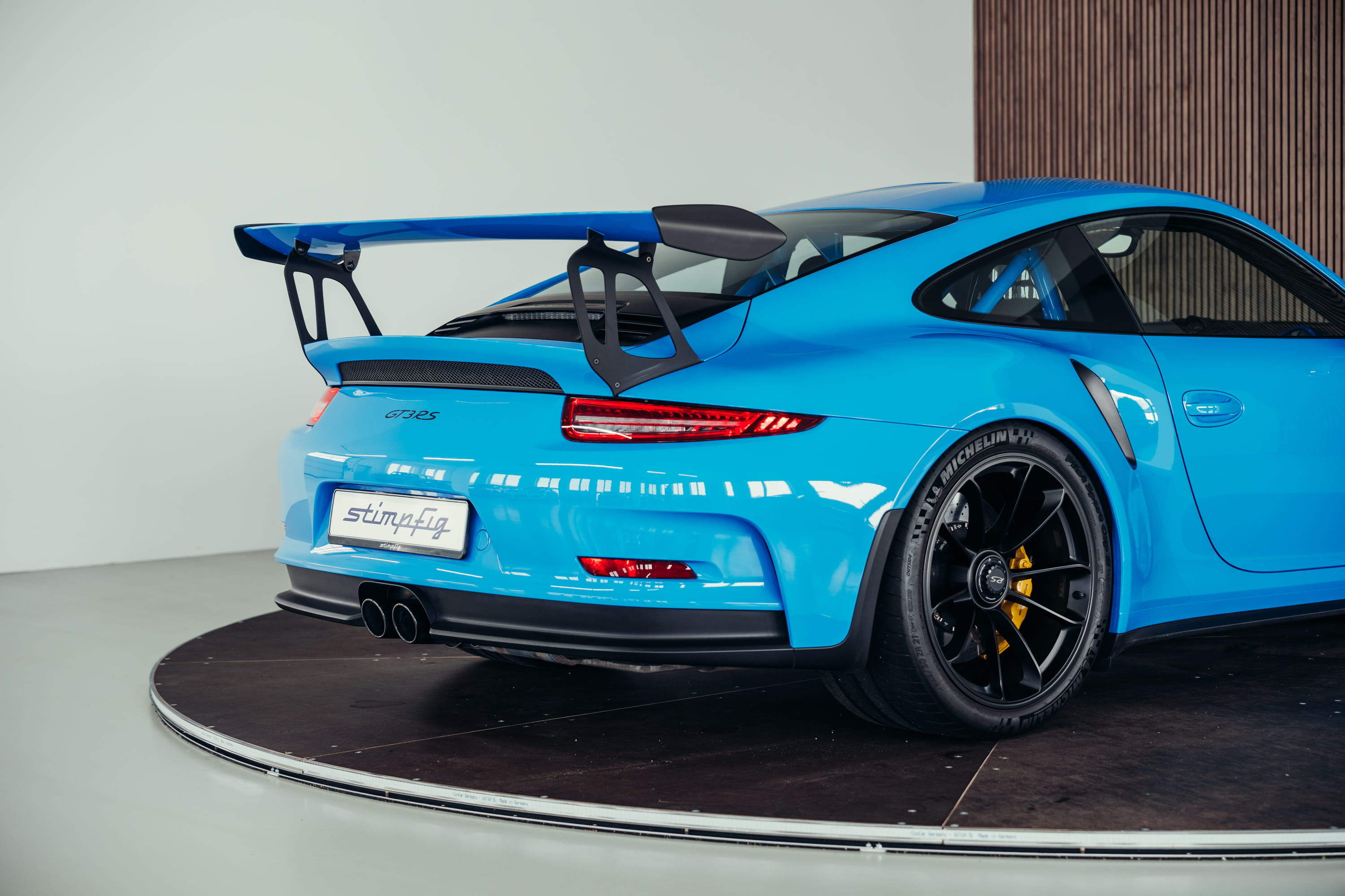 A very beautiful Porsche 991.1 GT3 RS in the PTS color Riviera Blue is offered for sale. The color comes from Porsche’s Paint to Sample program and gives the vehicle a particularly striking and sporty appearance.