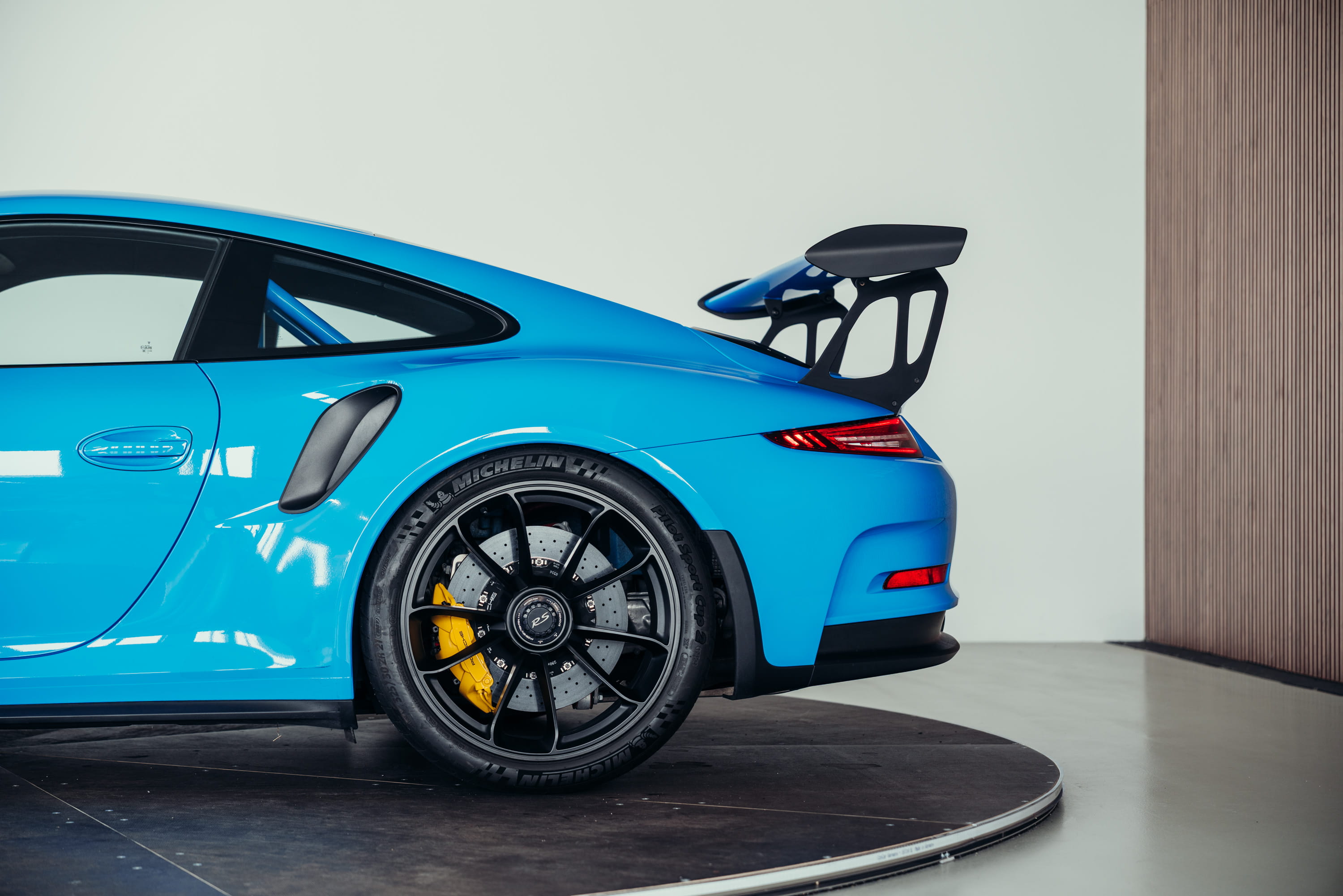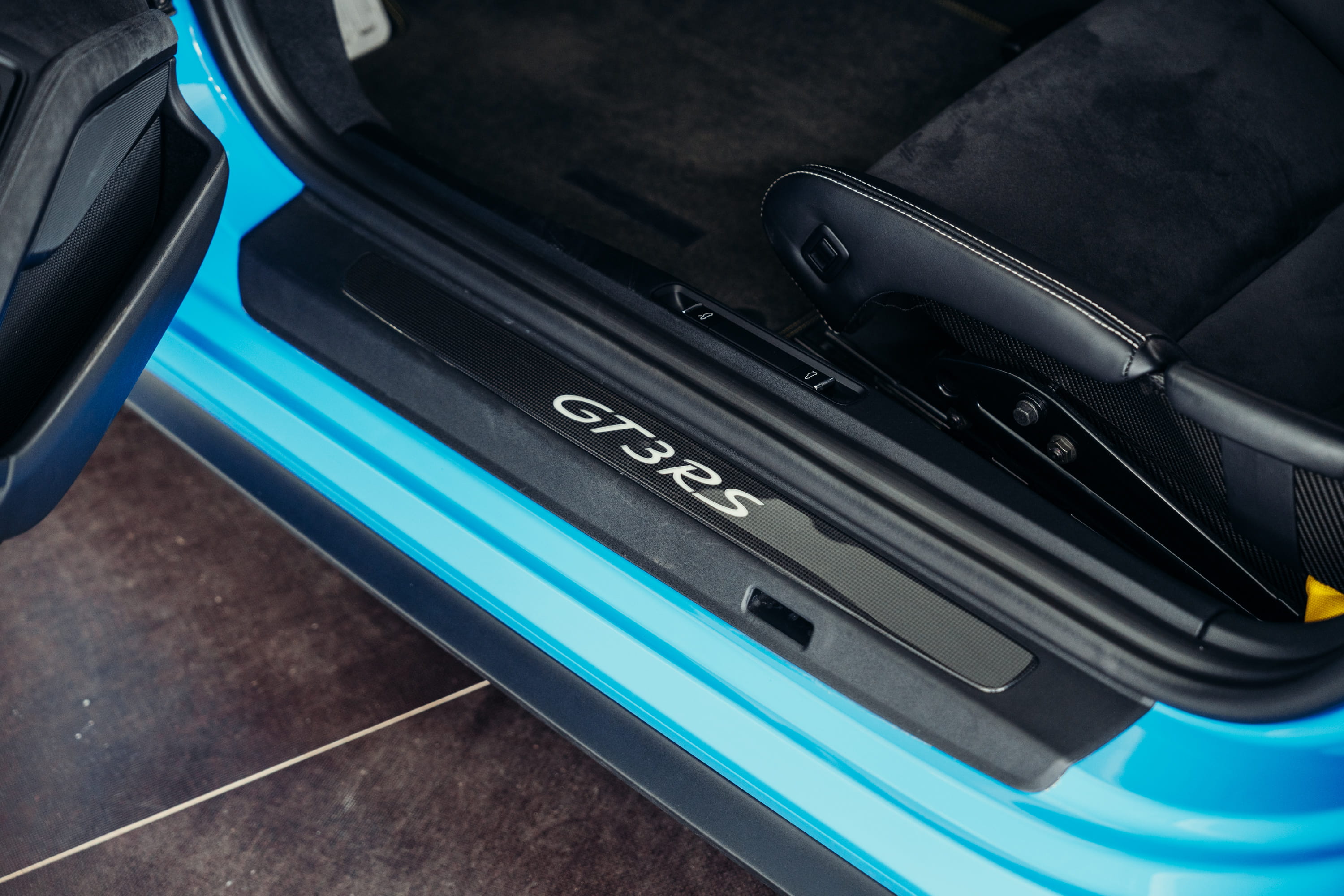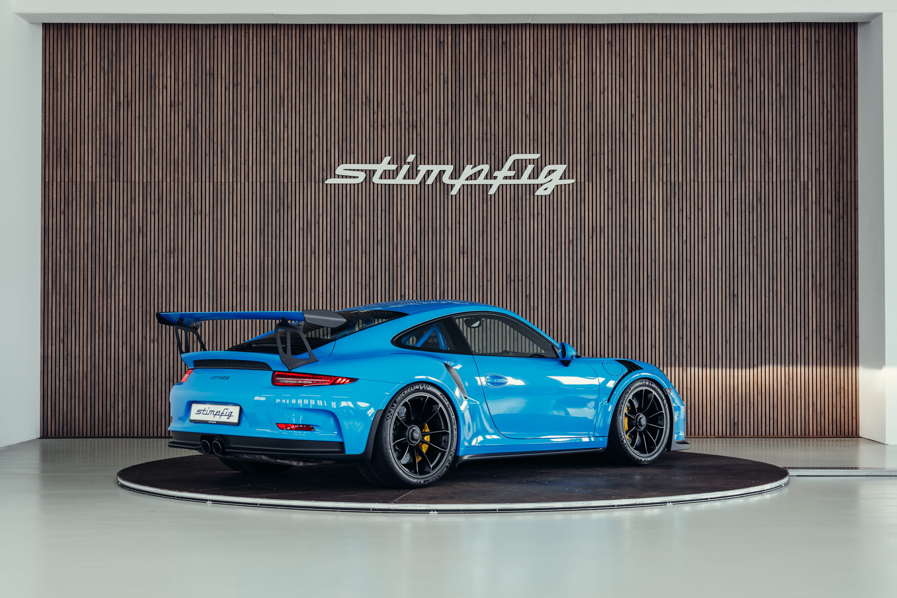 A very beautiful Porsche 991.1 GT3 RS in the PTS color Riviera Blue is offered for sale. The color comes from Porsche’s Paint to Sample program and gives the vehicle a particularly striking and sporty appearance.