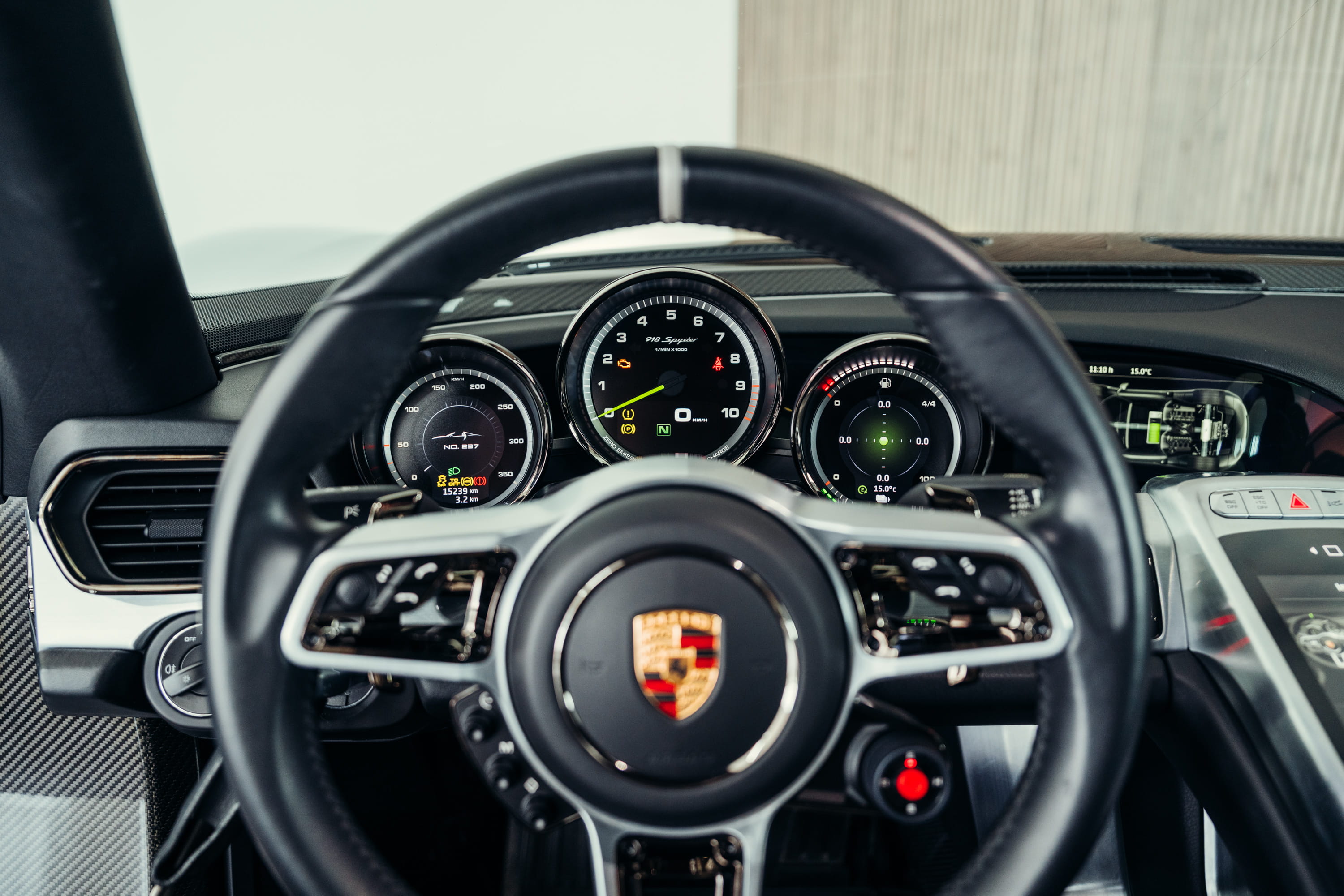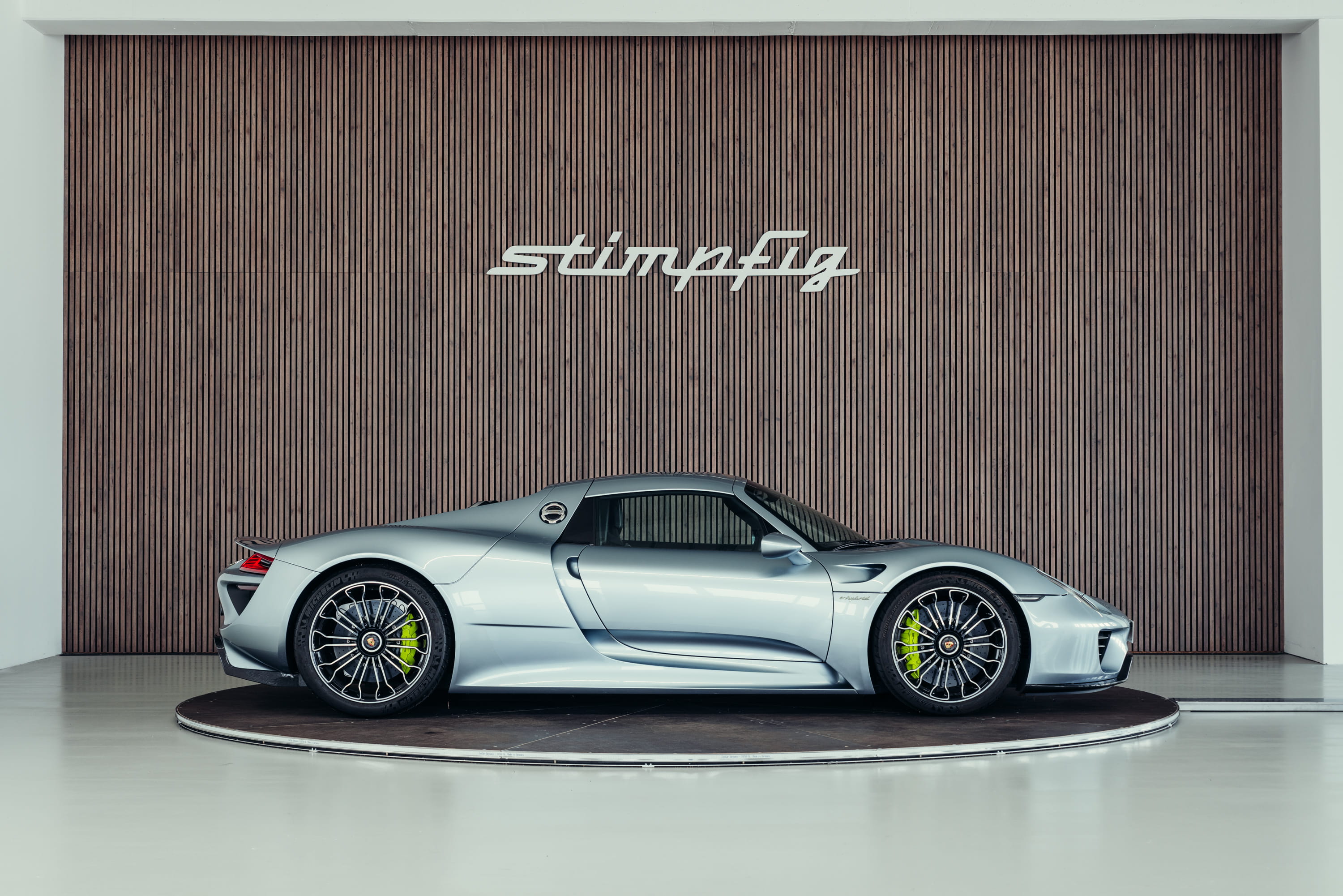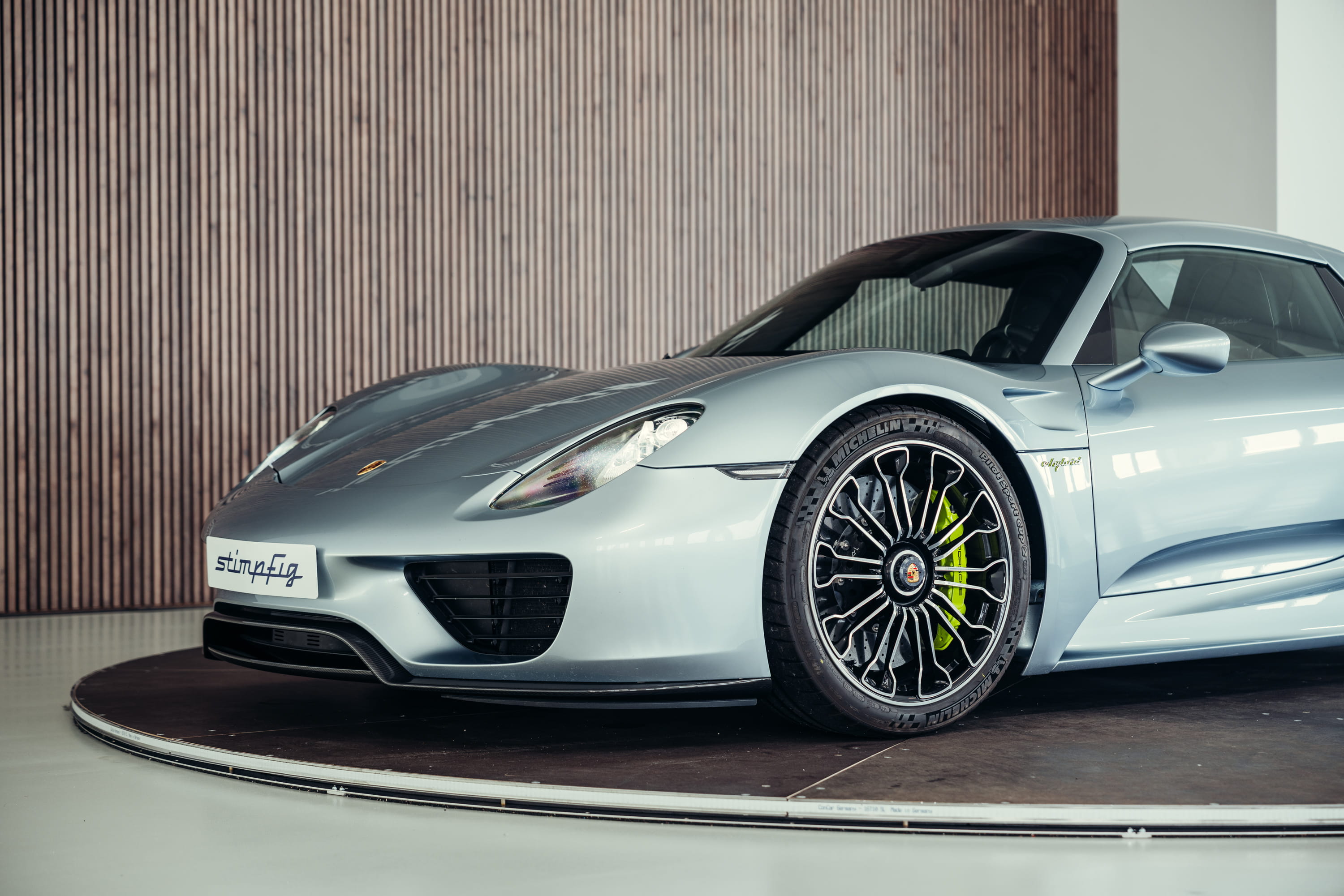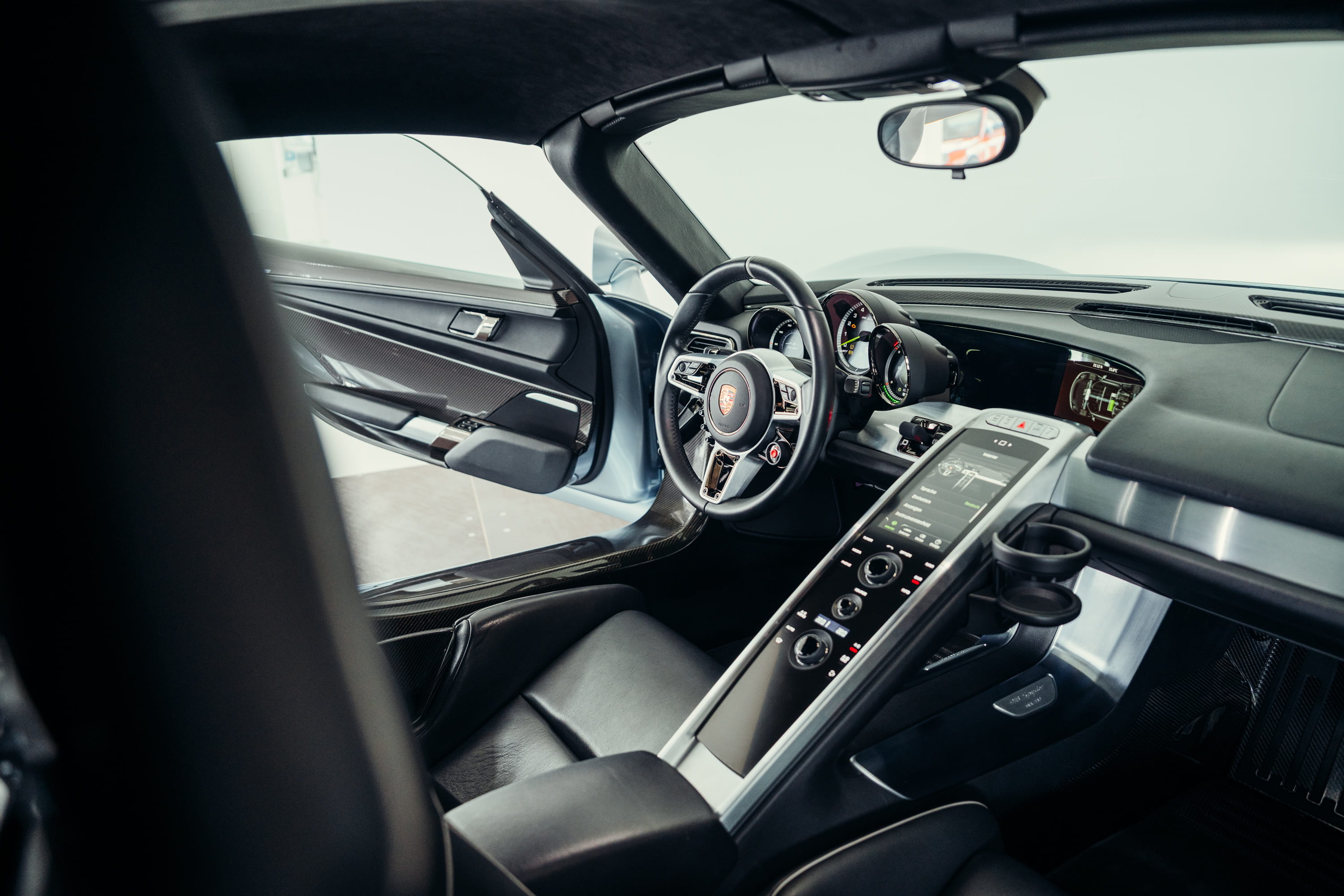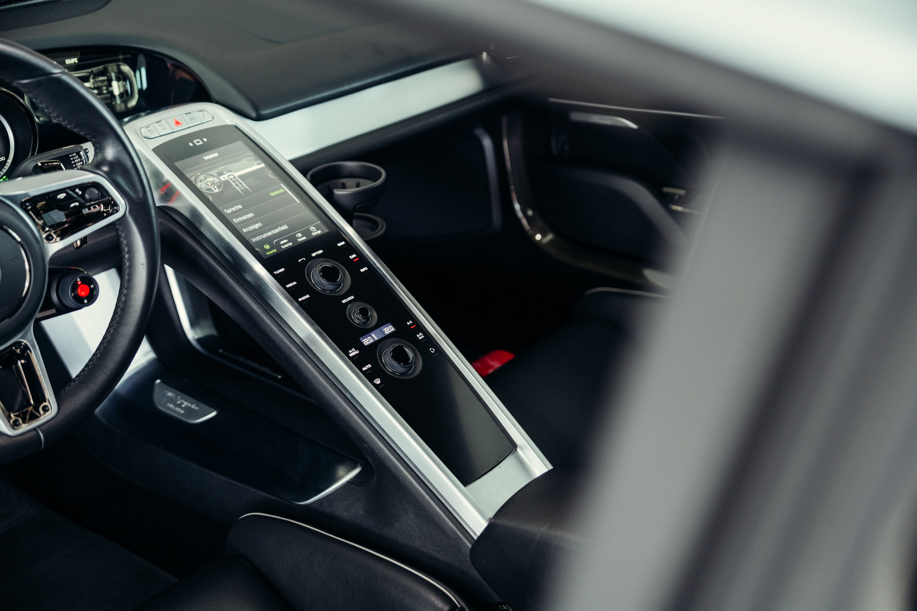 The 918 Spyder represents cutting-edge Porsche technology like almost no other vehicle. Its highly advanced plug-in hybrid system combines a powerful naturally aspirated V8 engine with two electric motors, creating a fascinating combination of brutal performance and innovative efficiency. Together with the precise chassis and sophisticated aerodynamics, it delivers a driving experience at absolute hypercar level.