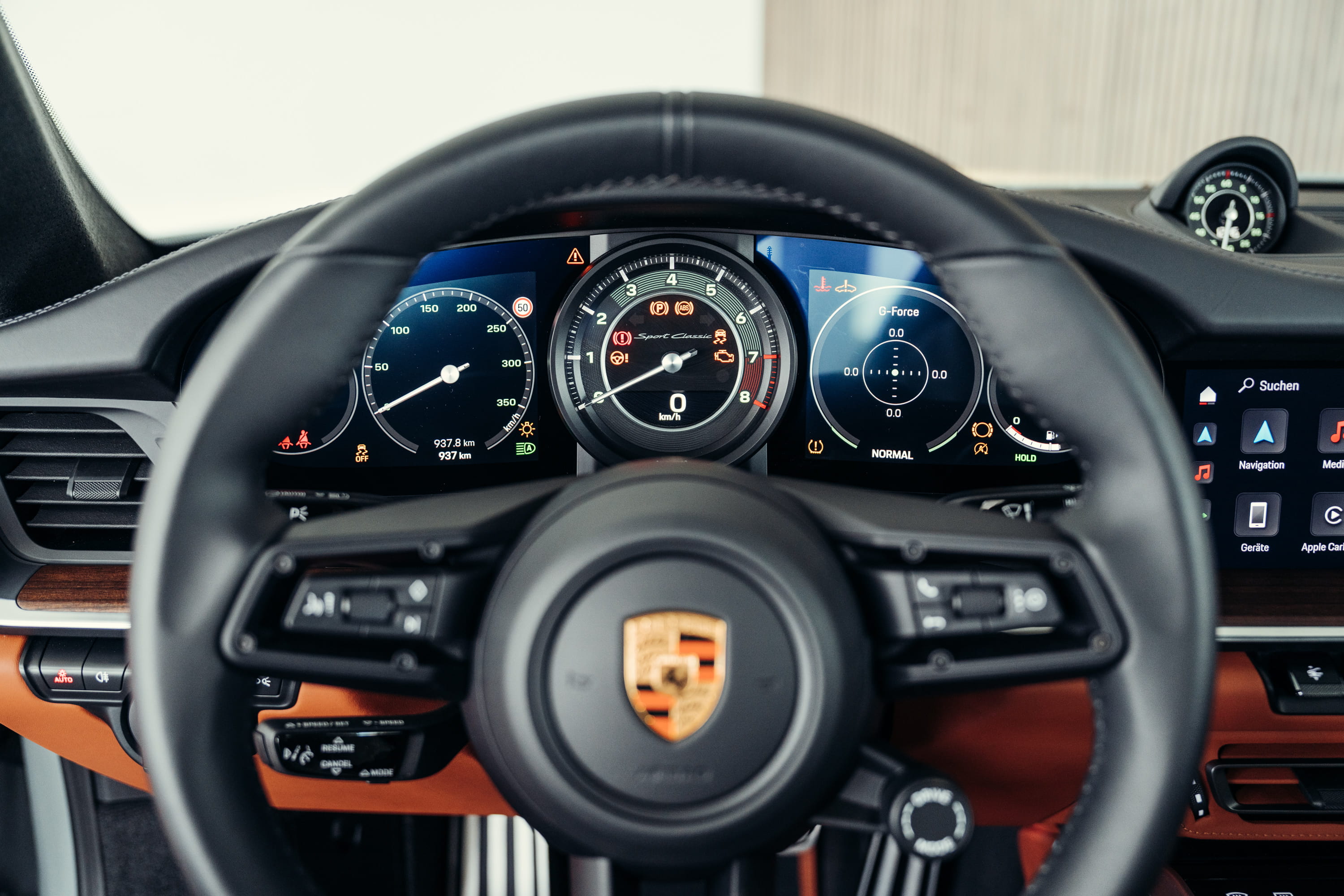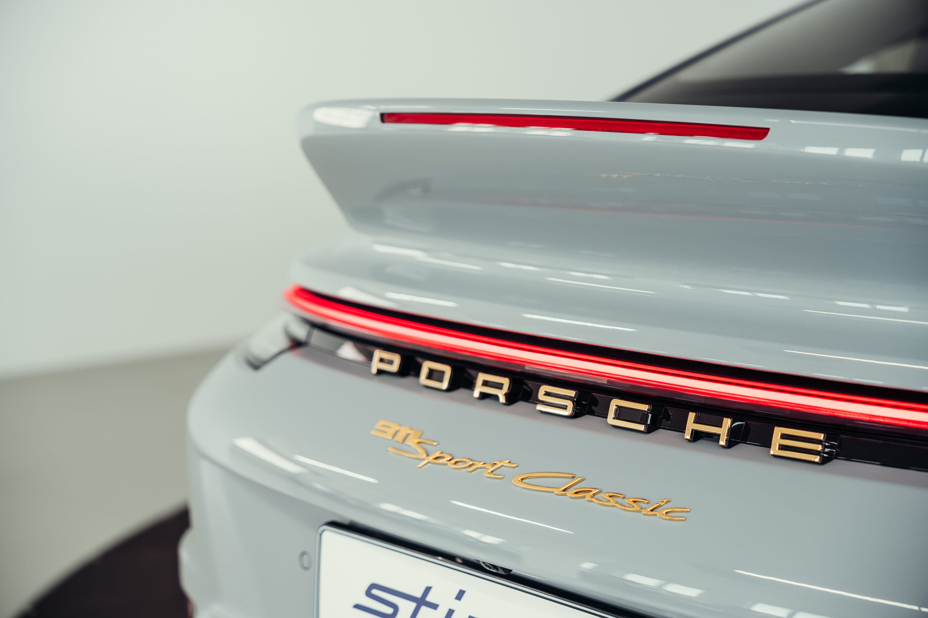 For sale is a Porsche 992.1 Sport Classic from a collector’s ownership—a strictly limited special edition, of which only 1,250 units were produced worldwide. The car is powered by a 3.7-liter six-cylinder twin-turbo boxer engine producing 550 hp, delivering its power exclusively through a precise 7-speed manual transmission to the rear axle. This deliberate combination of high-performance engine and manual gearbox makes the Sport Classic one of the most emotional and engaging variants of the 992 series.