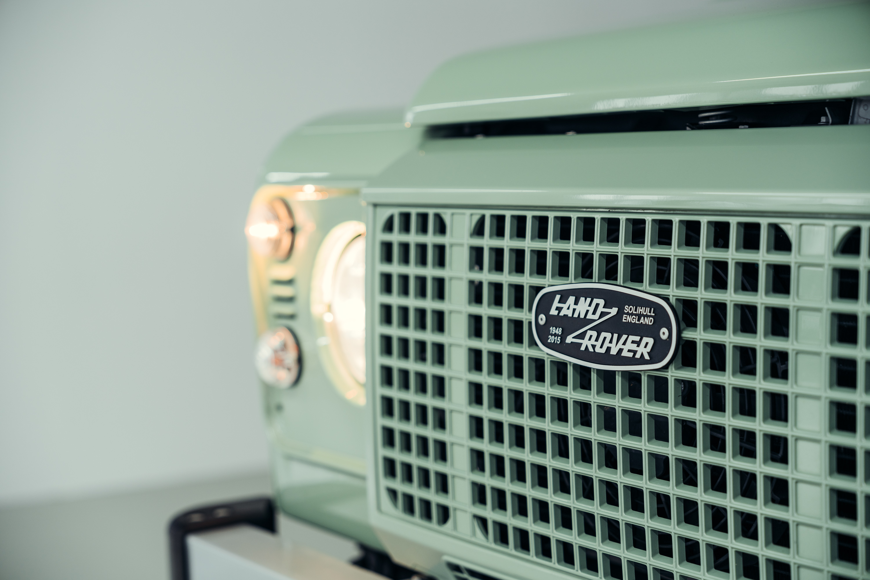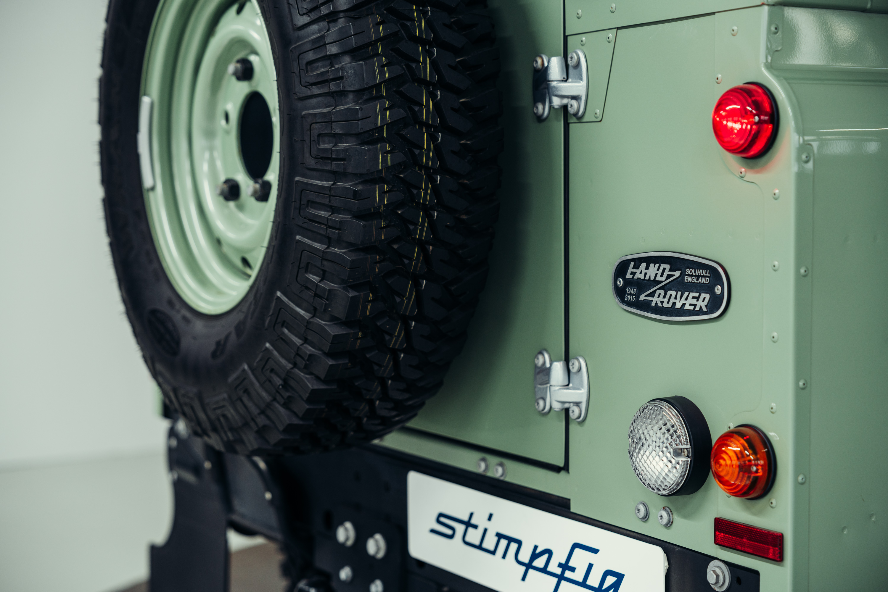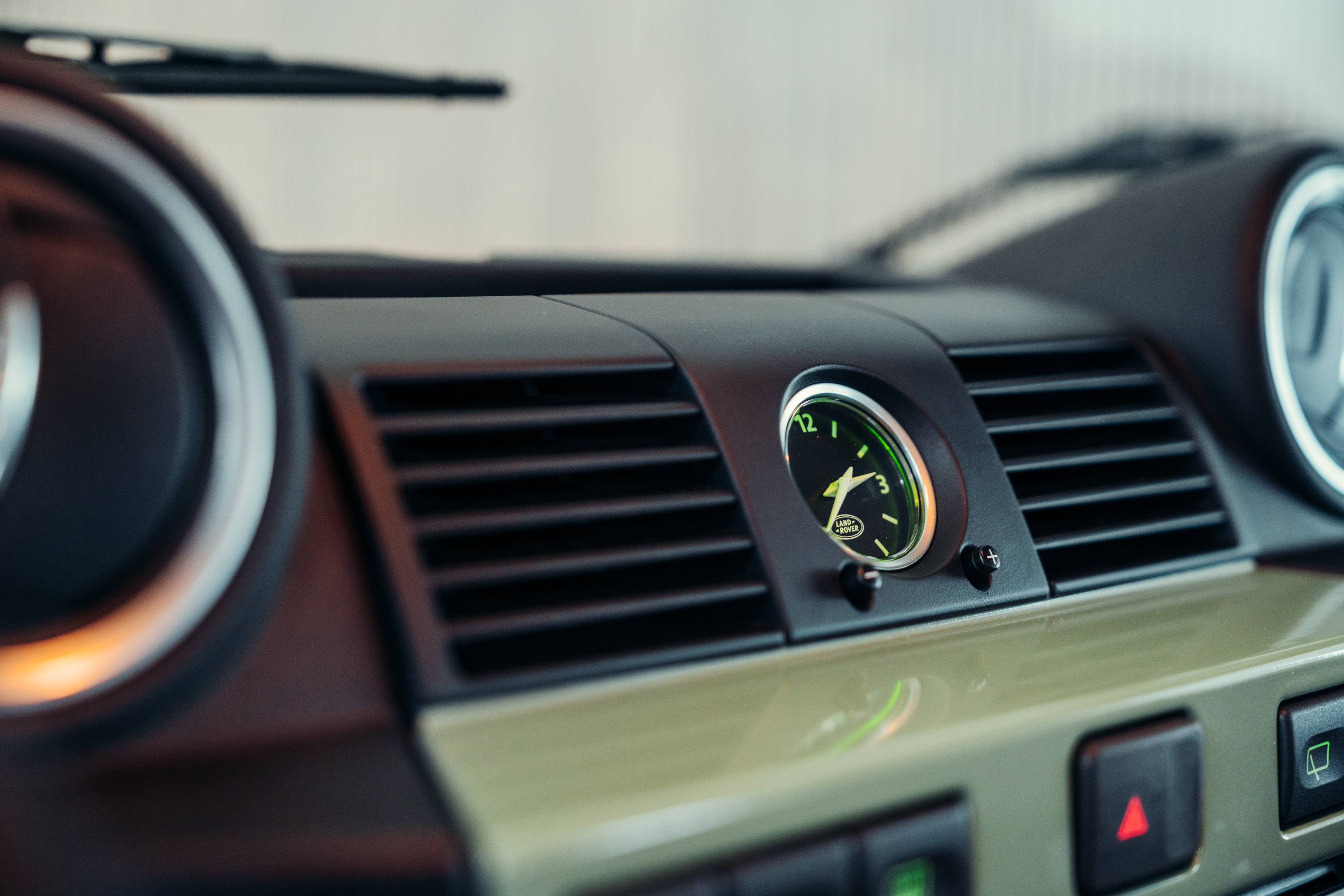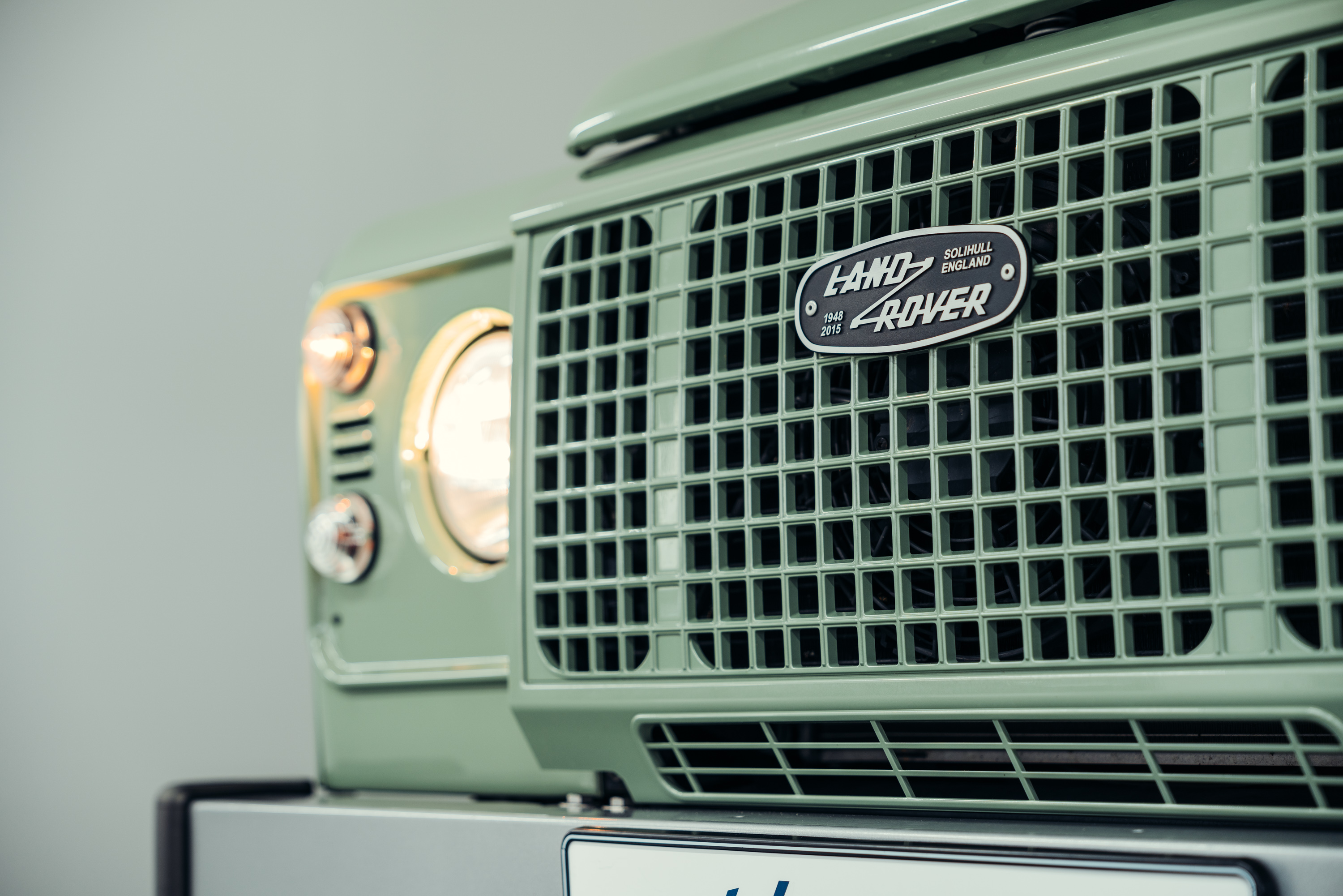 Heritage Land Rover emblem on front grille and tailgate, Defender emblems omitted