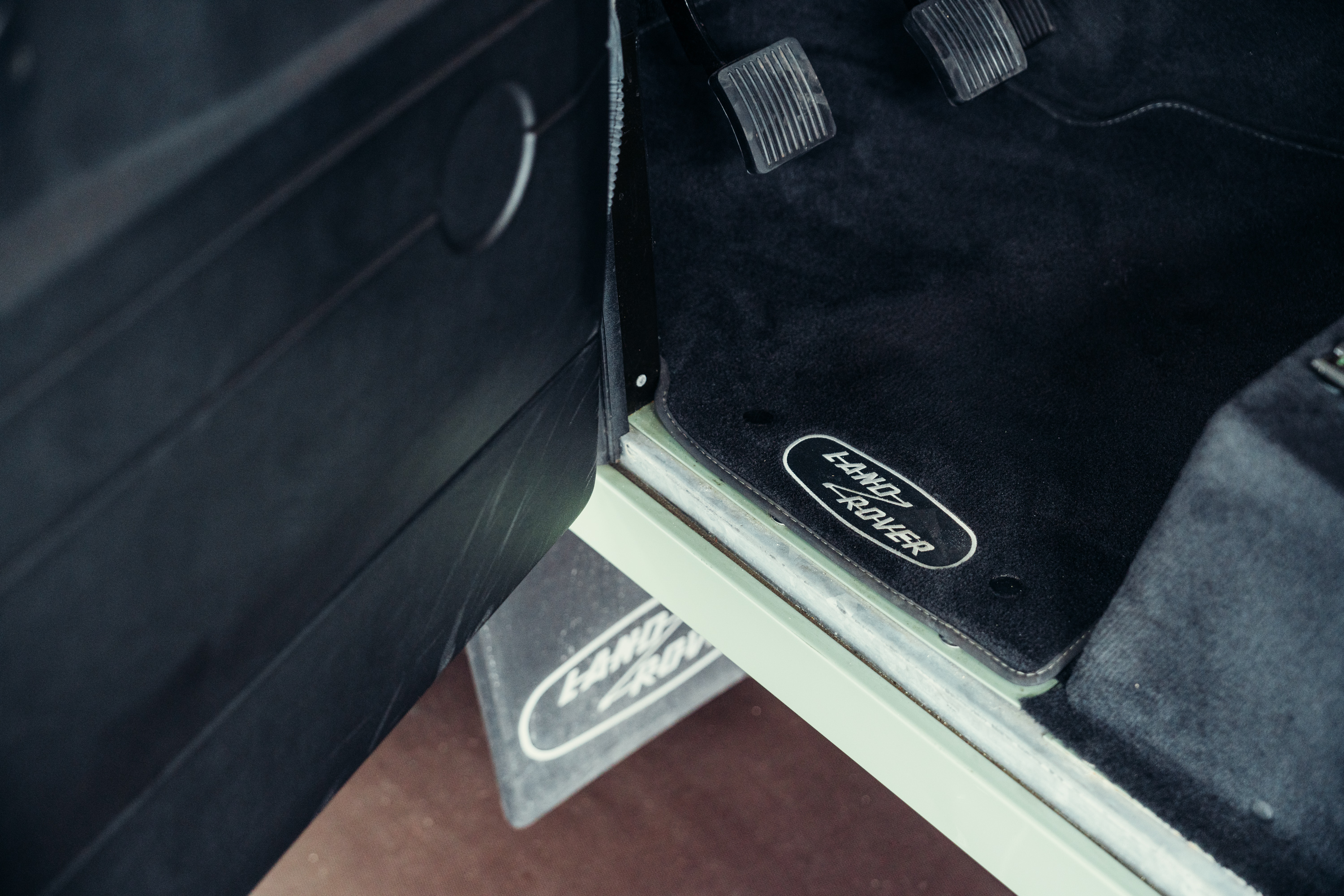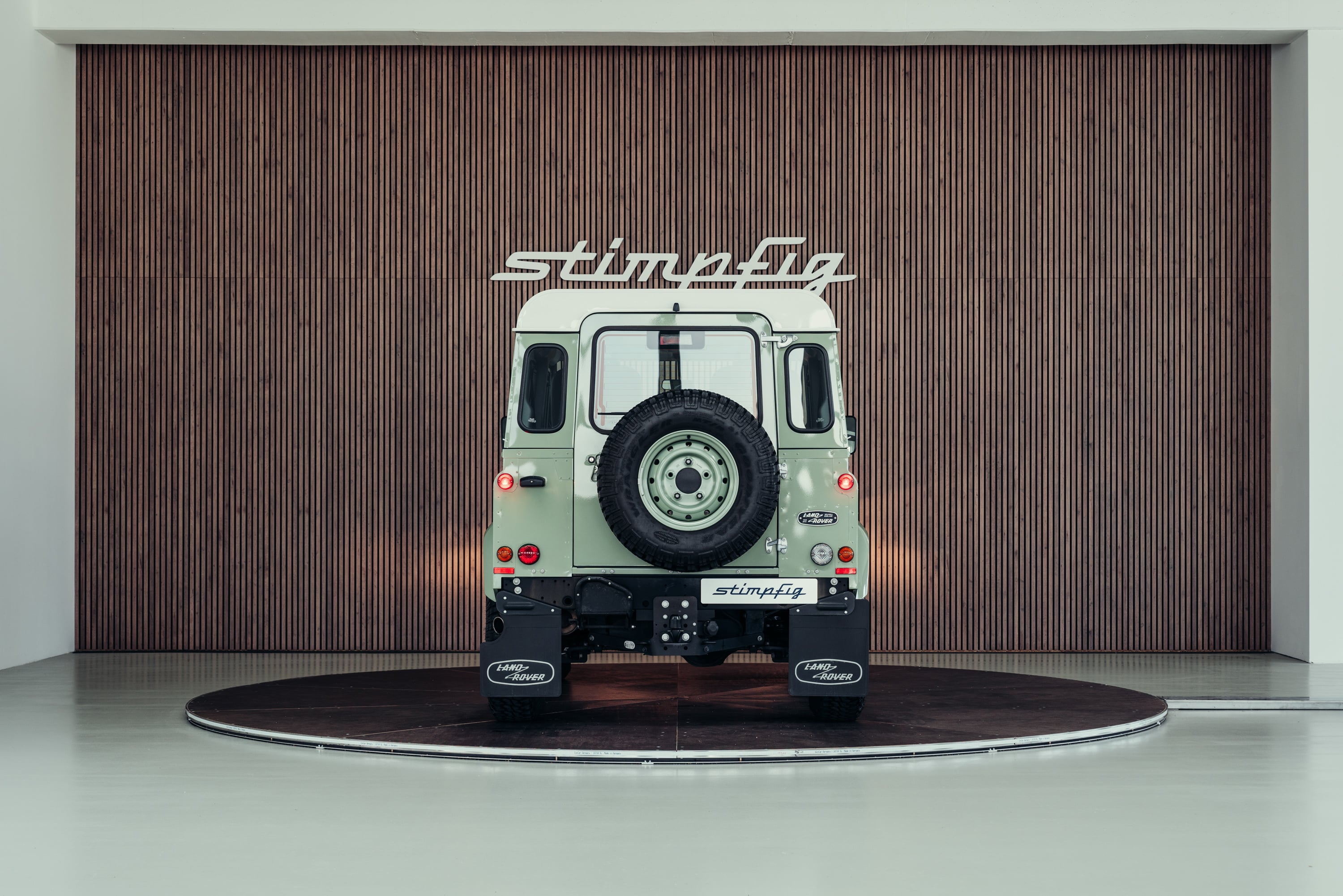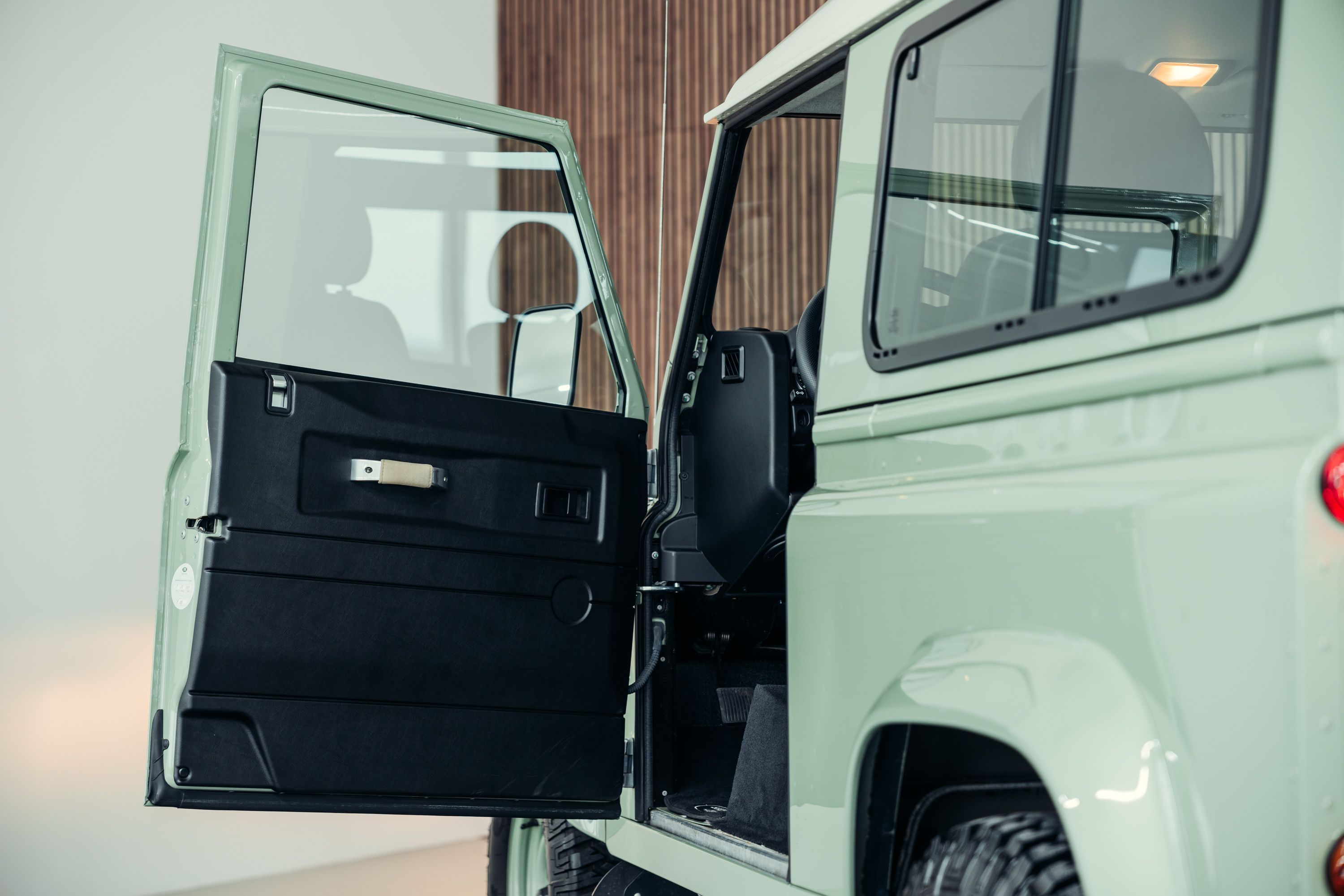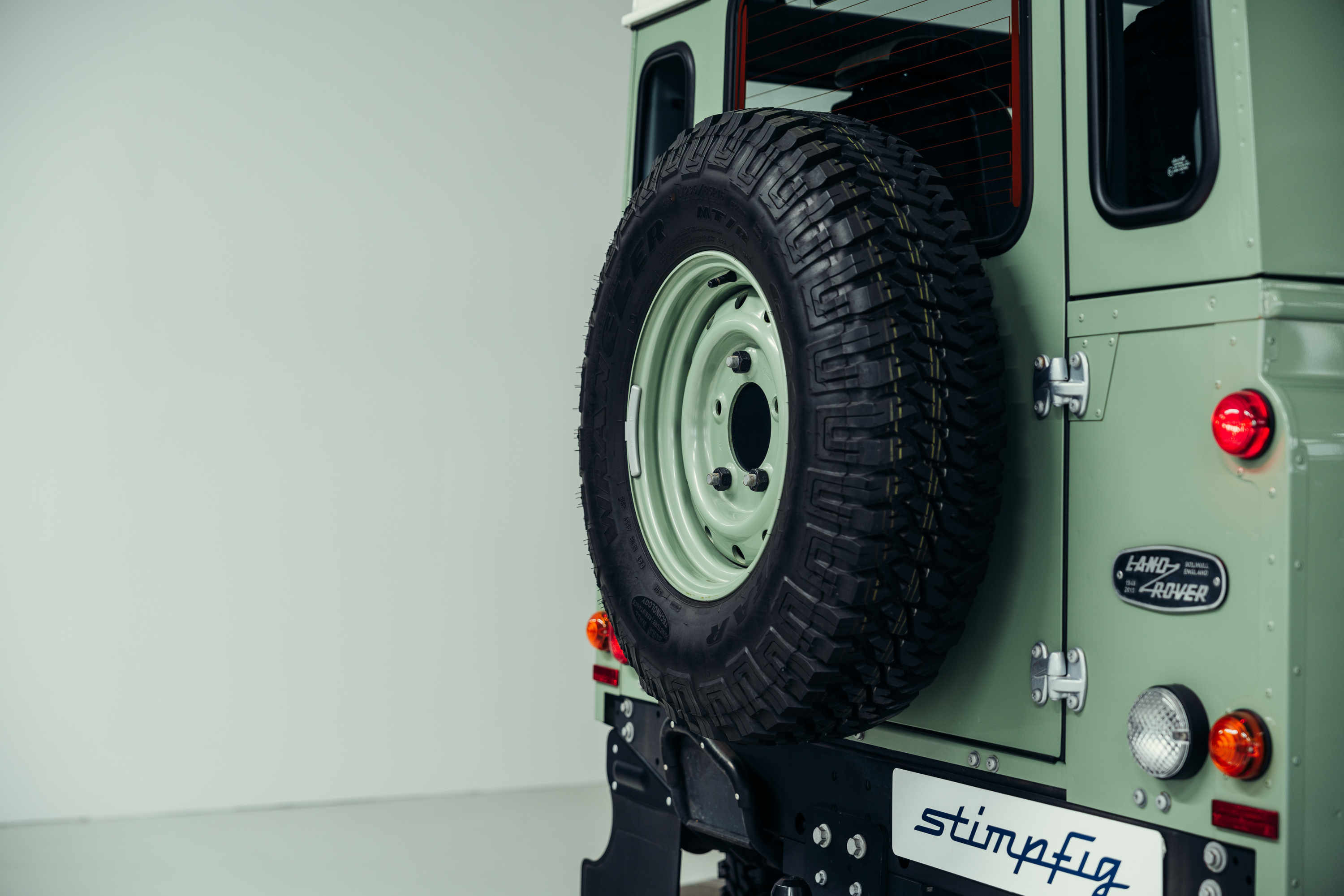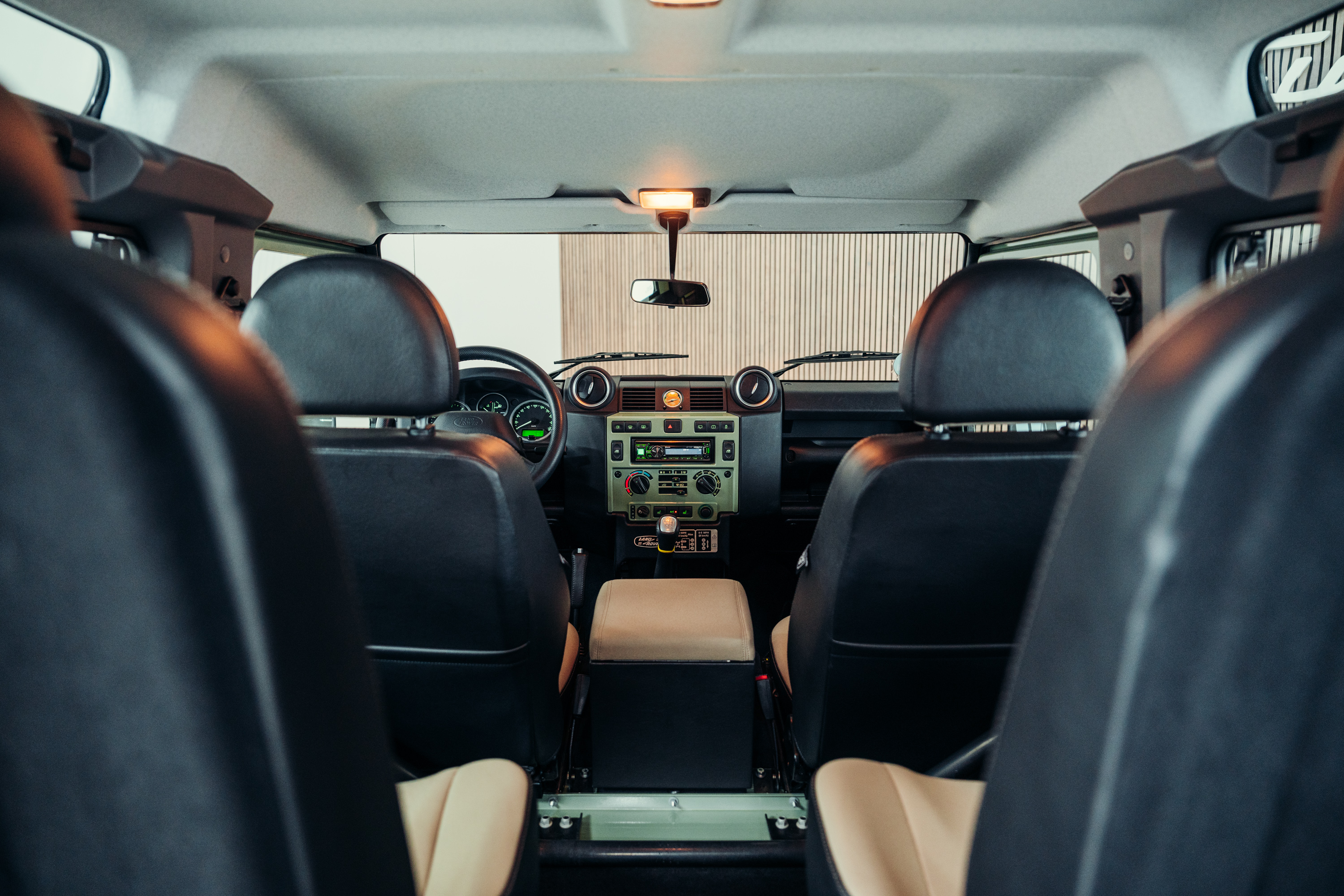 Heritage Land Rover emblem on front grille and tailgate, Defender emblems omitted