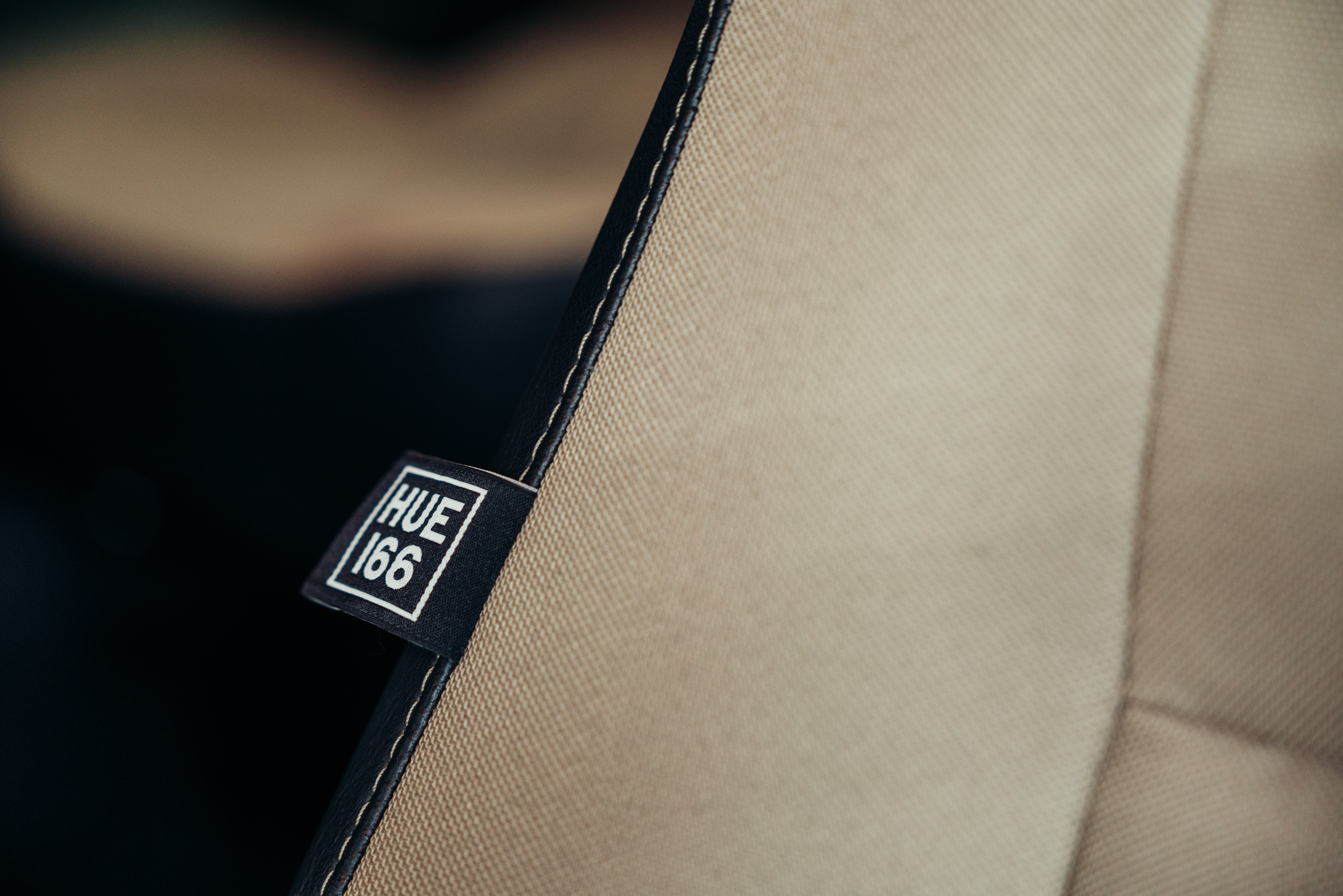 Heritage cloth seats in Almond with contrasting stitching in Nutmeg (side and rear sections of seats are in black vinyl)